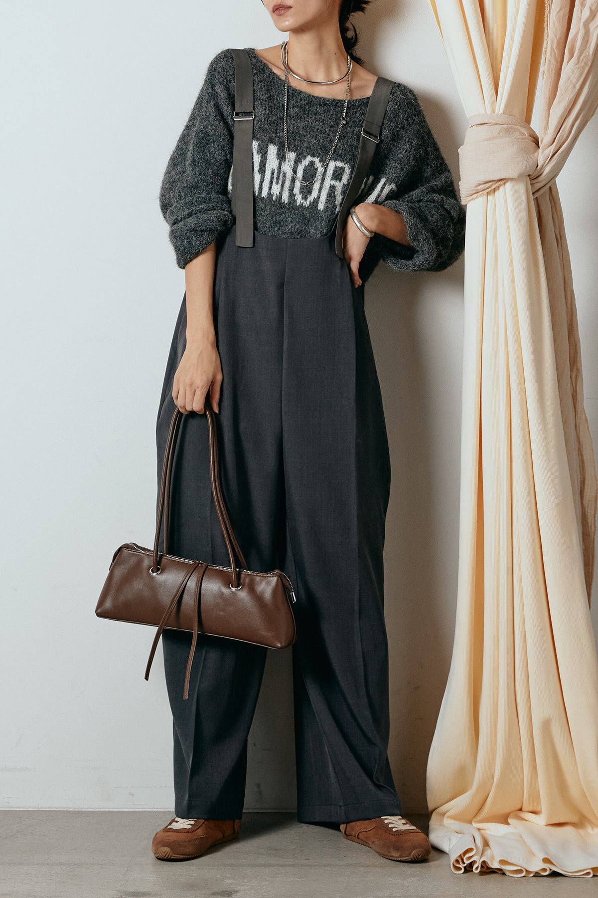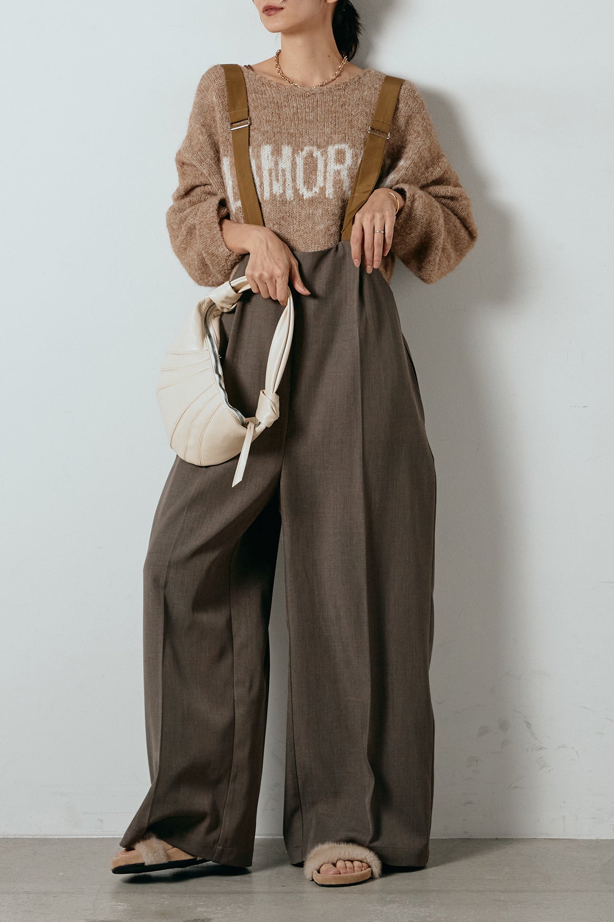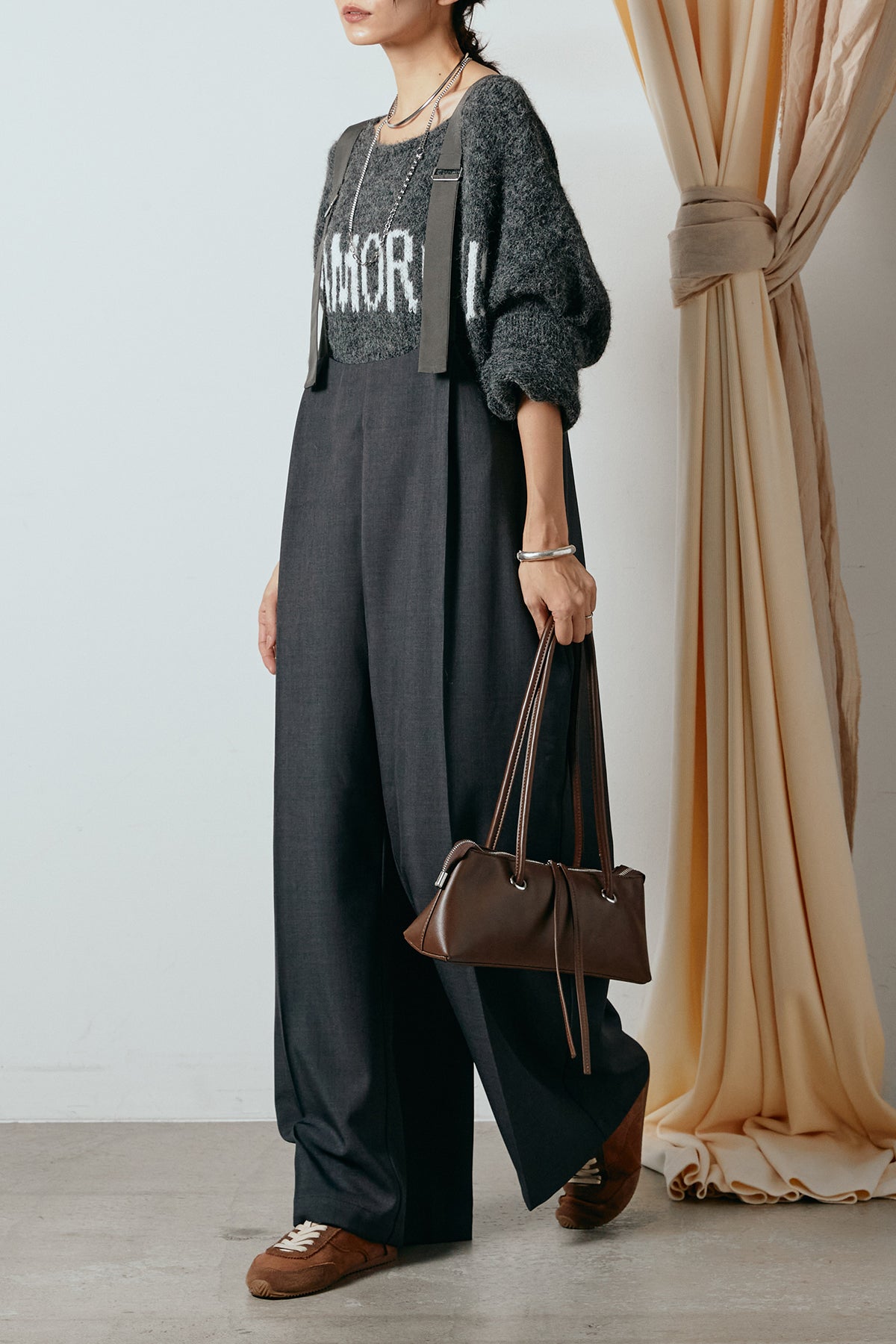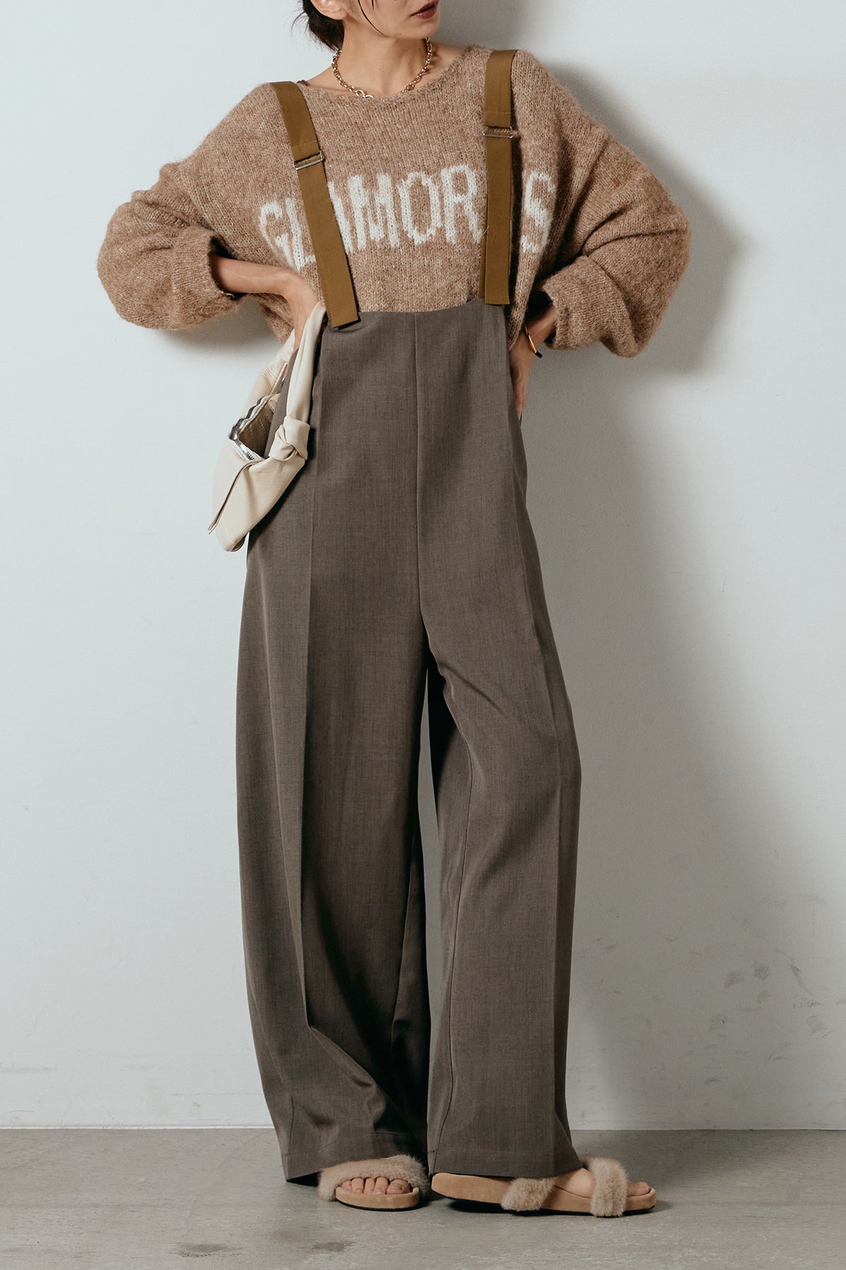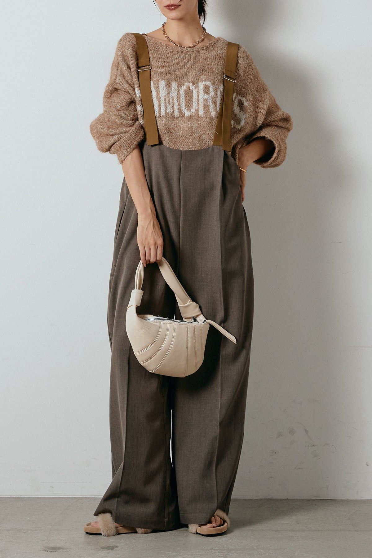 柔らかく落ち感のあるツイル素材を使用したワイドサロペット。