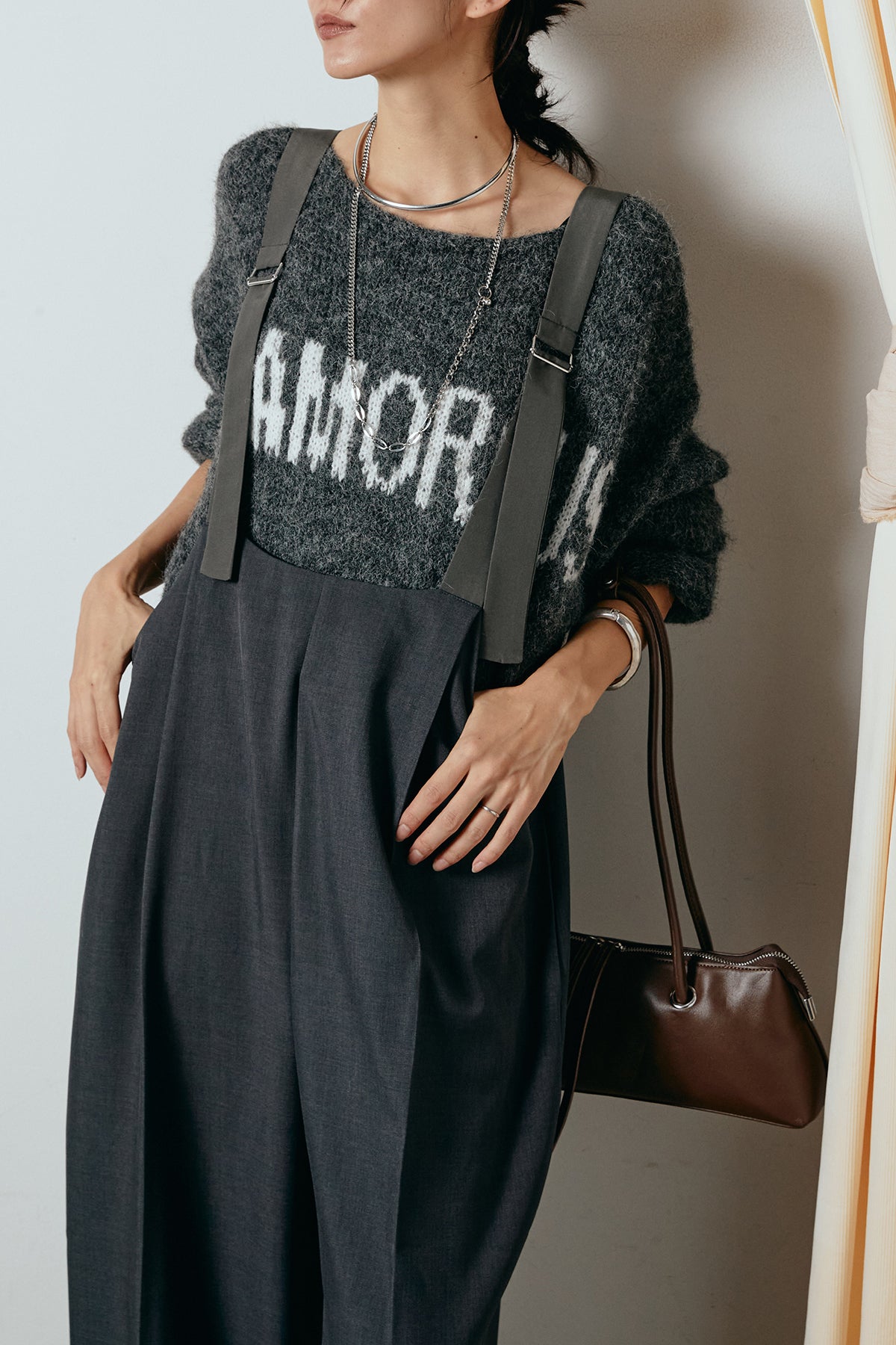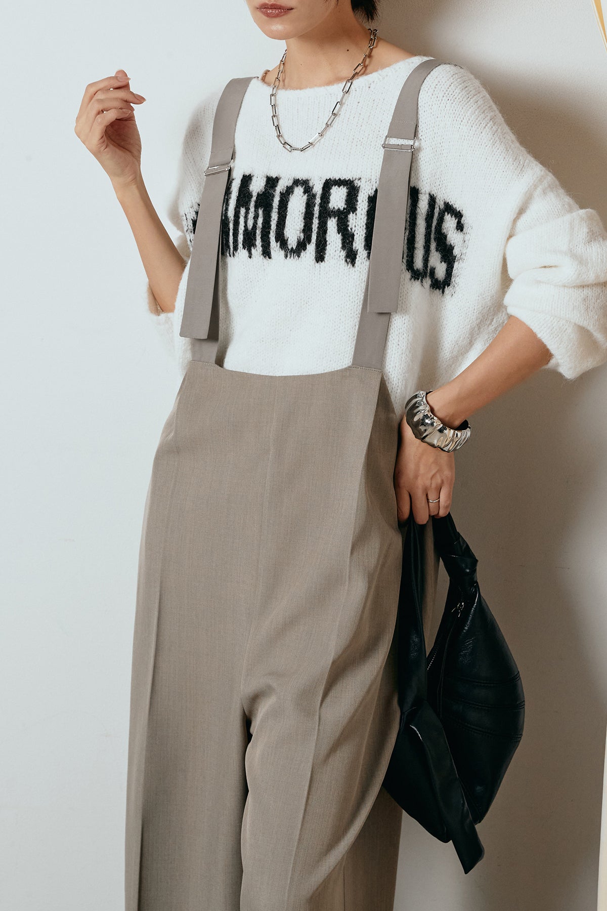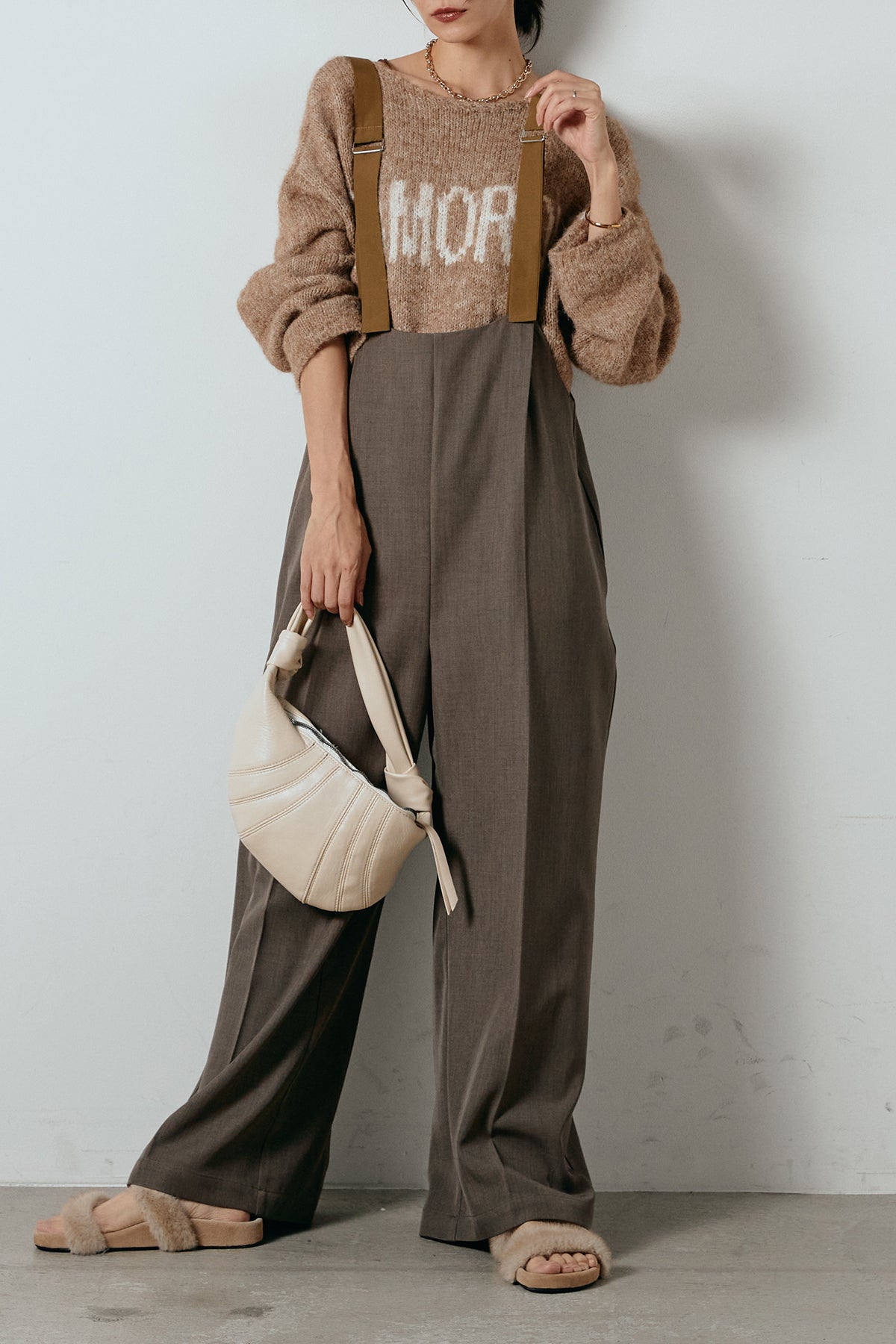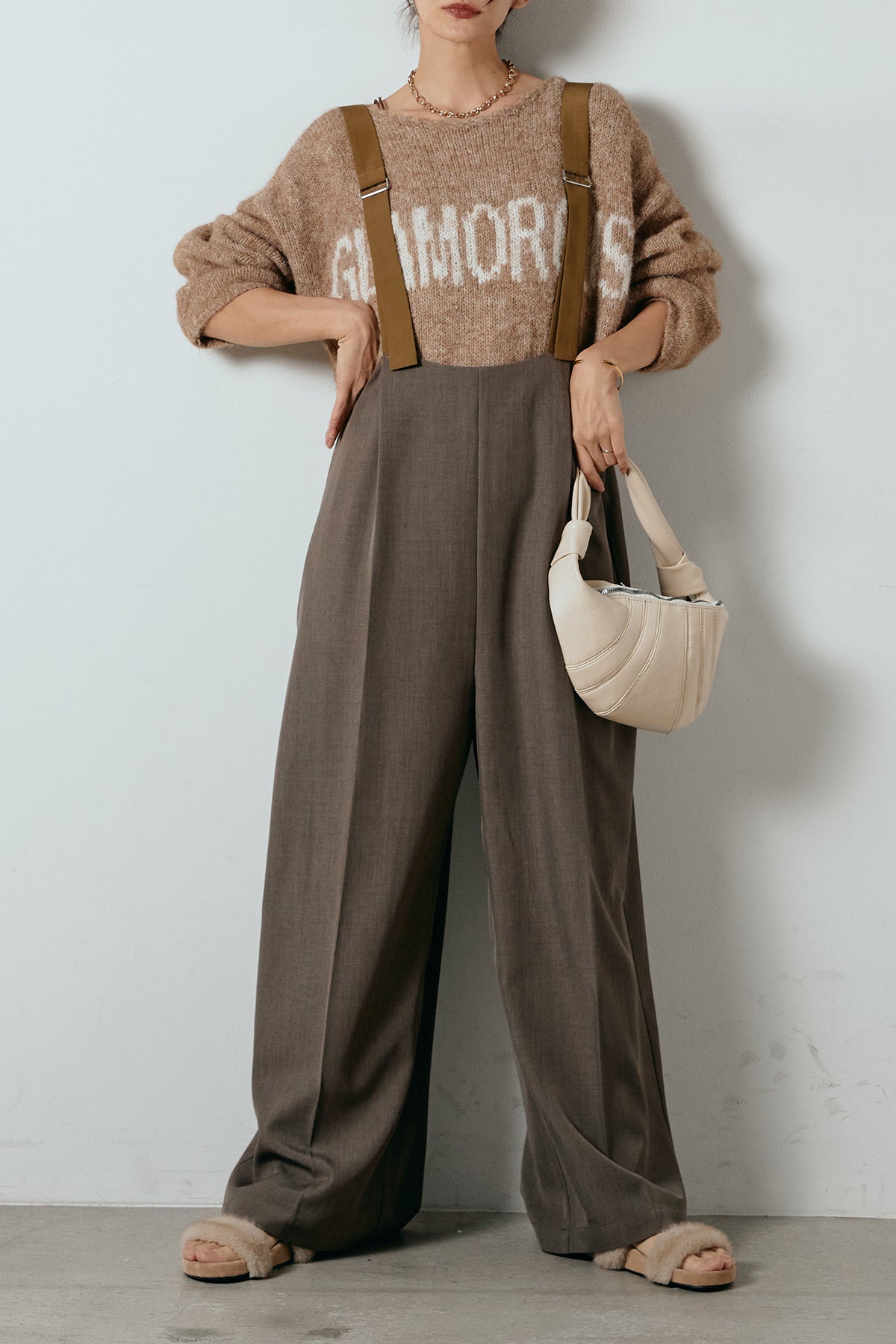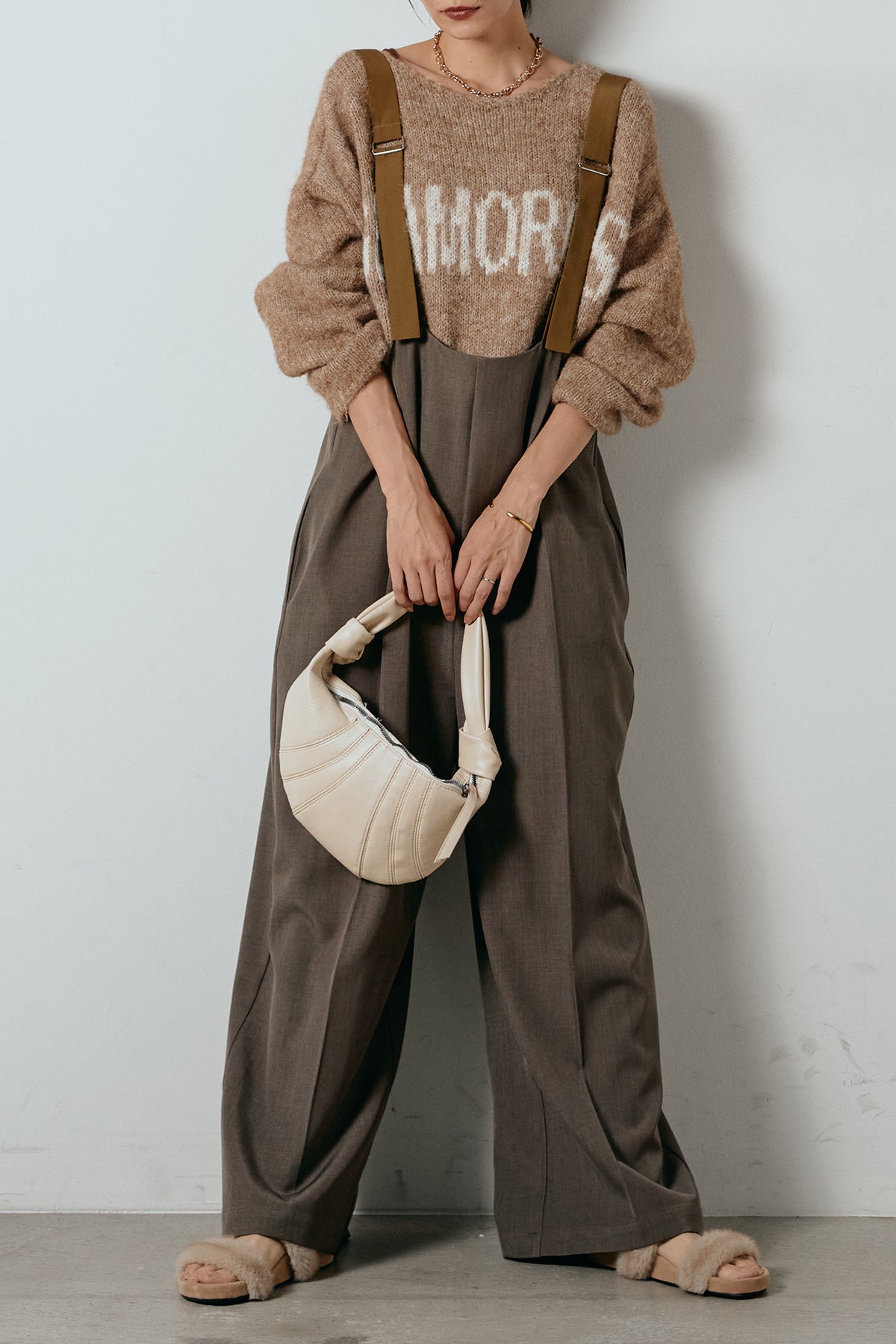 柔らかく落ち感のあるツイル素材を使用したワイドサロペット。