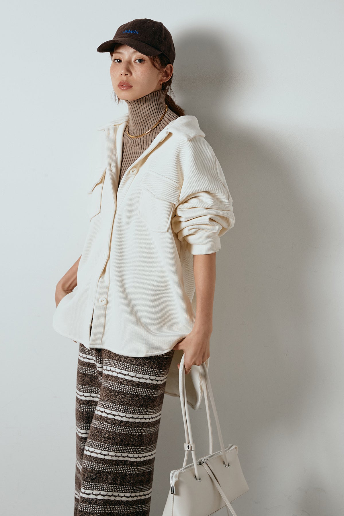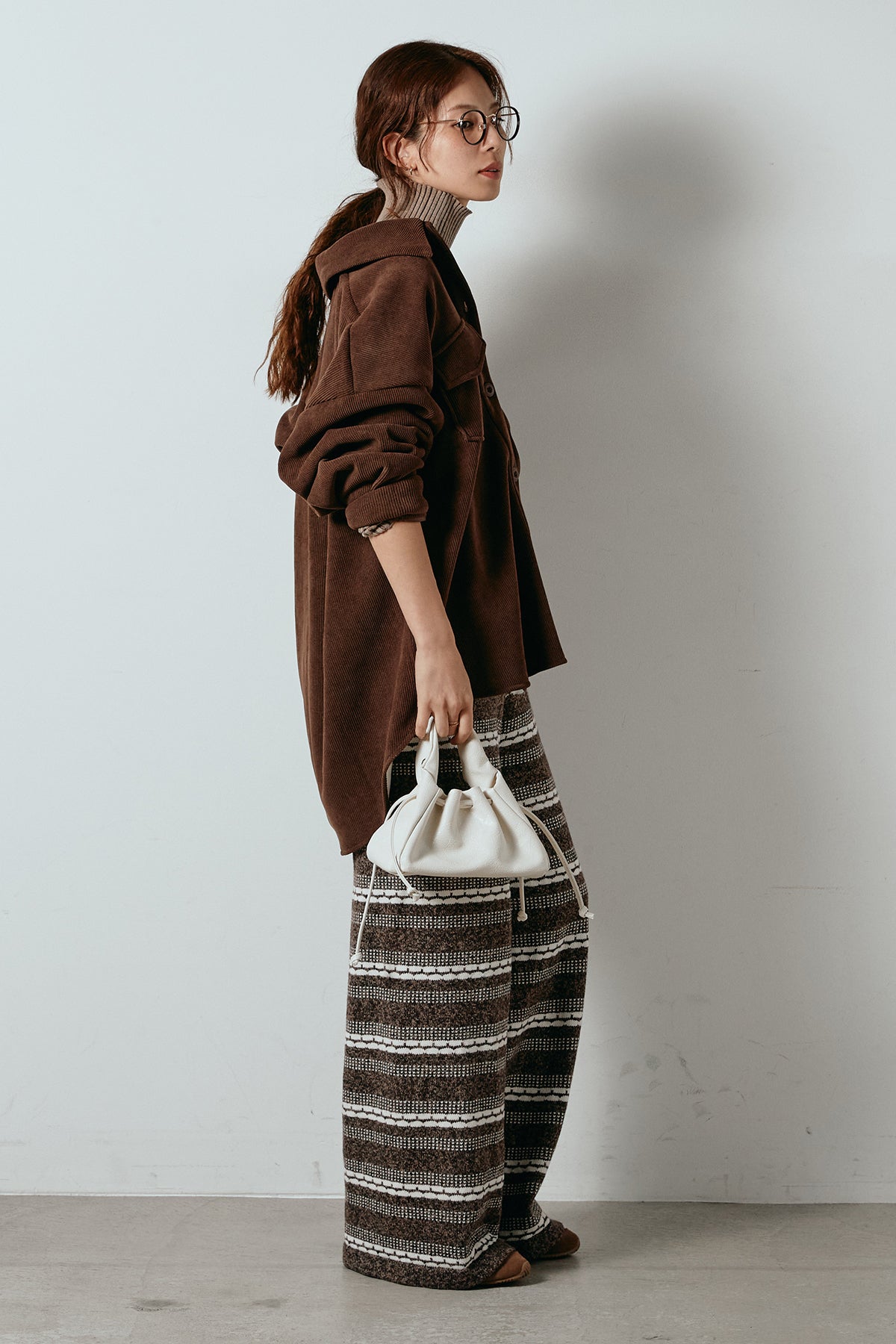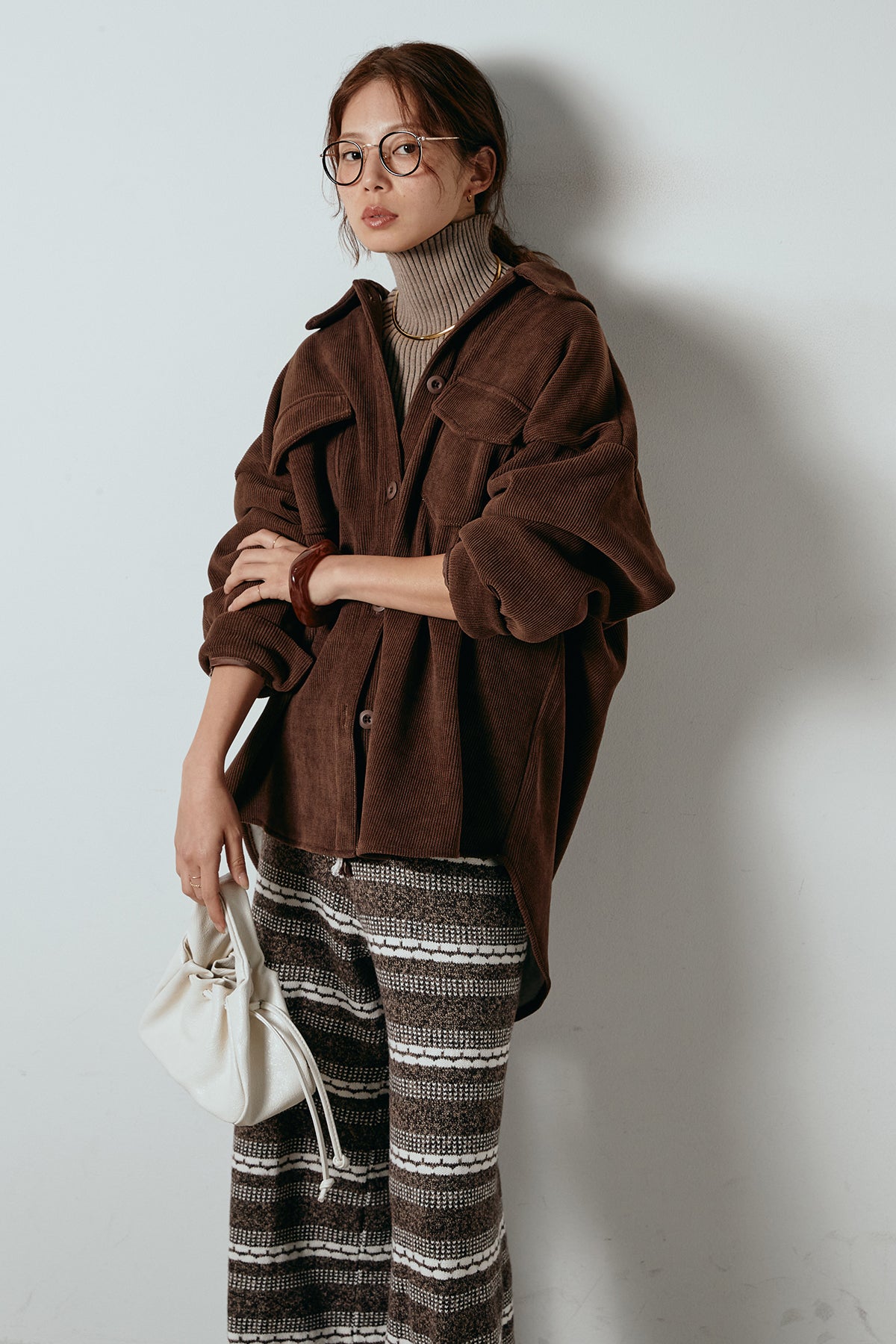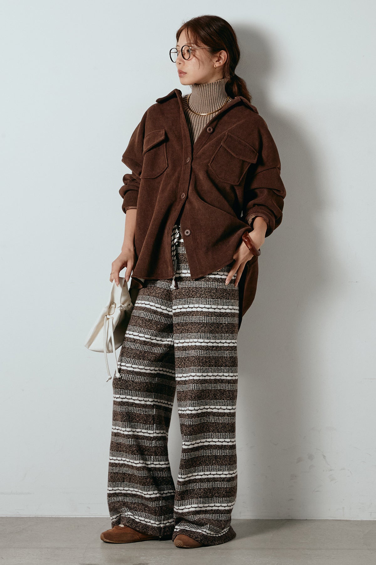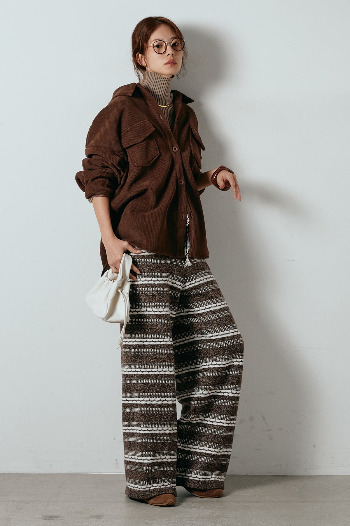 [SET]襟付きコーデュロイポケットシャツ+リブニットシームレスタートルプルオーバー+マルチライン柄リラックスニットパンツ(3set)