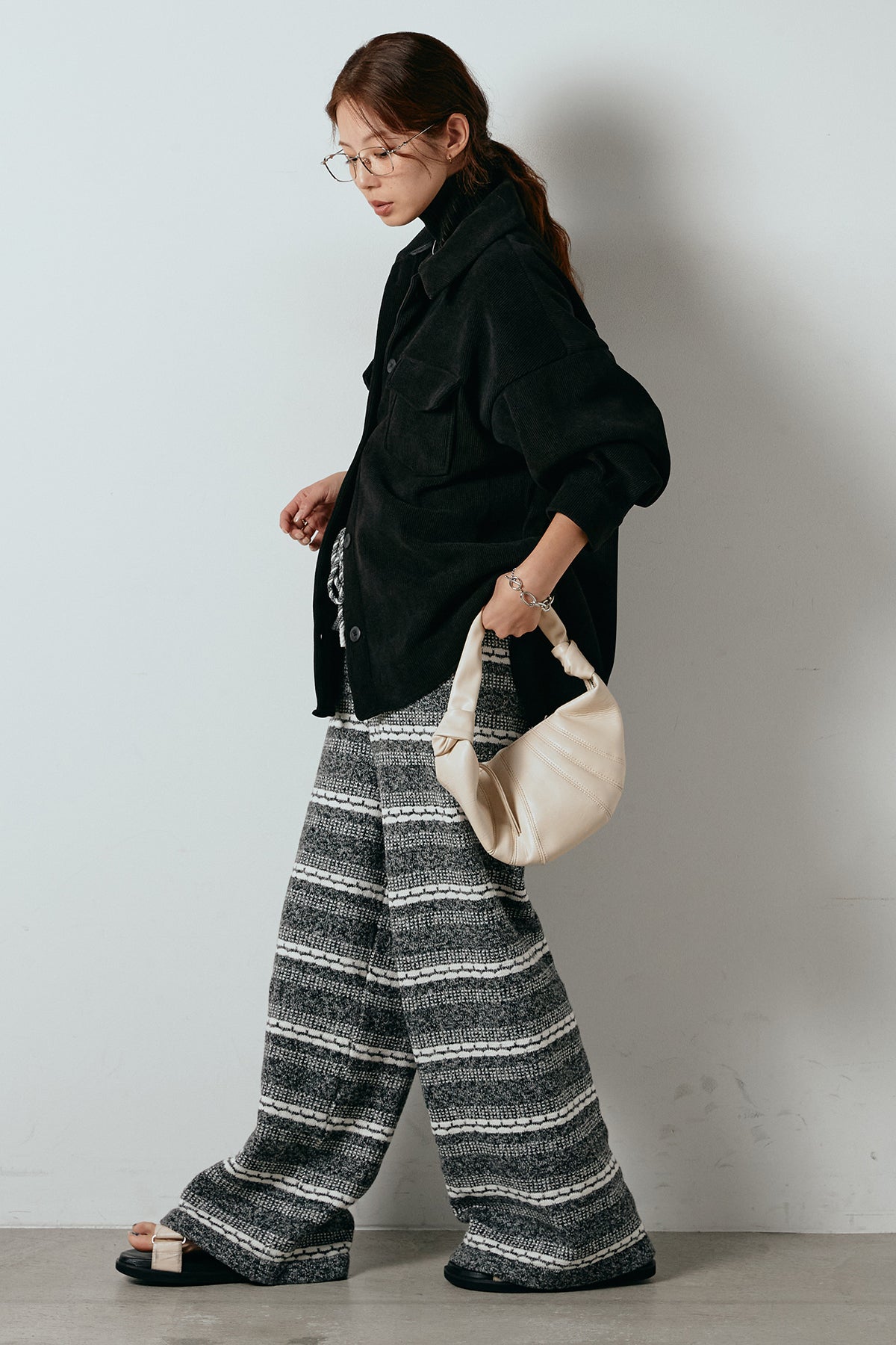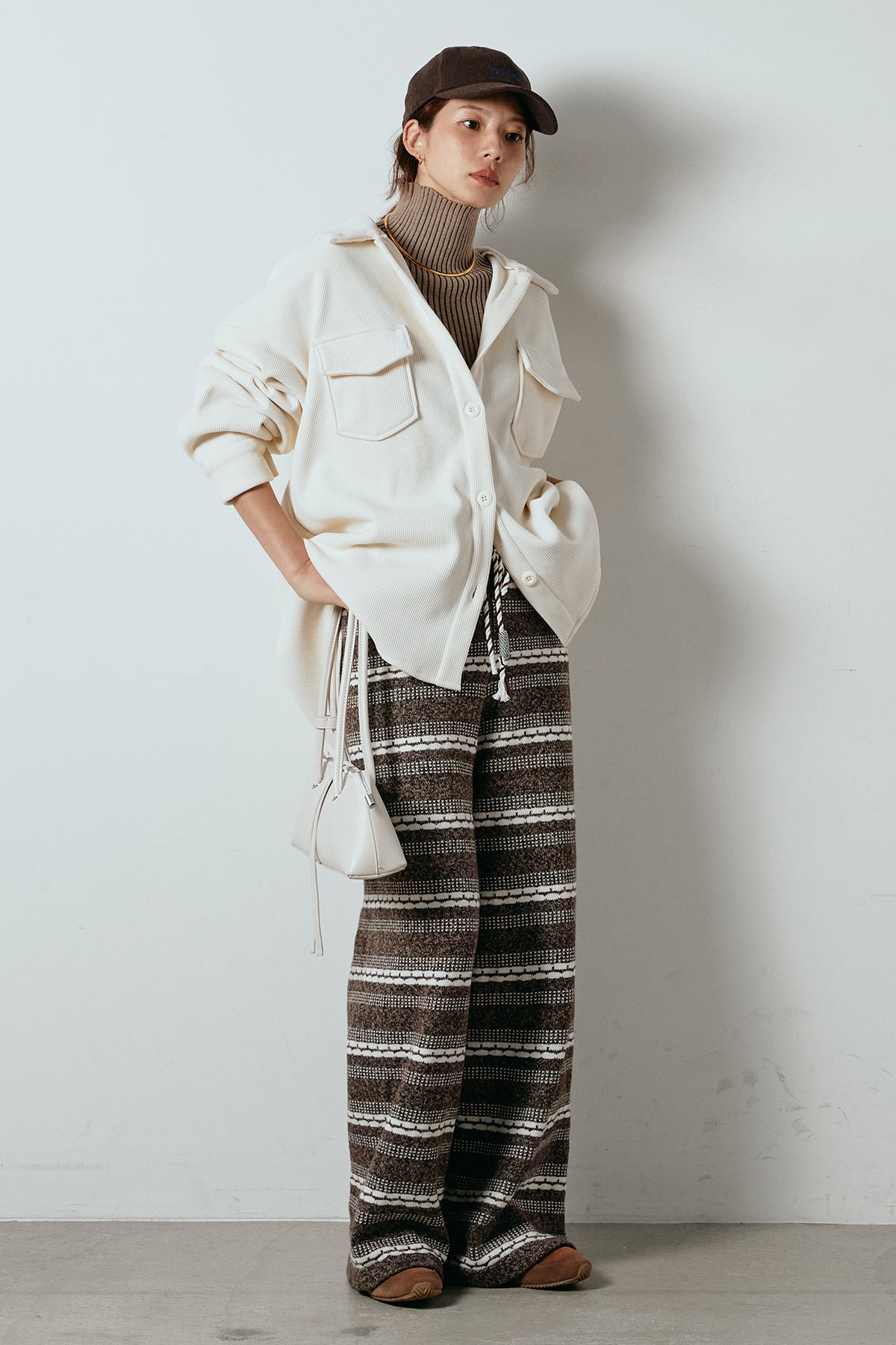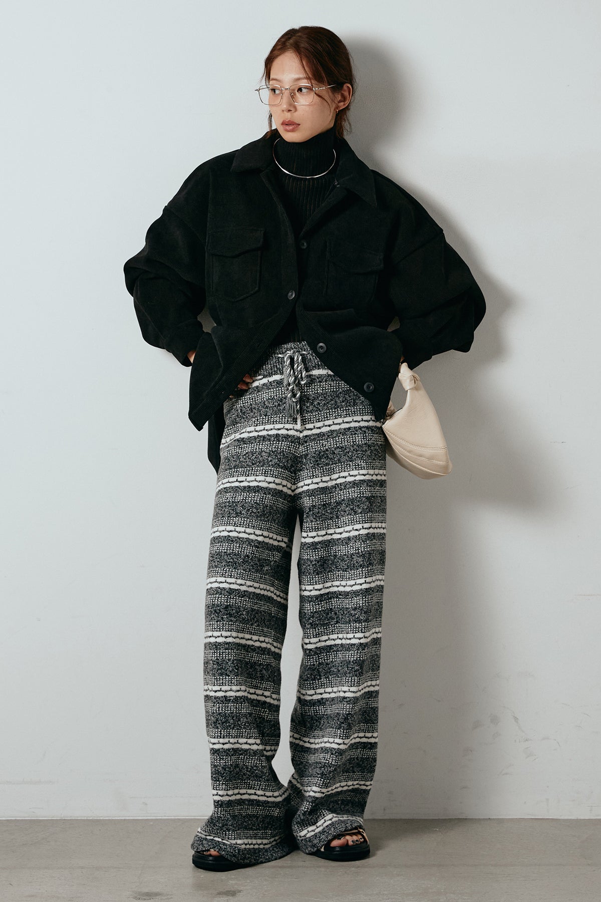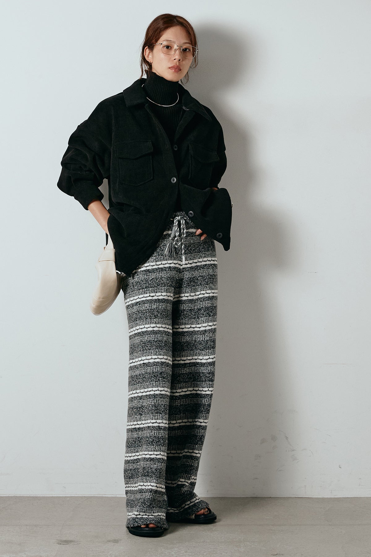 マルチライン柄がアクセントになったリラックスニットパンツ。