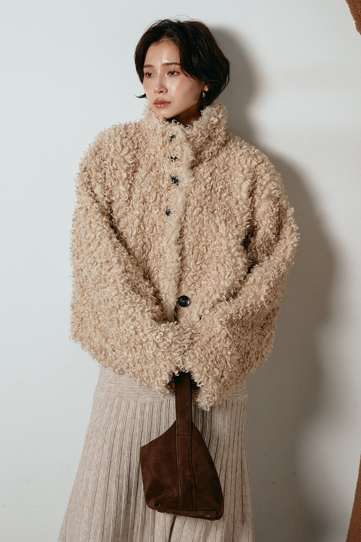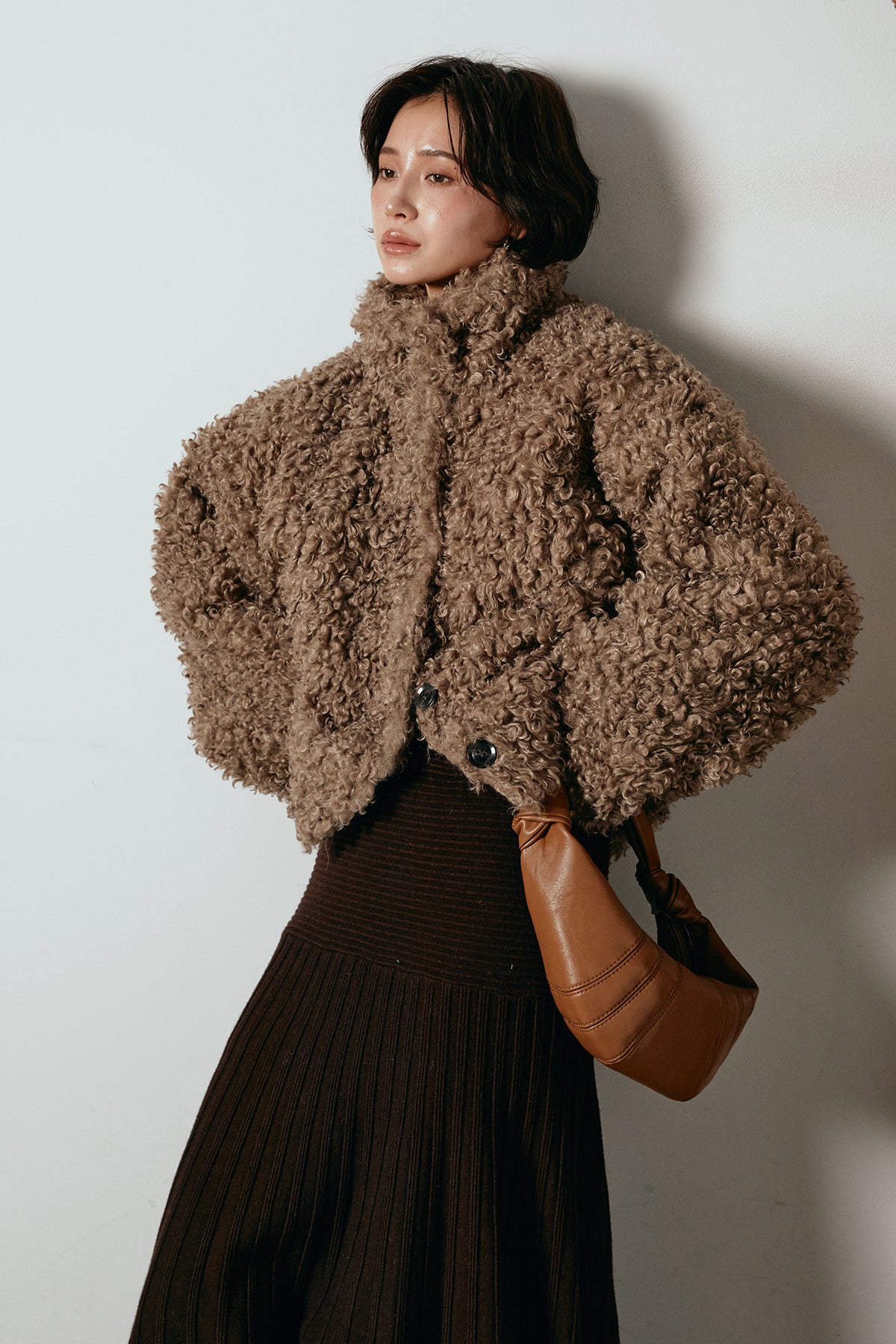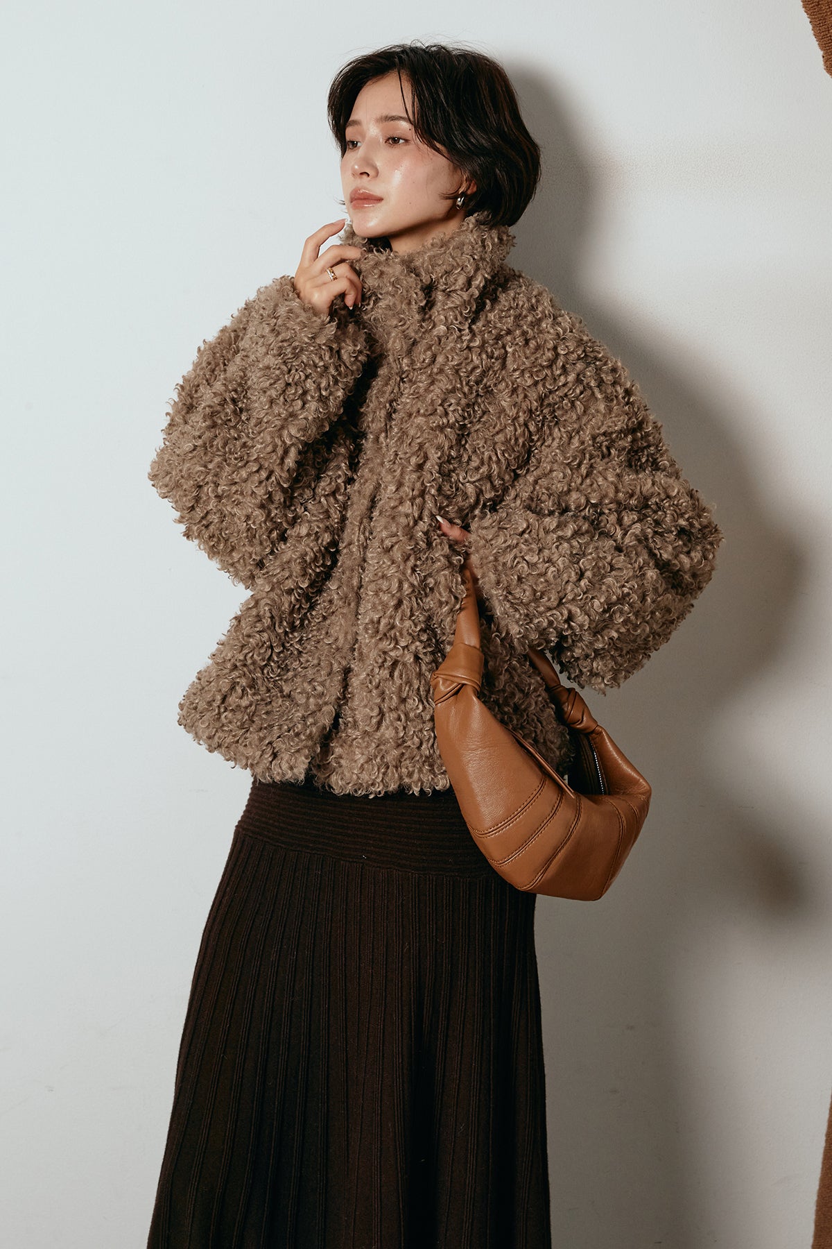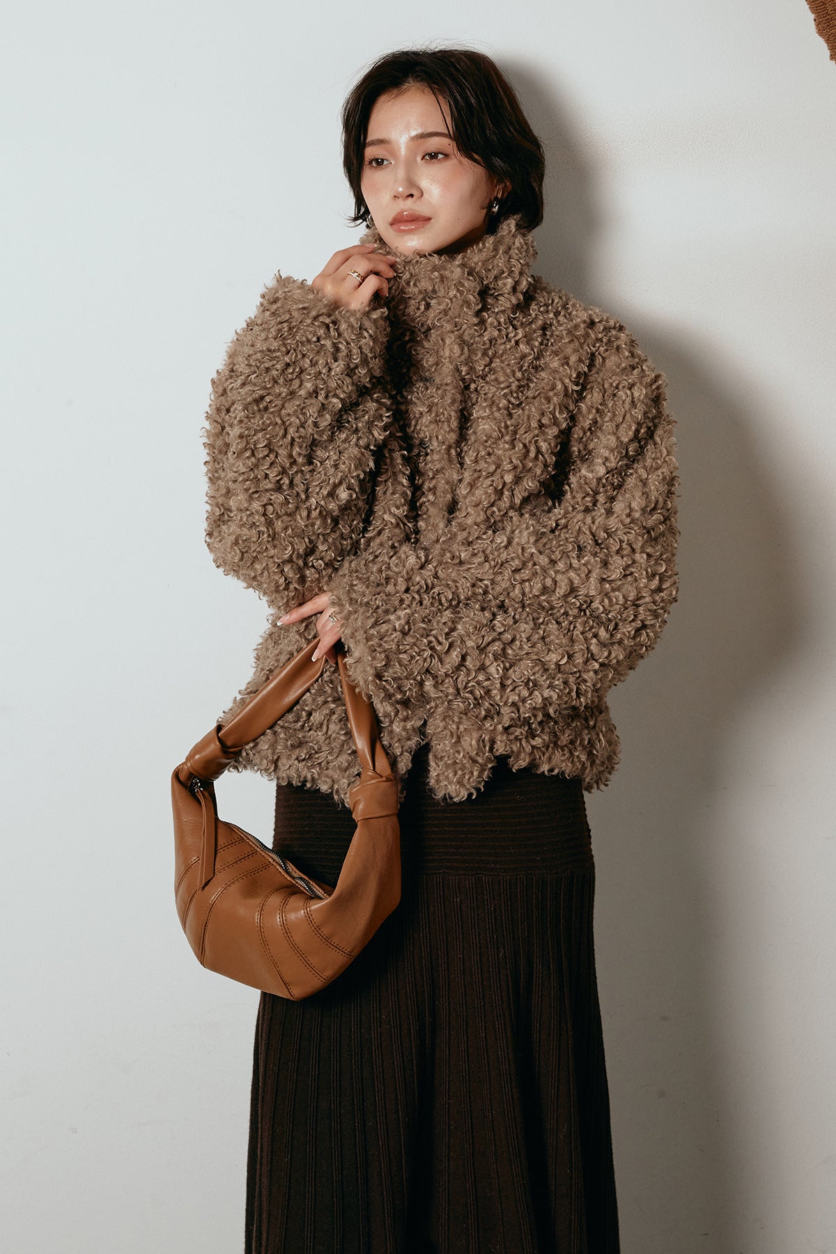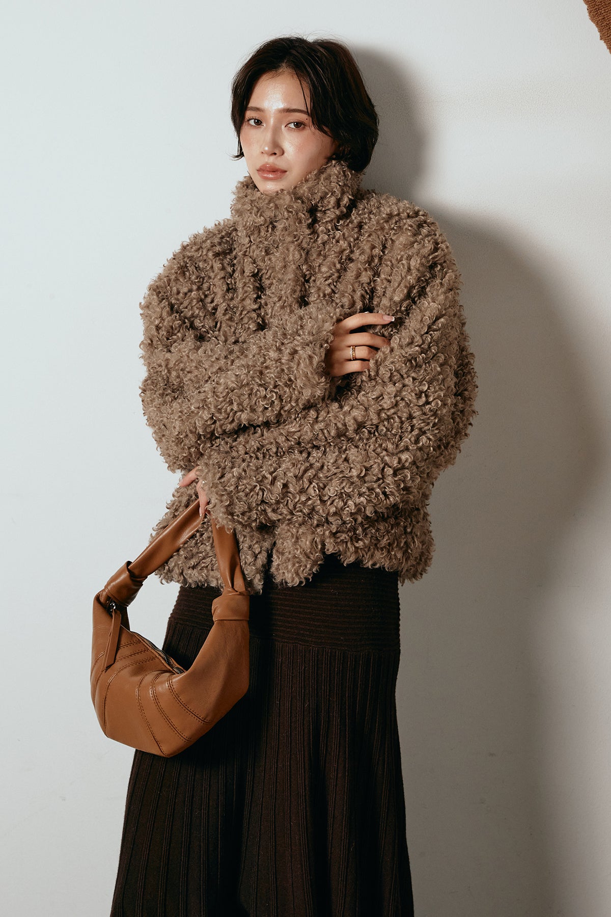 軽やかで柔らかな着心地ながら、存在感のある質感が冬の装いに温もりを添えます。