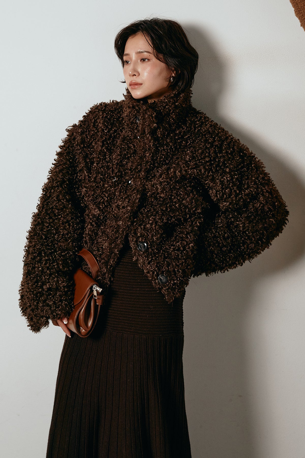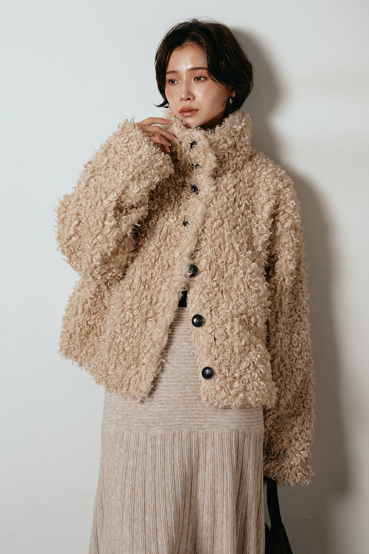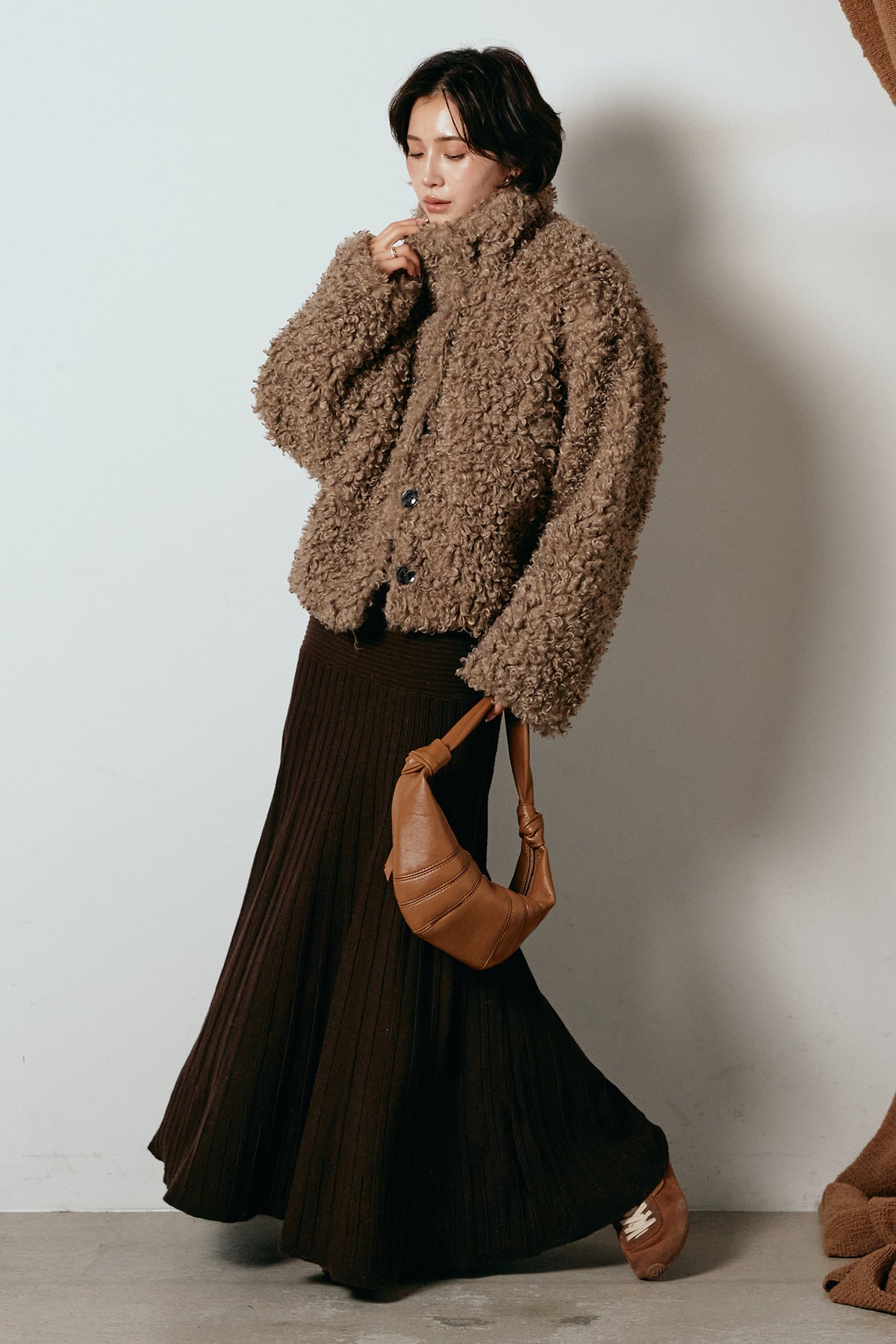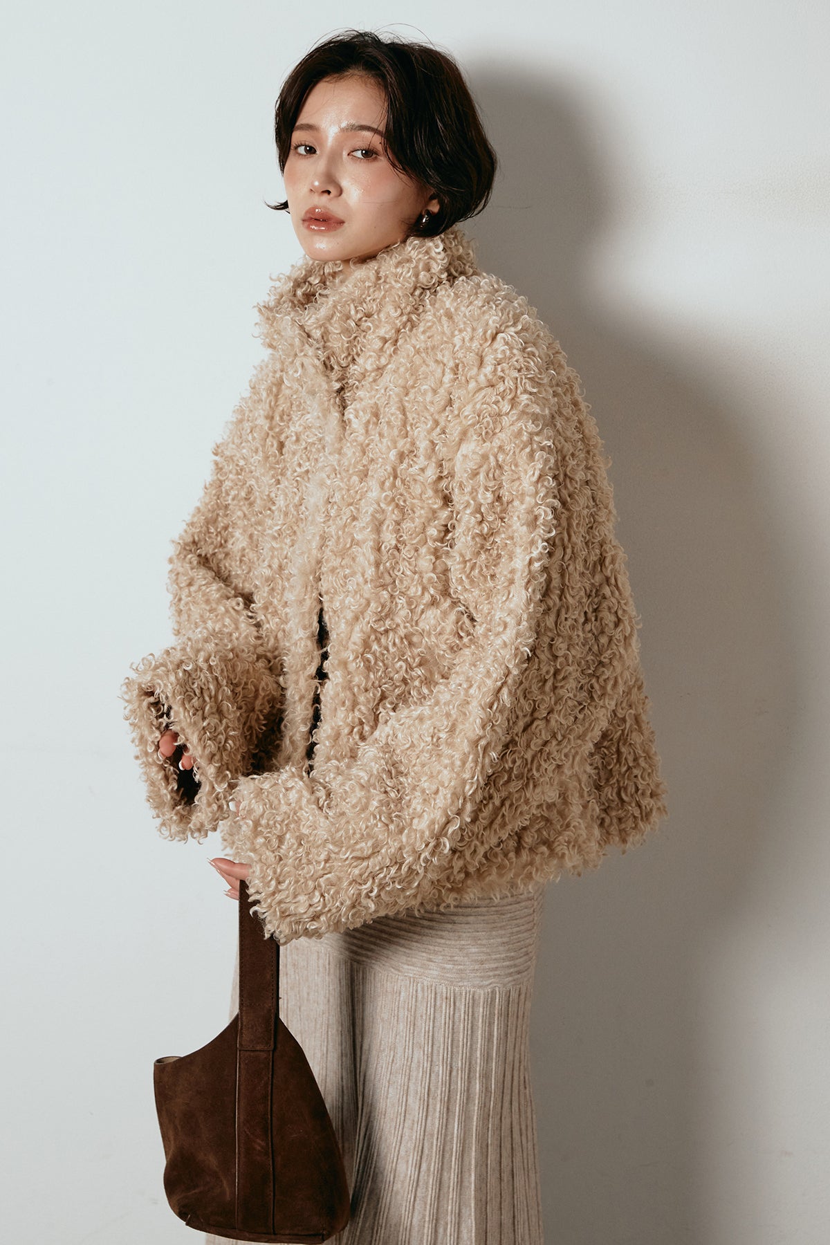 軽やかで柔らかな着心地ながら、存在感のある質感が冬の装いに温もりを添えます。