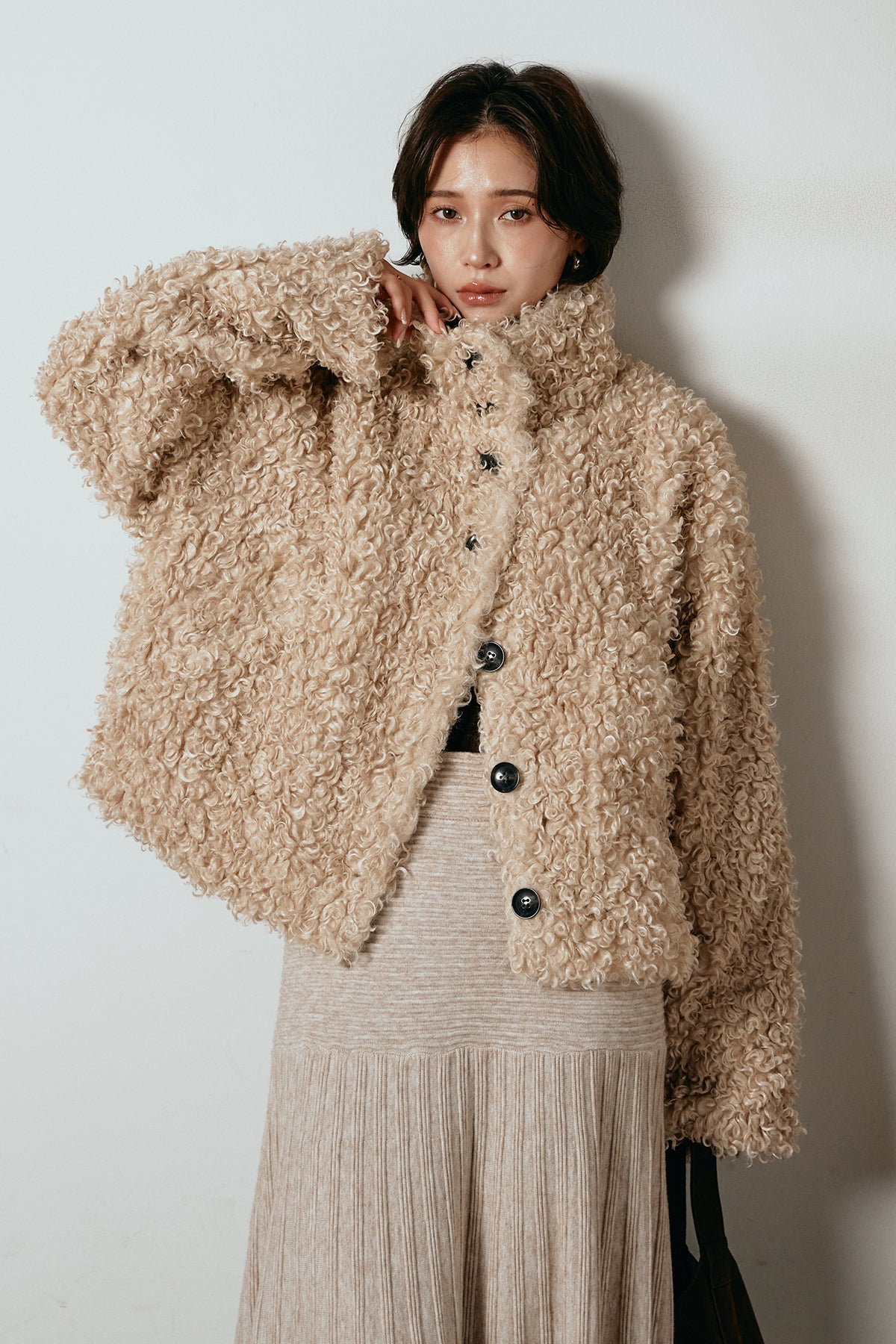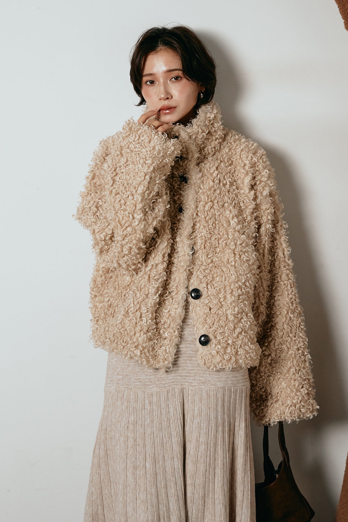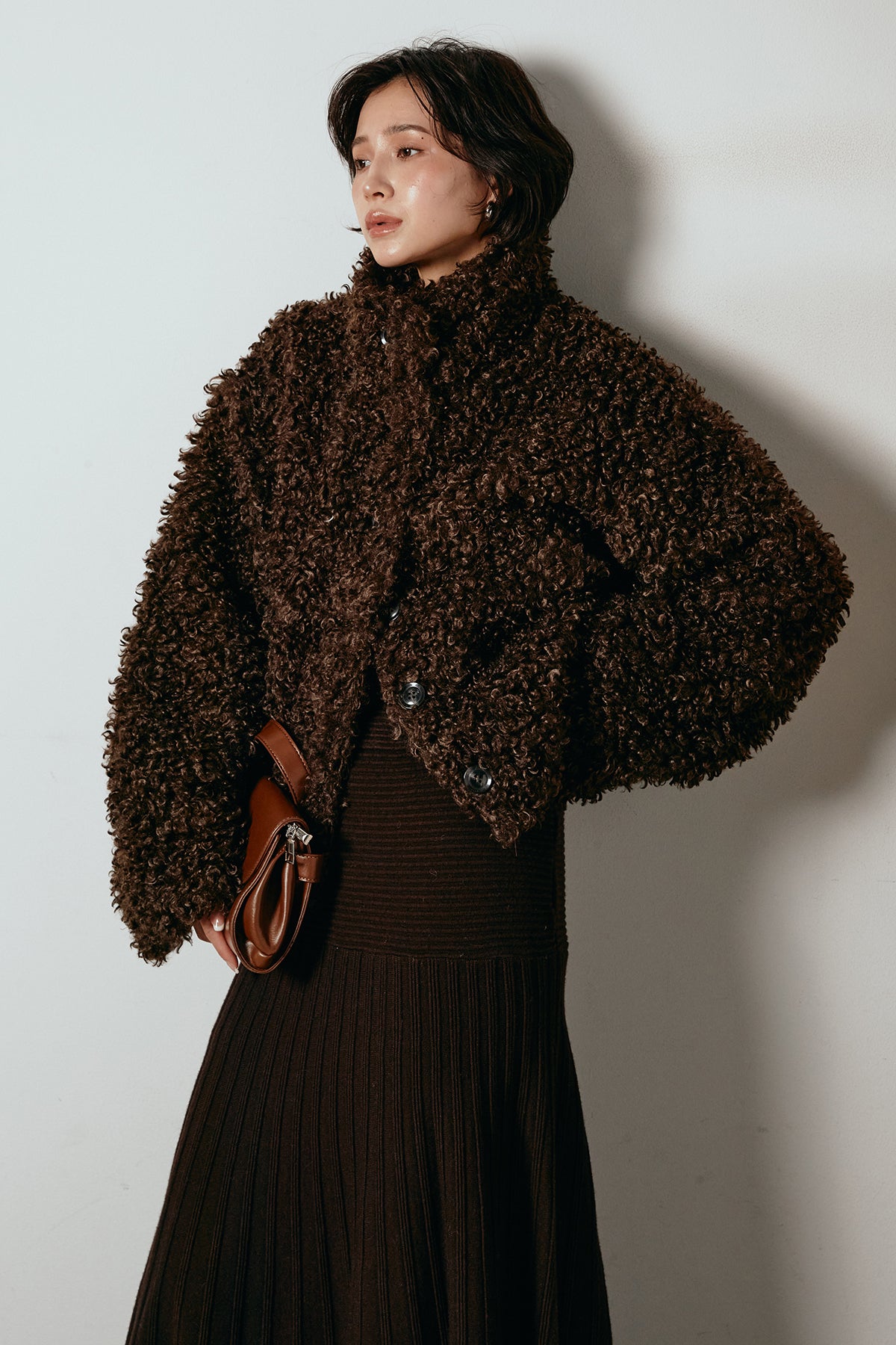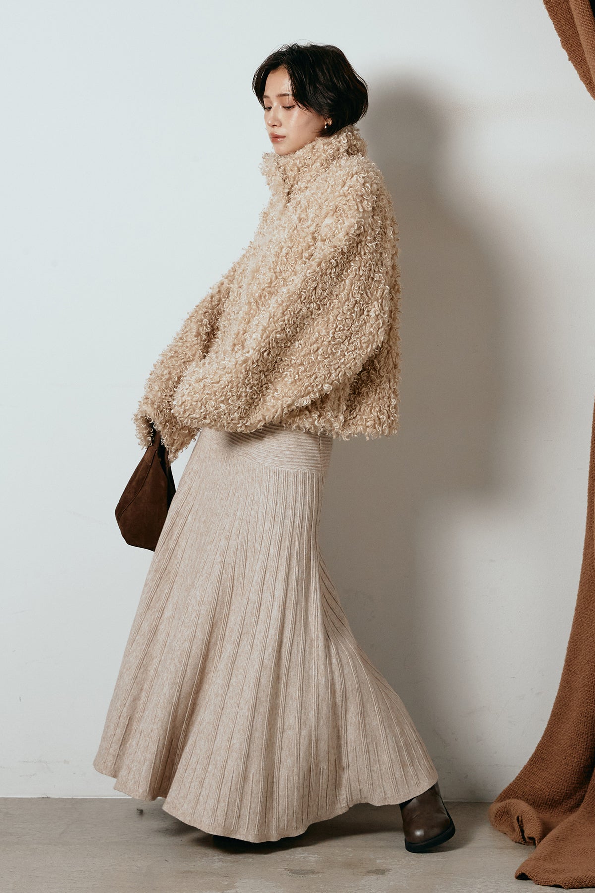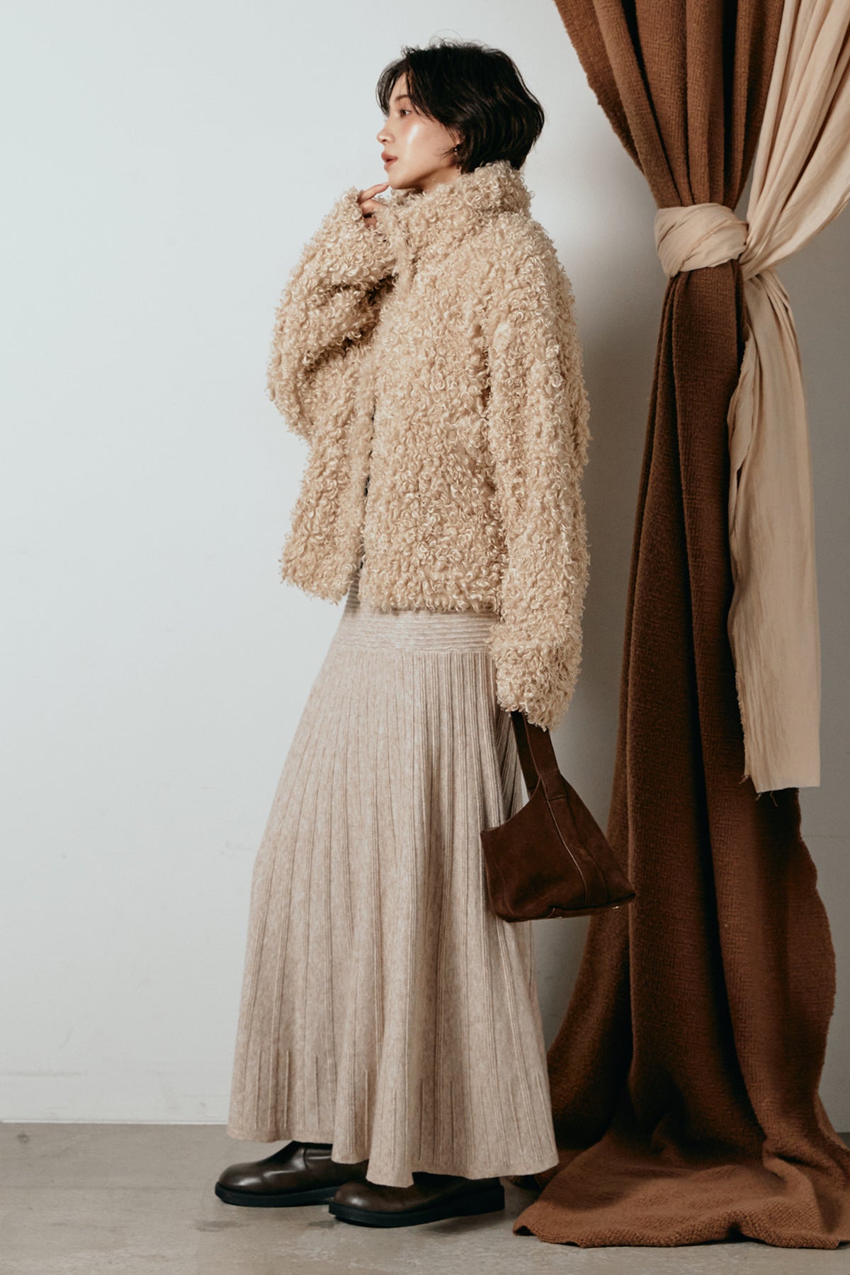 軽やかで柔らかな着心地ながら、存在感のある質感が冬の装いに温もりを添えます。