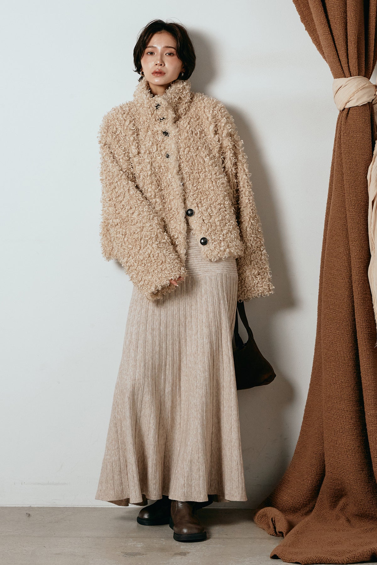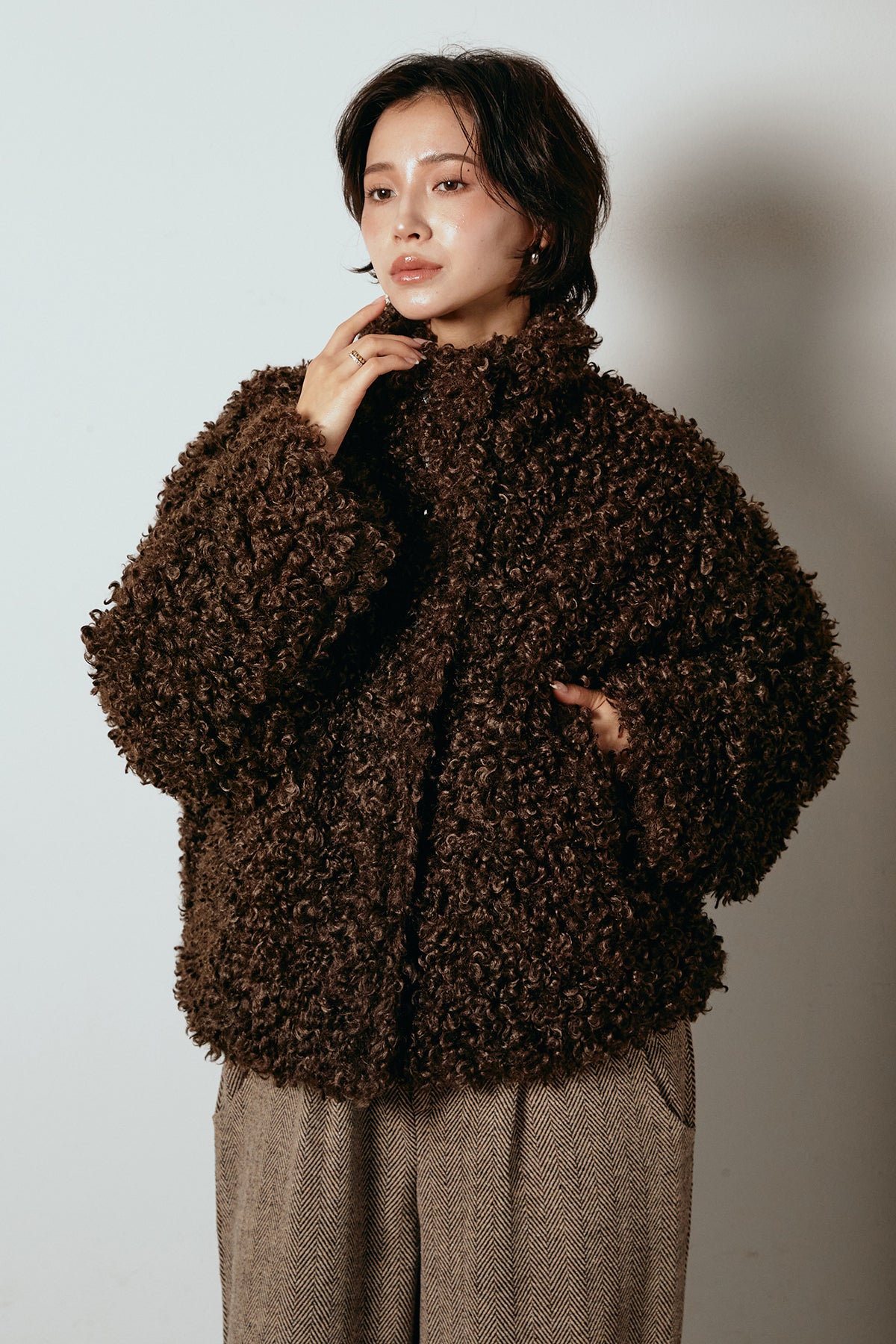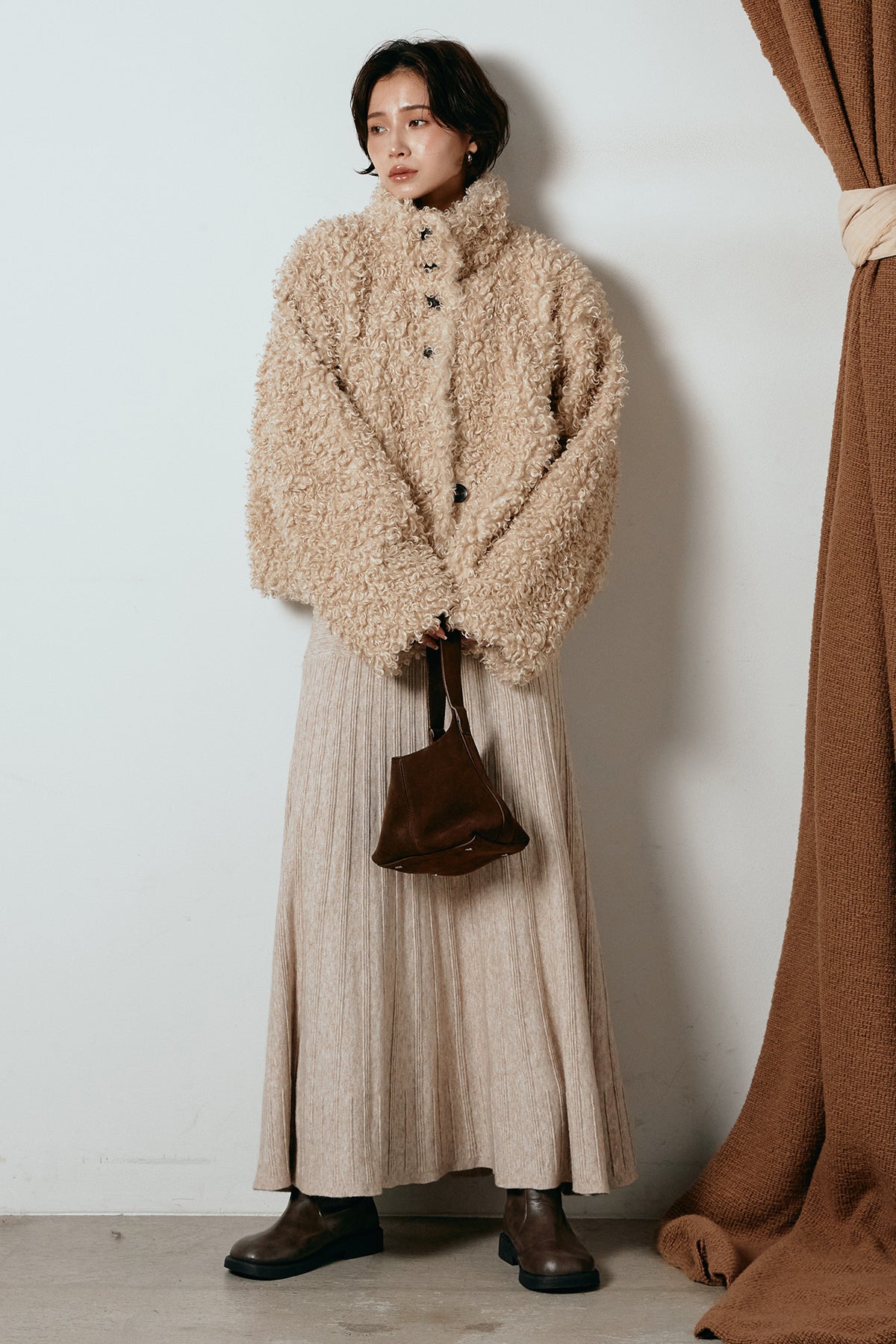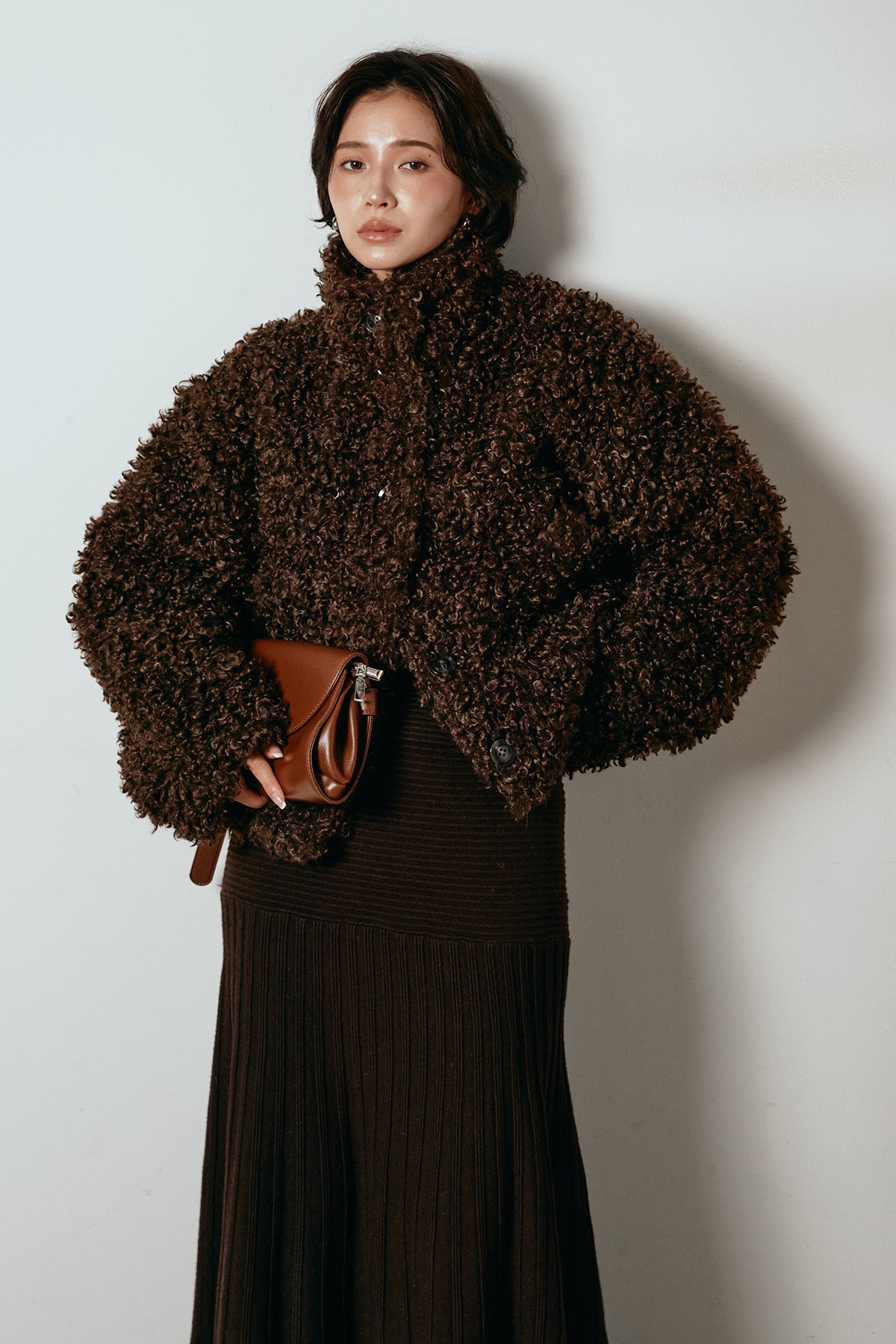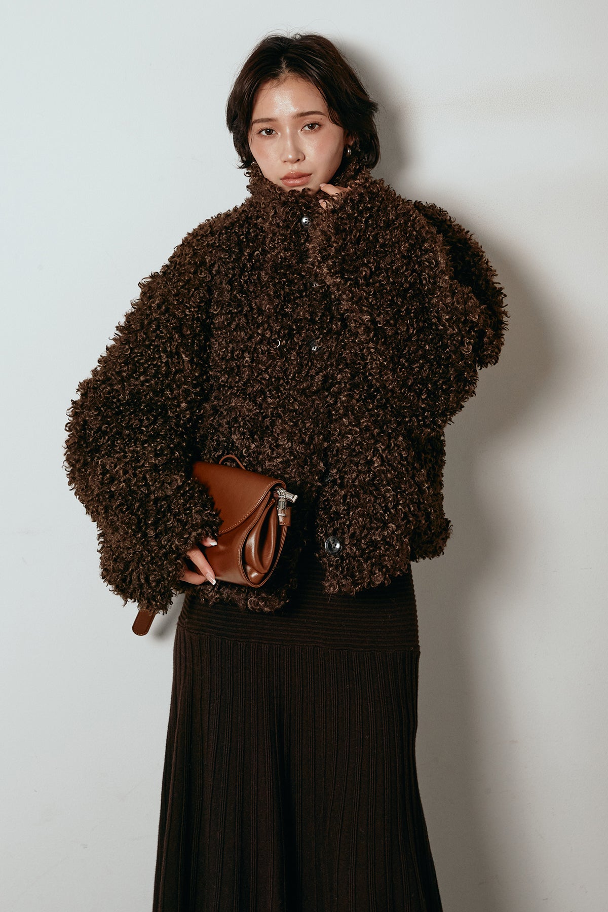 軽やかで柔らかな着心地ながら、存在感のある質感が冬の装いに温もりを添えます。
