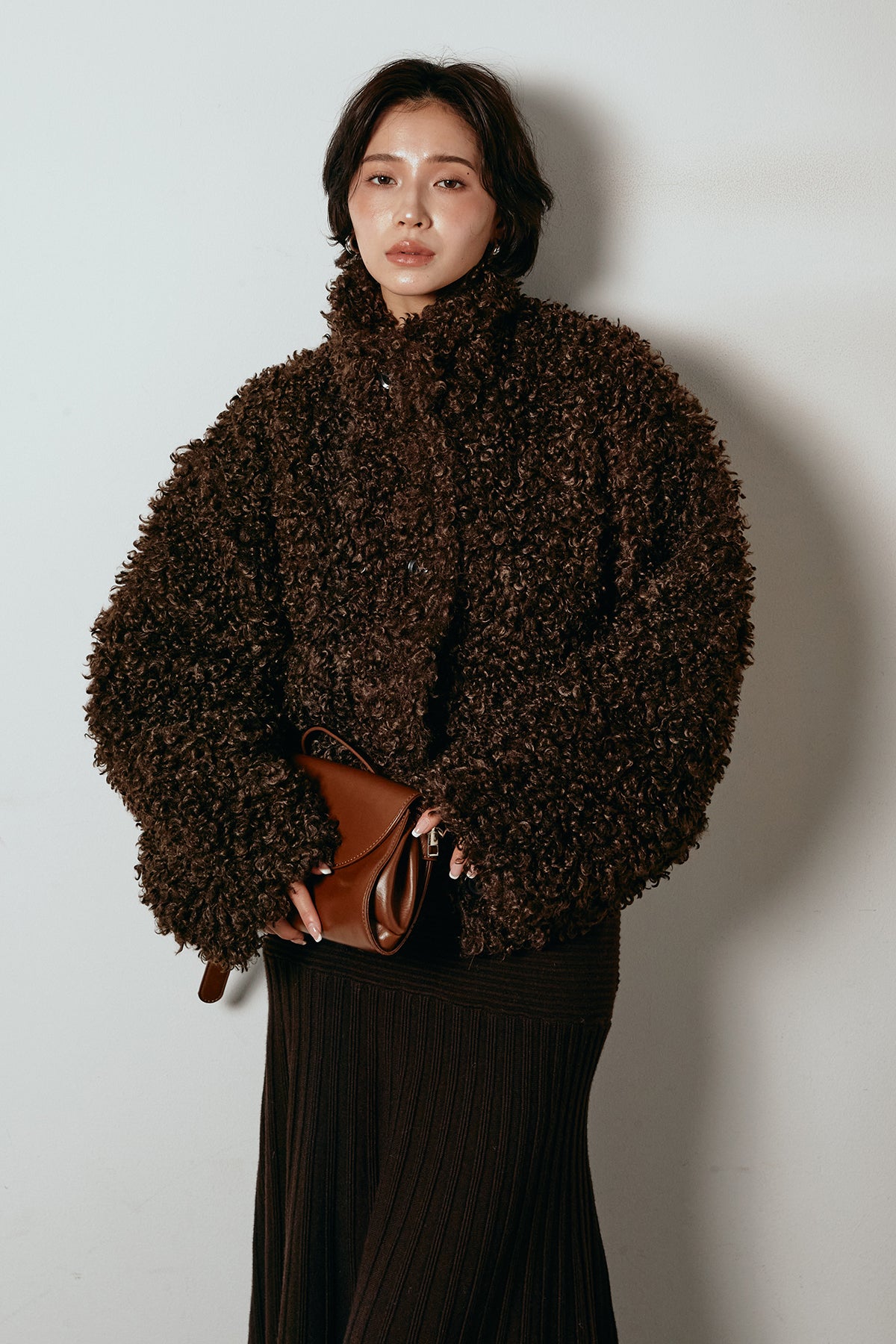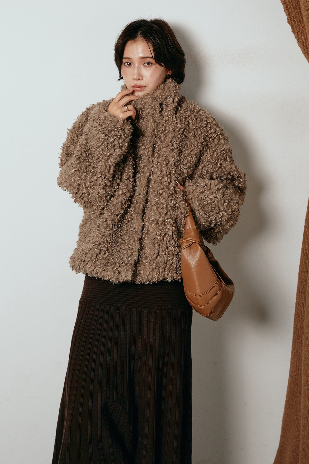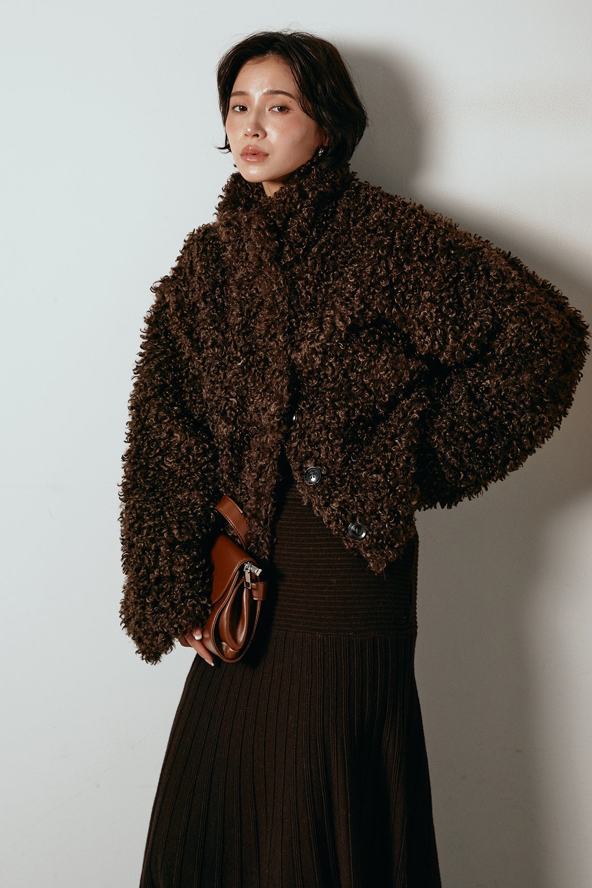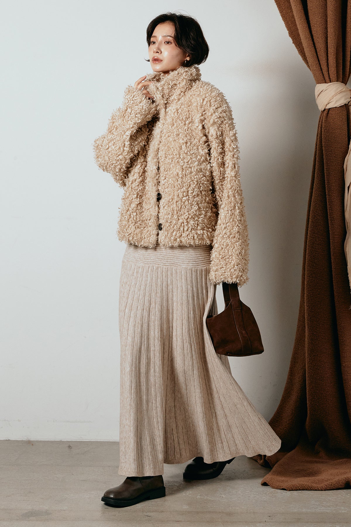 軽やかで柔らかな着心地ながら、存在感のある質感が冬の装いに温もりを添えます。
