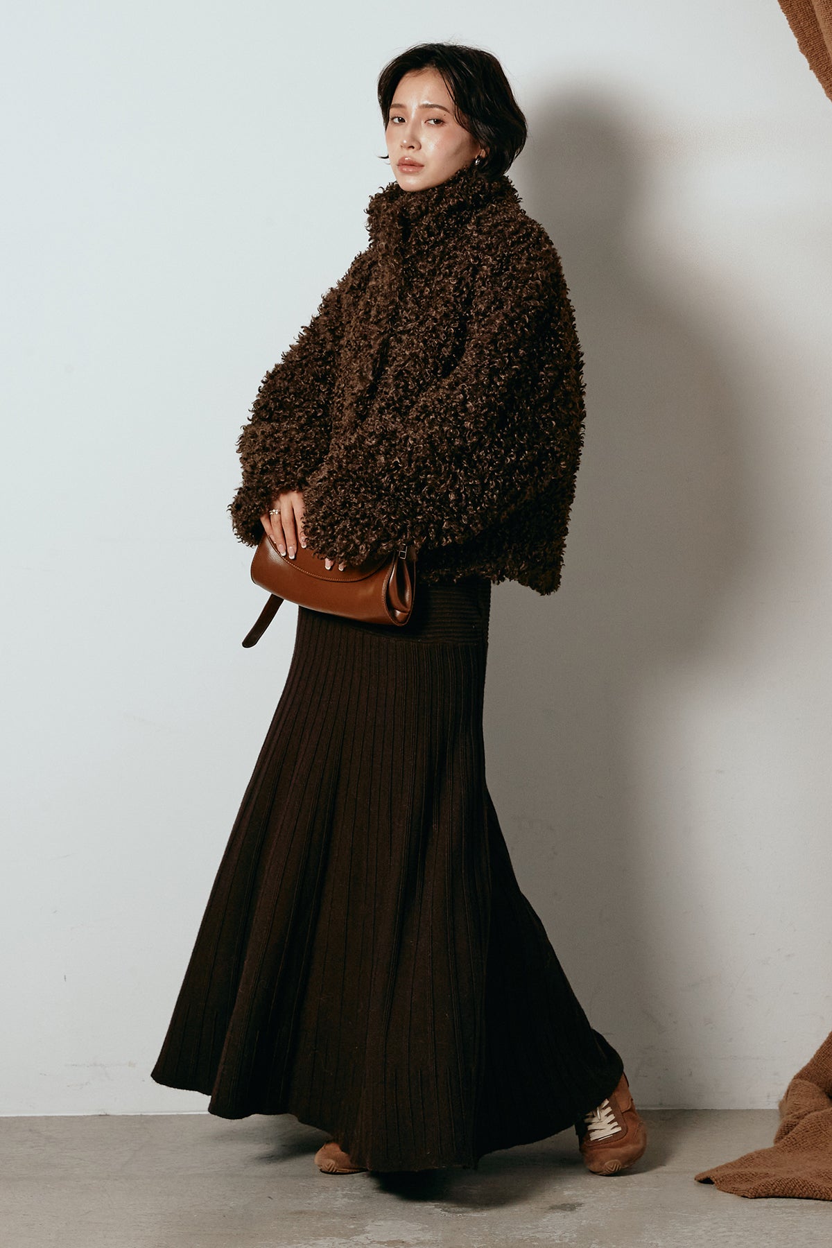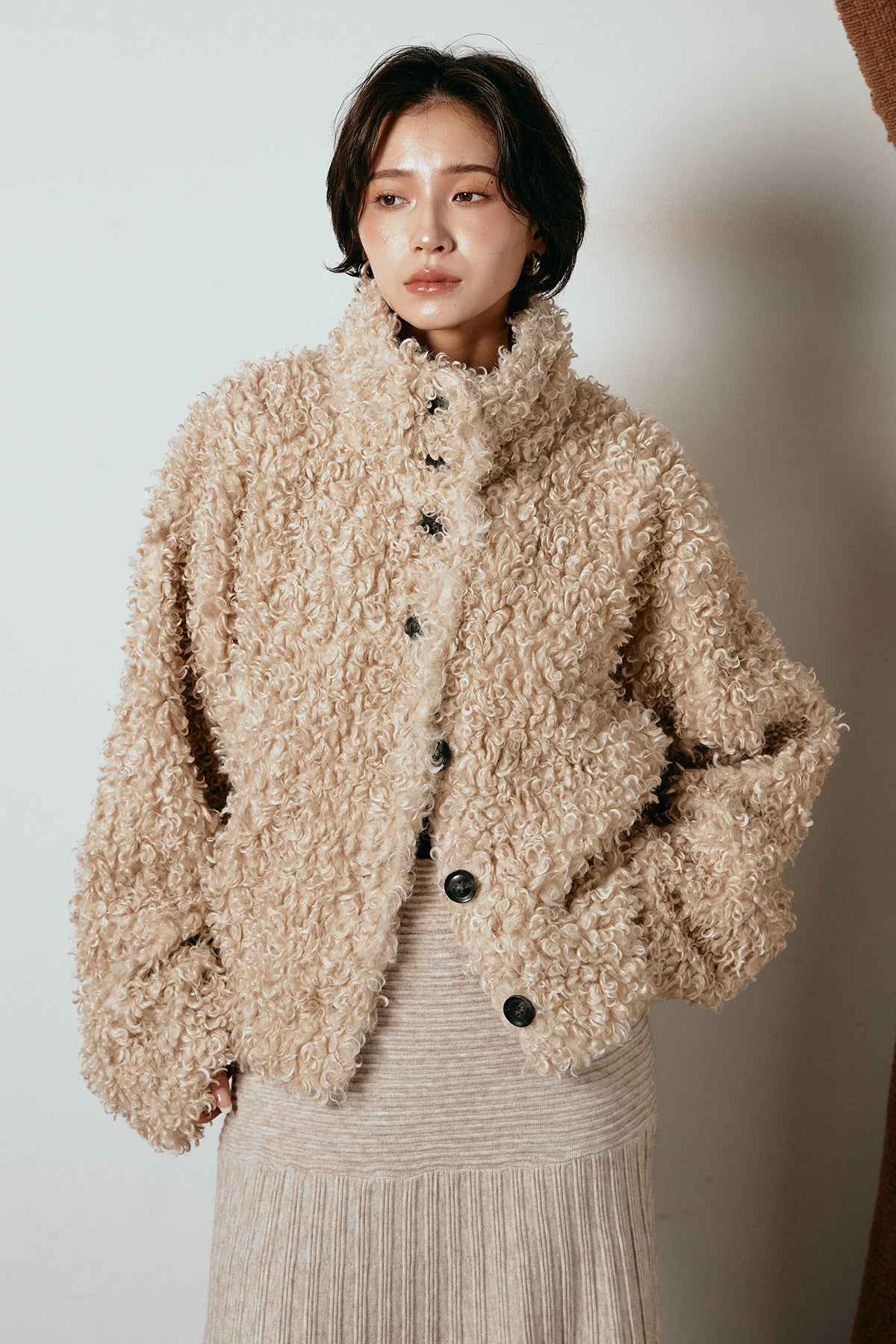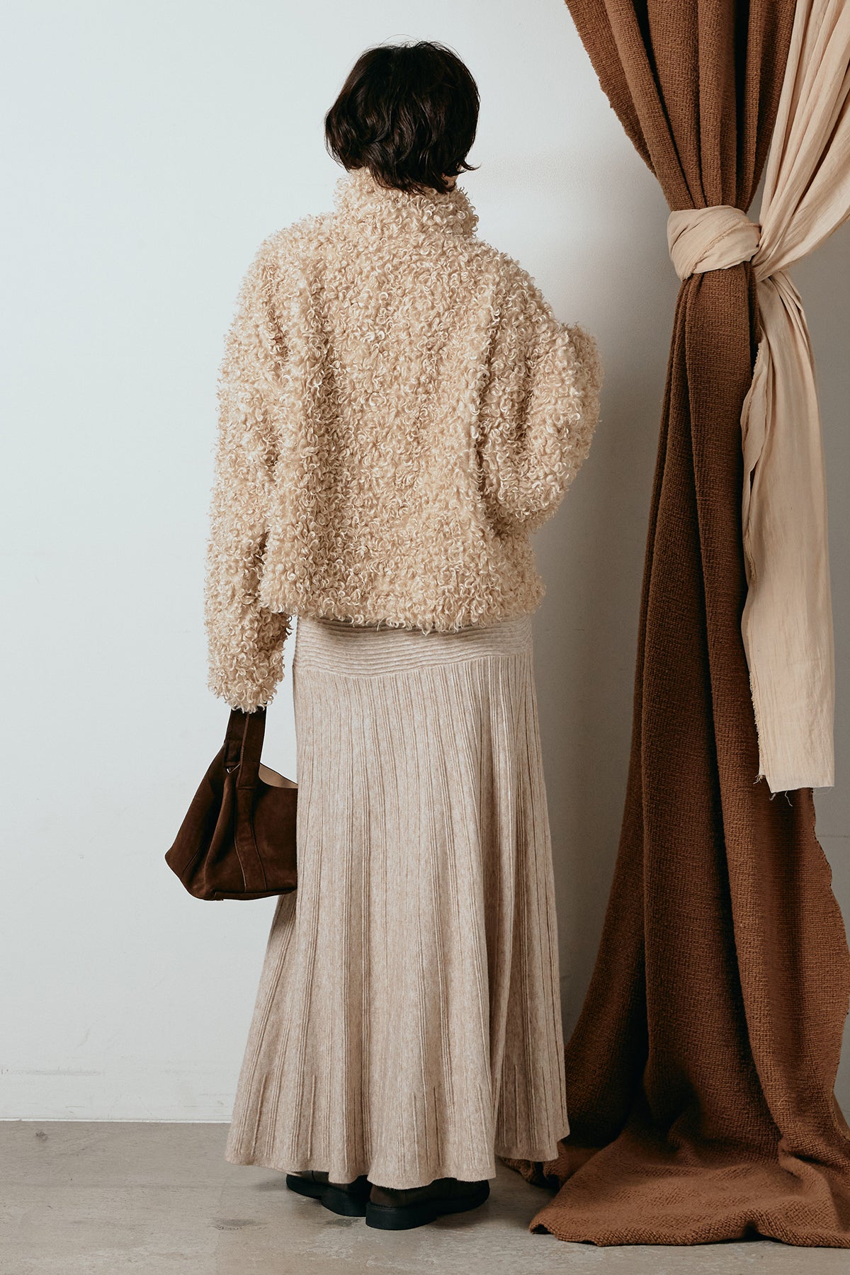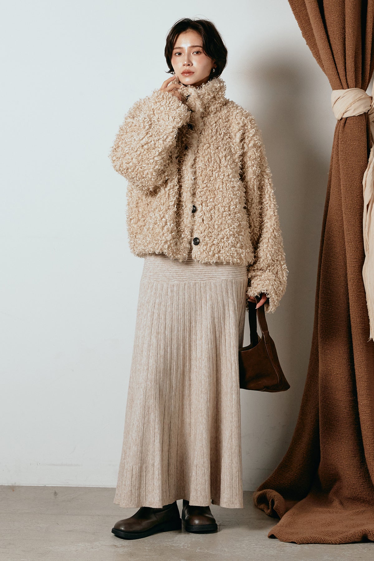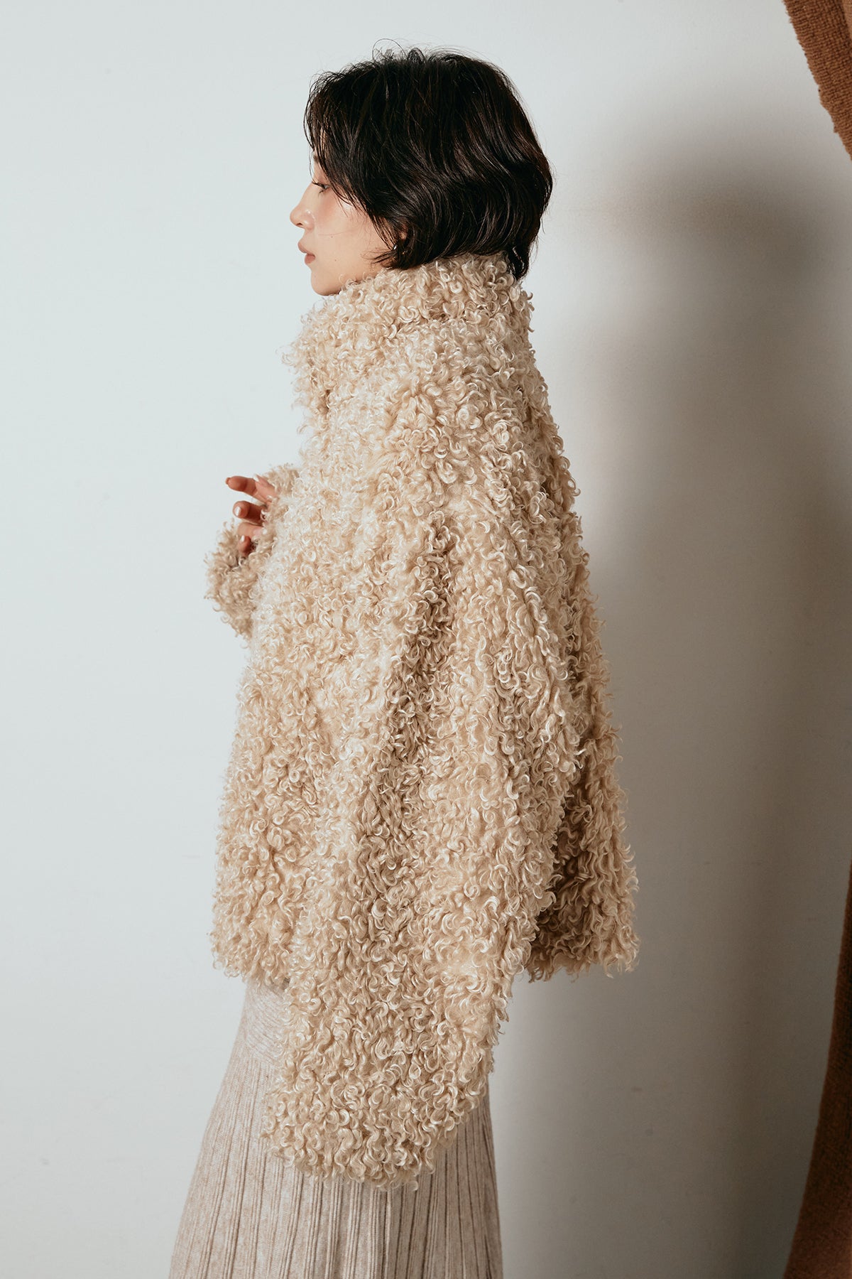 軽やかで柔らかな着心地ながら、存在感のある質感が冬の装いに温もりを添えます。