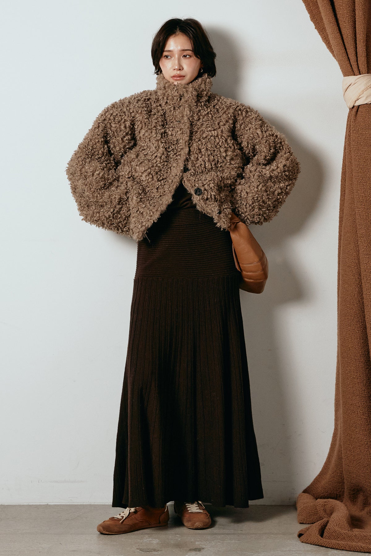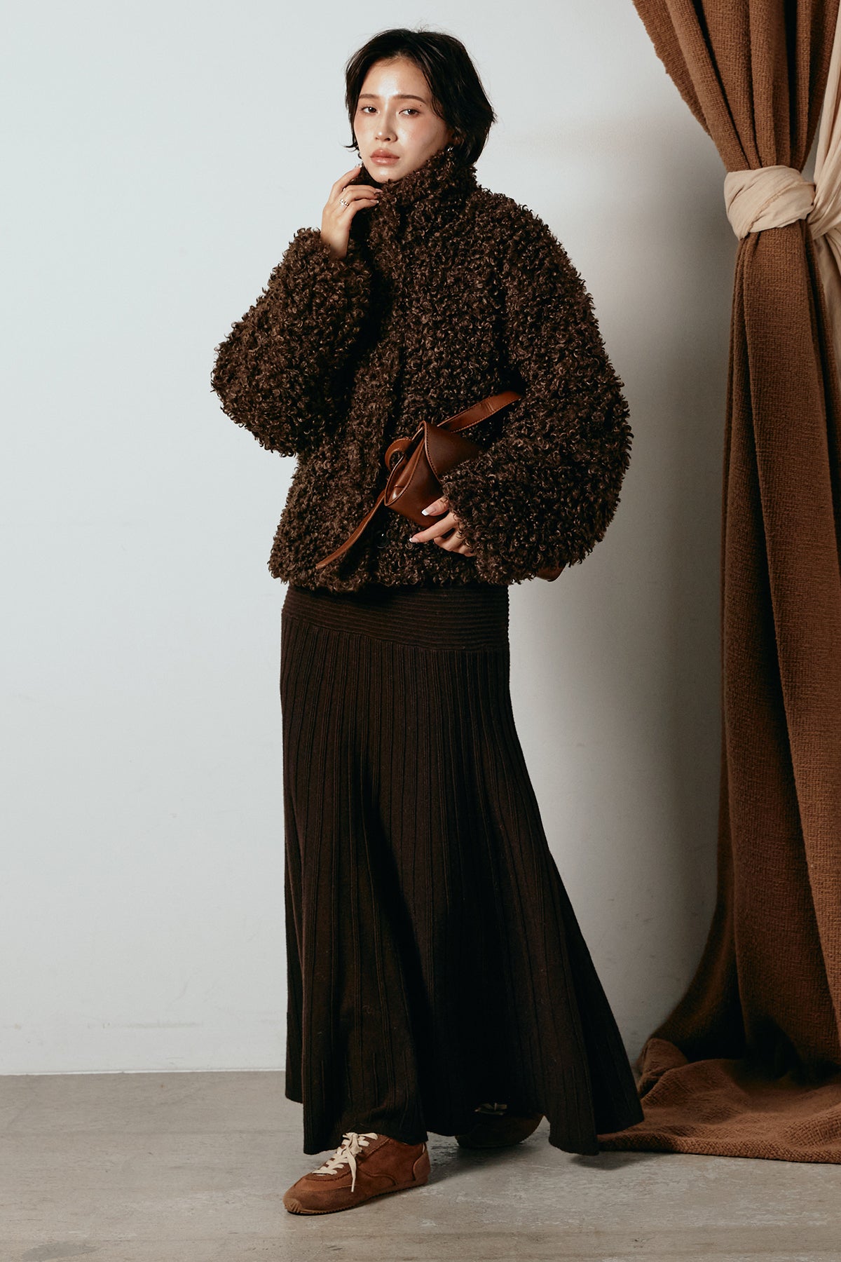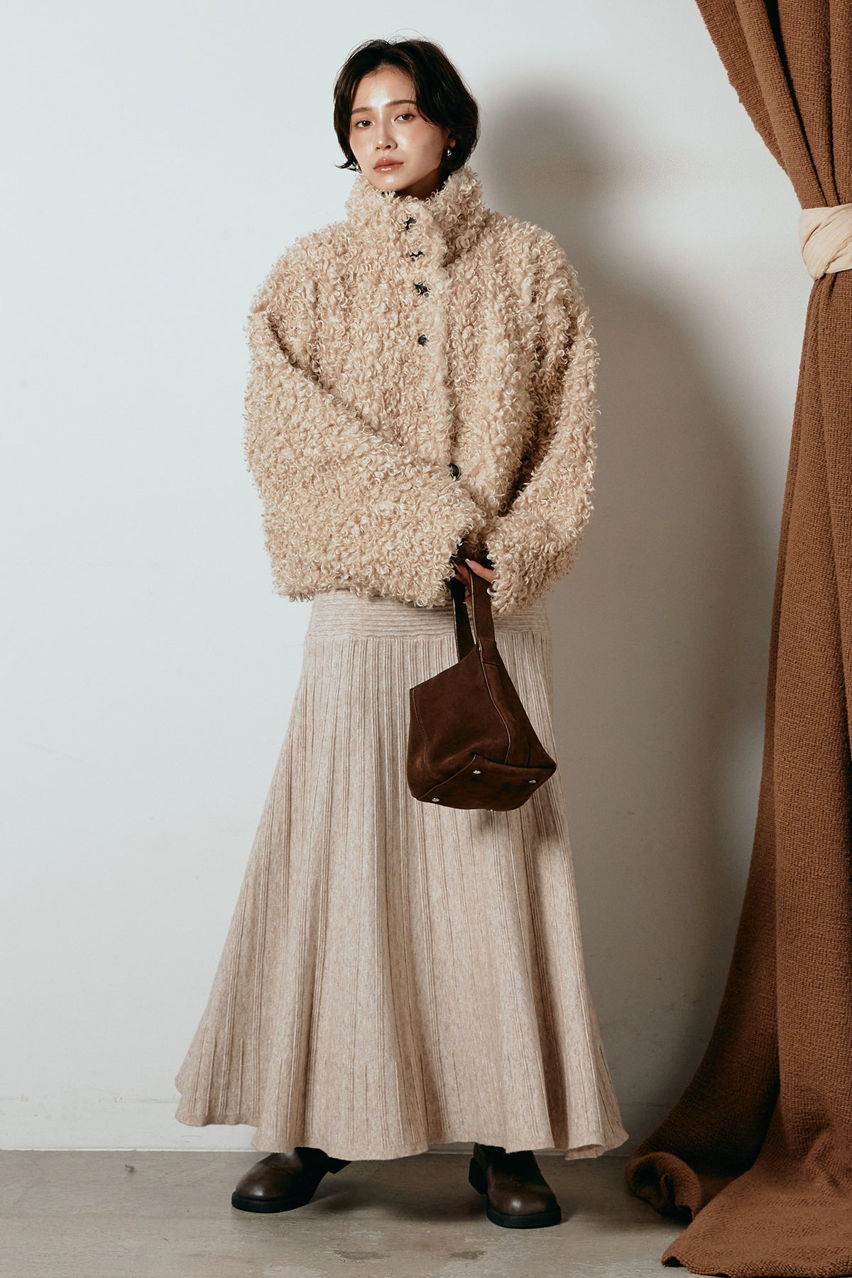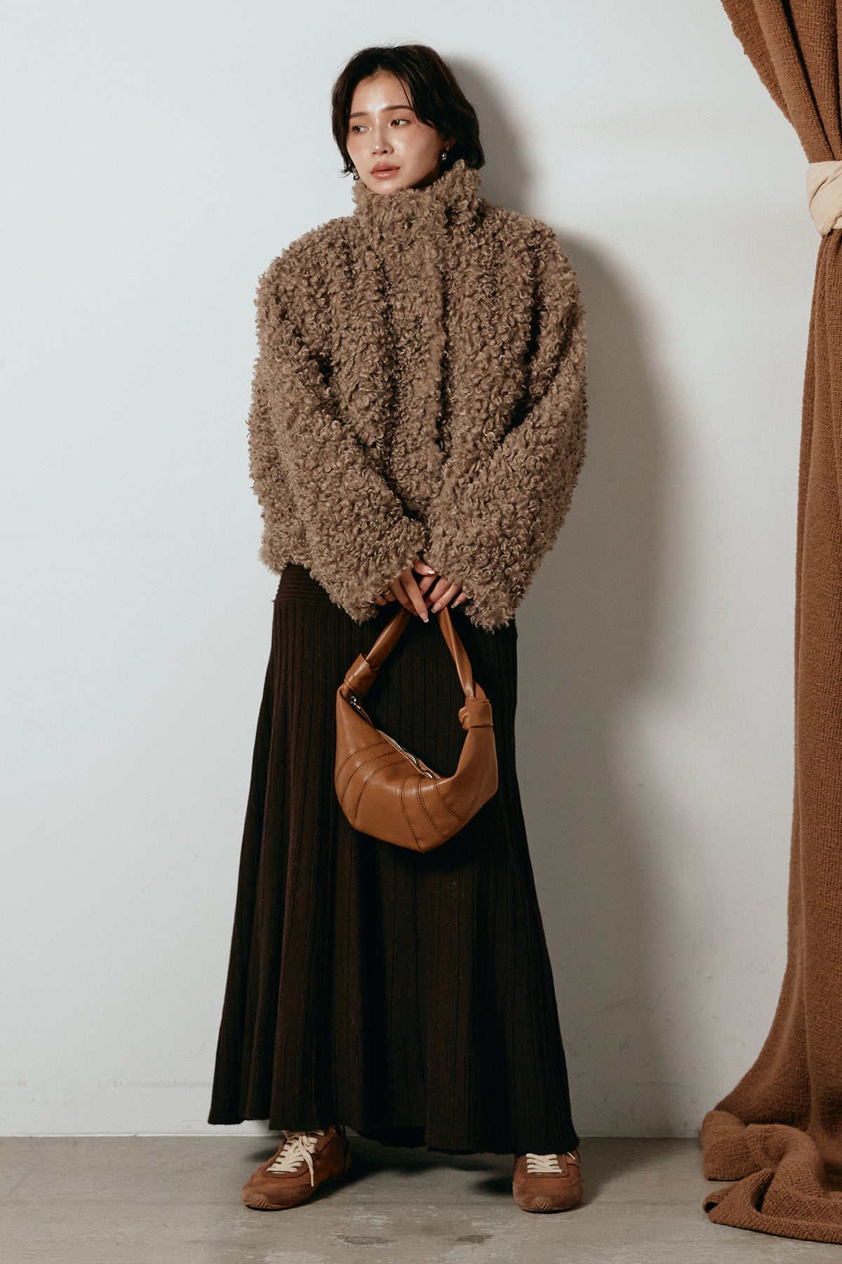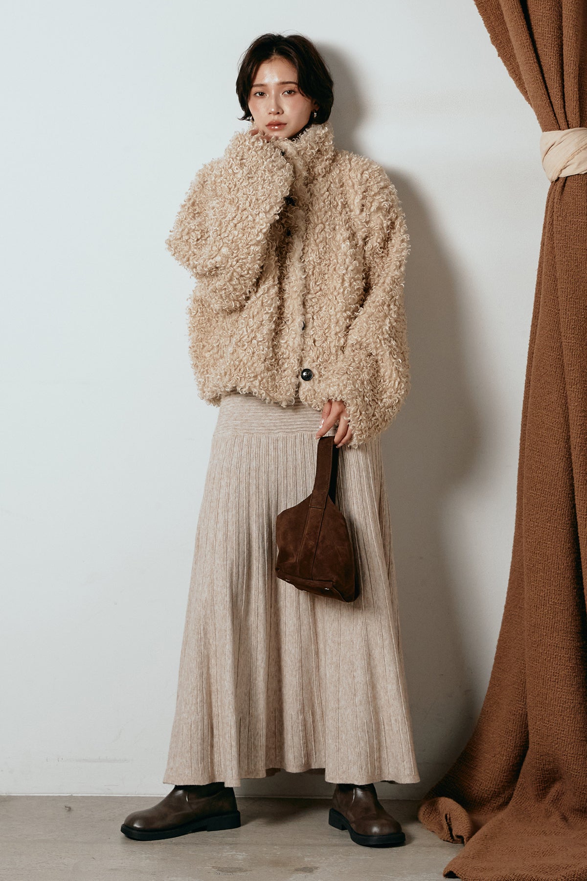 軽やかで柔らかな着心地ながら、存在感のある質感が冬の装いに温もりを添えます。