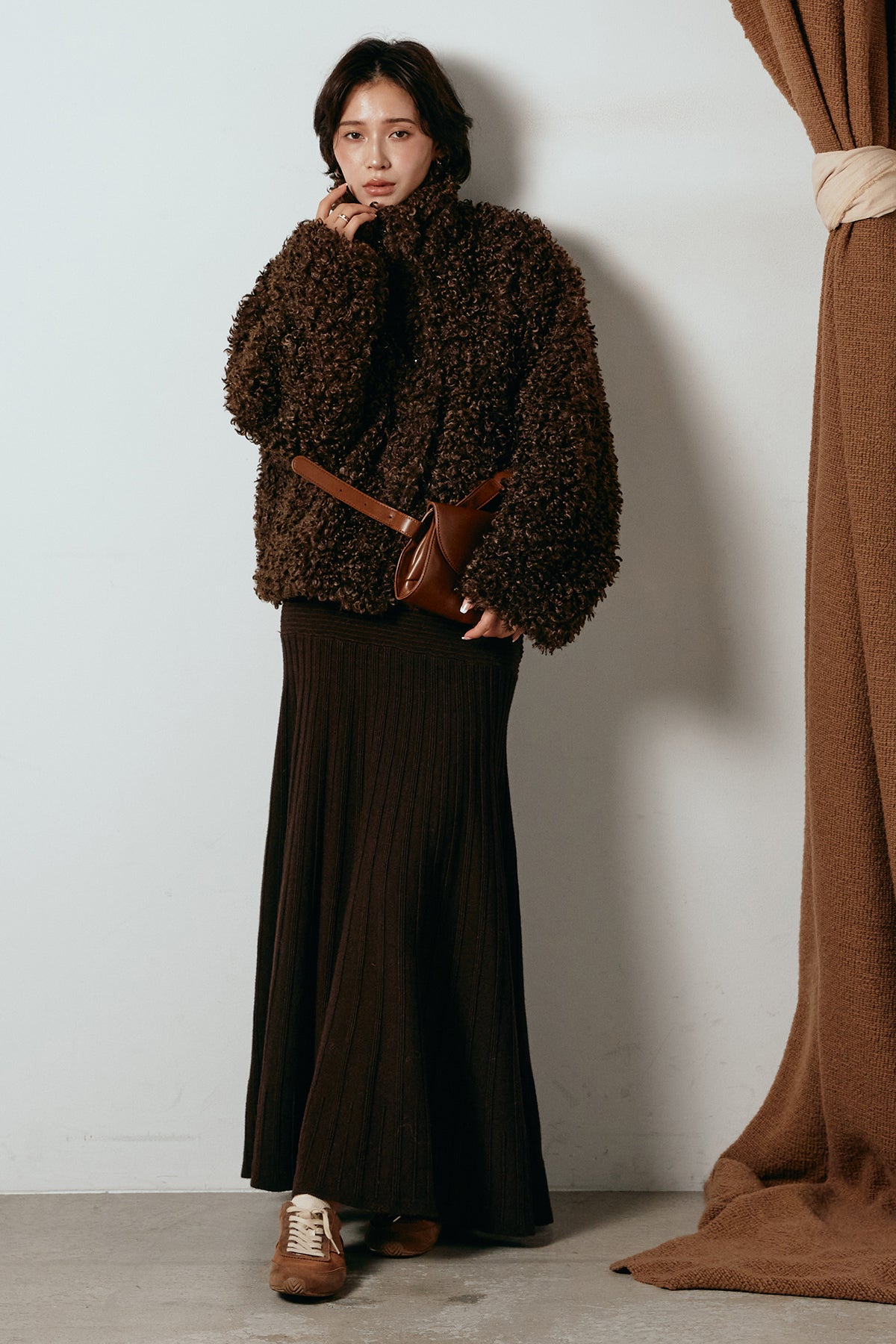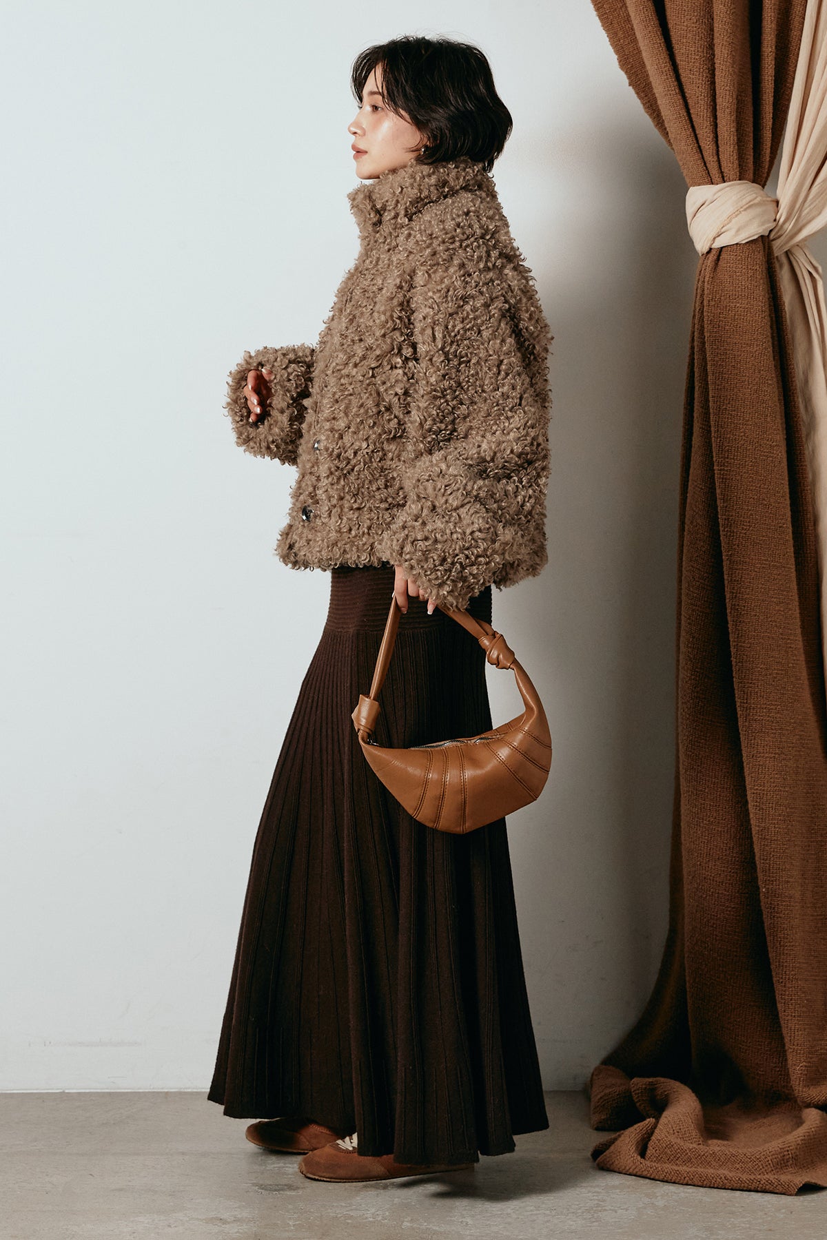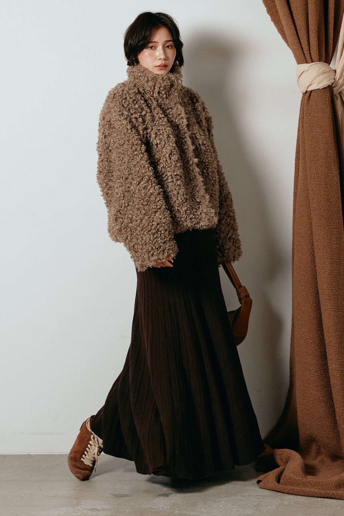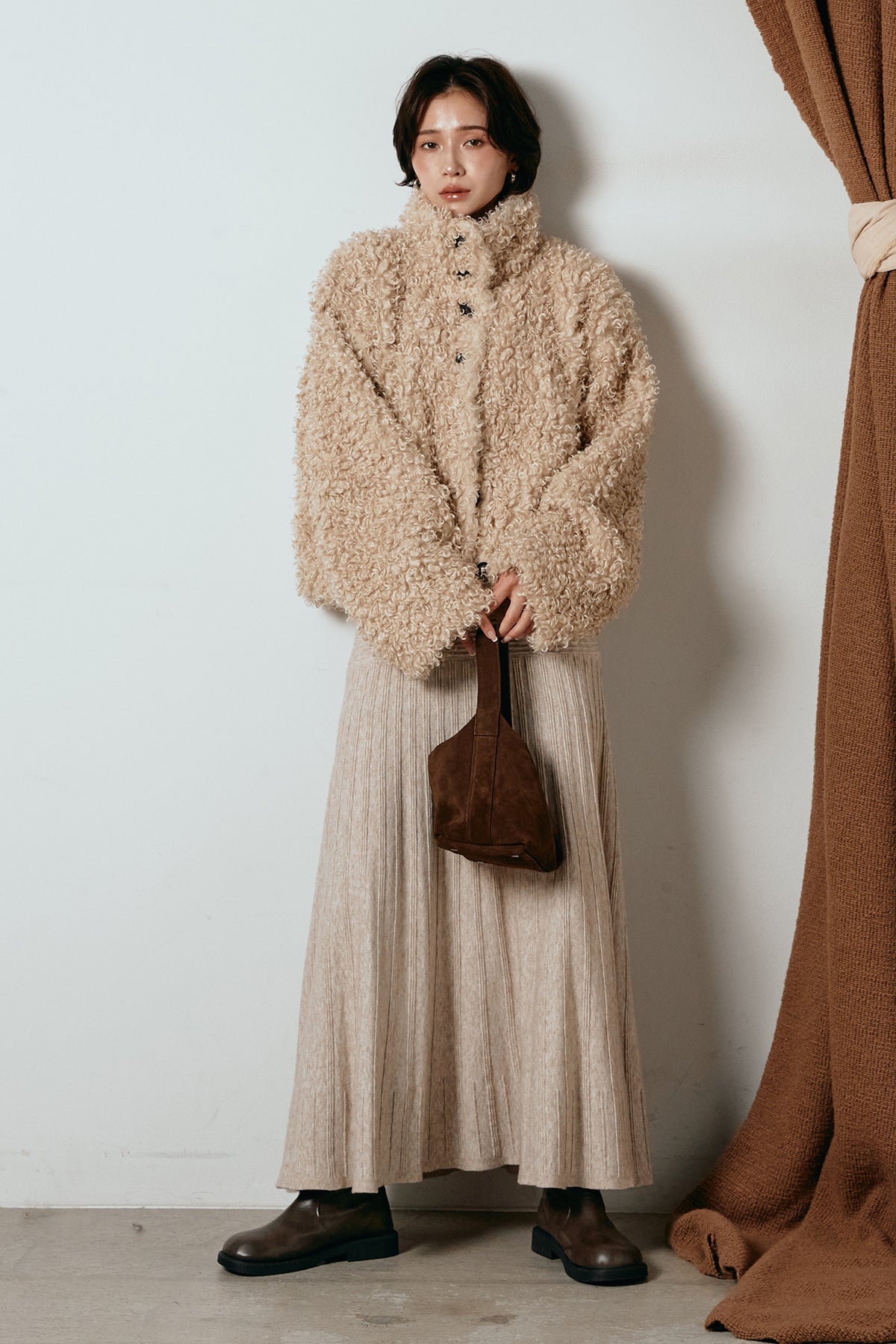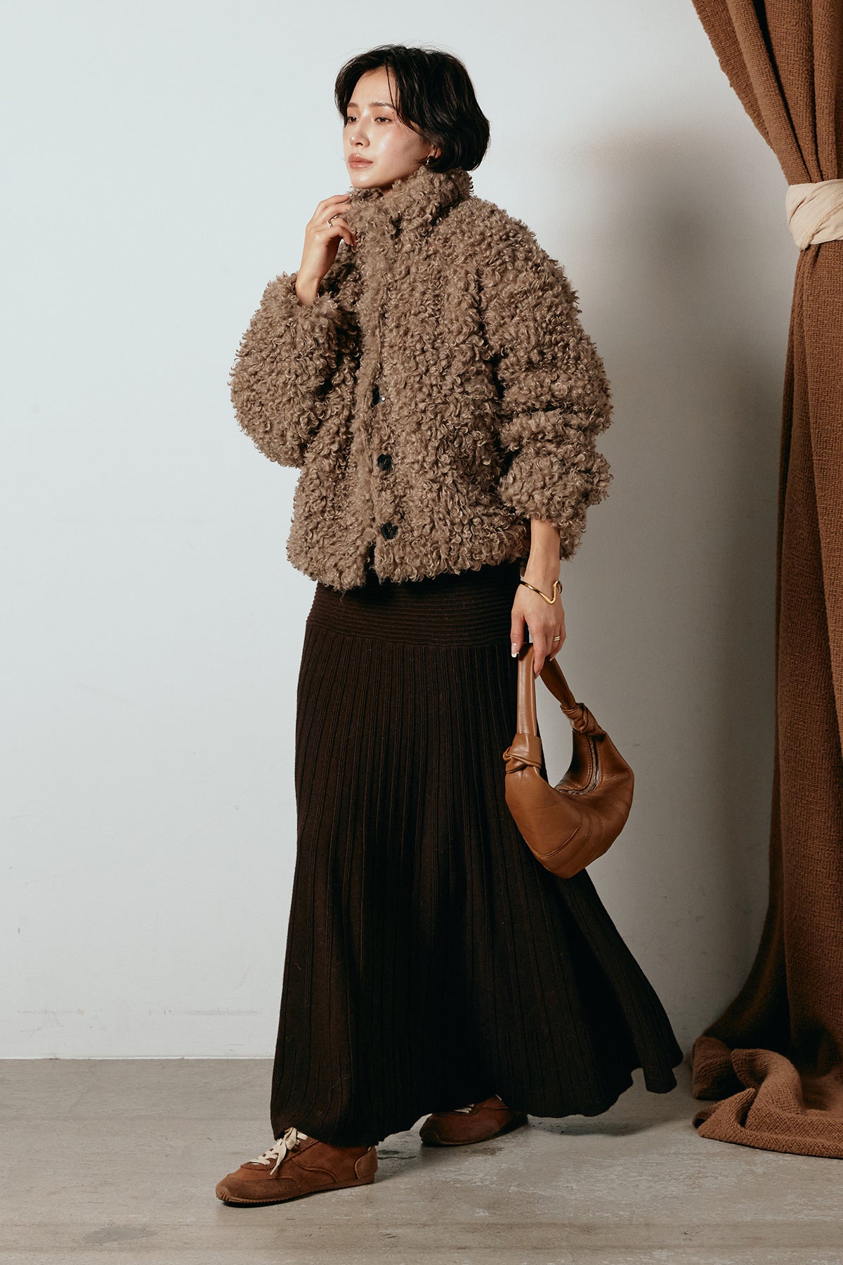軽やかで柔らかな着心地ながら、存在感のある質感が冬の装いに温もりを添えます。