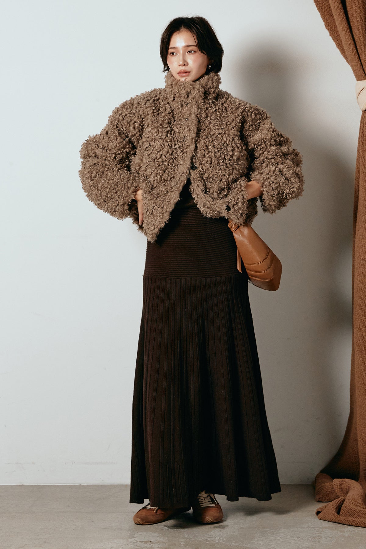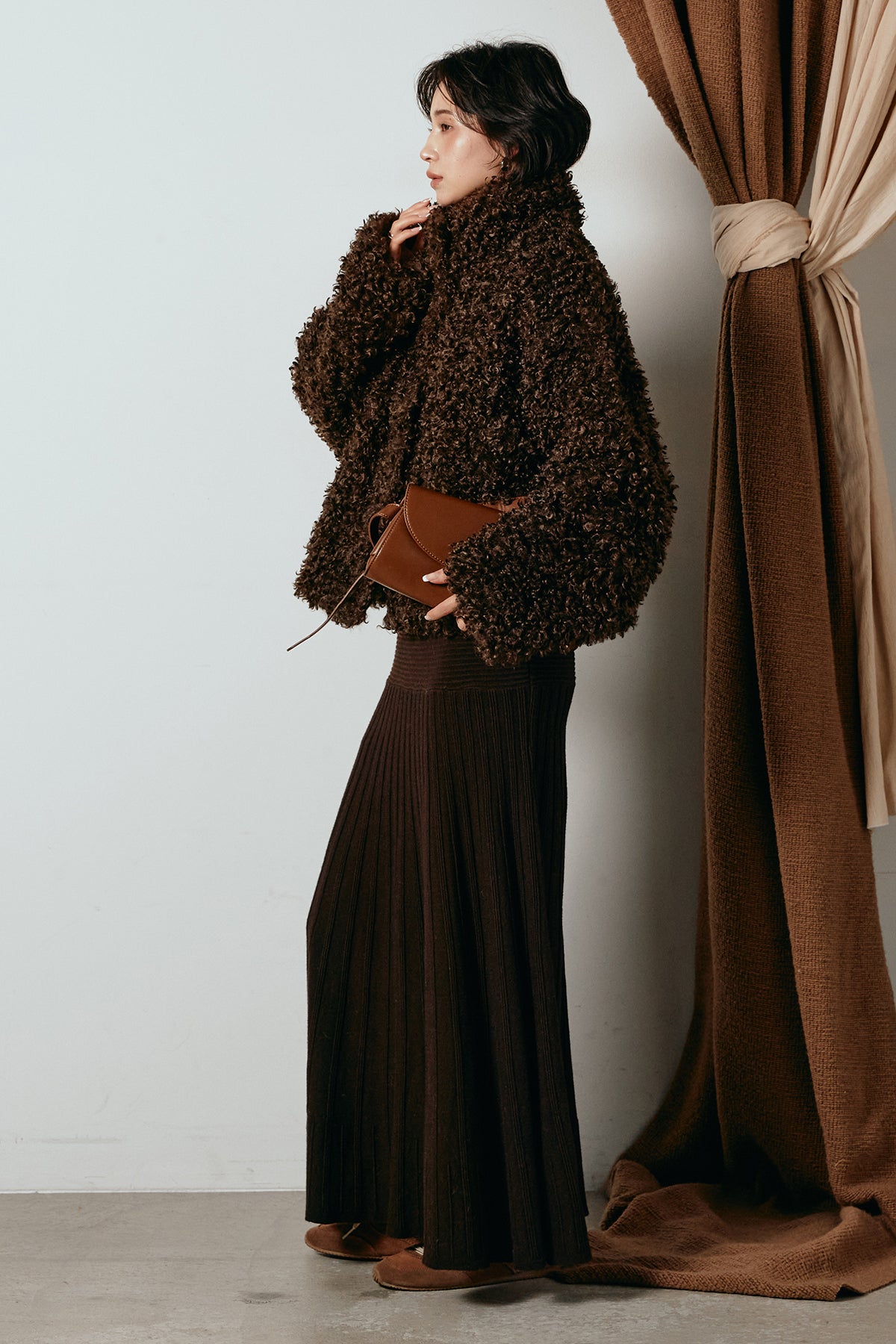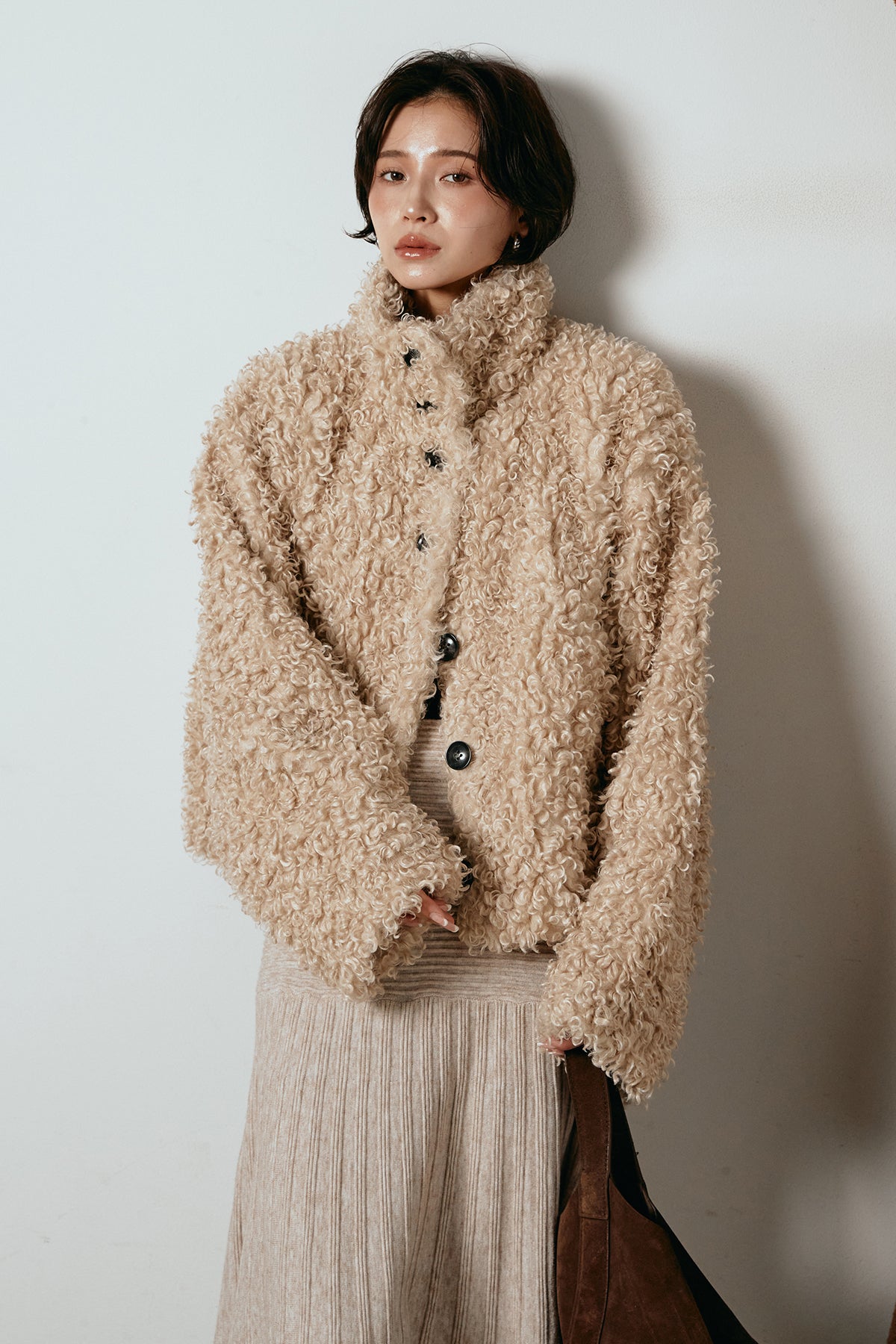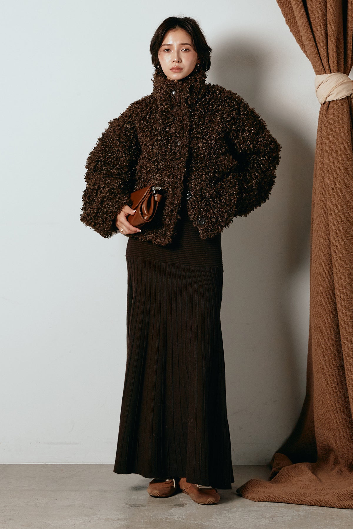 軽やかで柔らかな着心地ながら、存在感のある質感が冬の装いに温もりを添えます。