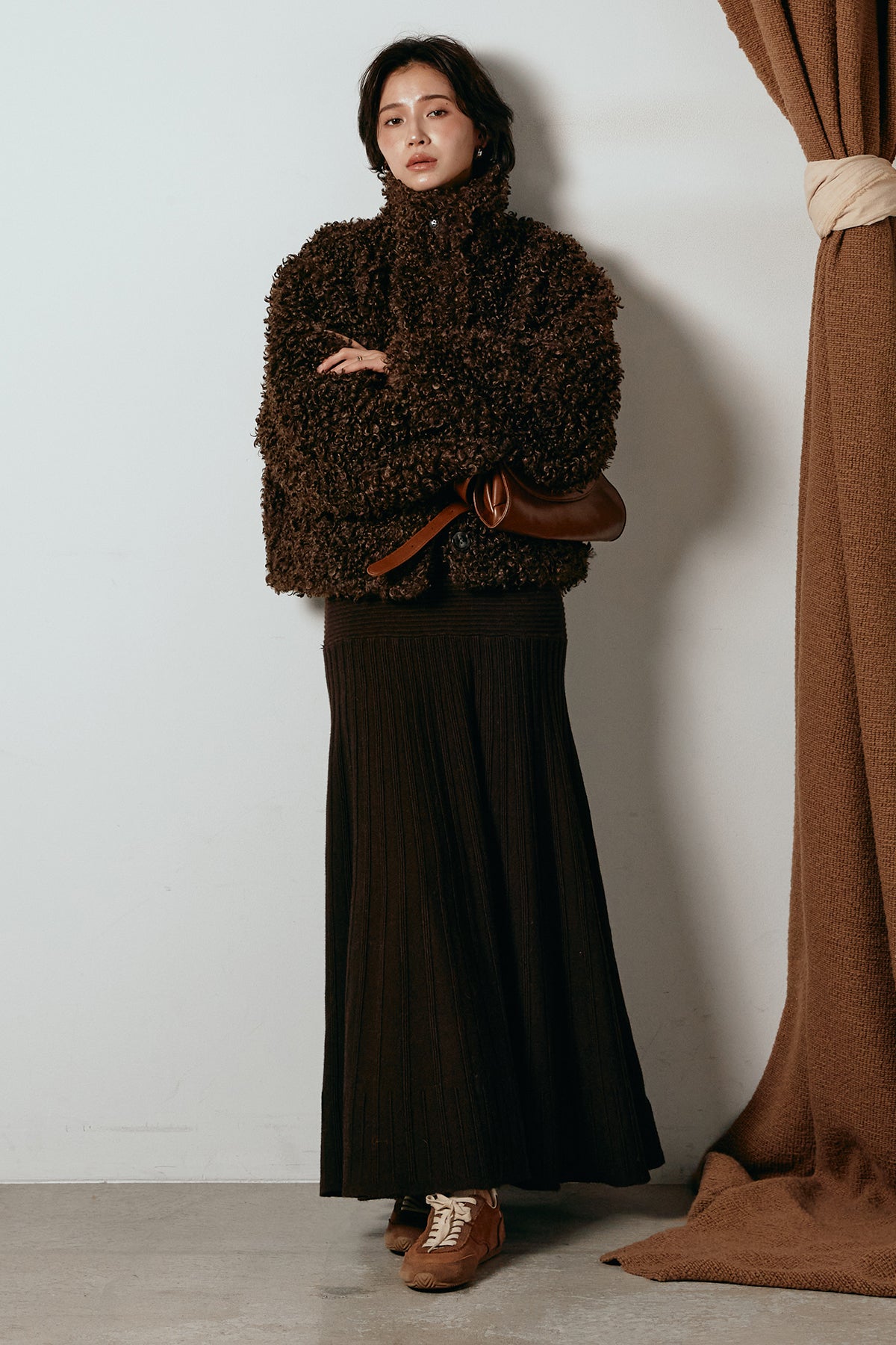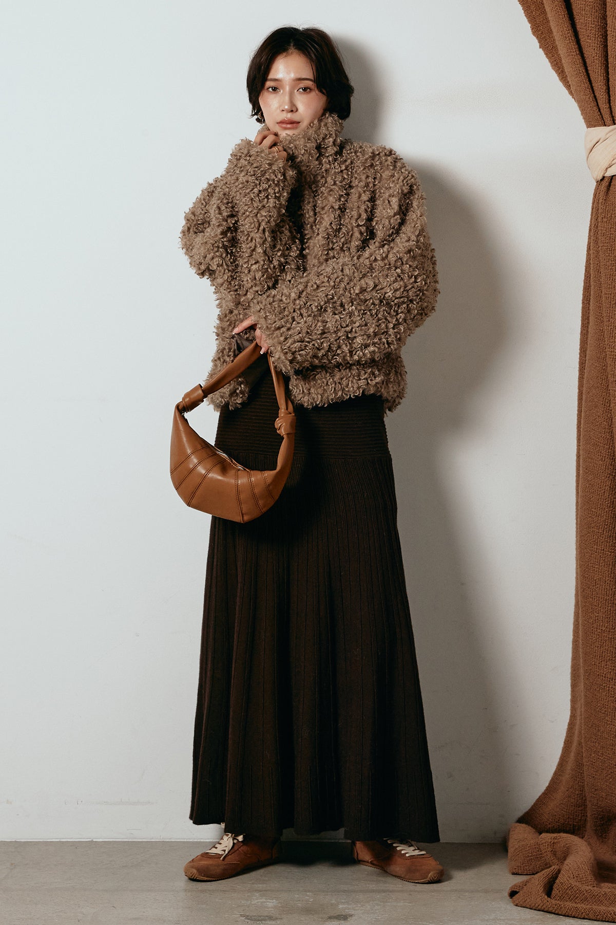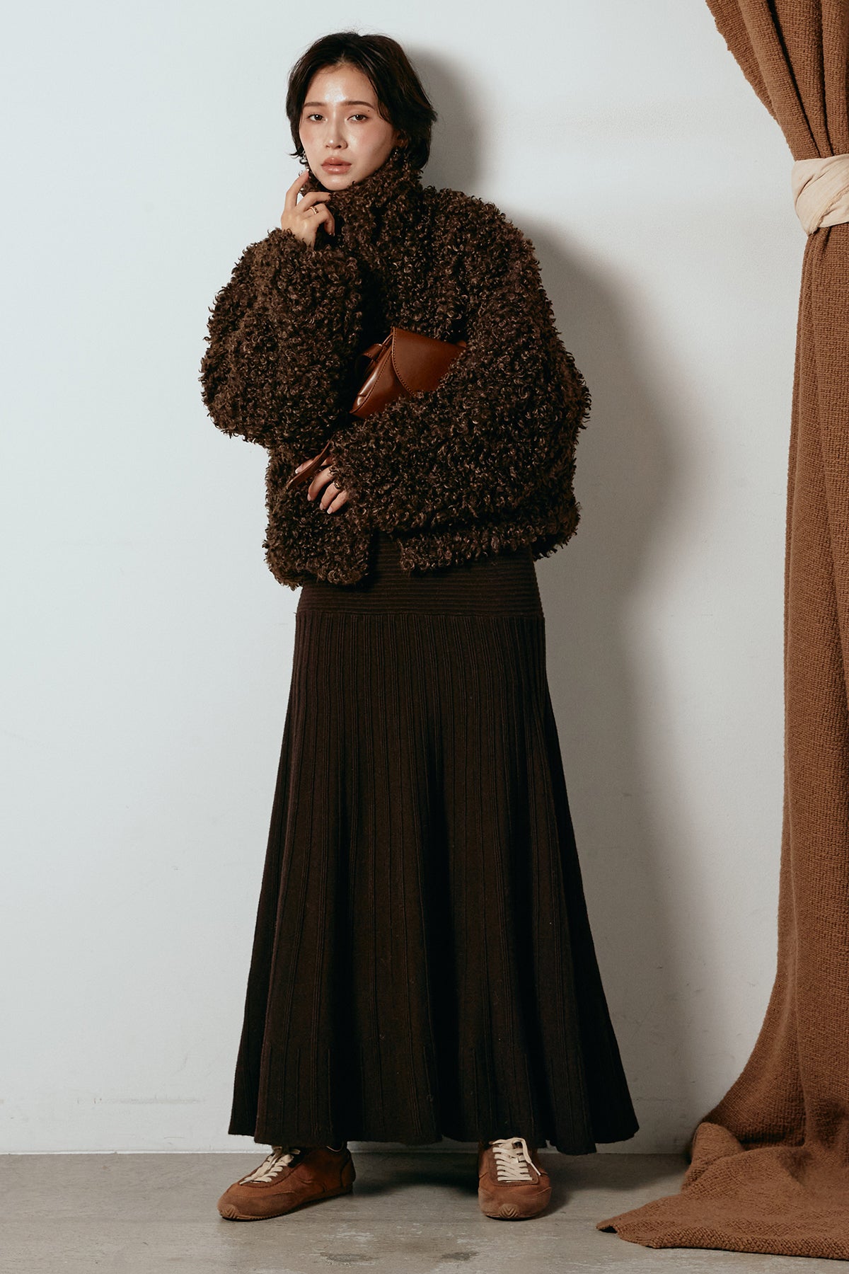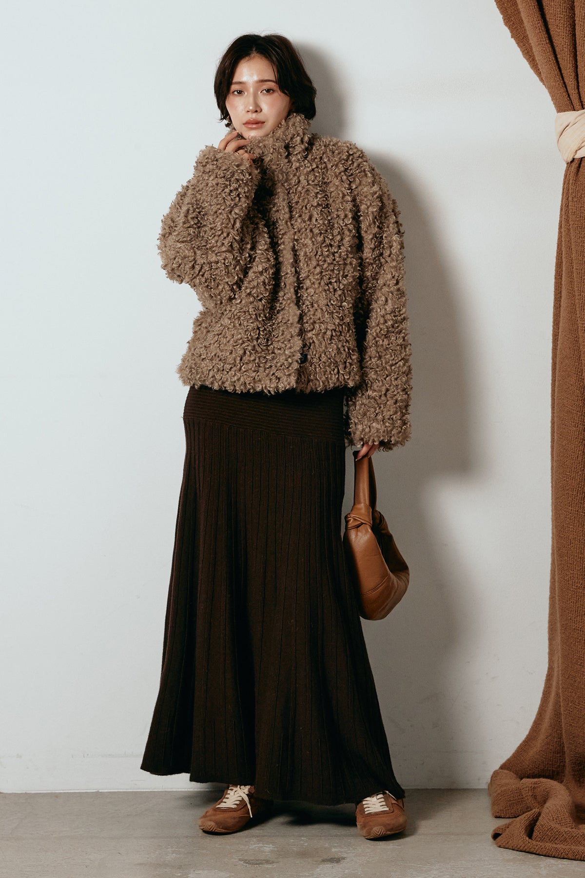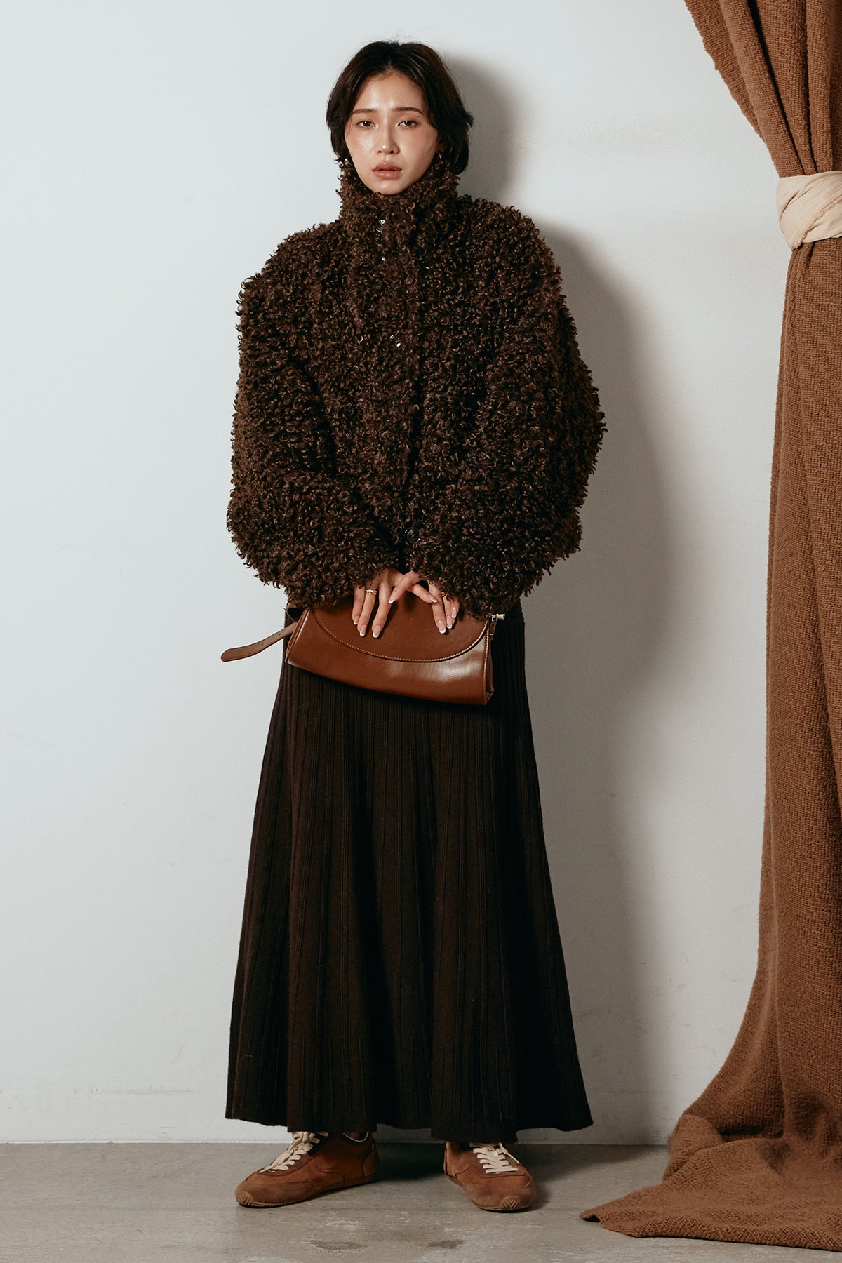 軽やかで柔らかな着心地ながら、存在感のある質感が冬の装いに温もりを添えます。