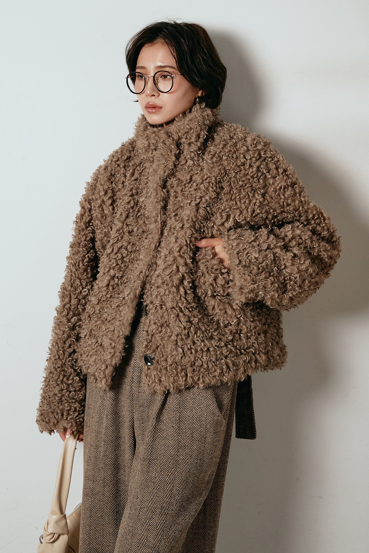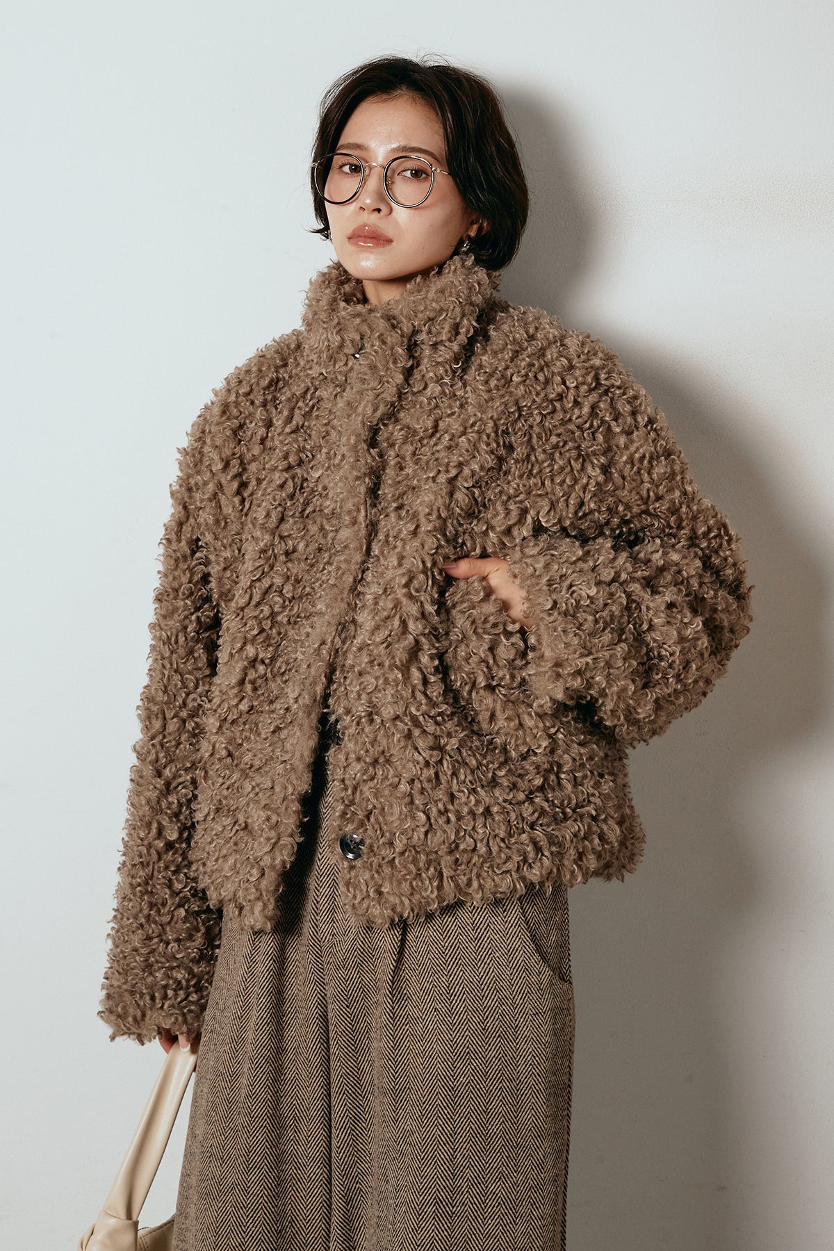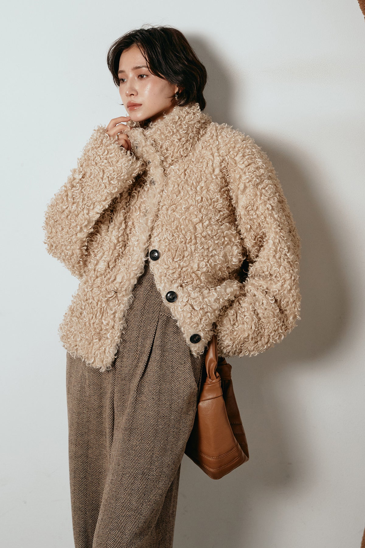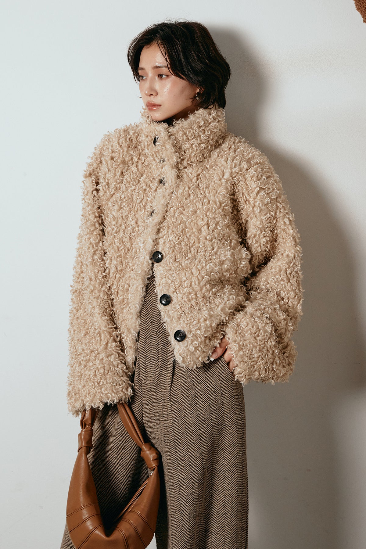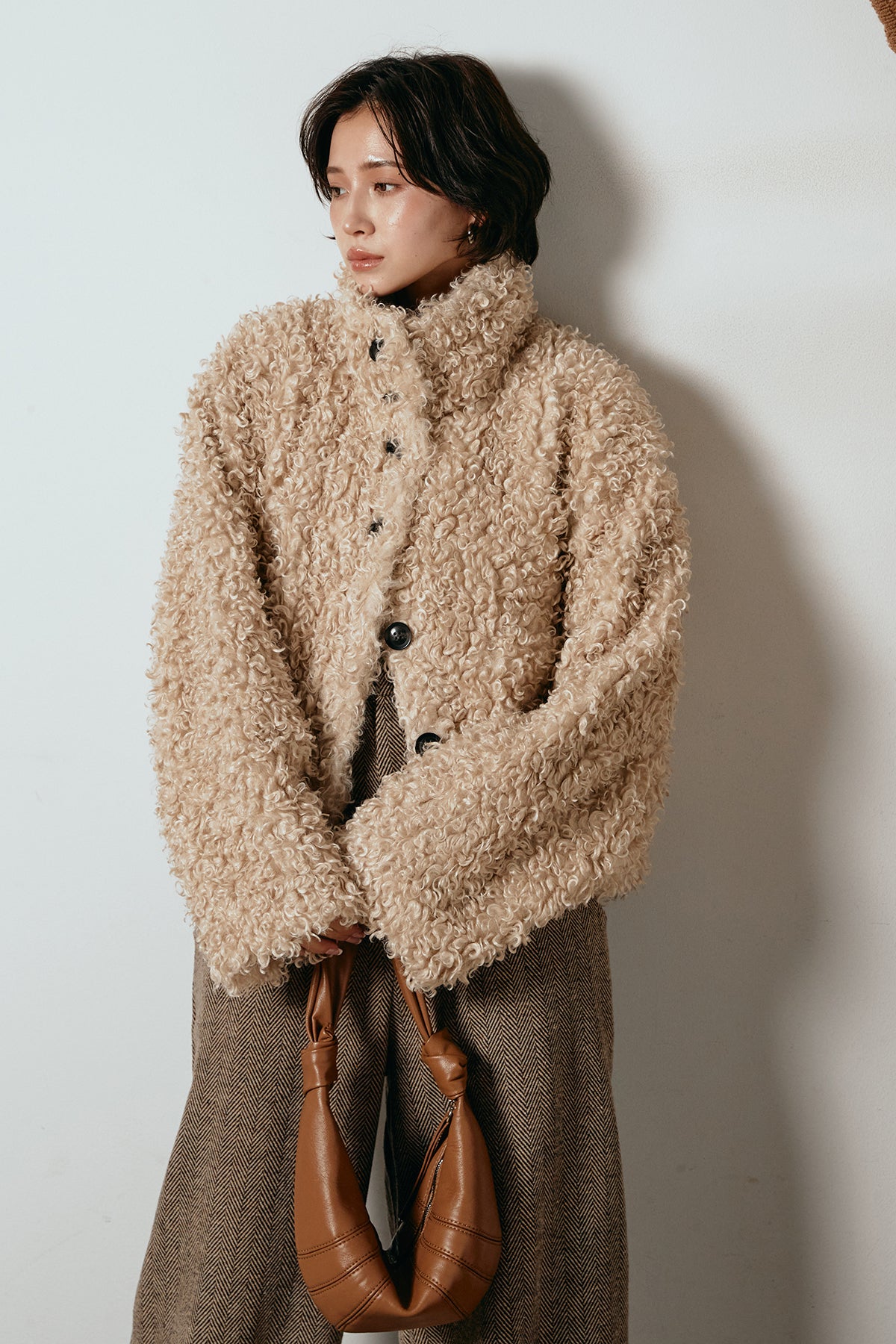 ふわふわとしたプードルファーが目を惹くミドル丈ジャケット。