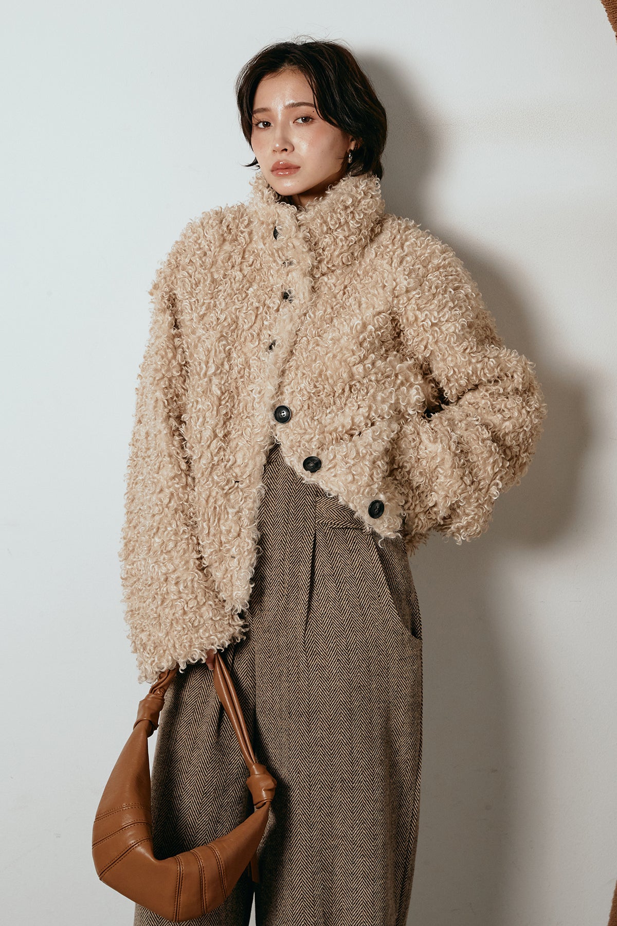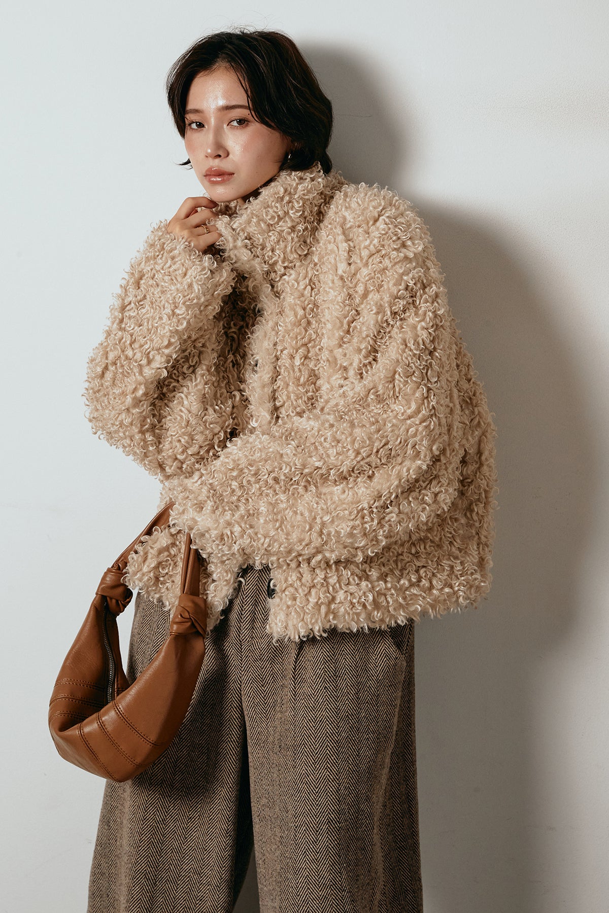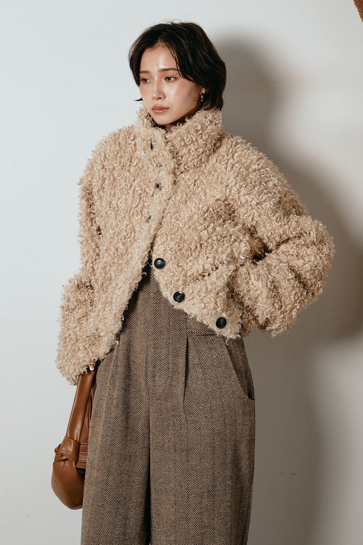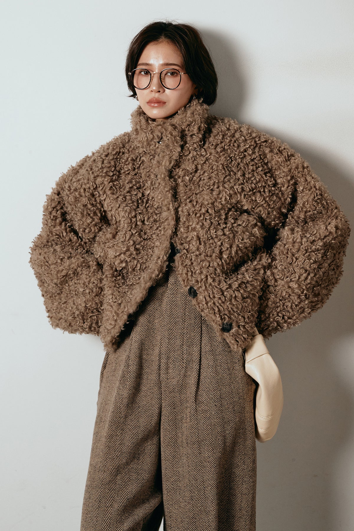 ふわふわとしたプードルファーが目を惹くミドル丈ジャケット。