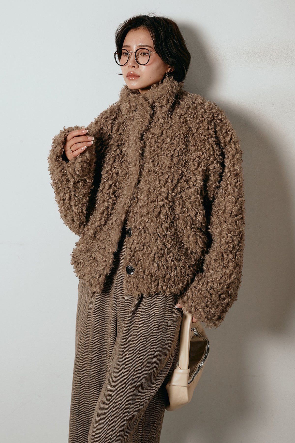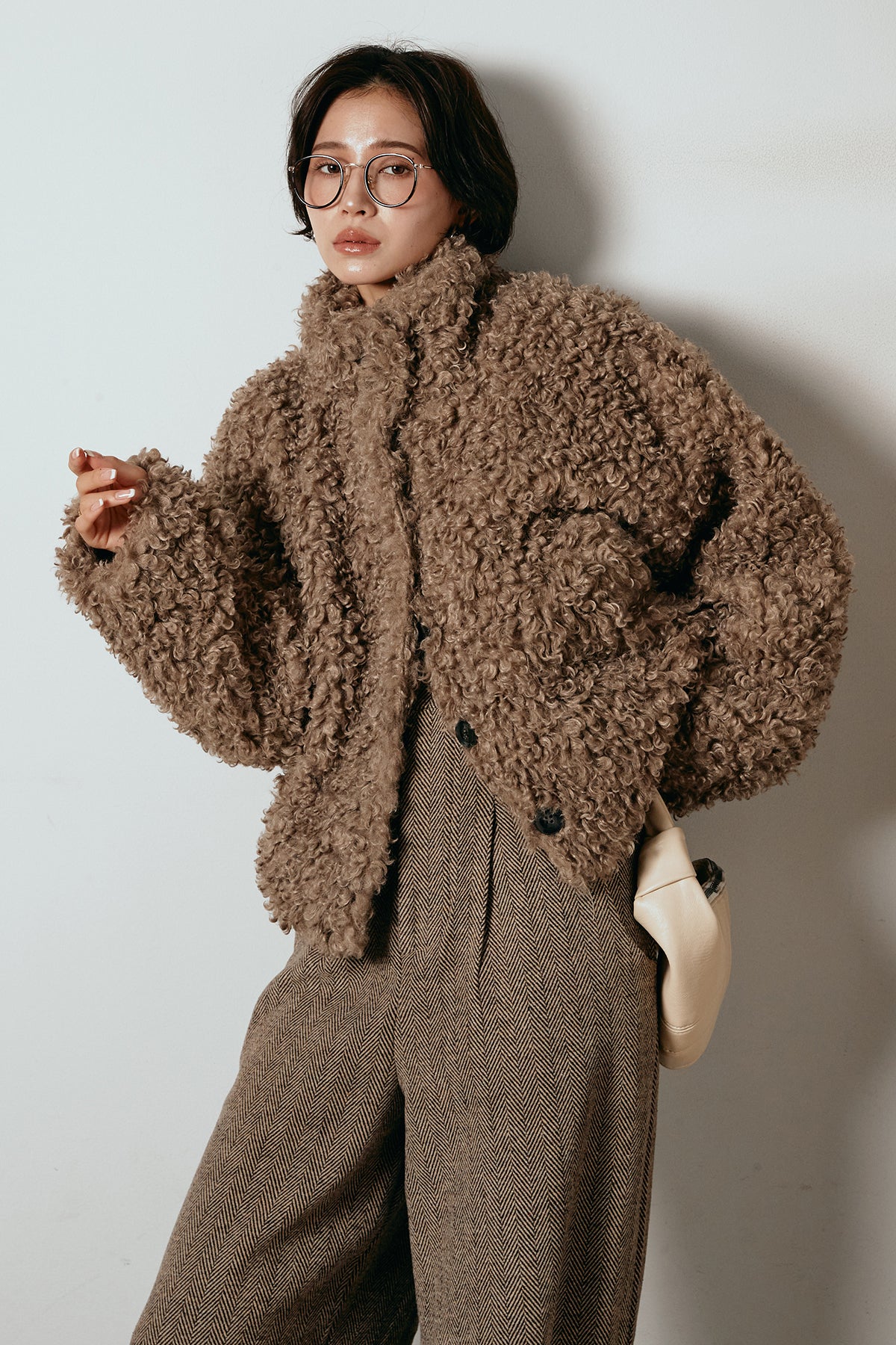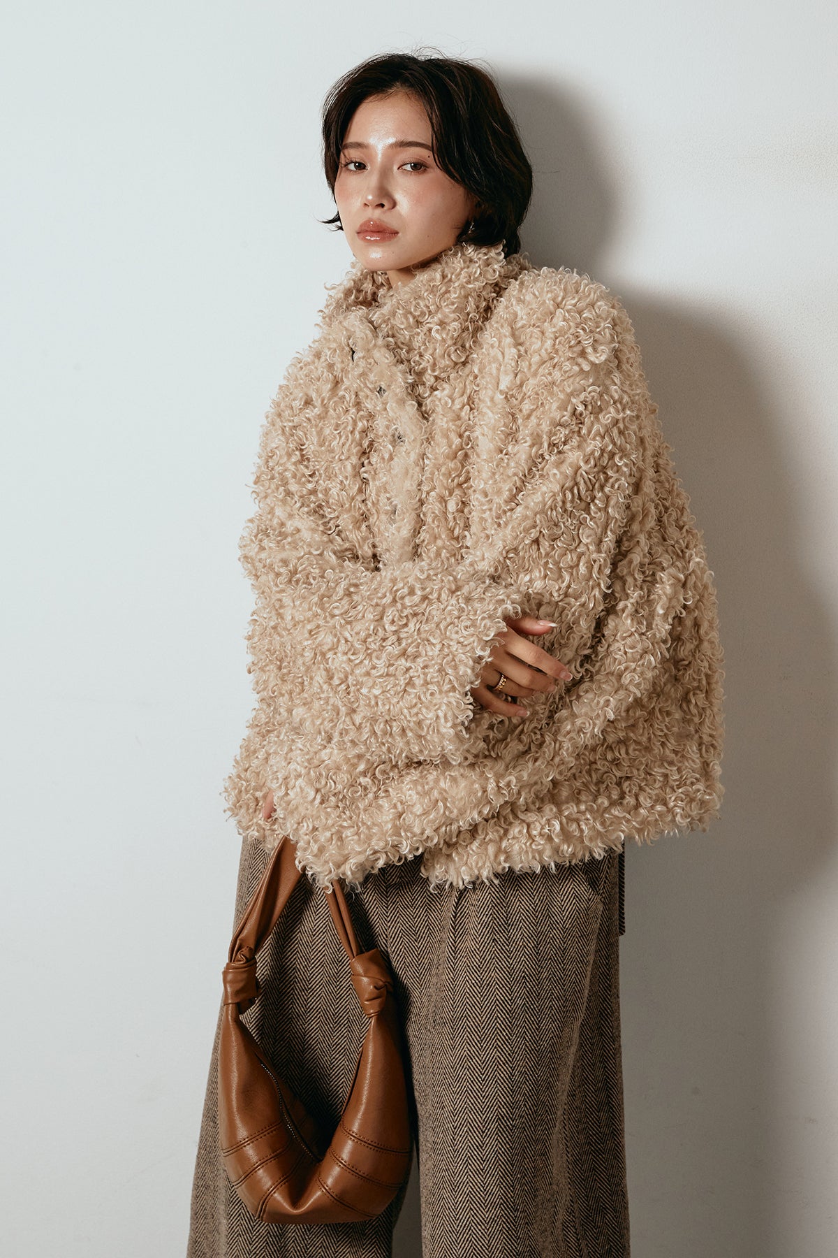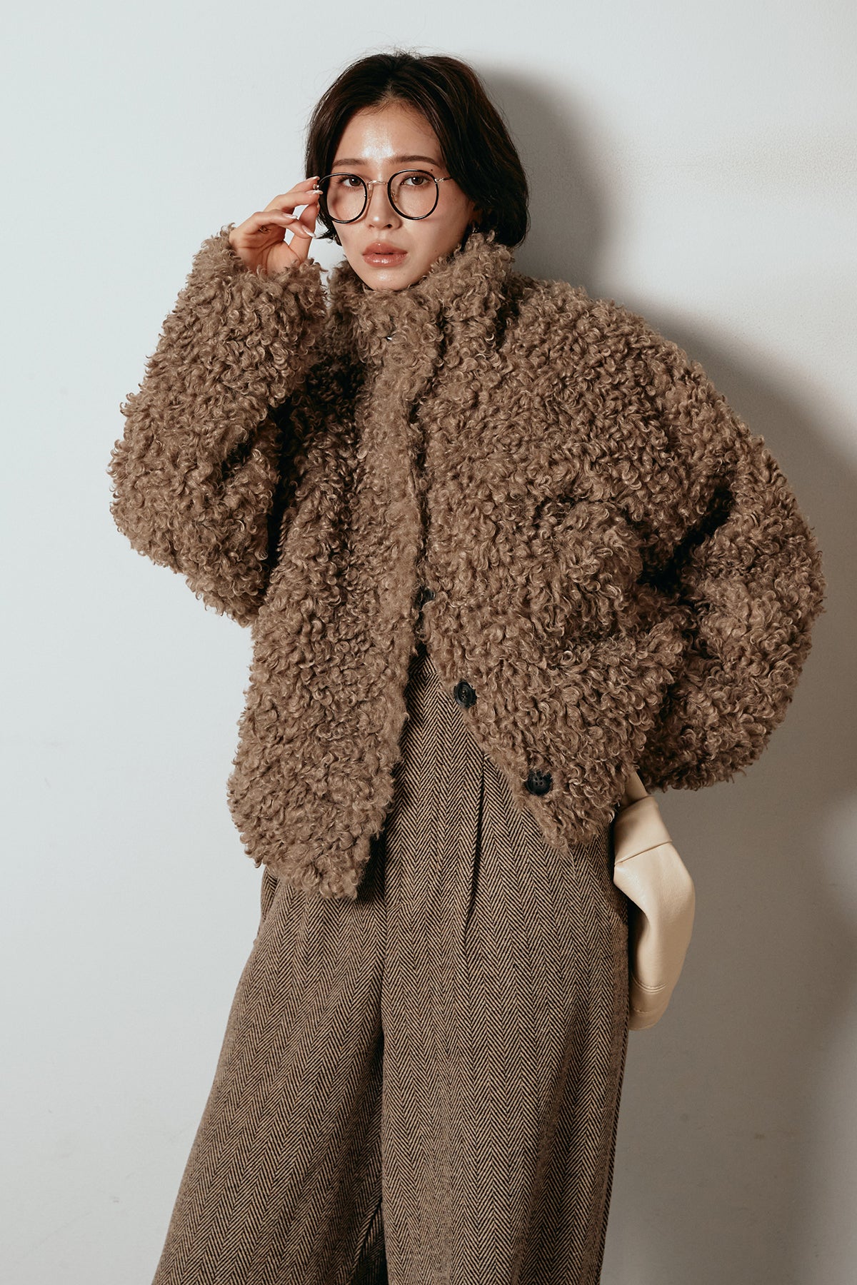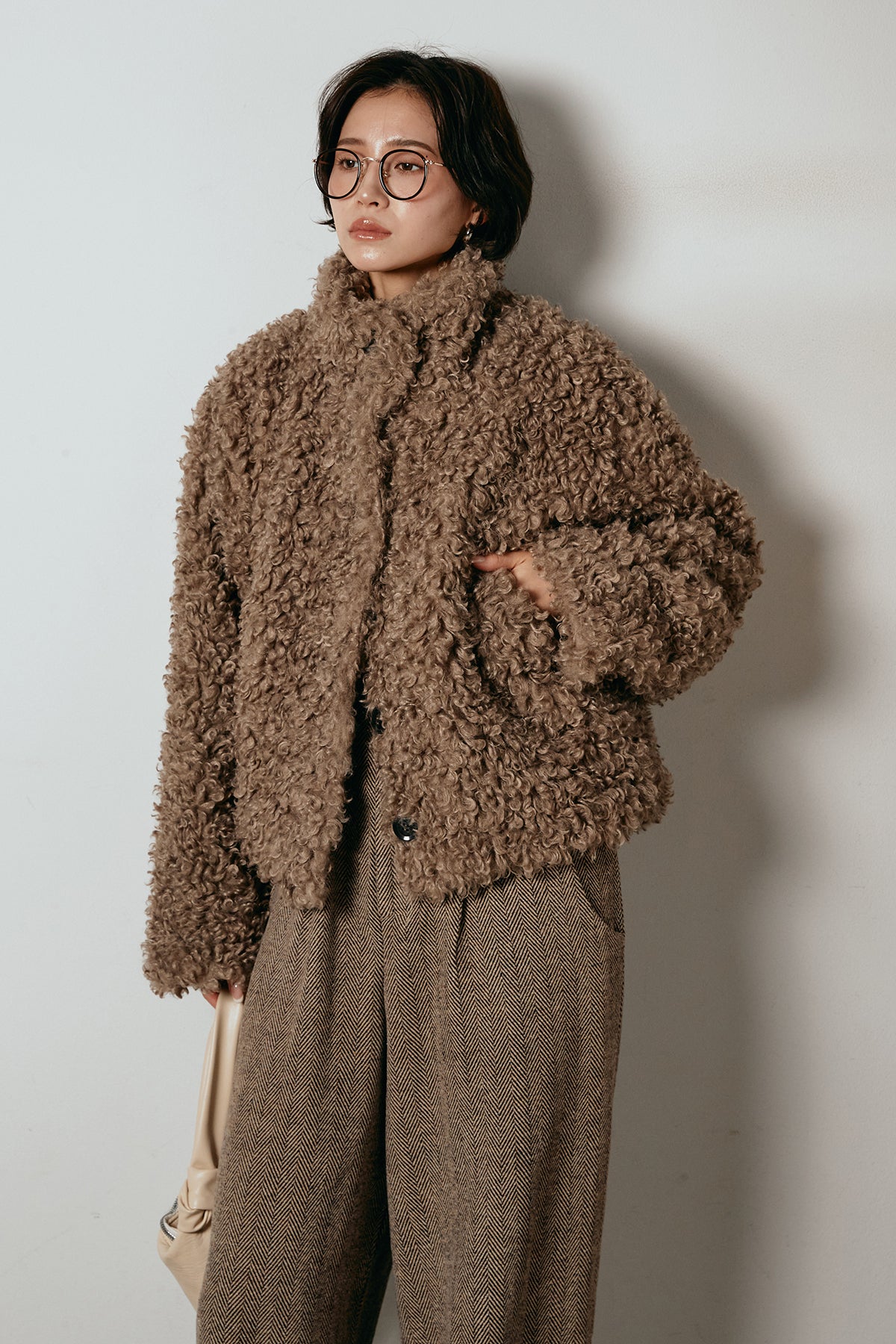 ふわふわとしたプードルファーが目を惹くミドル丈ジャケット。
