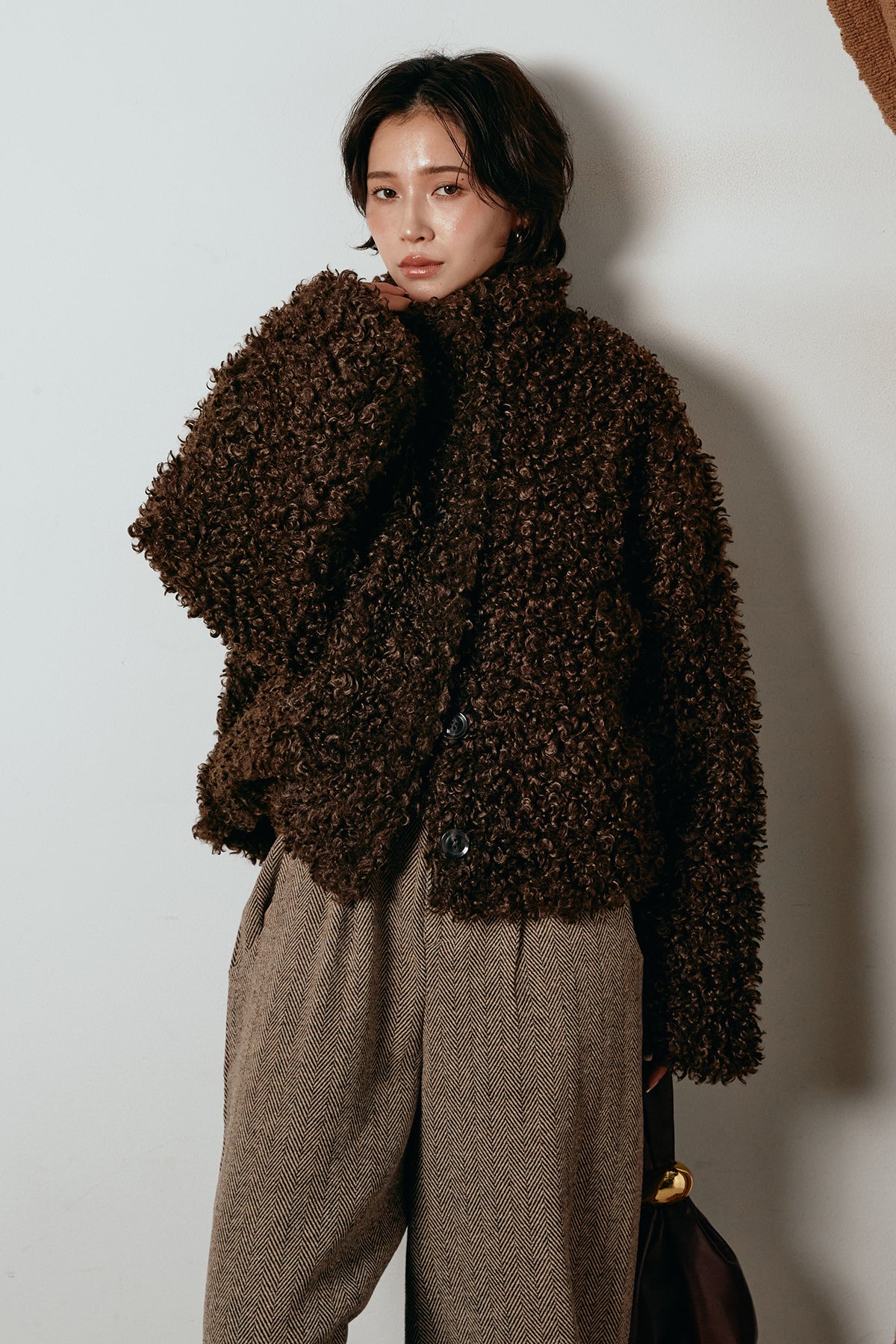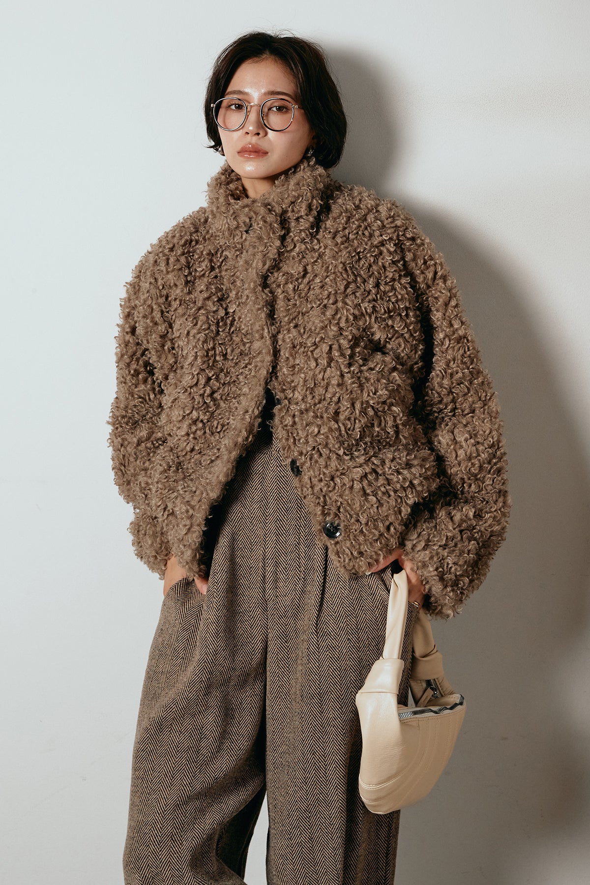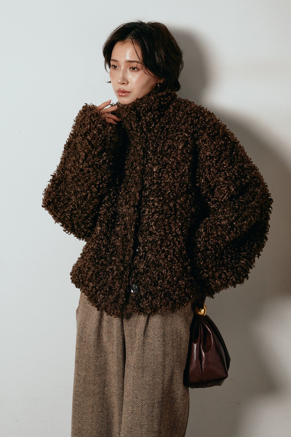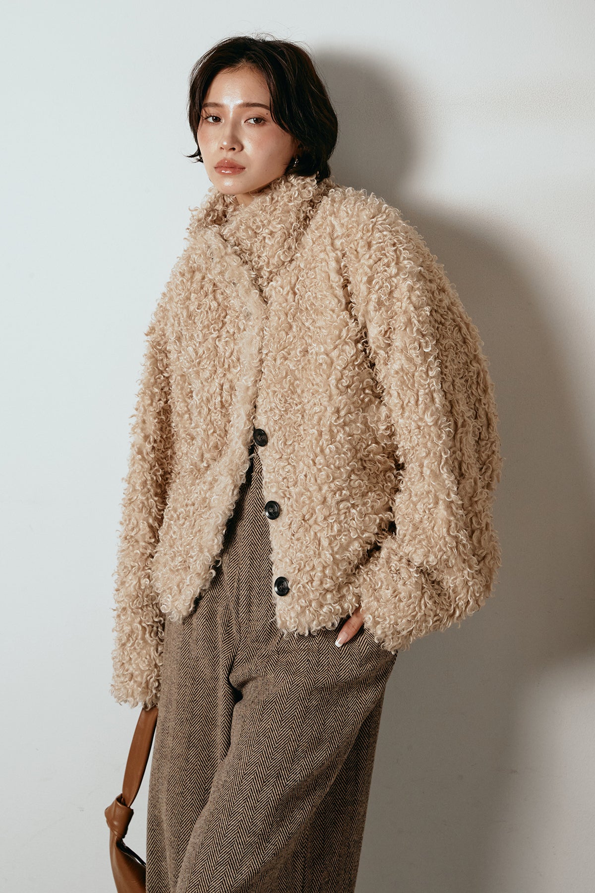 ふわふわとしたプードルファーが目を惹くミドル丈ジャケット。