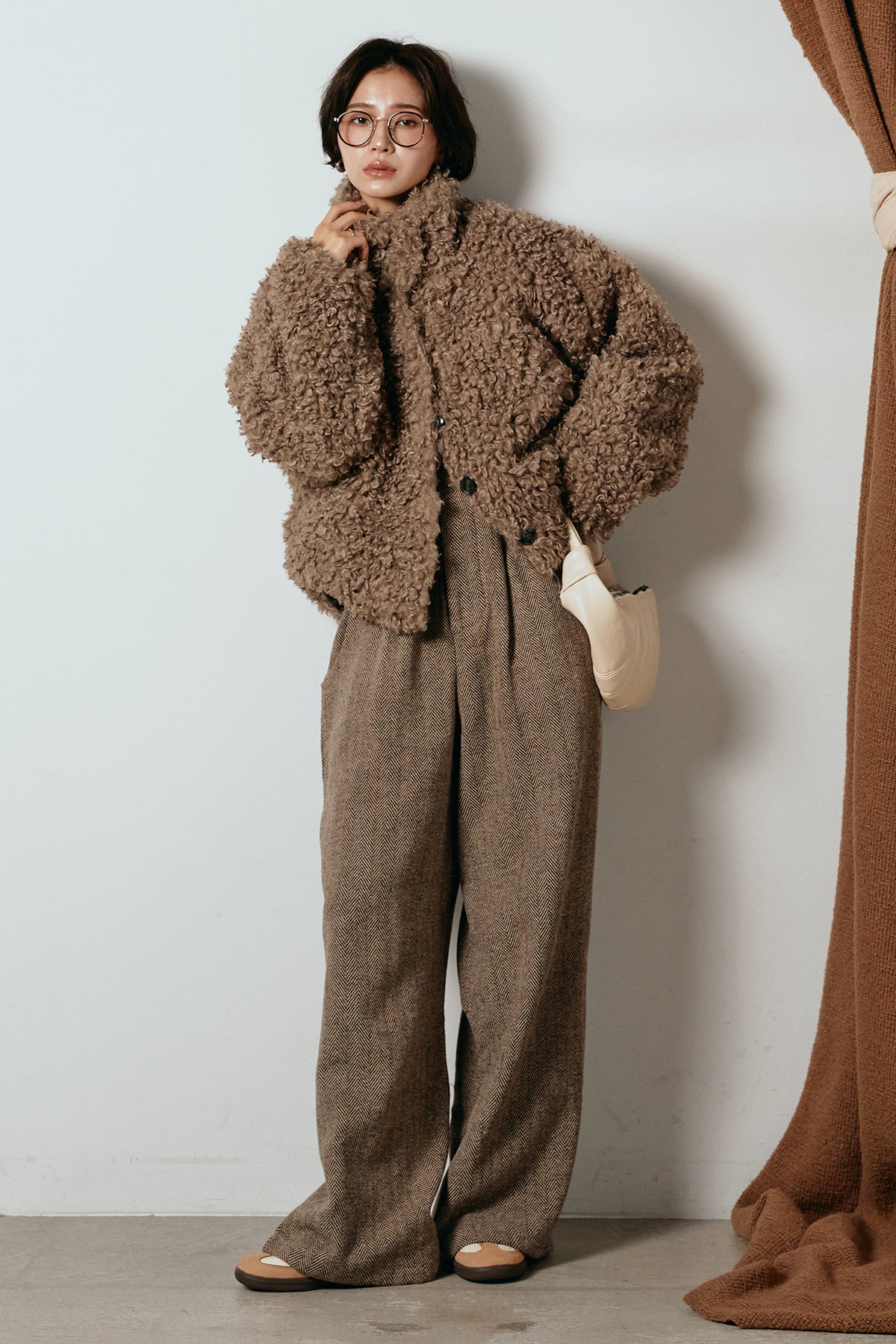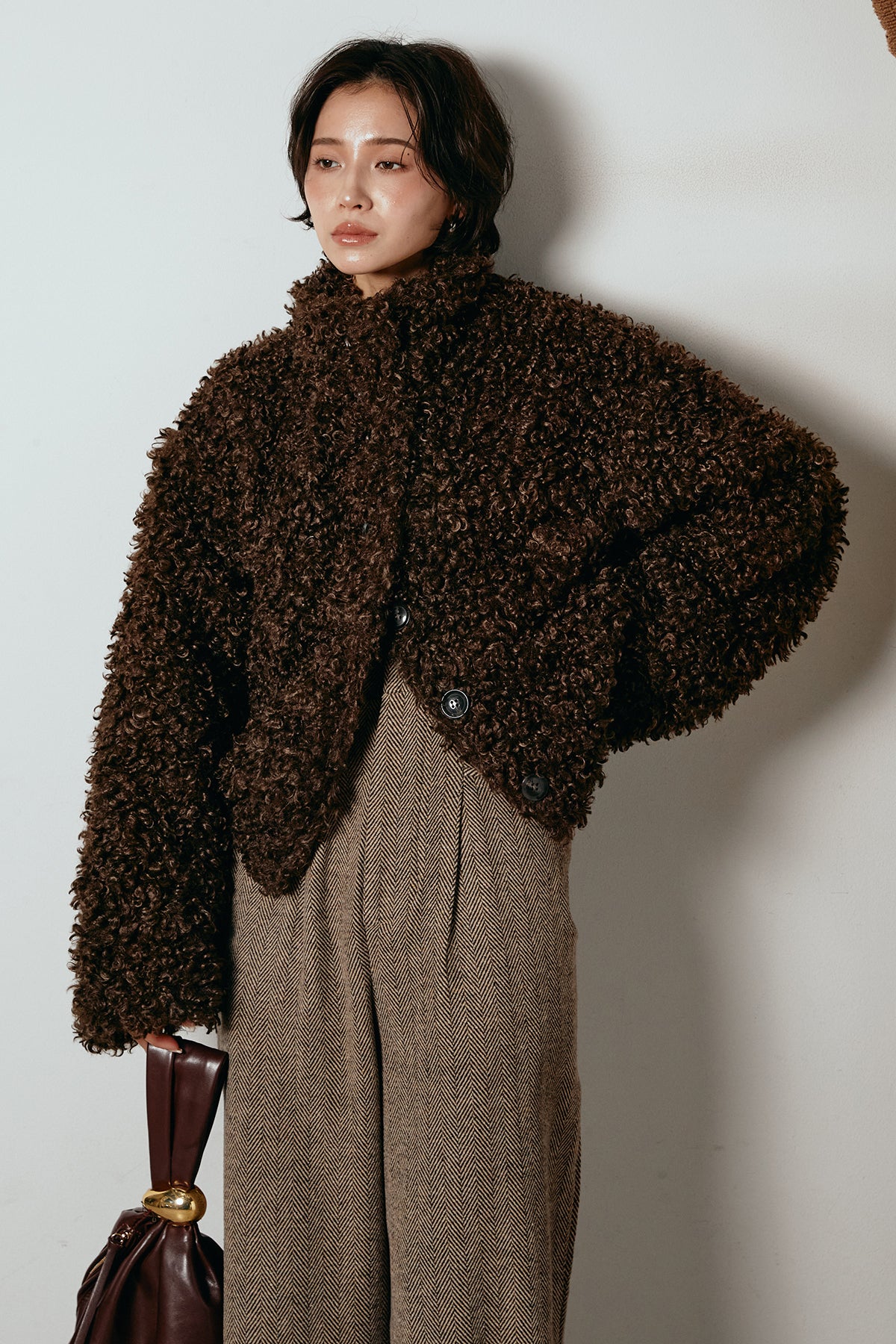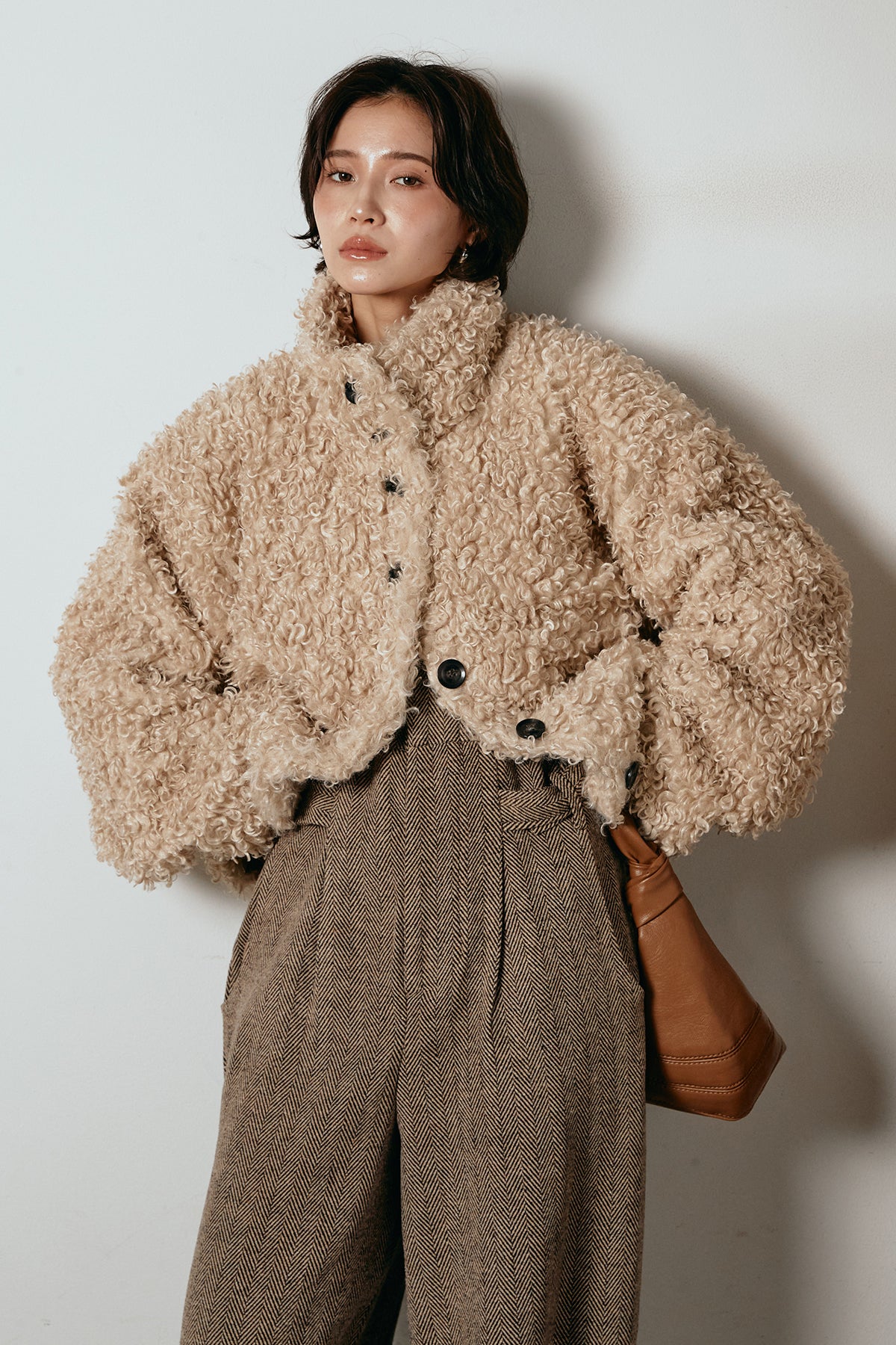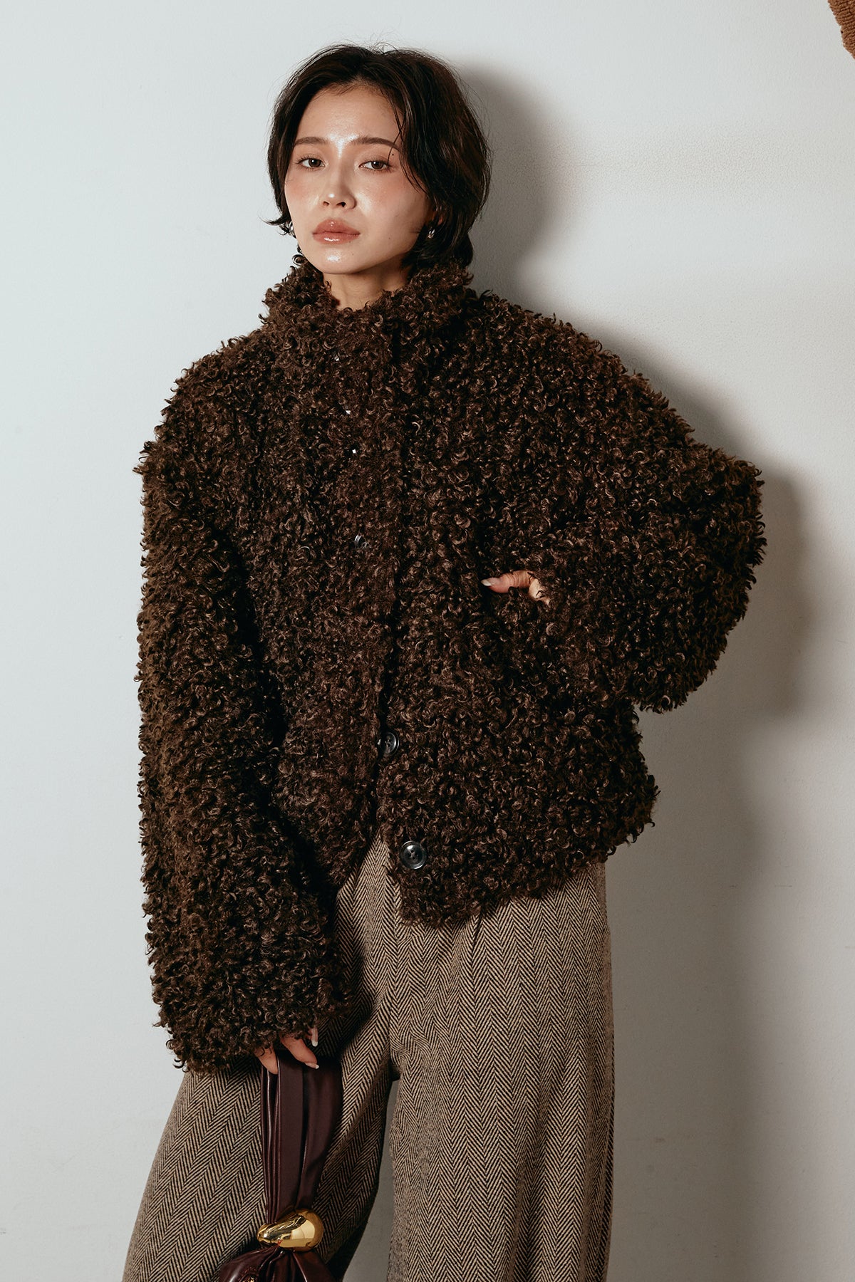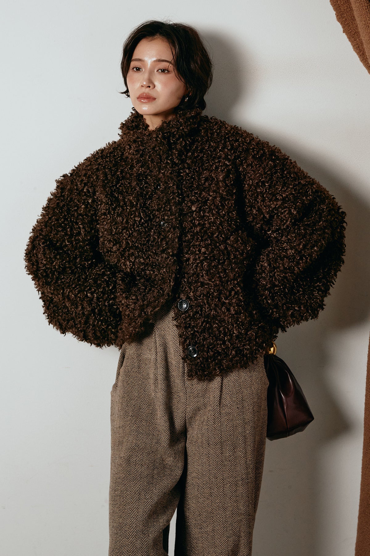 ふわふわとしたプードルファーが目を惹くミドル丈ジャケット。