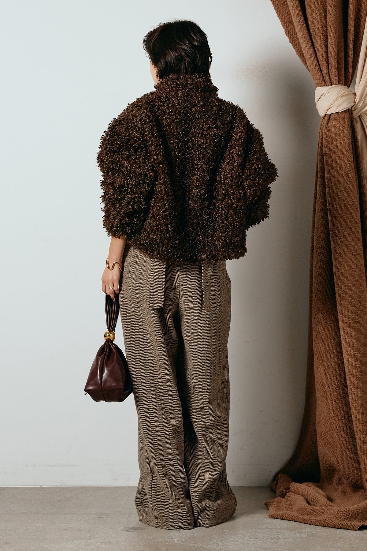 軽やかで柔らかな着心地ながら、存在感のある質感が冬の装いに温もりを添えます。