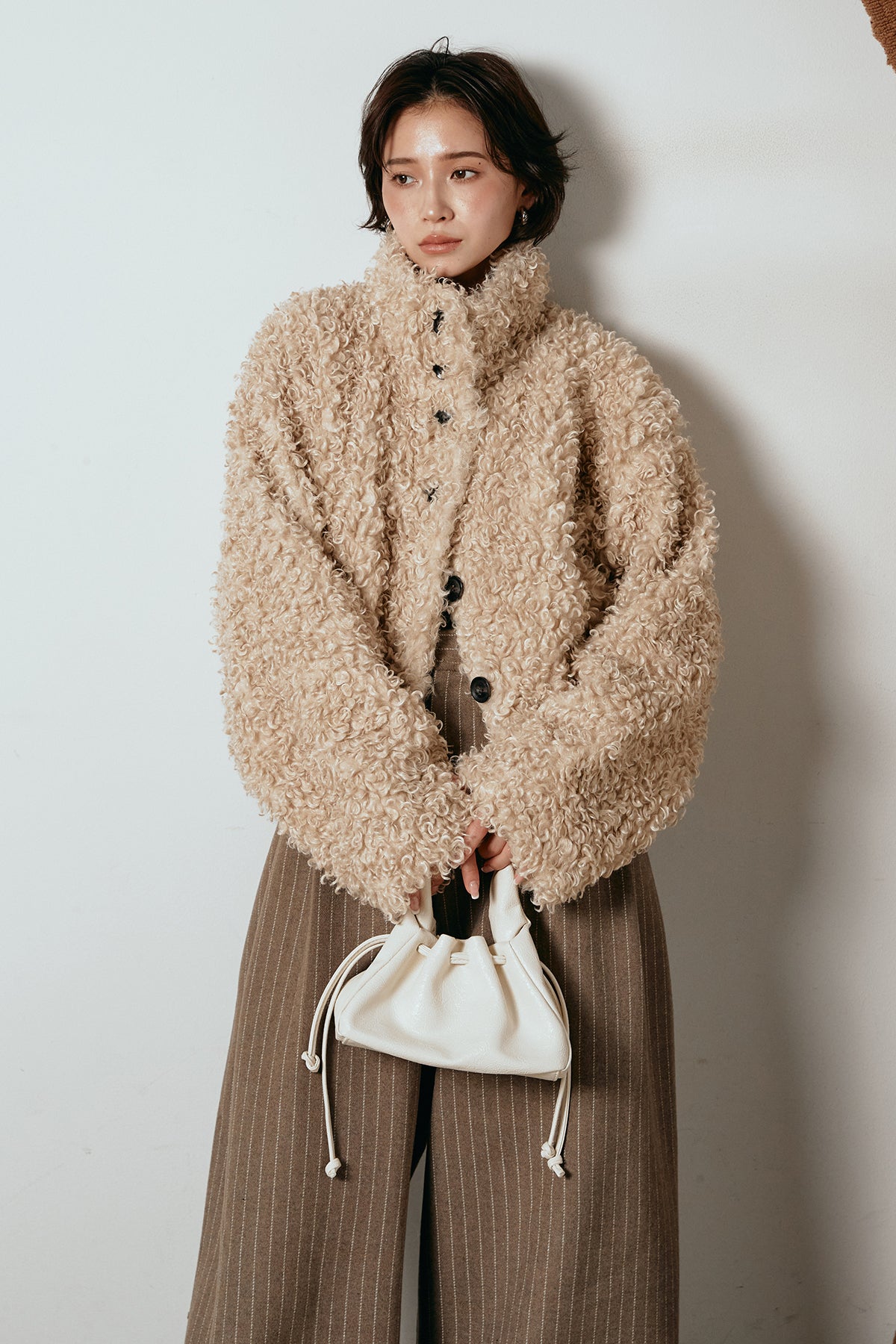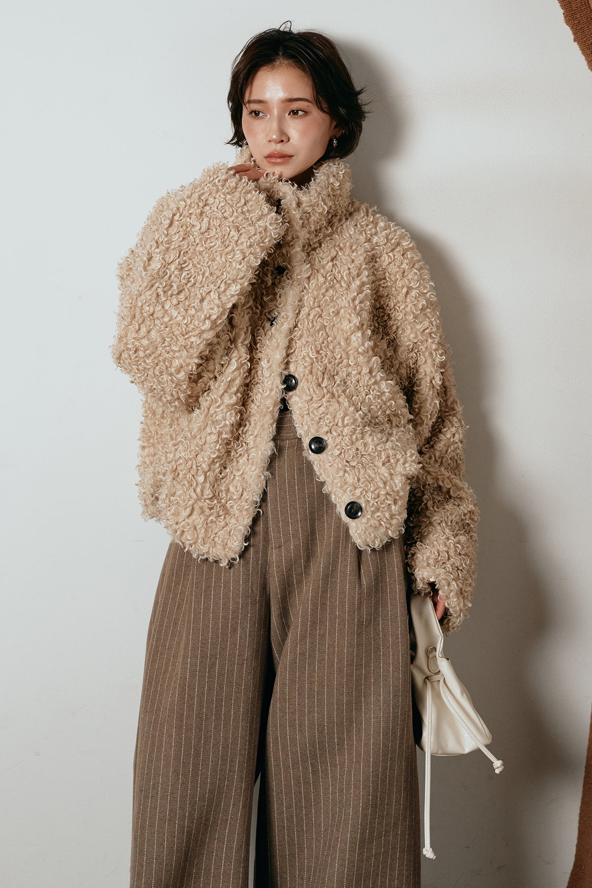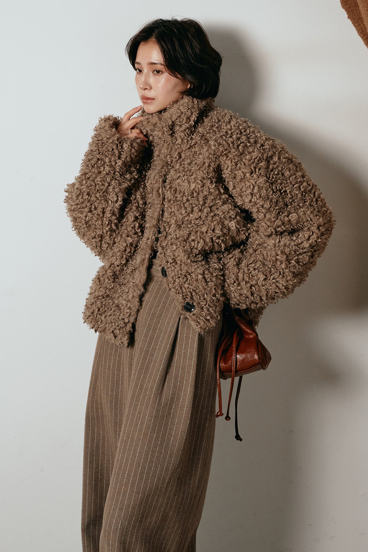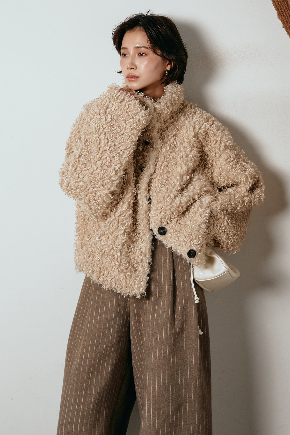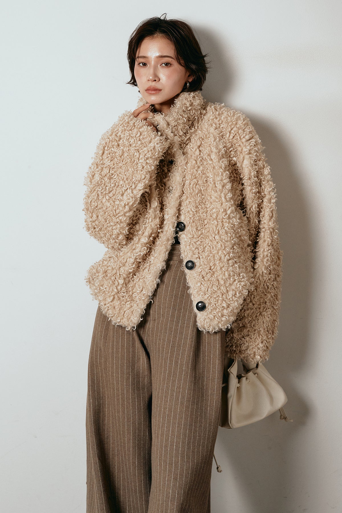 ふわふわとしたプードルファーが目を惹くミドル丈ジャケット。