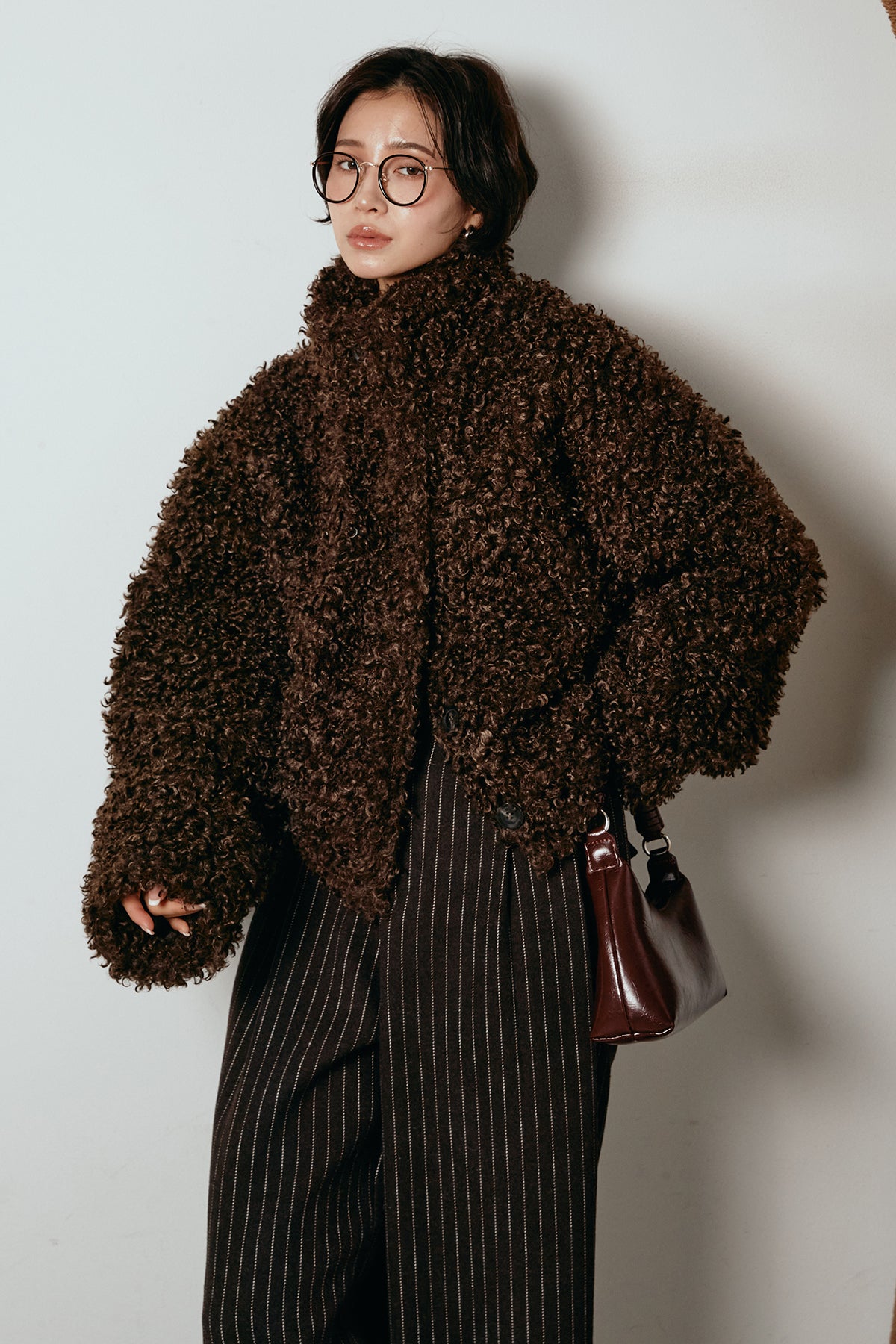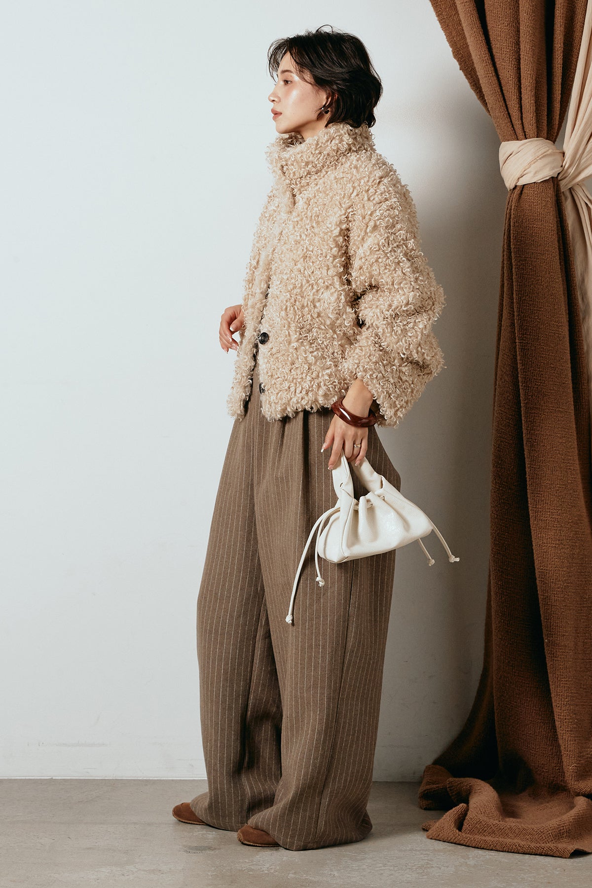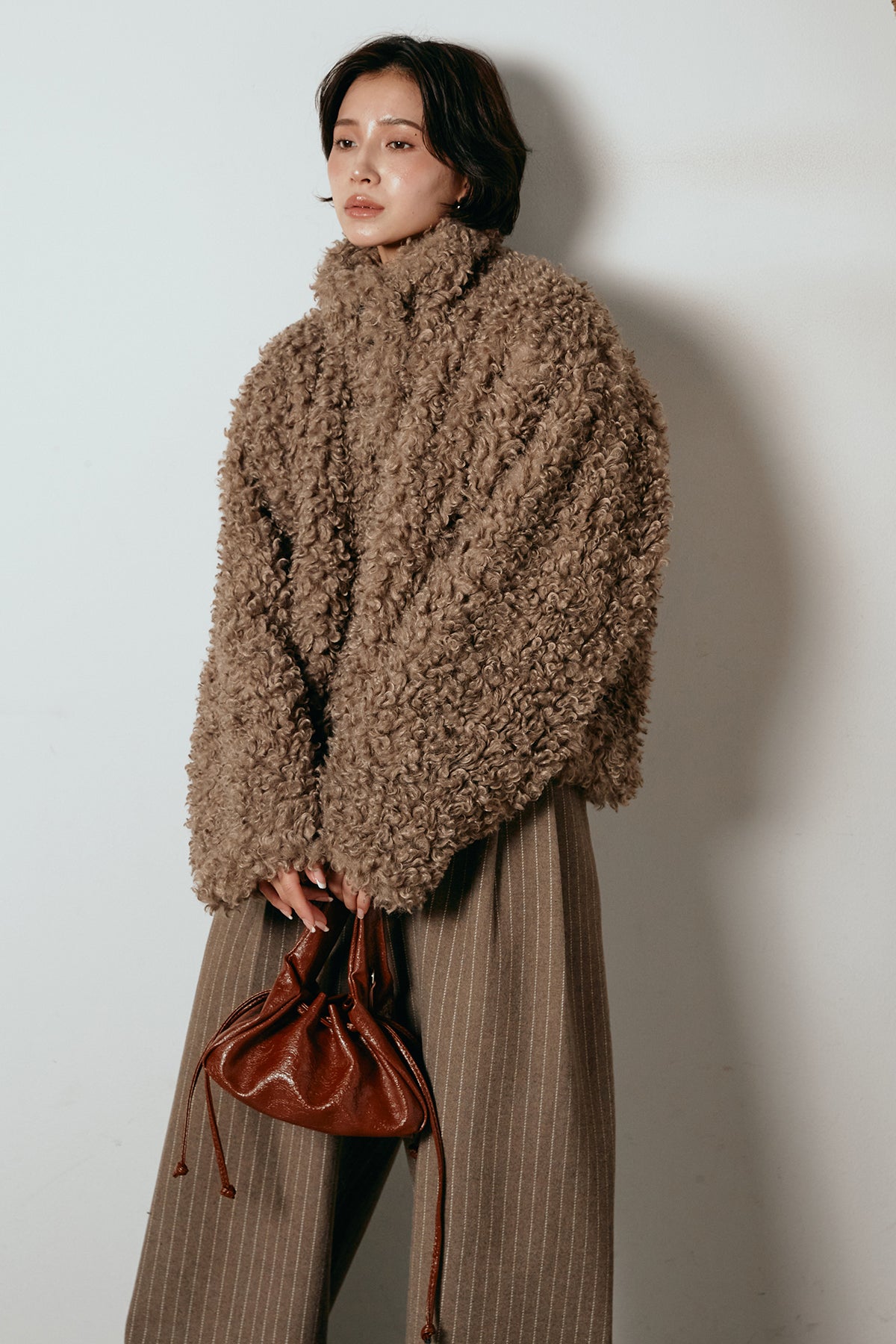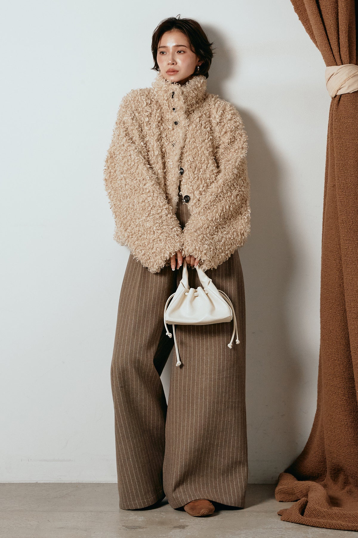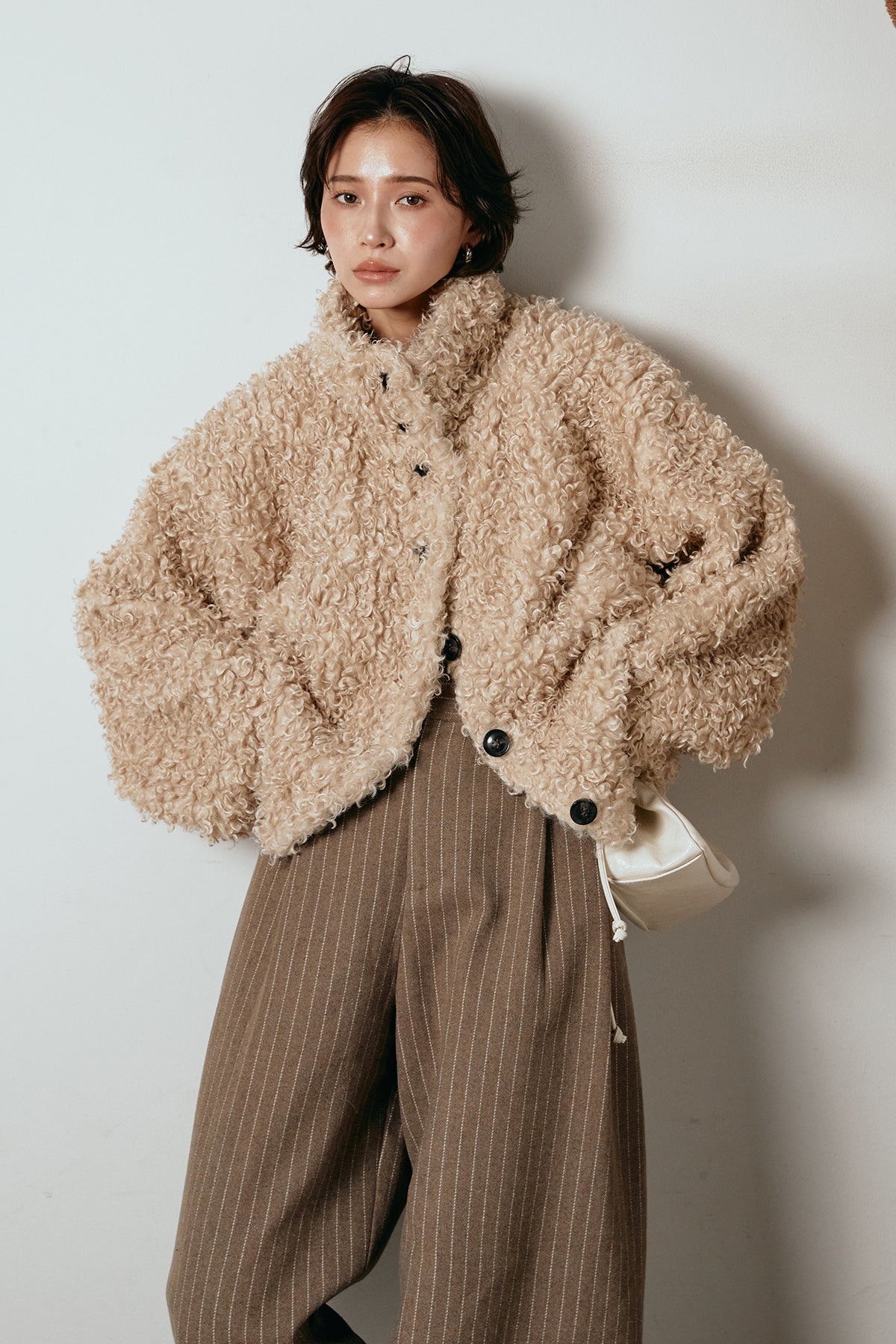 ふわふわとしたプードルファーが目を惹くミドル丈ジャケット。