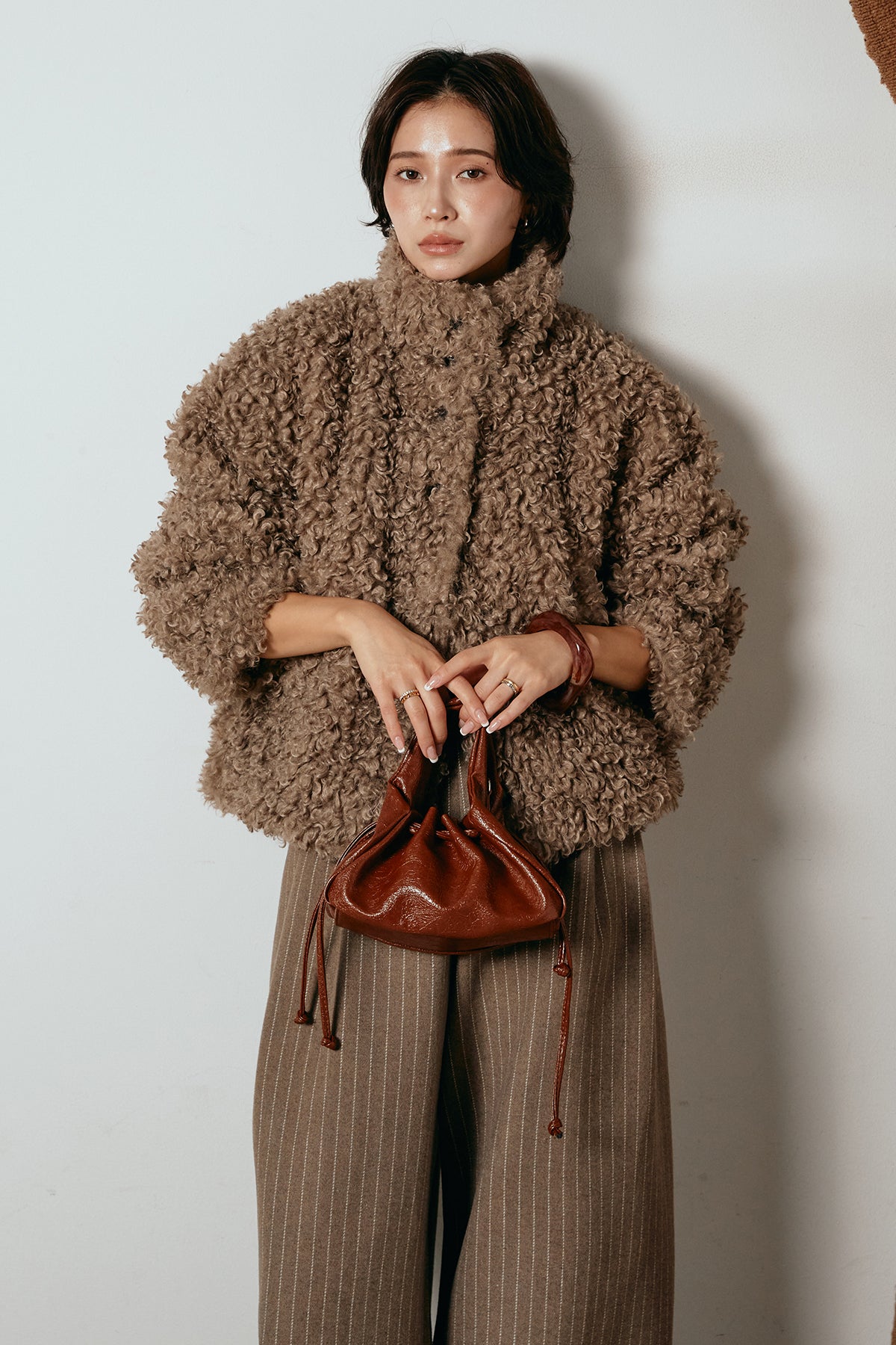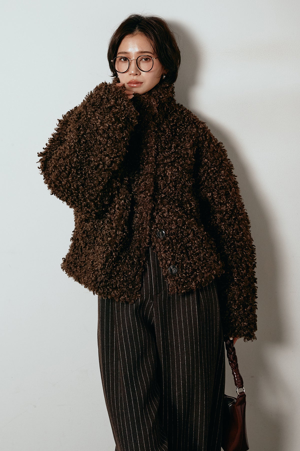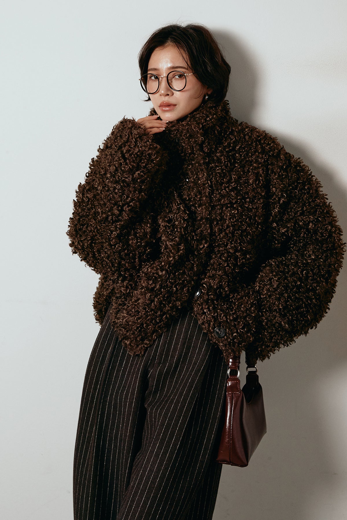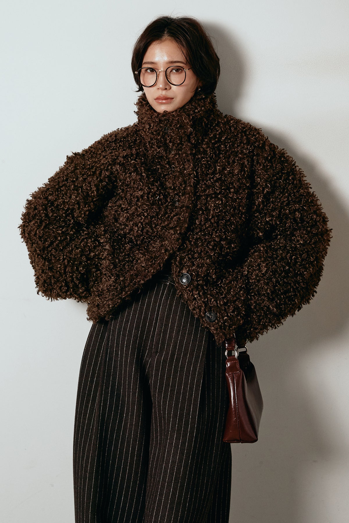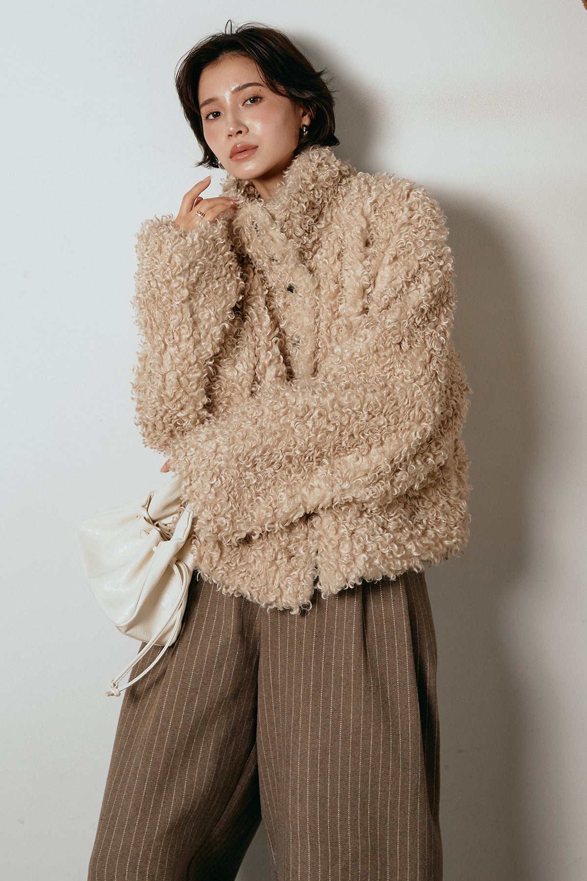 ふわふわとしたプードルファーが目を惹くミドル丈ジャケット。