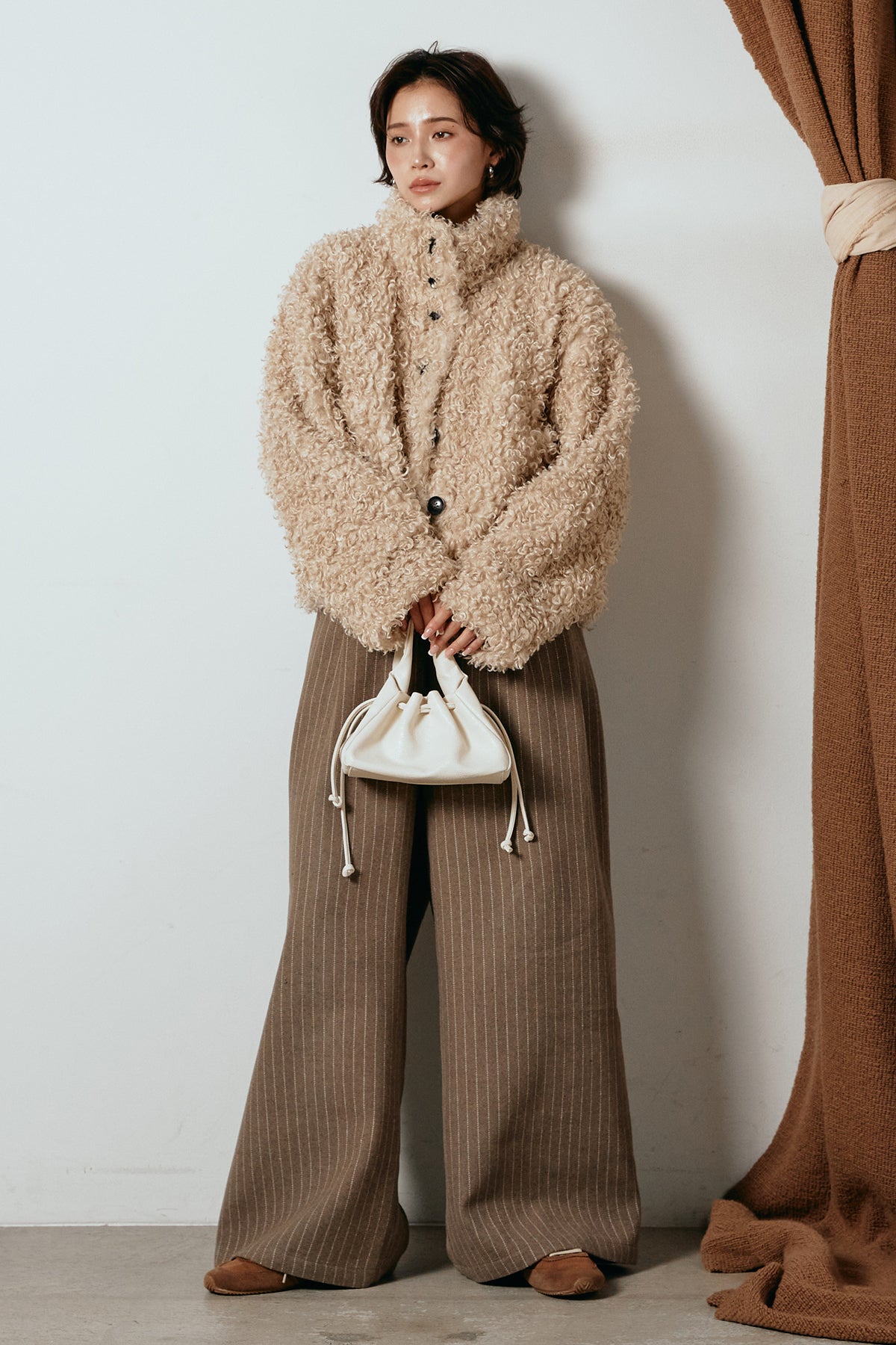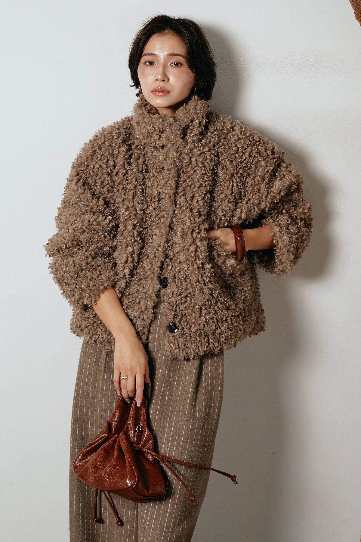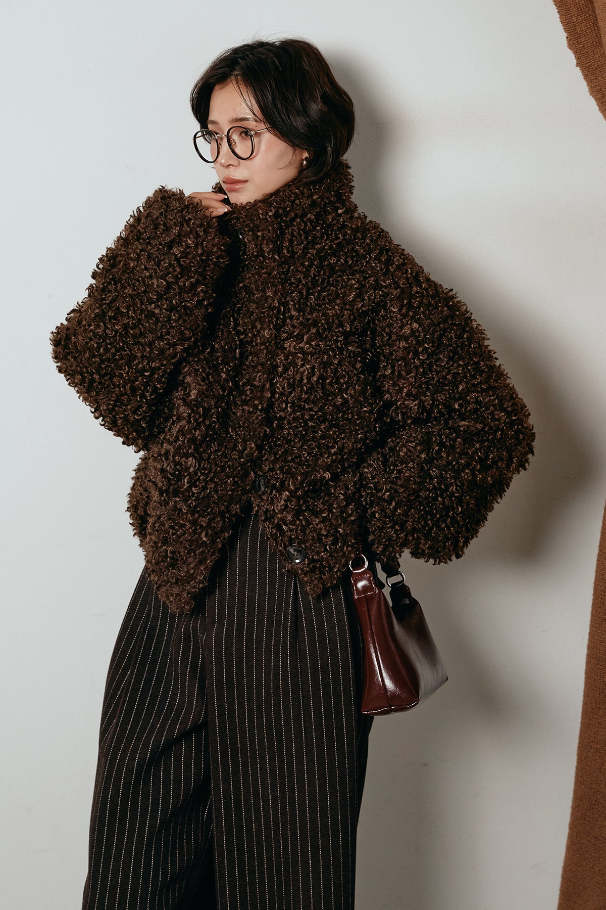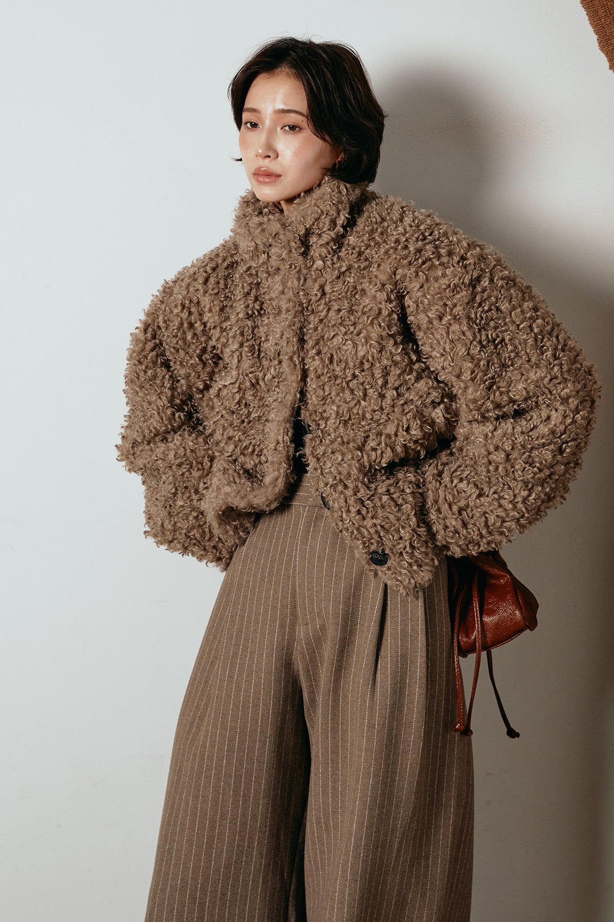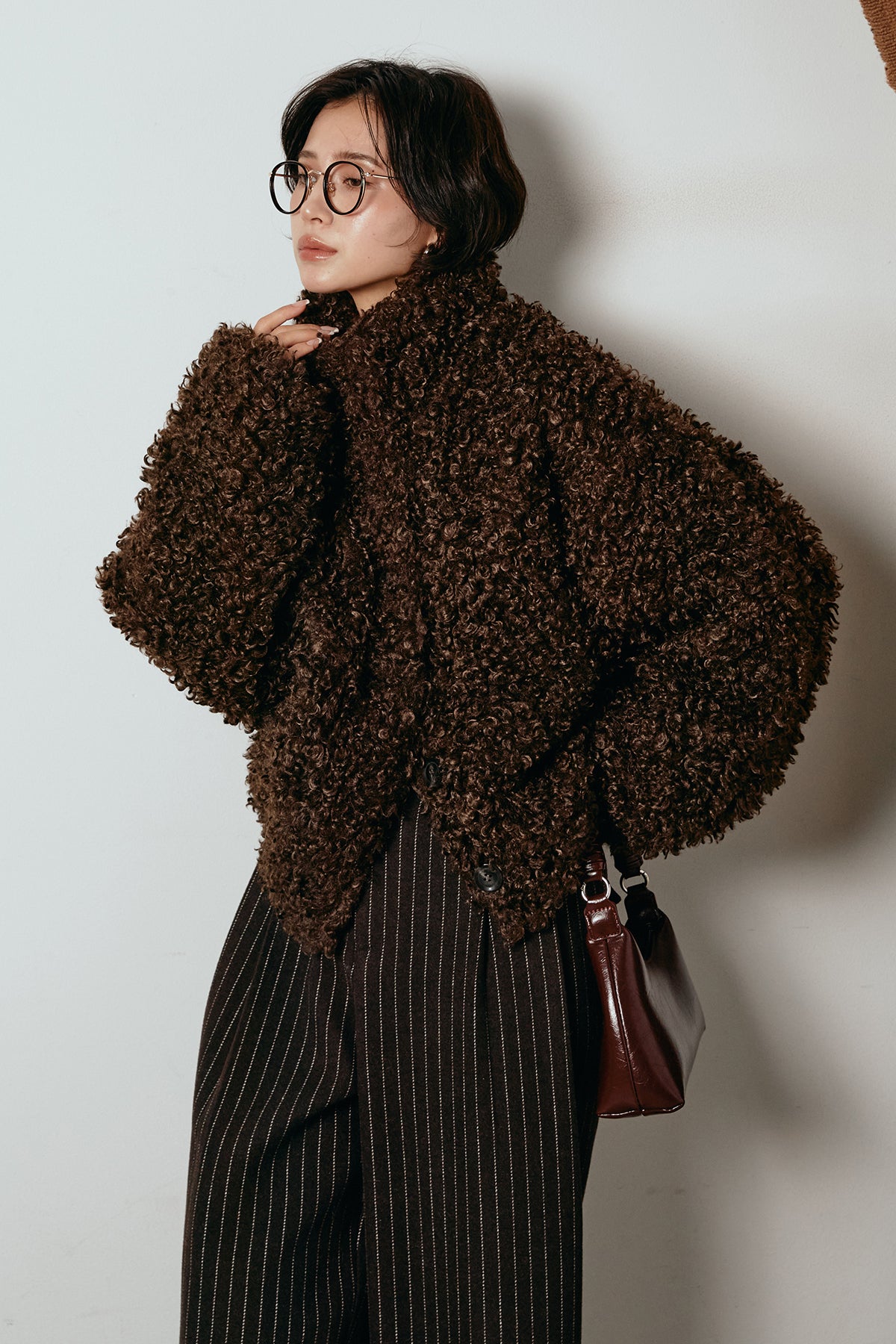 ふわふわとしたプードルファーが目を惹くミドル丈ジャケット。