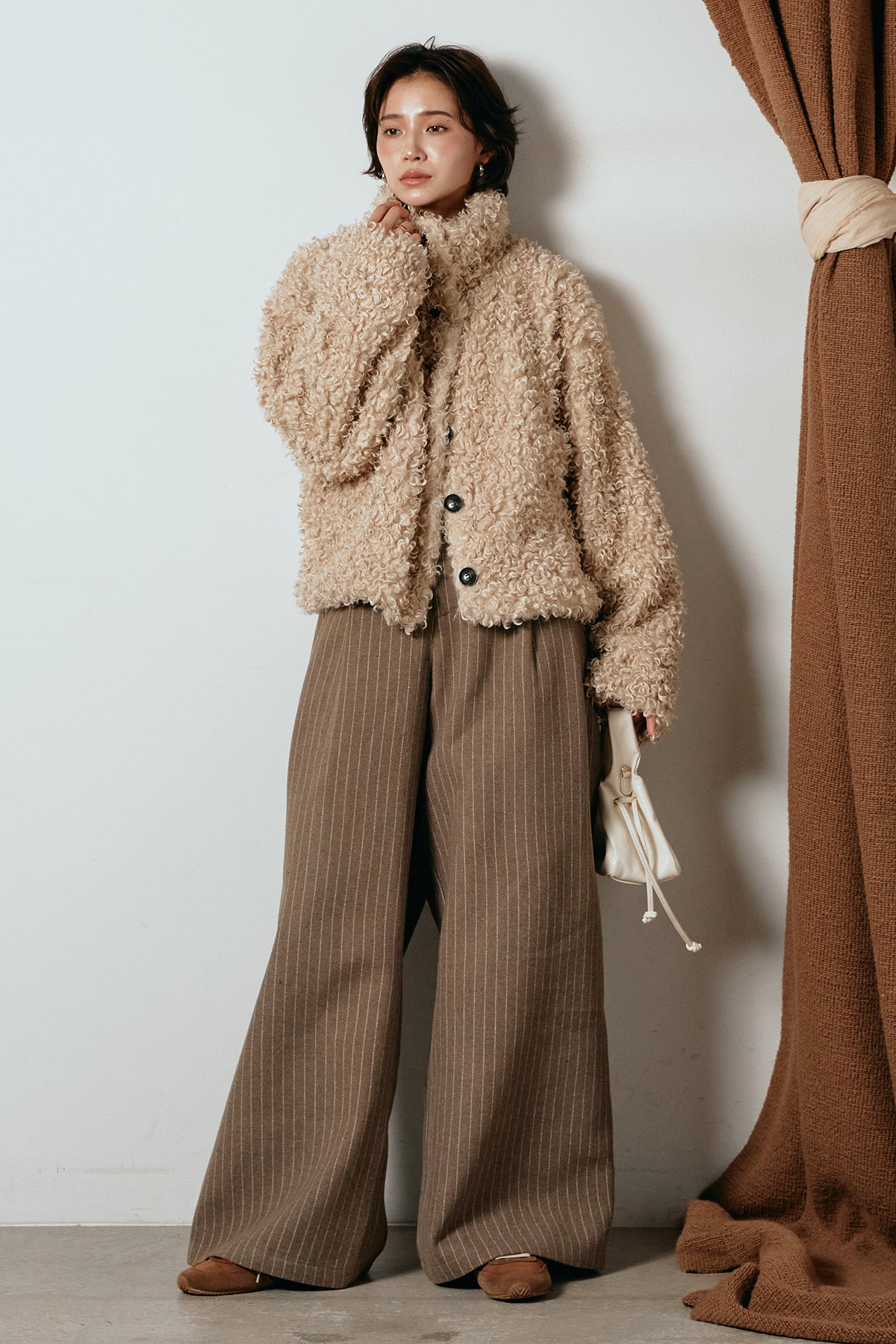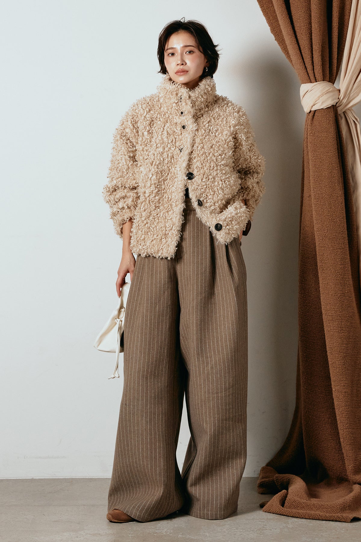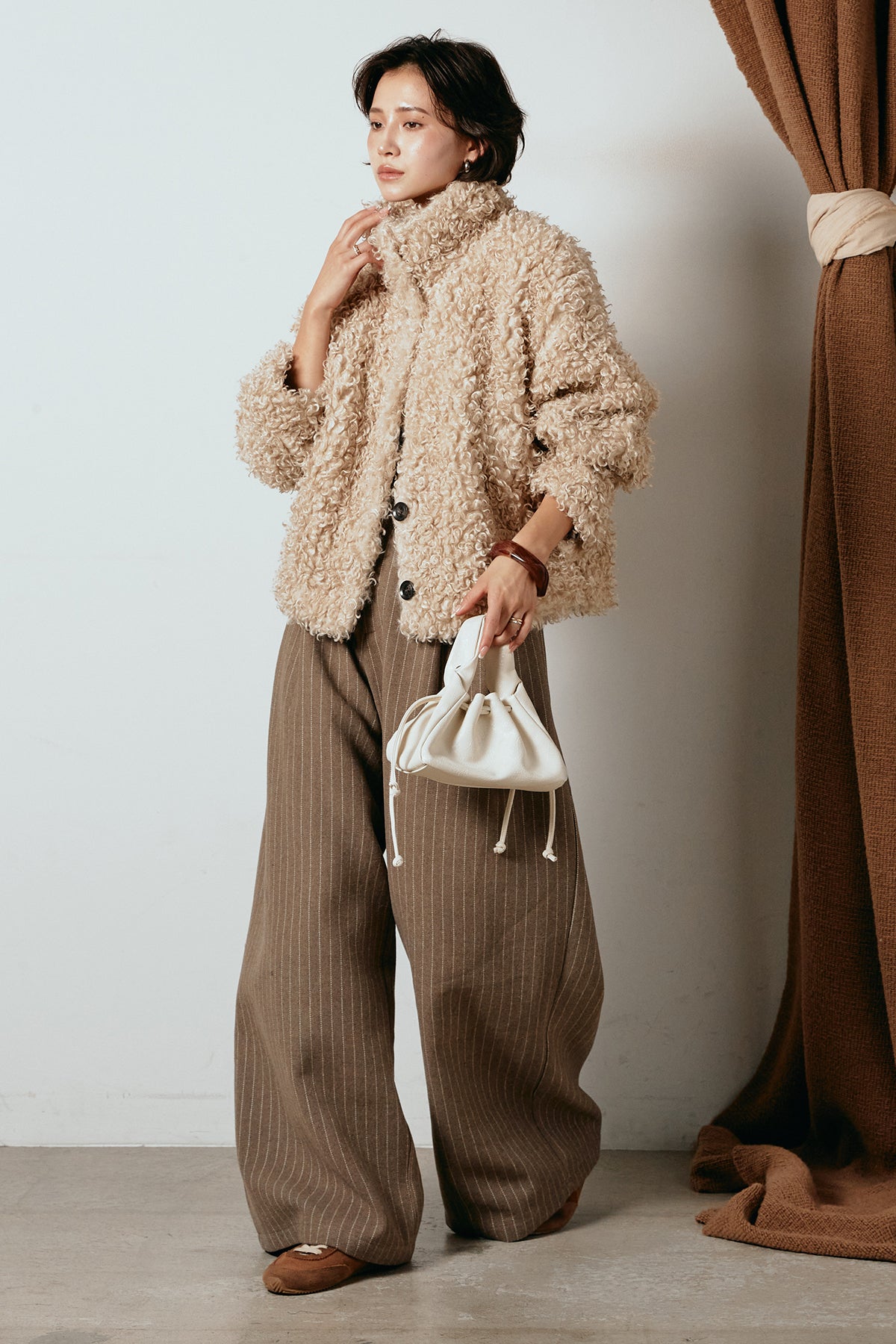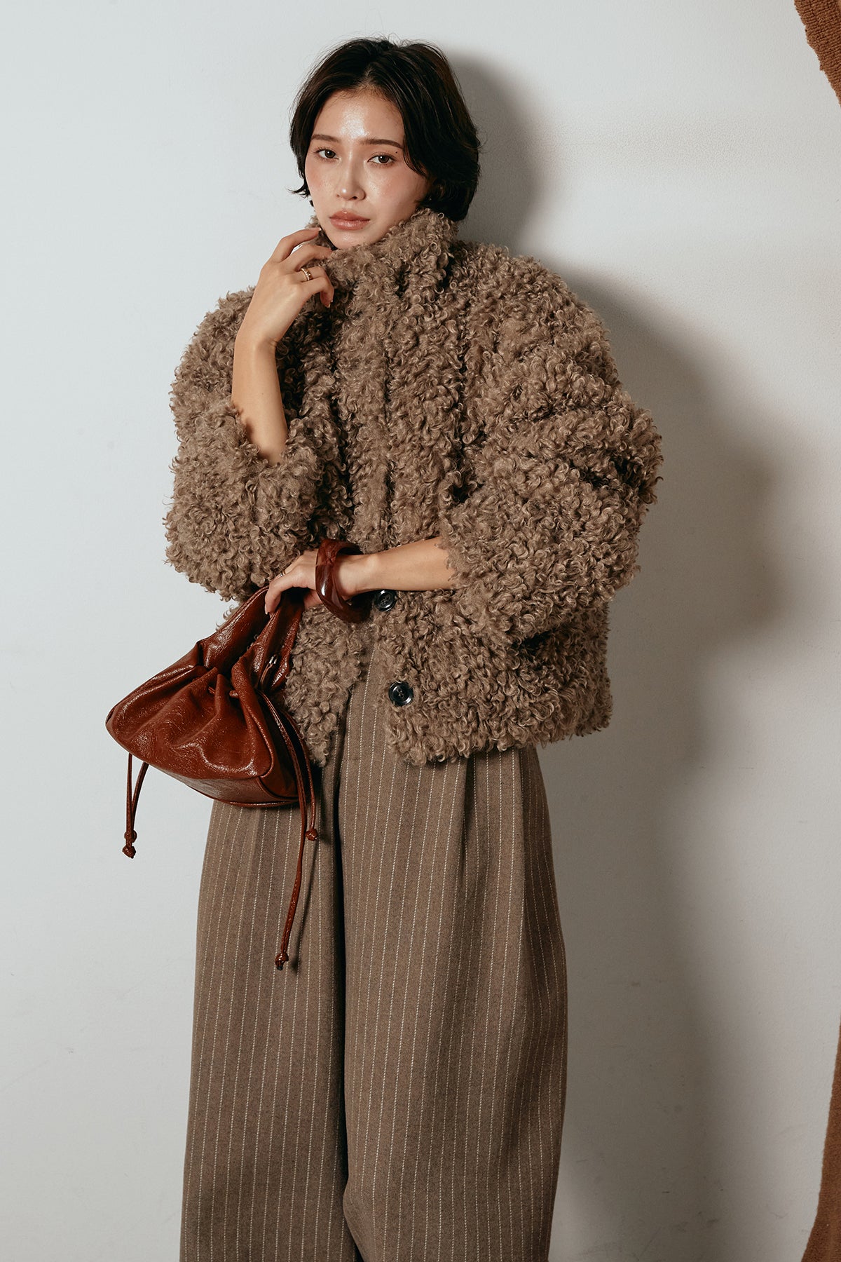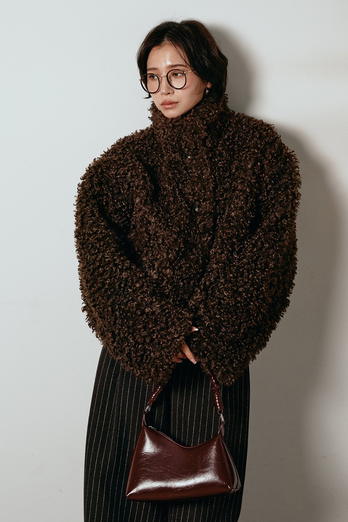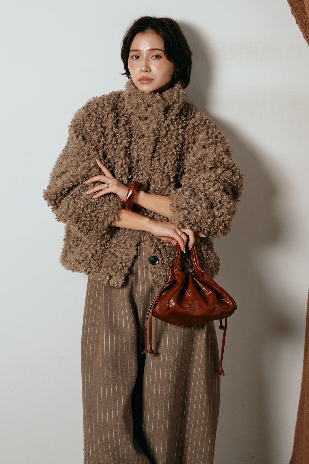 ふわふわとしたプードルファーが目を惹くミドル丈ジャケット。