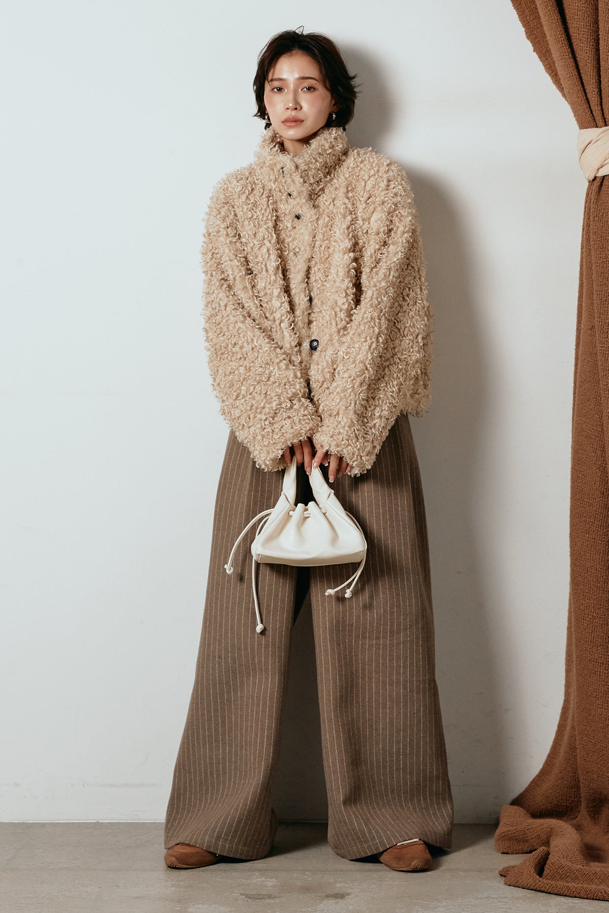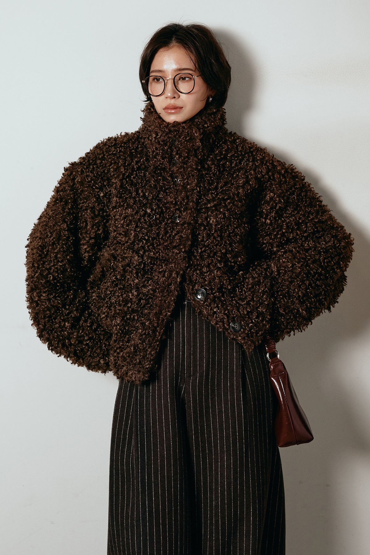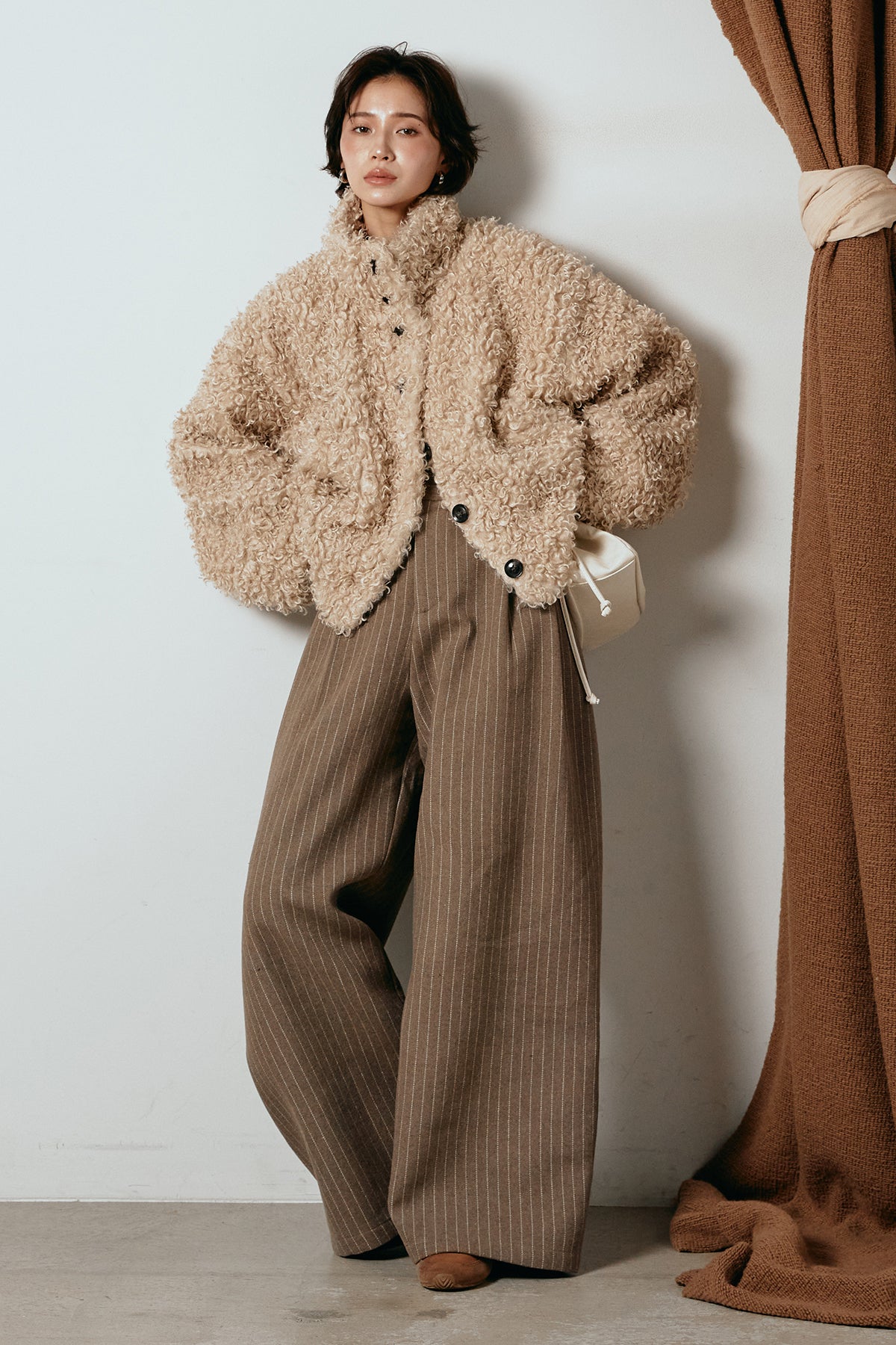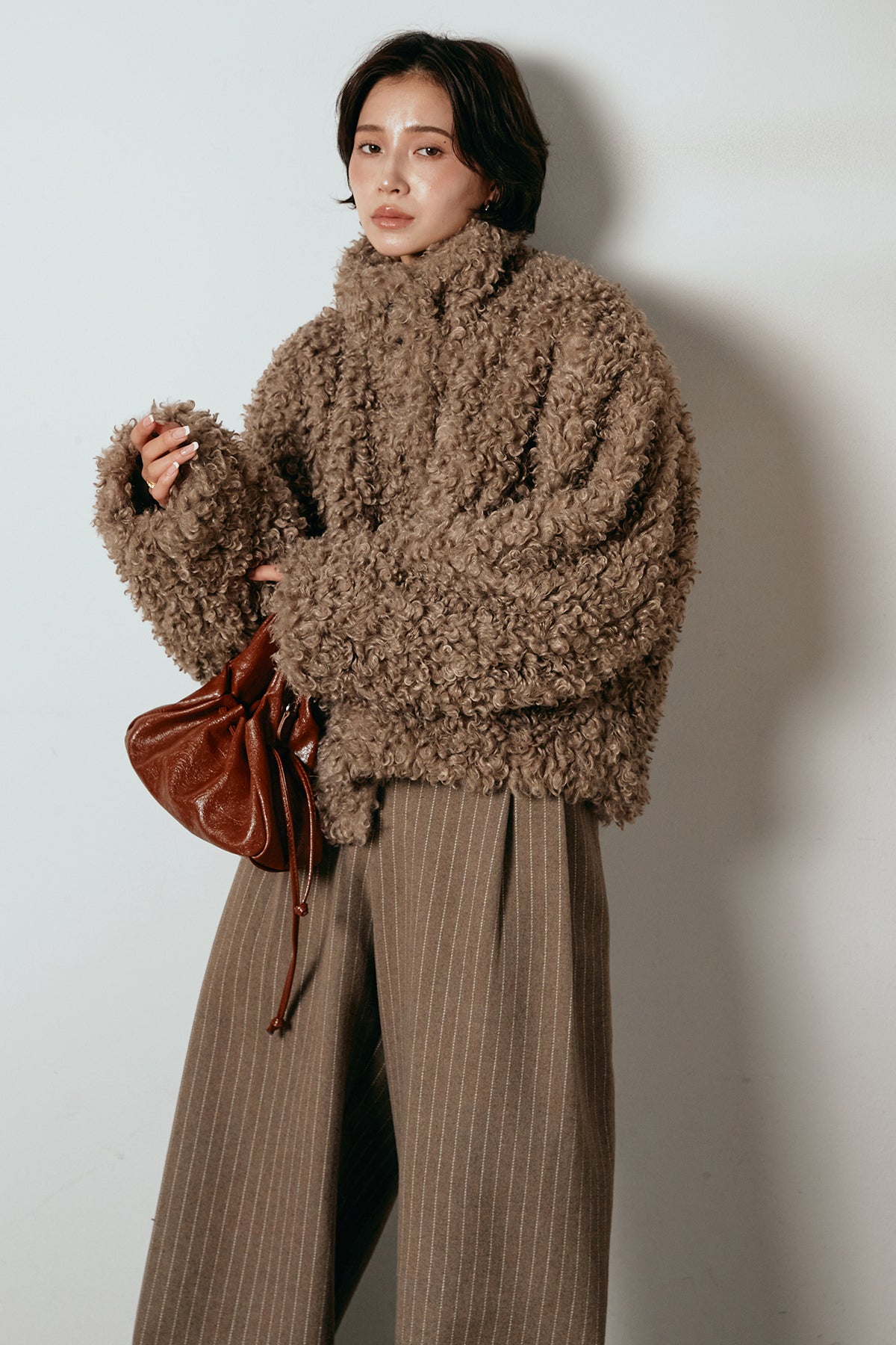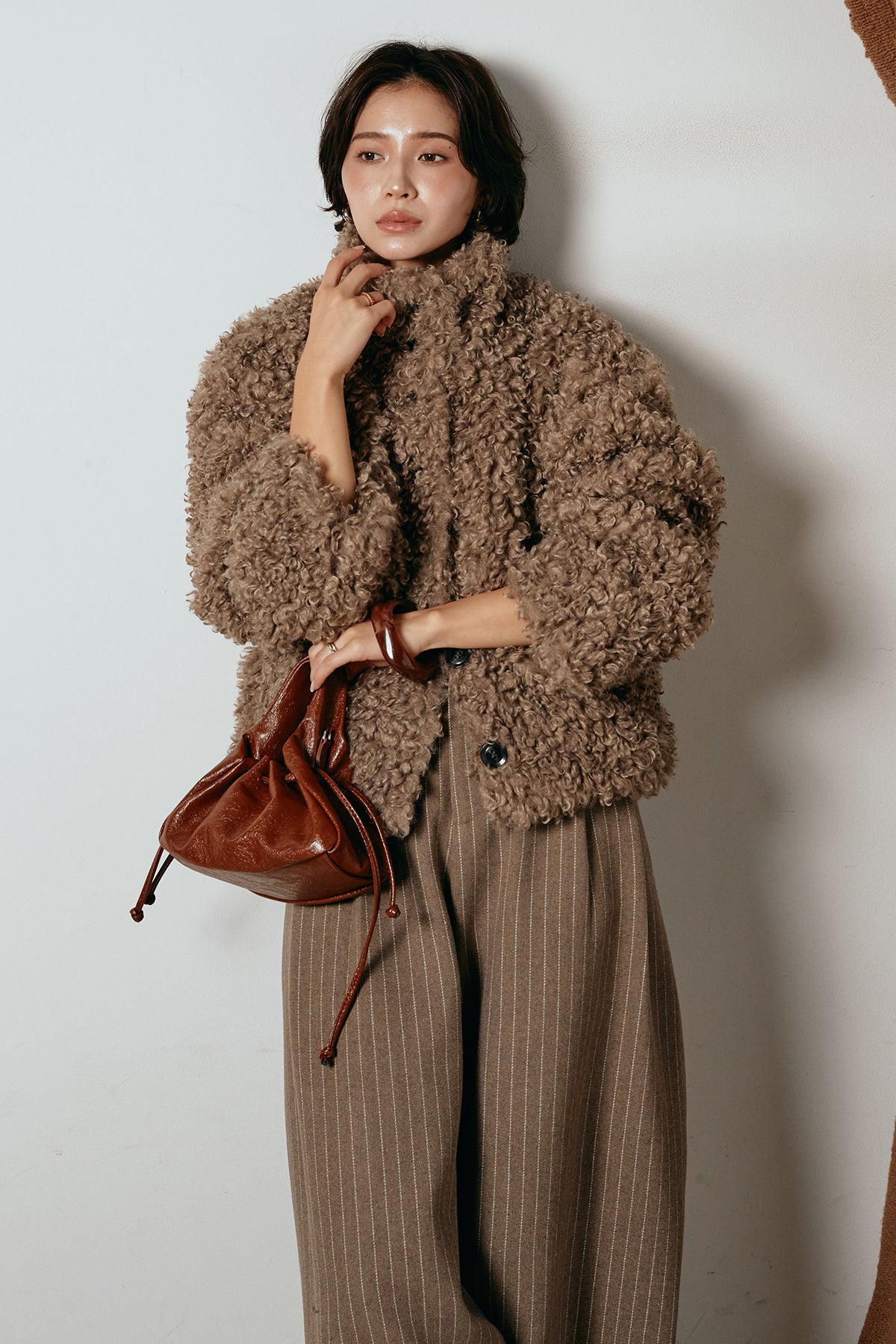 ふわふわとしたプードルファーが目を惹くミドル丈ジャケット。