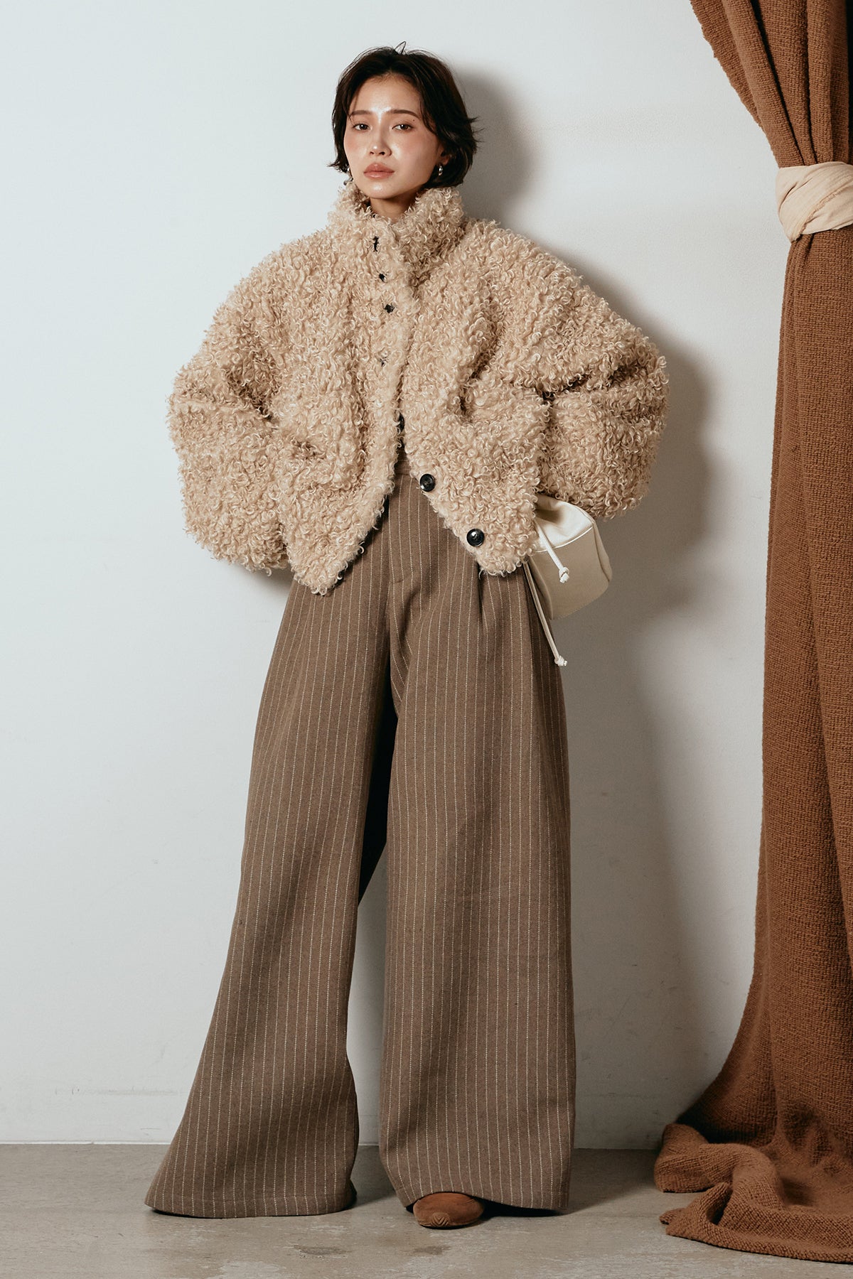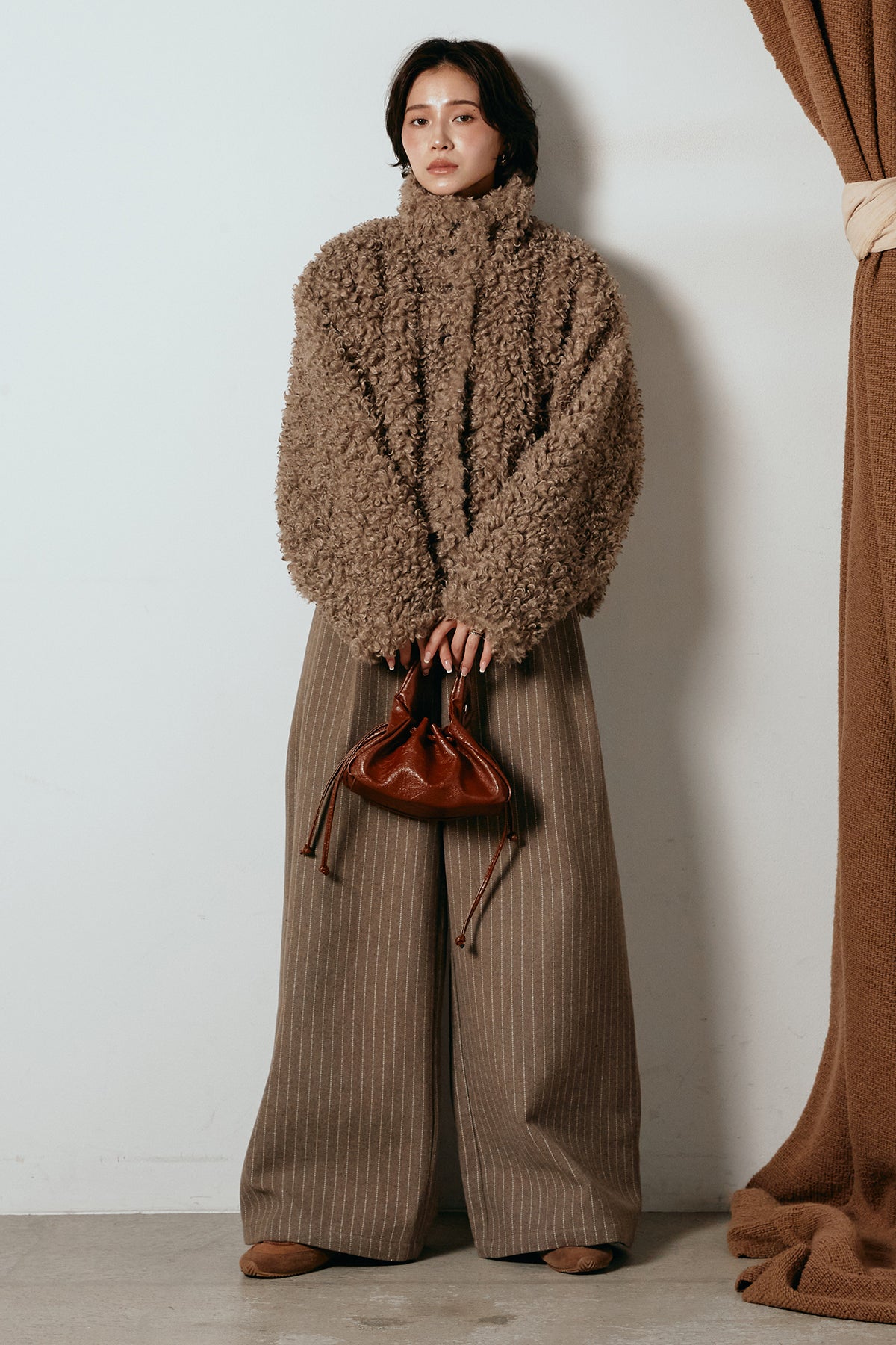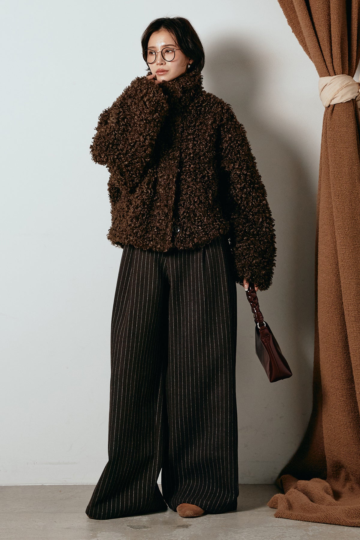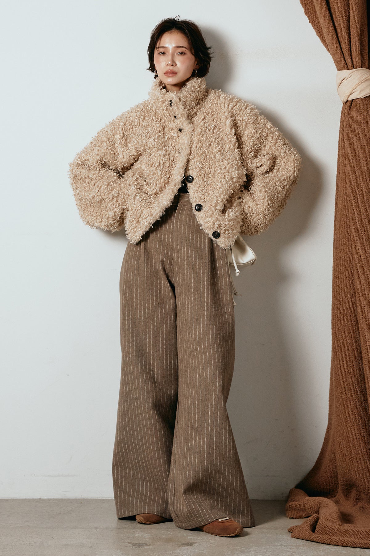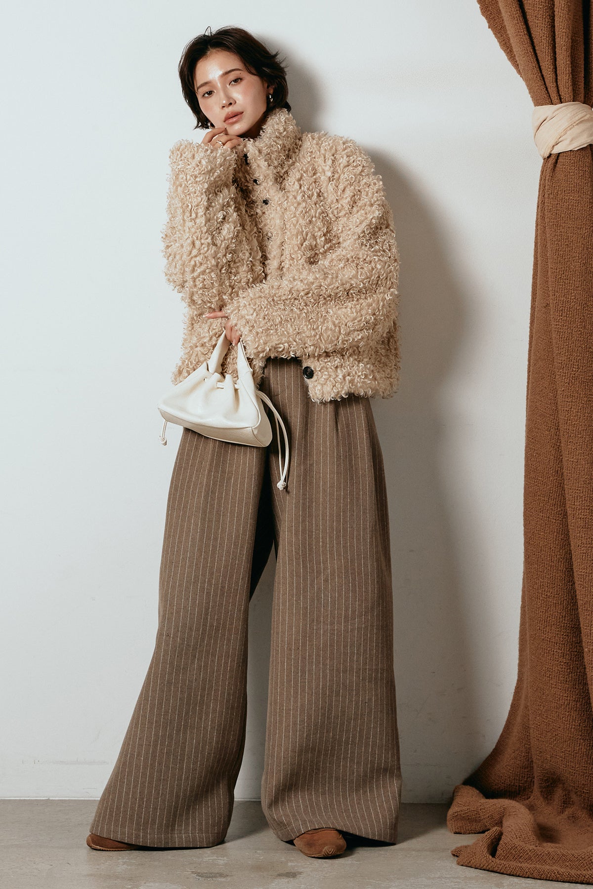 ふわふわとしたプードルファーが目を惹くミドル丈ジャケット。