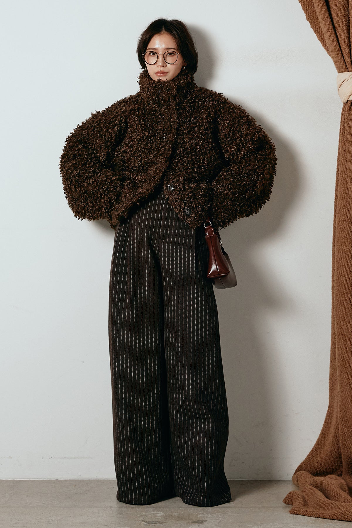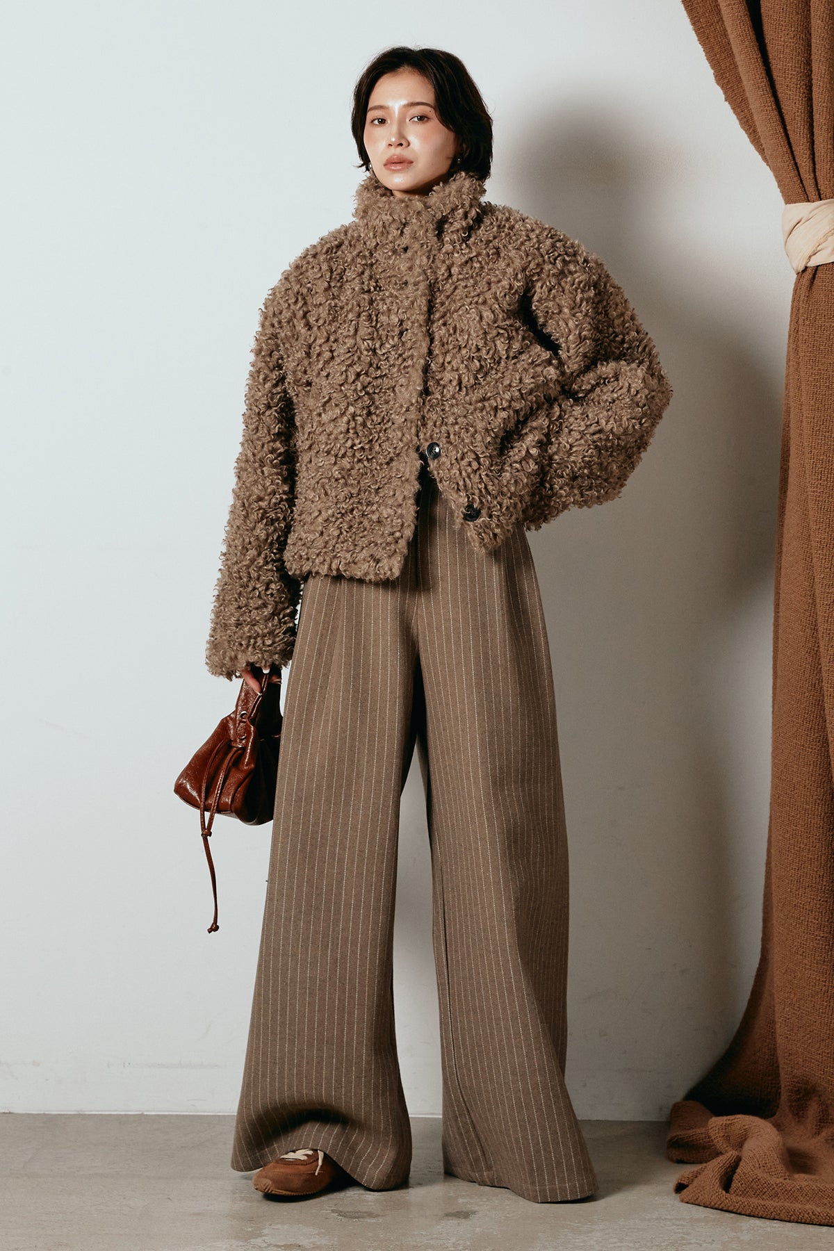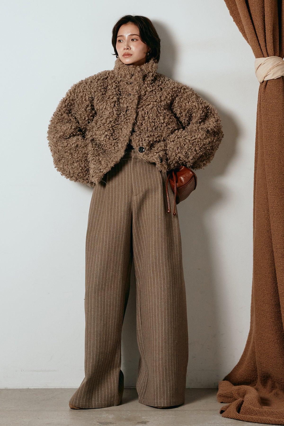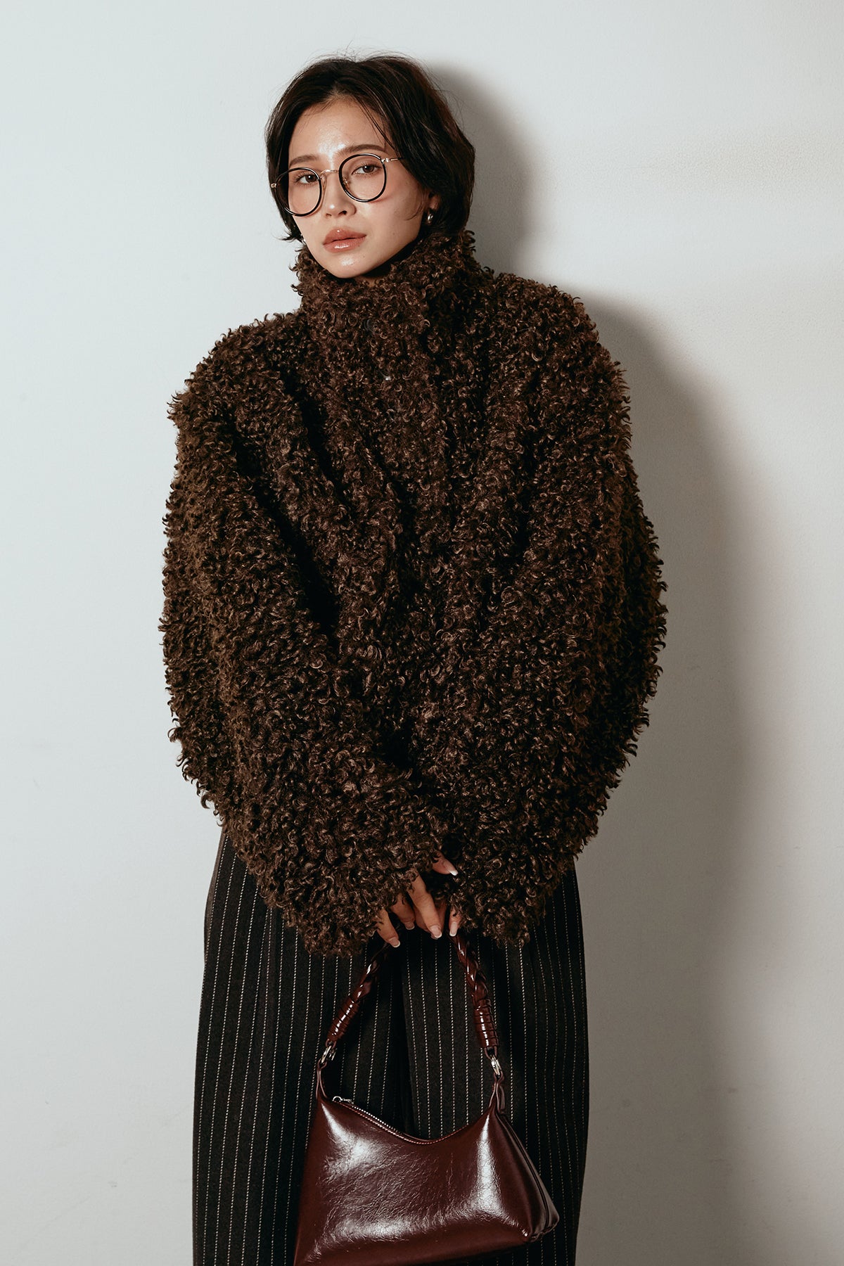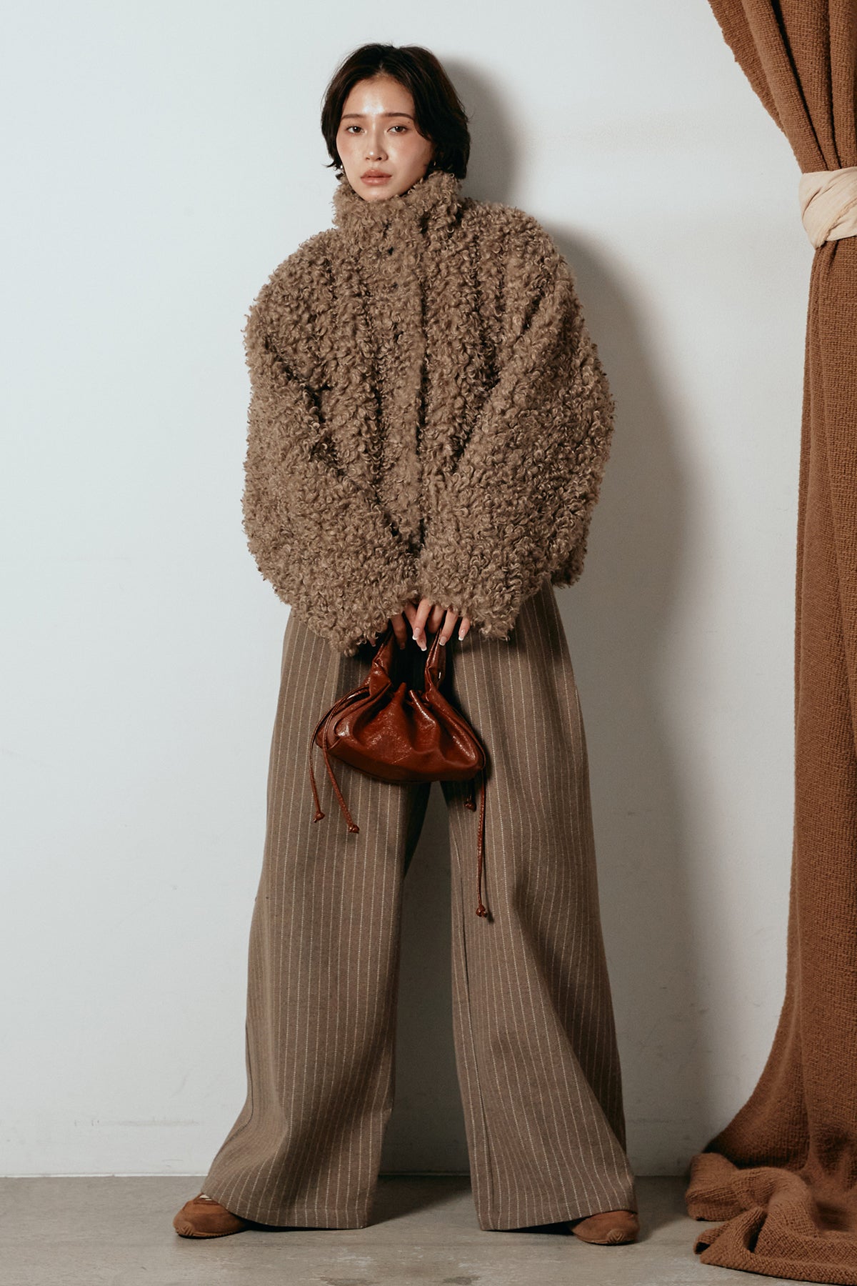 ふわふわとしたプードルファーが目を惹くミドル丈ジャケット。
