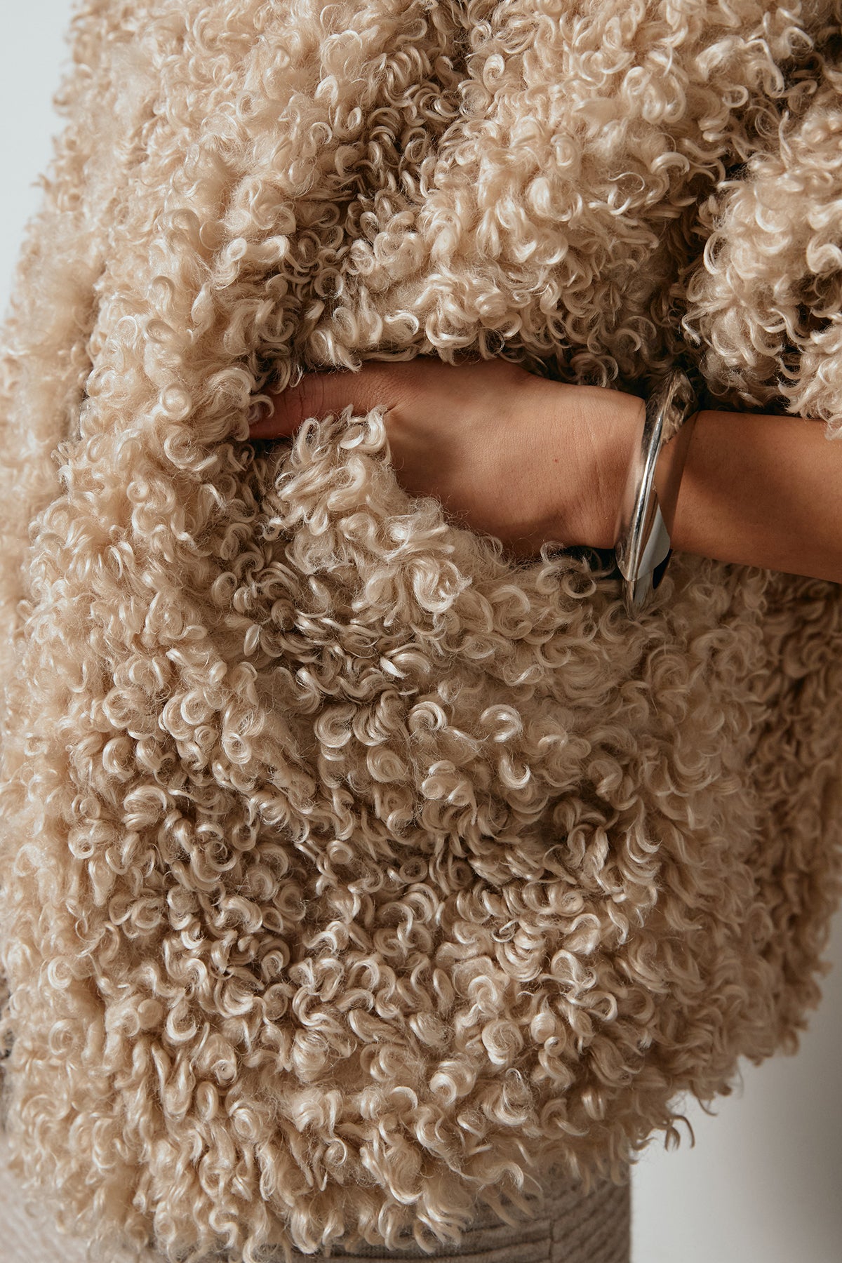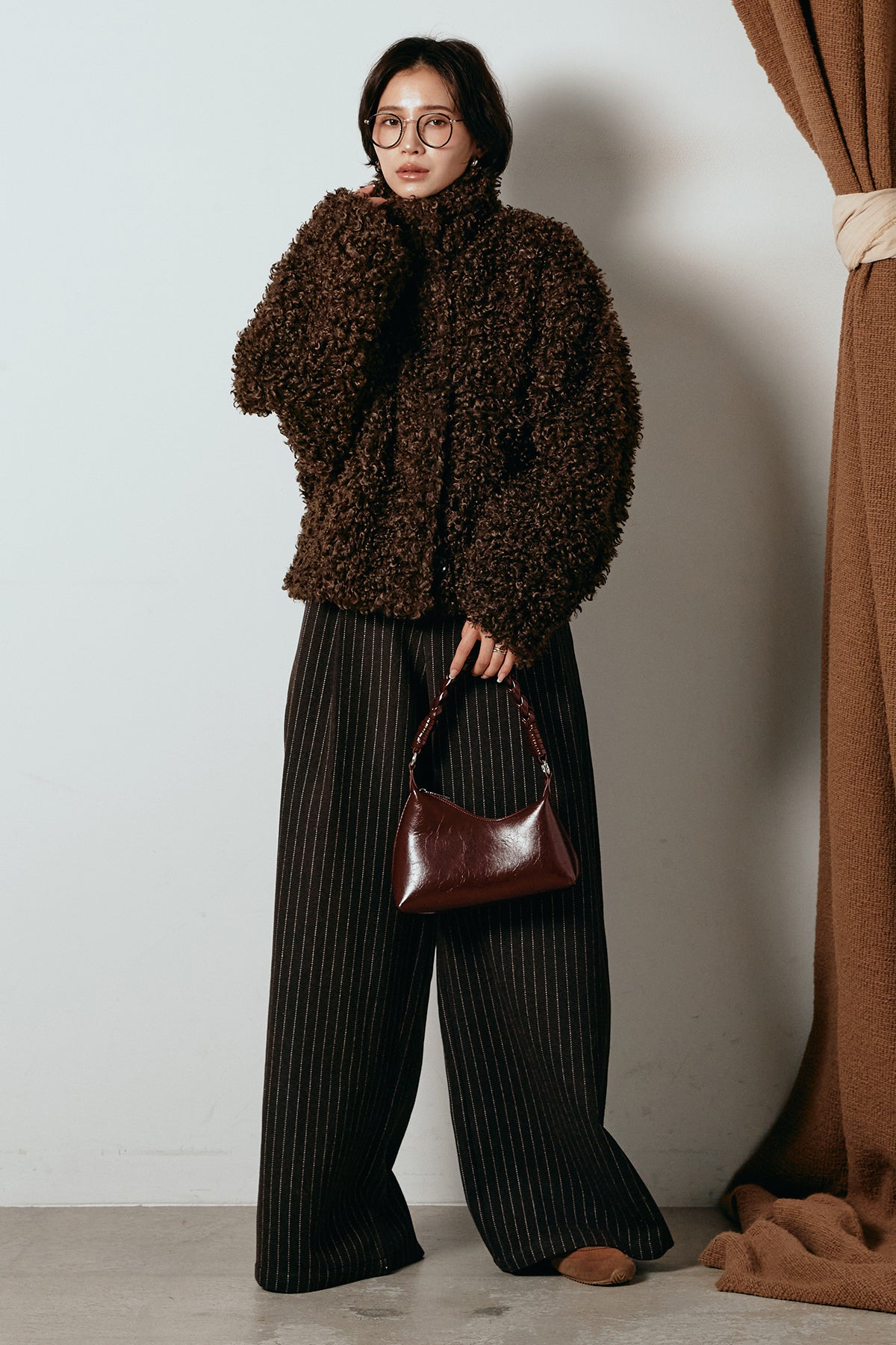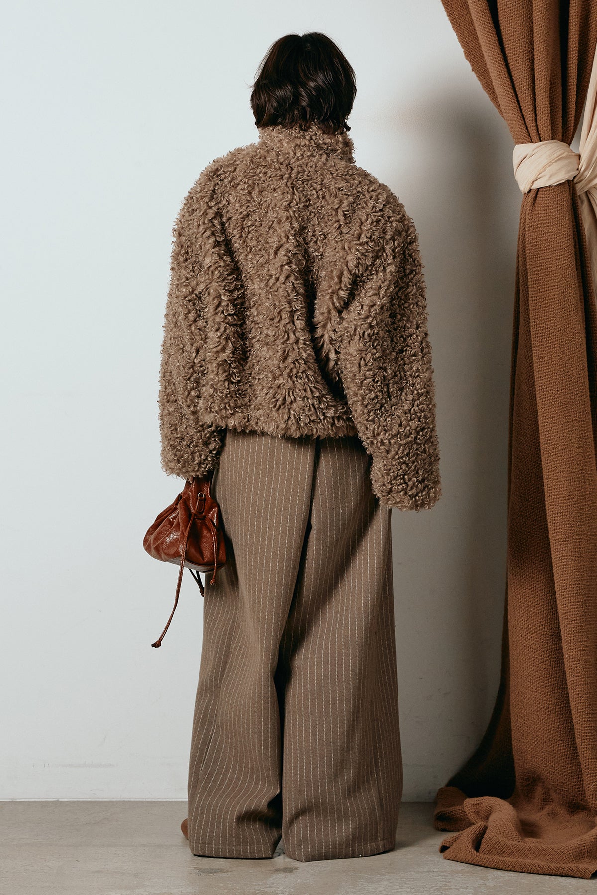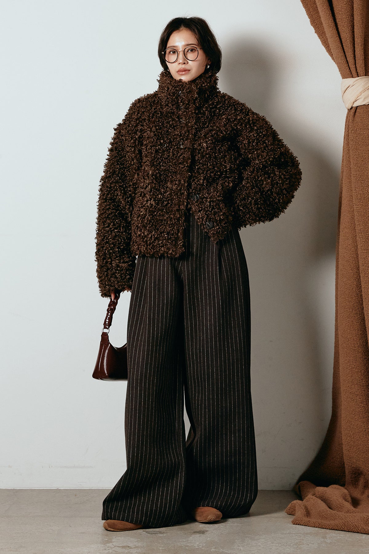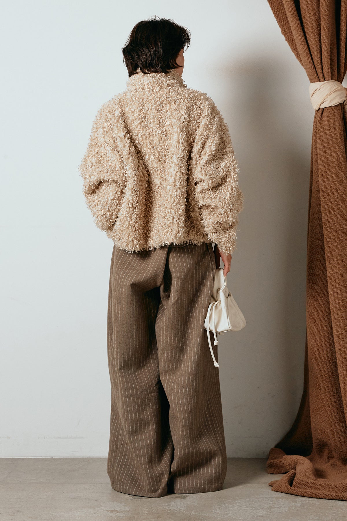 ふわふわとしたプードルファーが目を惹くミドル丈ジャケット。