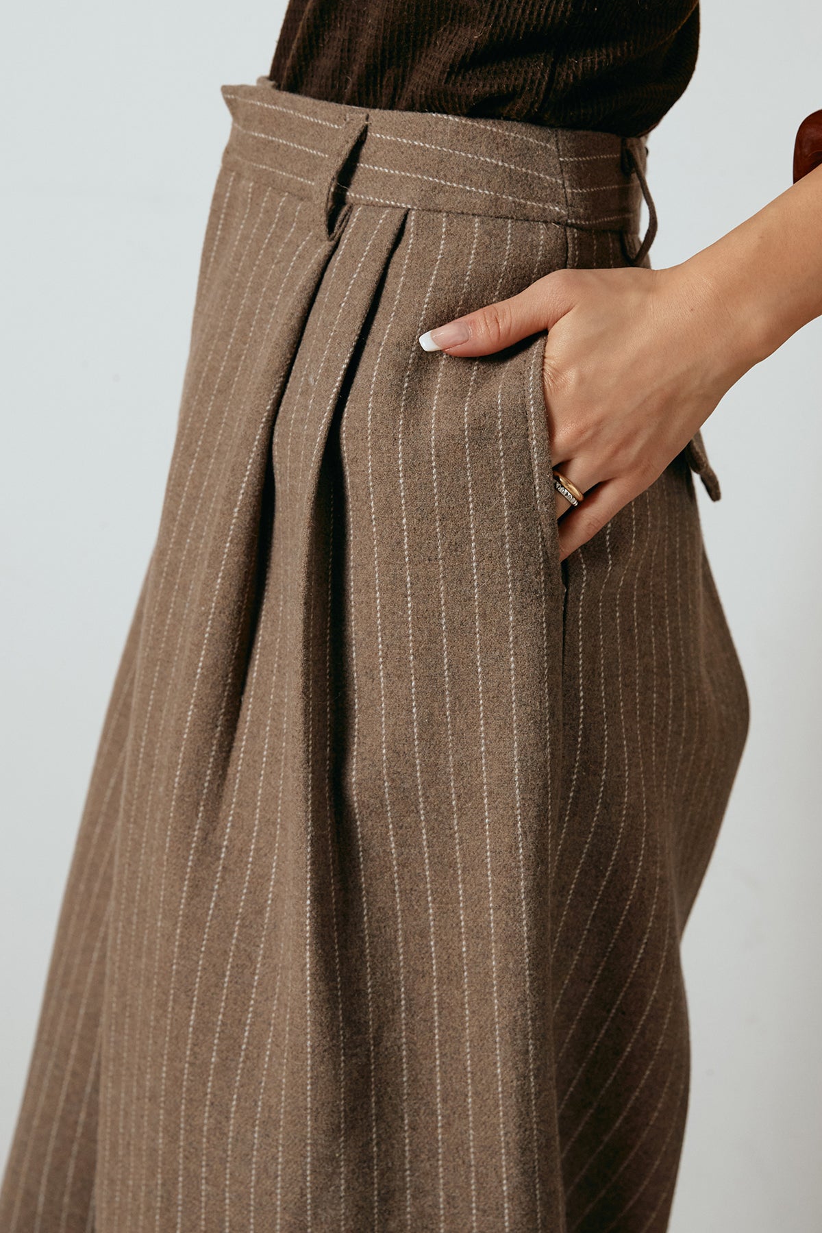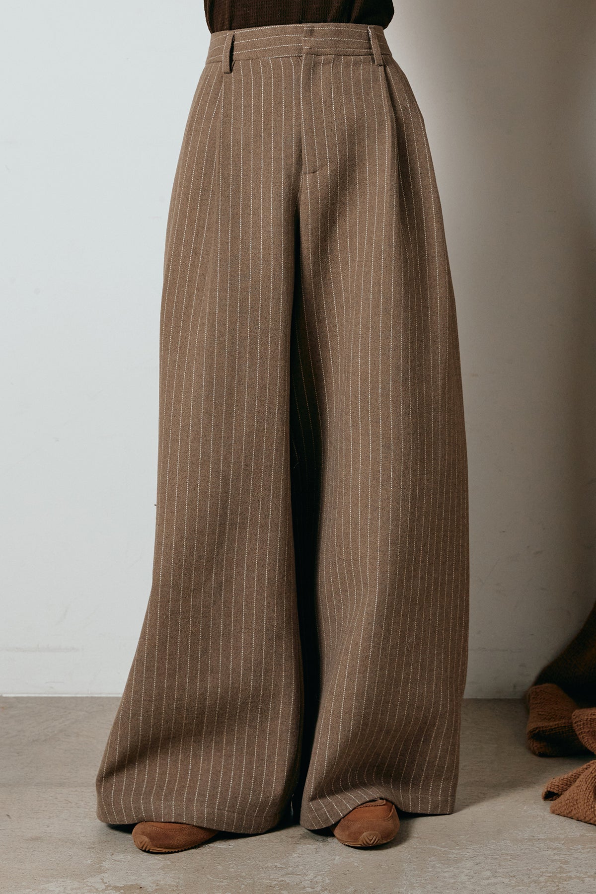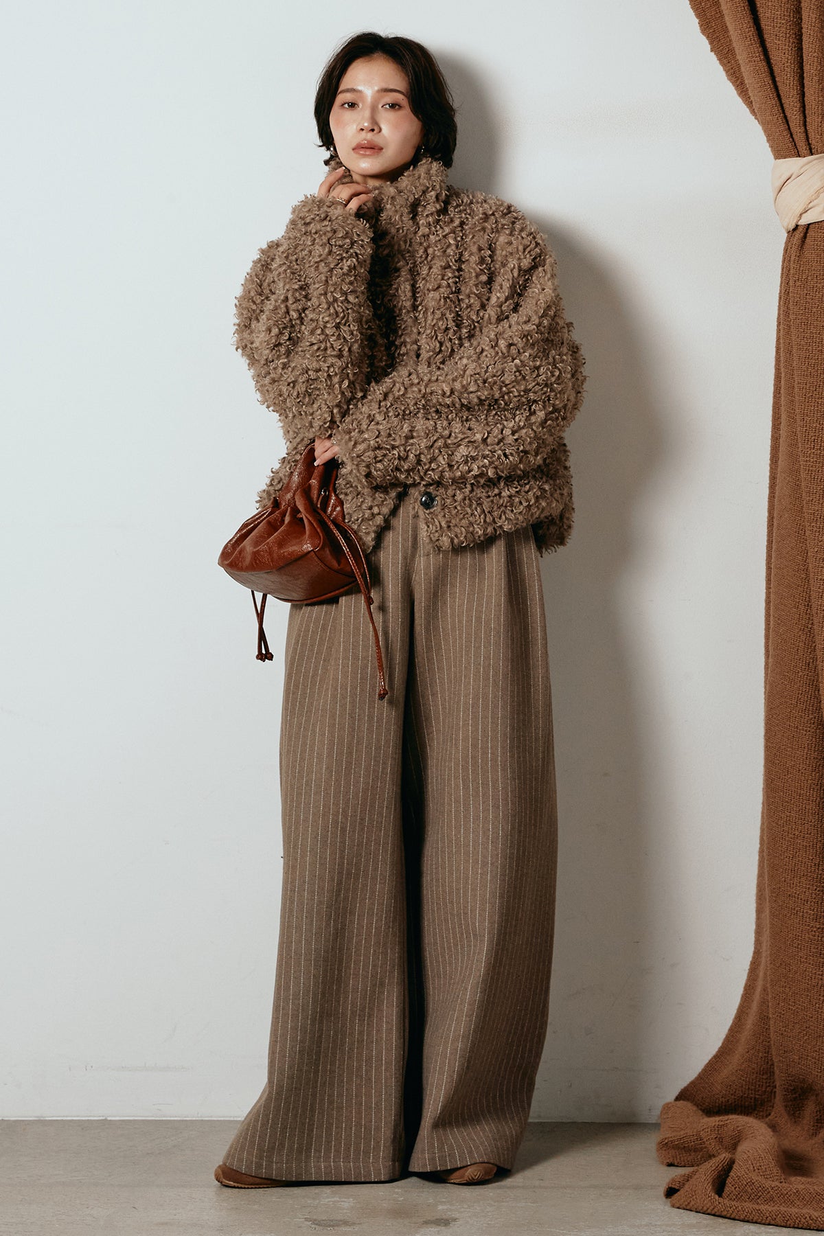 ほのかな起毛感とストライプ柄が絶妙にマッチしたウールライクパンツ。
