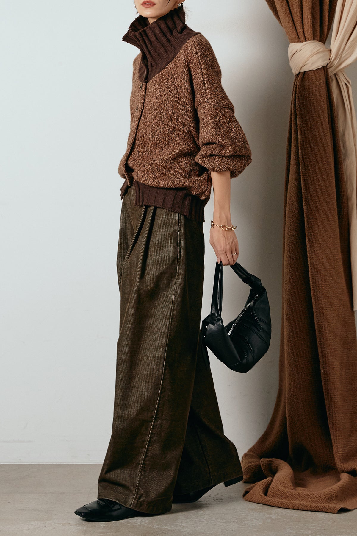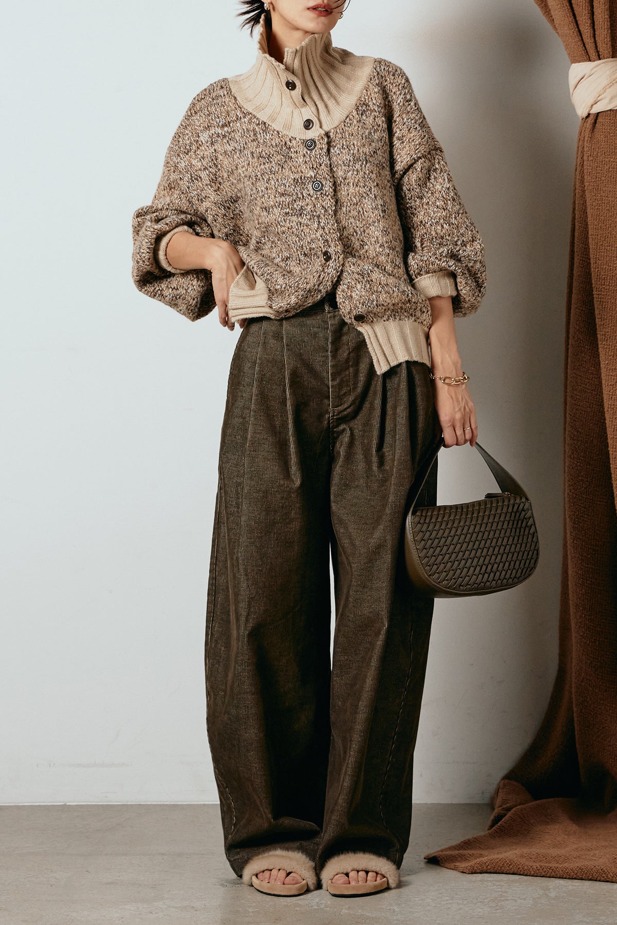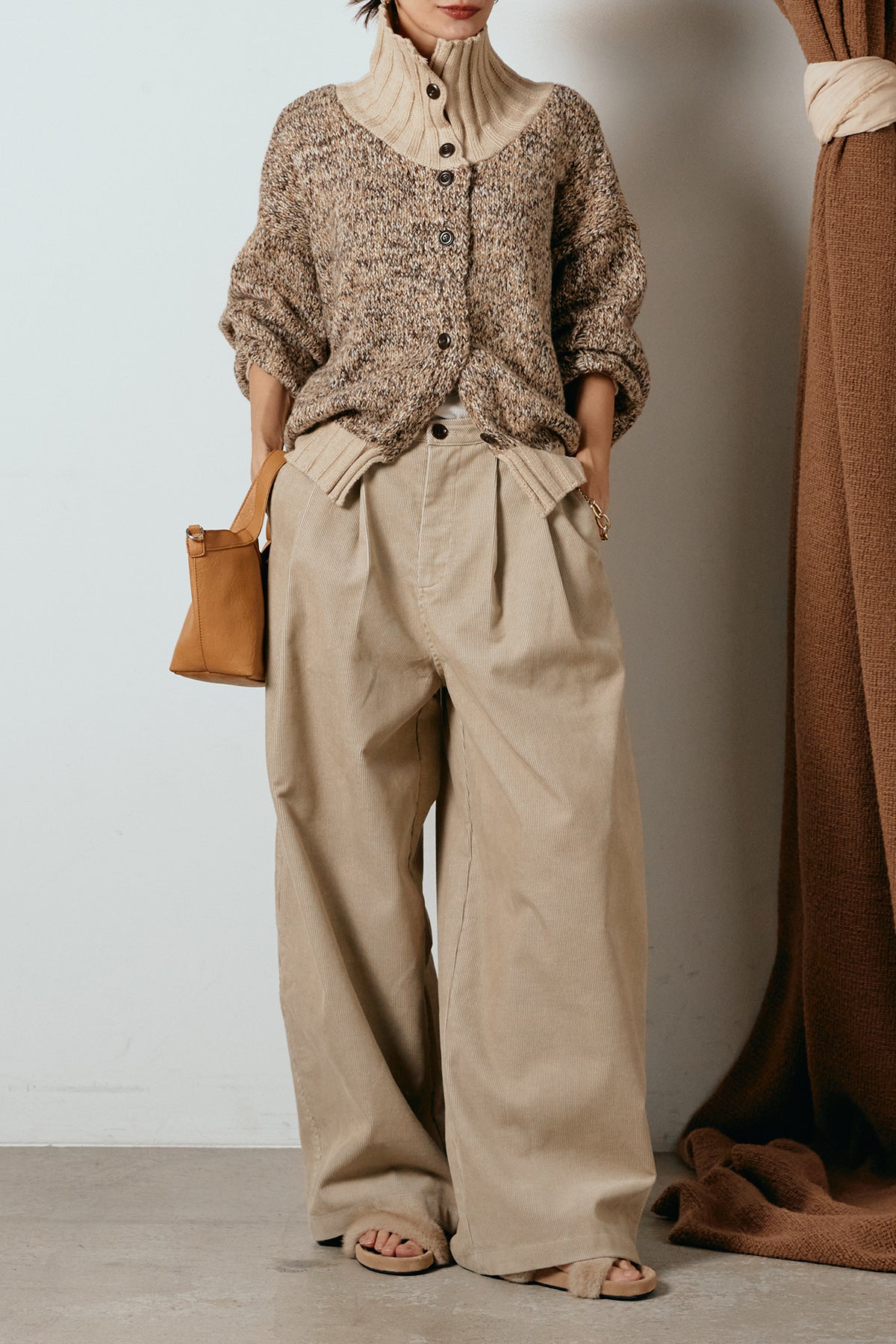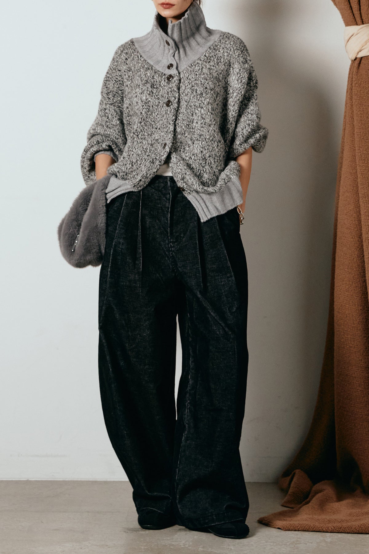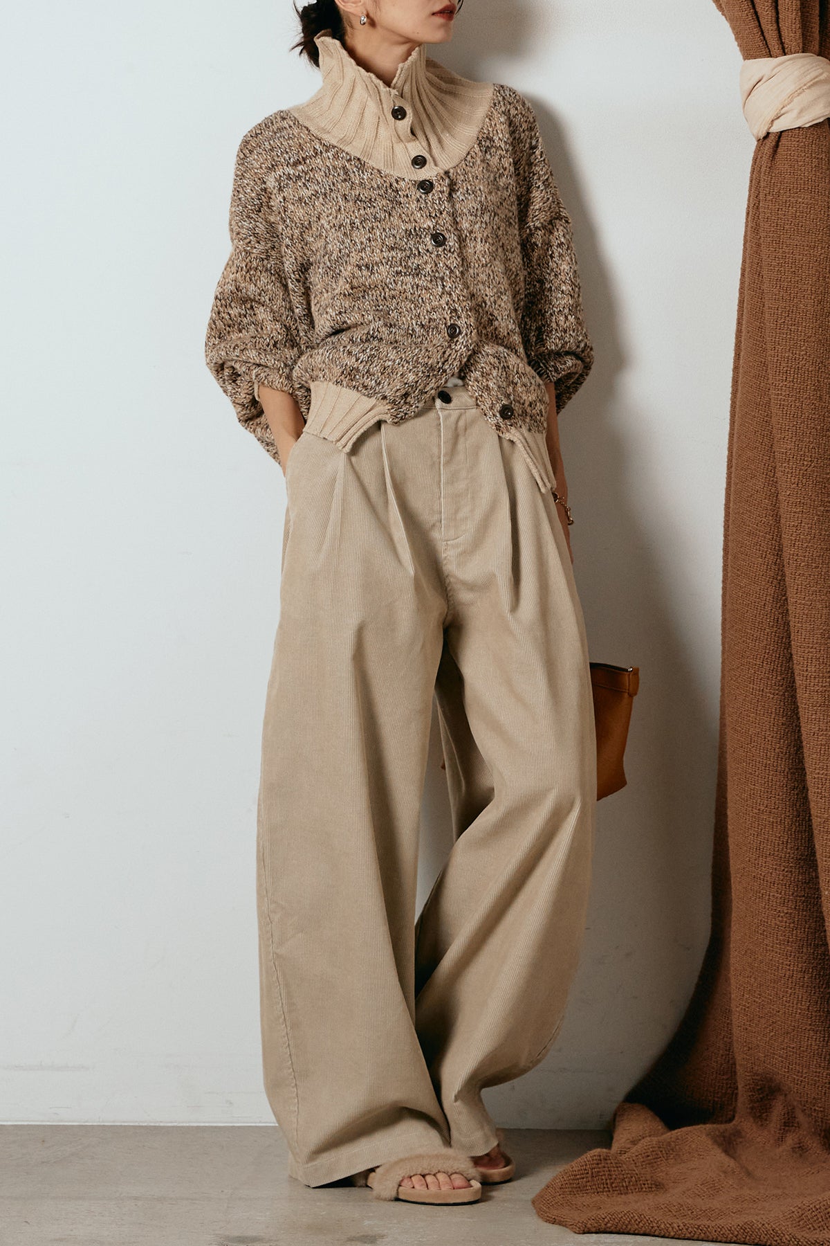[SET]ハイネックミックスニットカーディガン+フロントタック入りコーデュロイパンツ(2set)