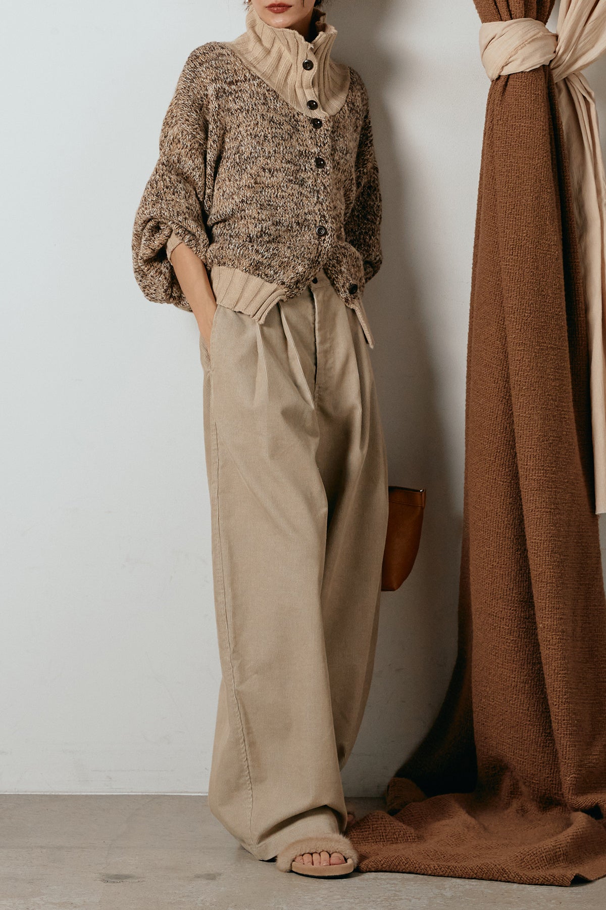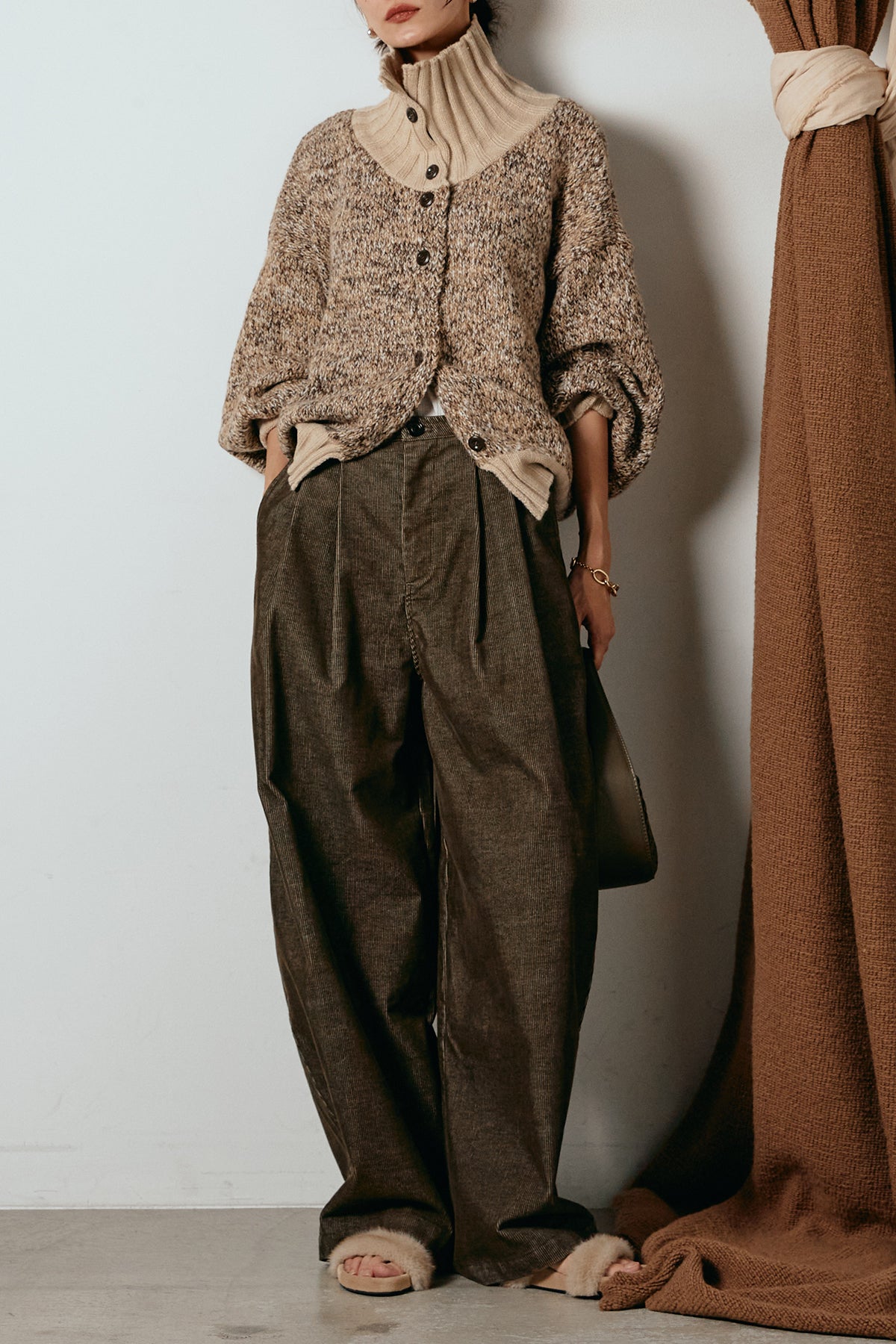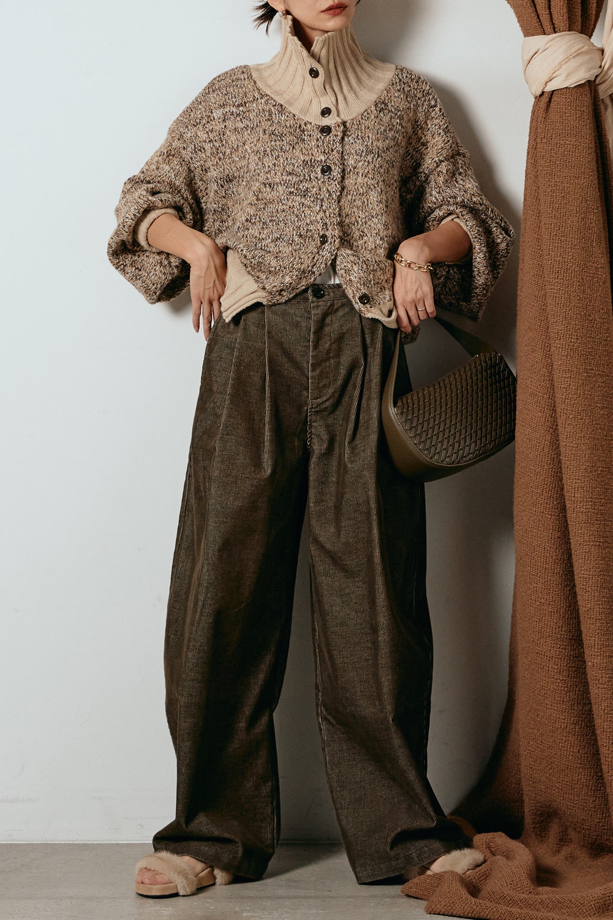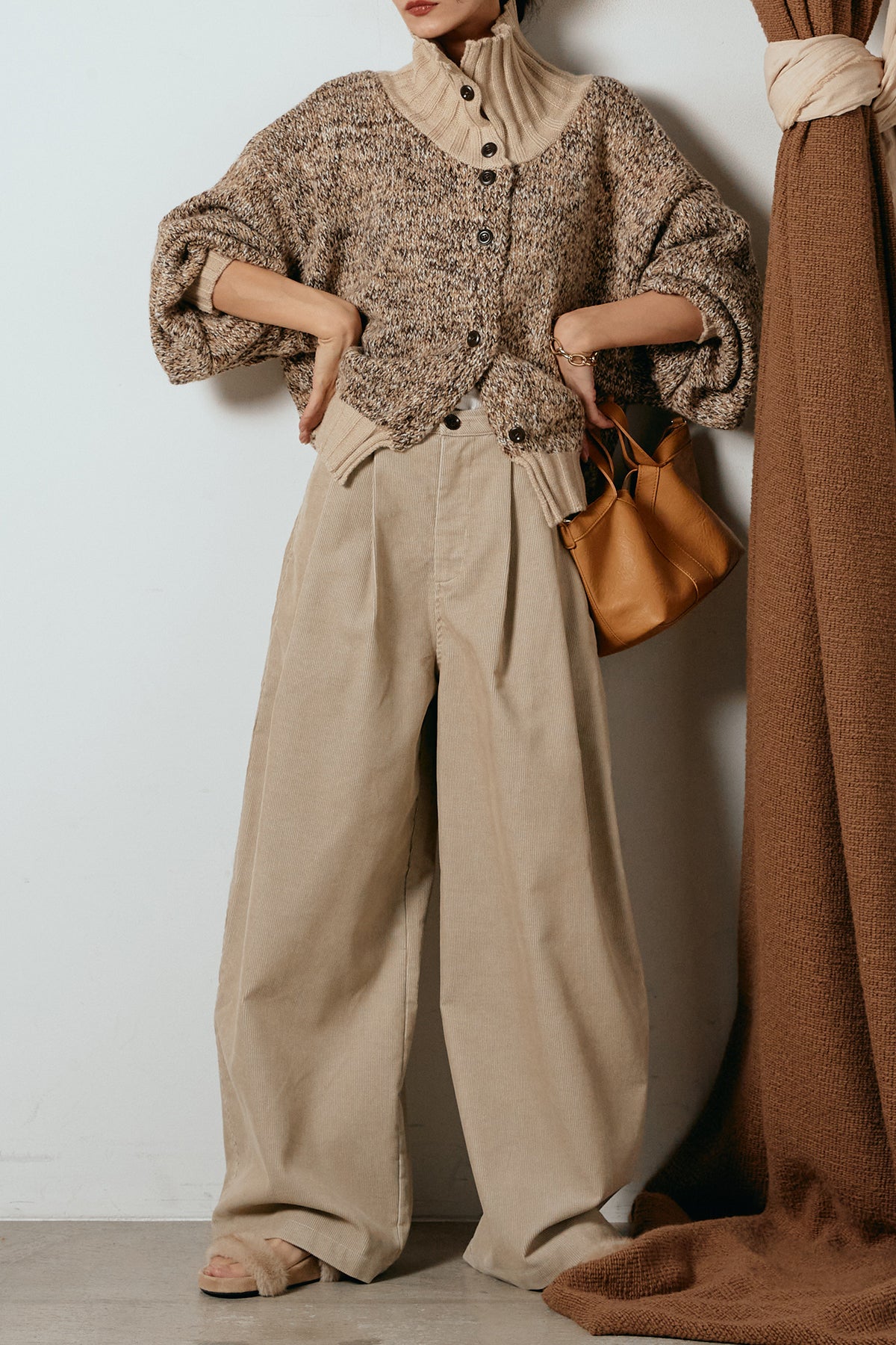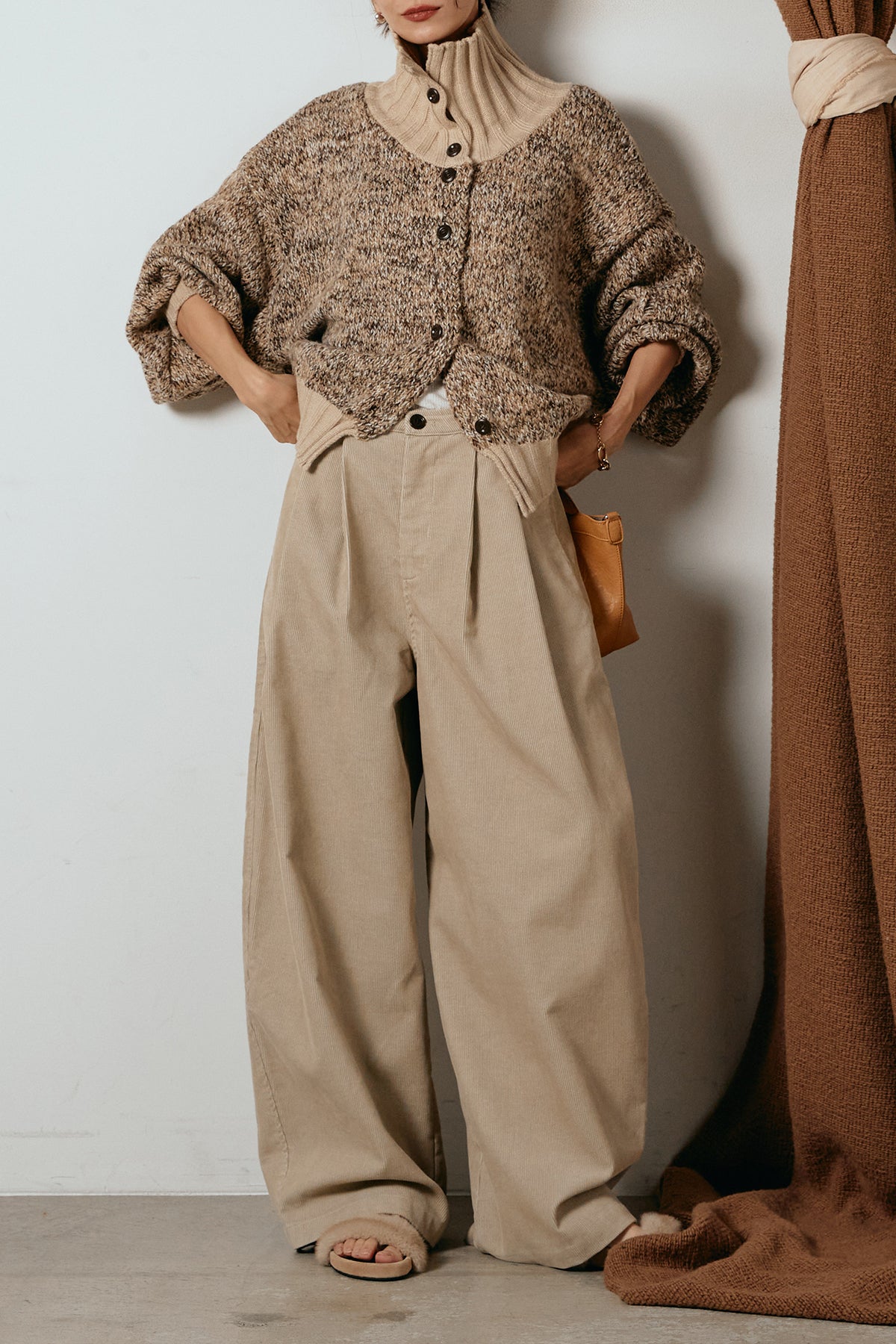 [SET]ハイネックミックスニットカーディガン+フロントタック入りコーデュロイパンツ(2set)