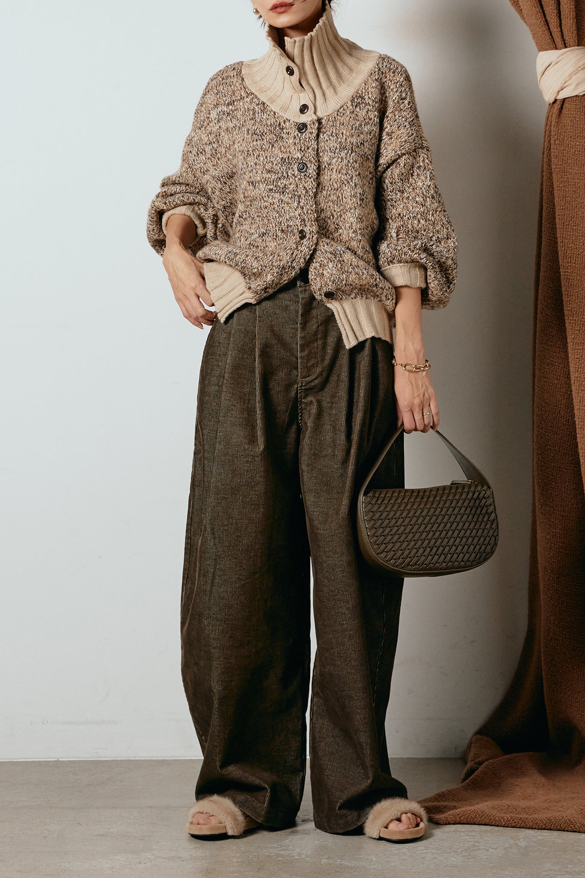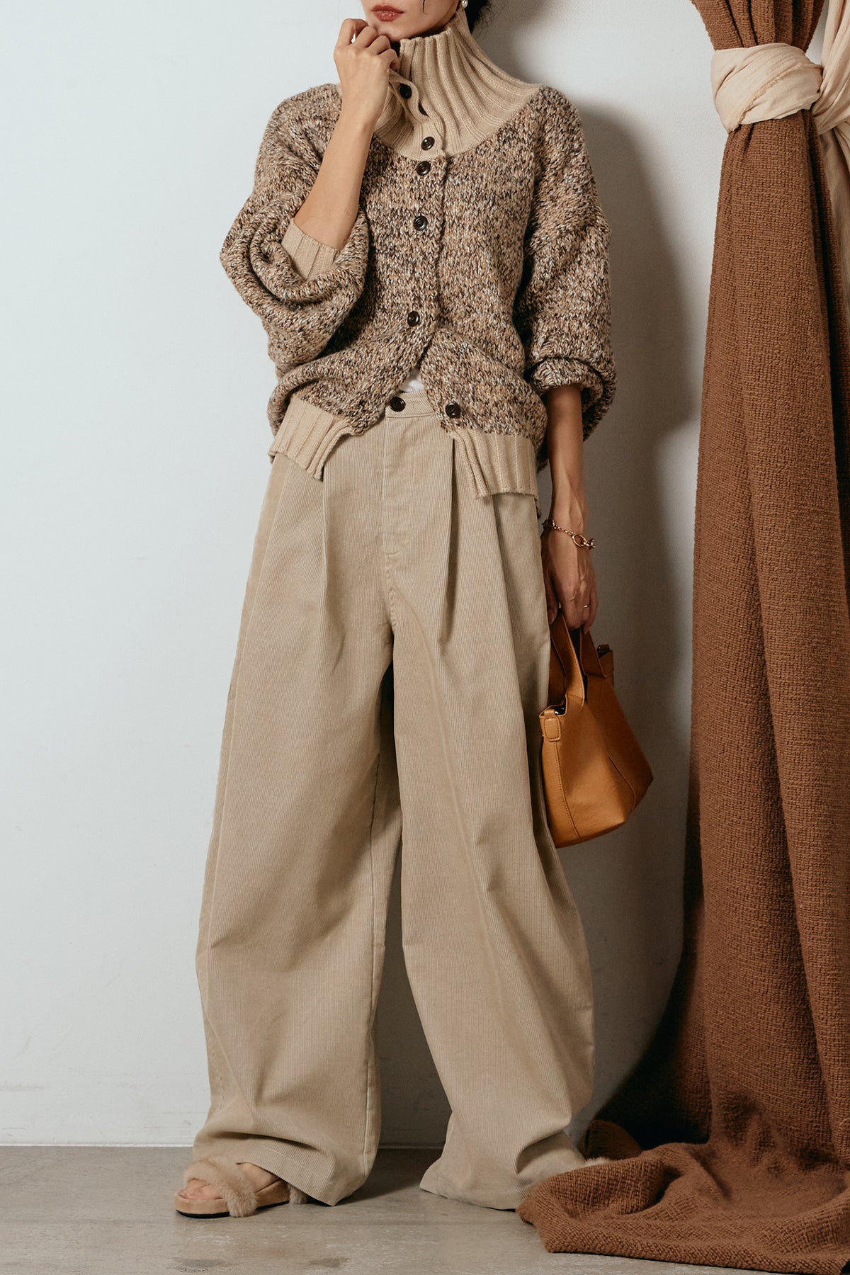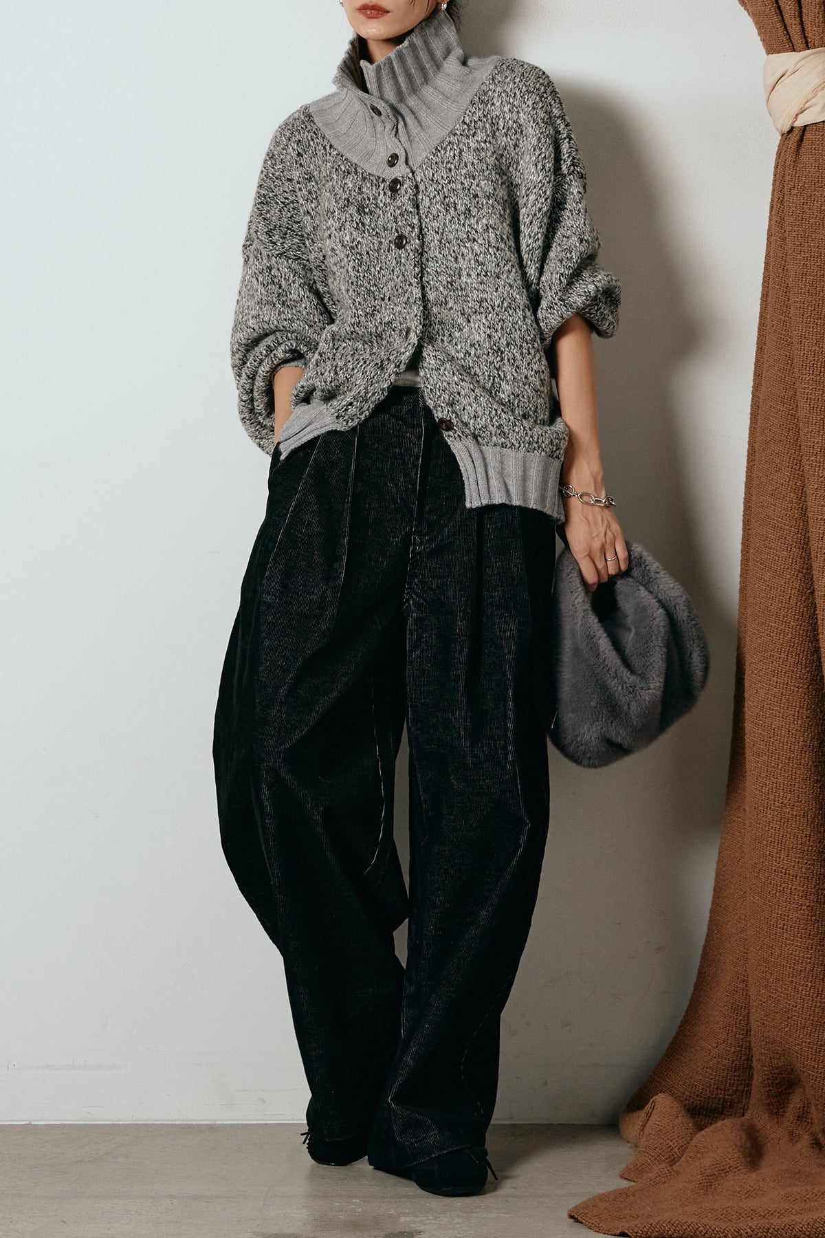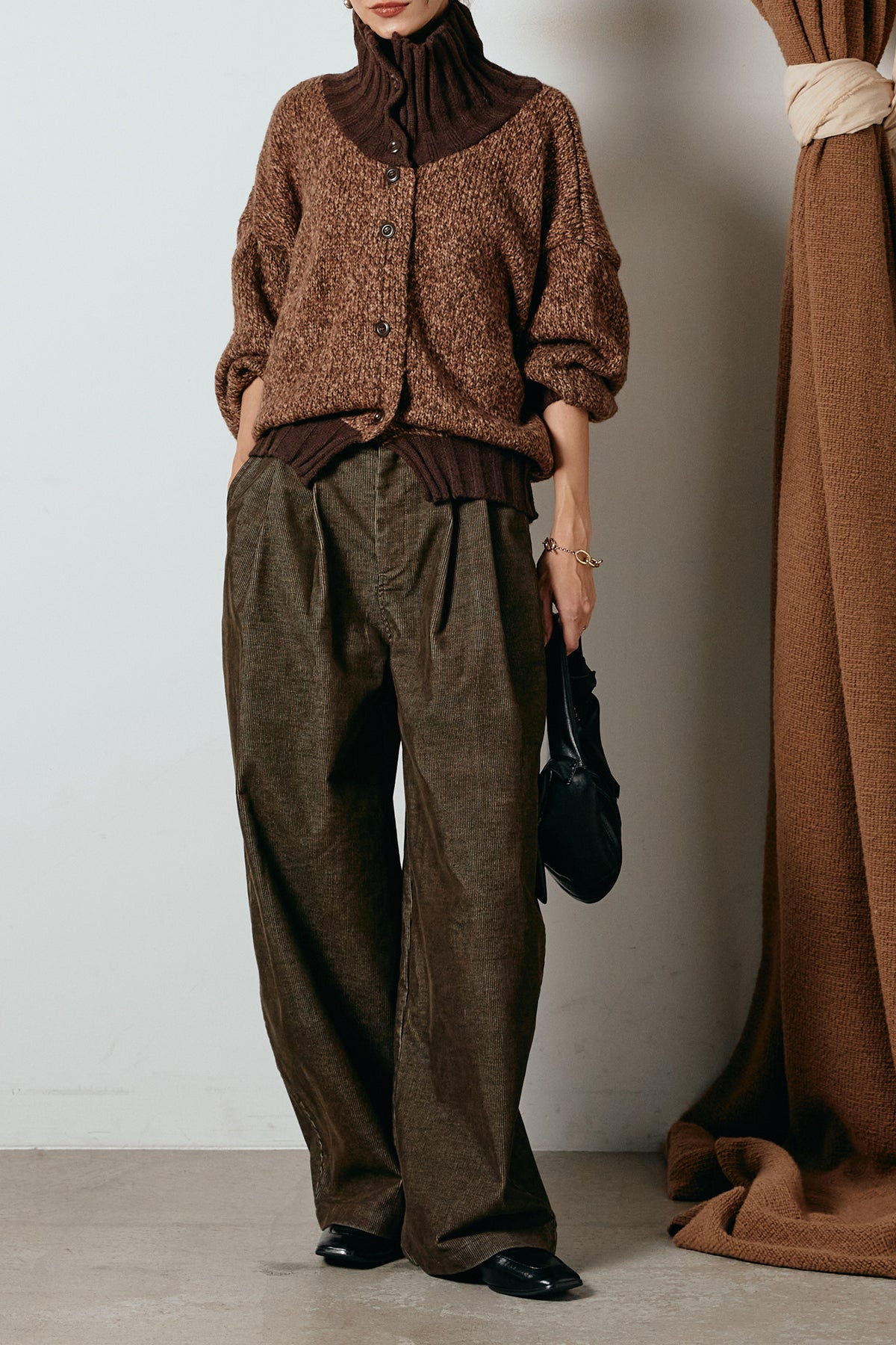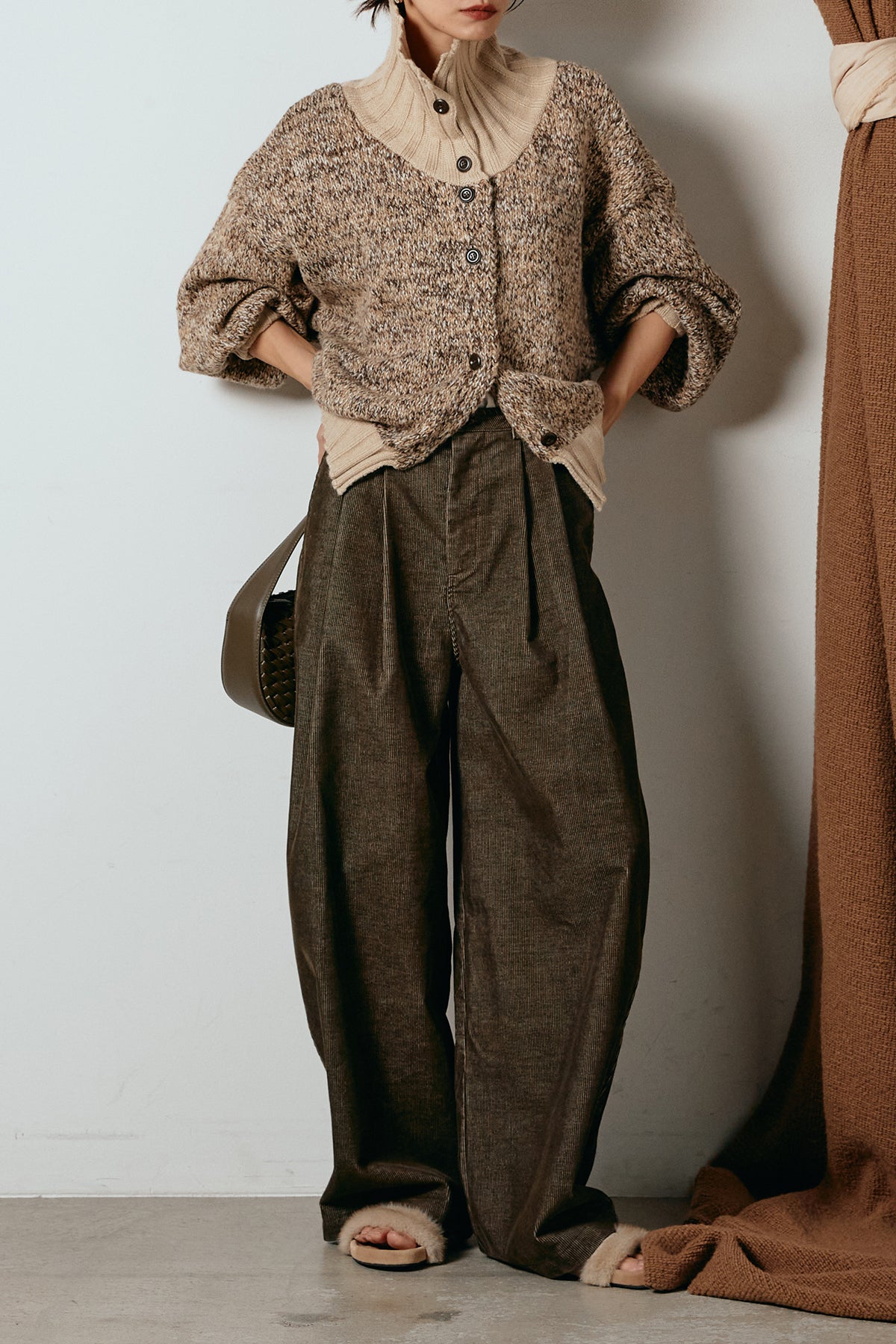 [SET]ハイネックミックスニットカーディガン+フロントタック入りコーデュロイパンツ(2set)