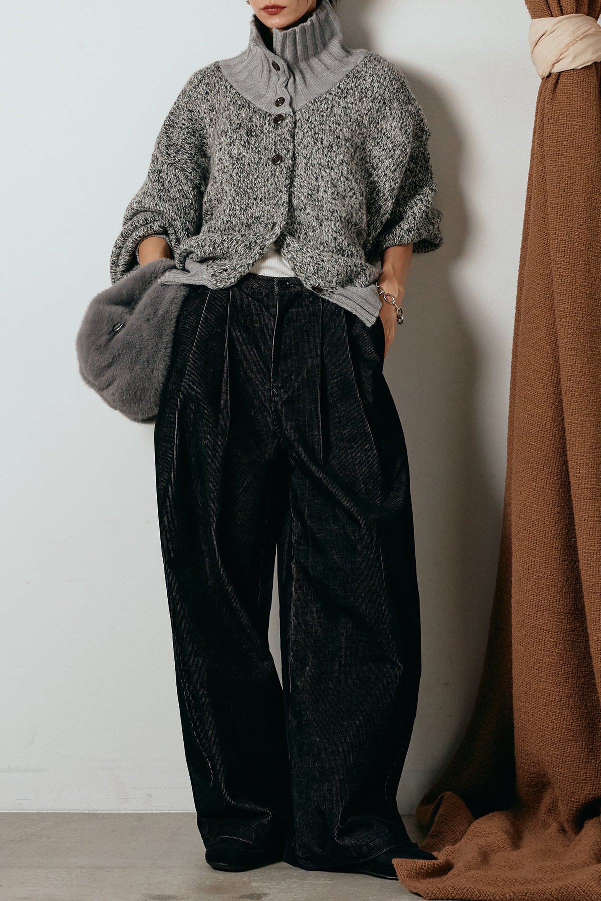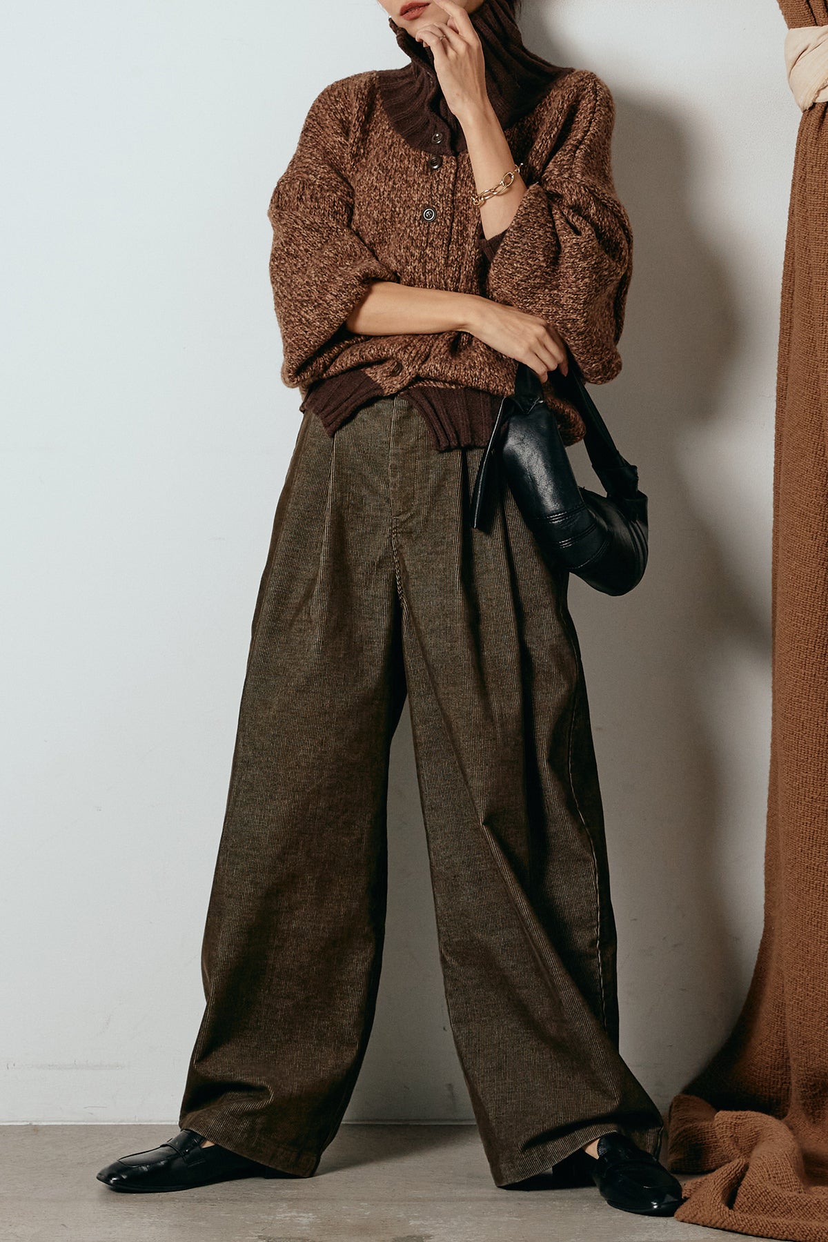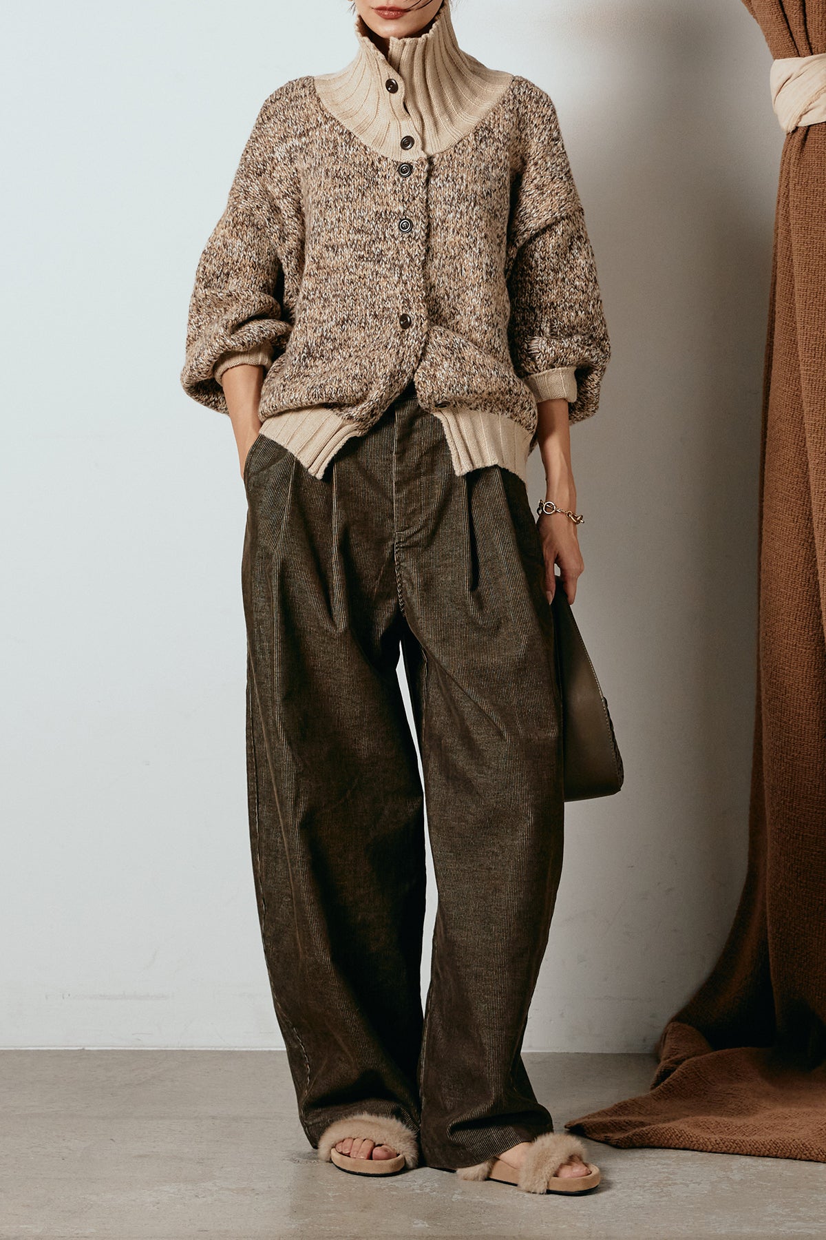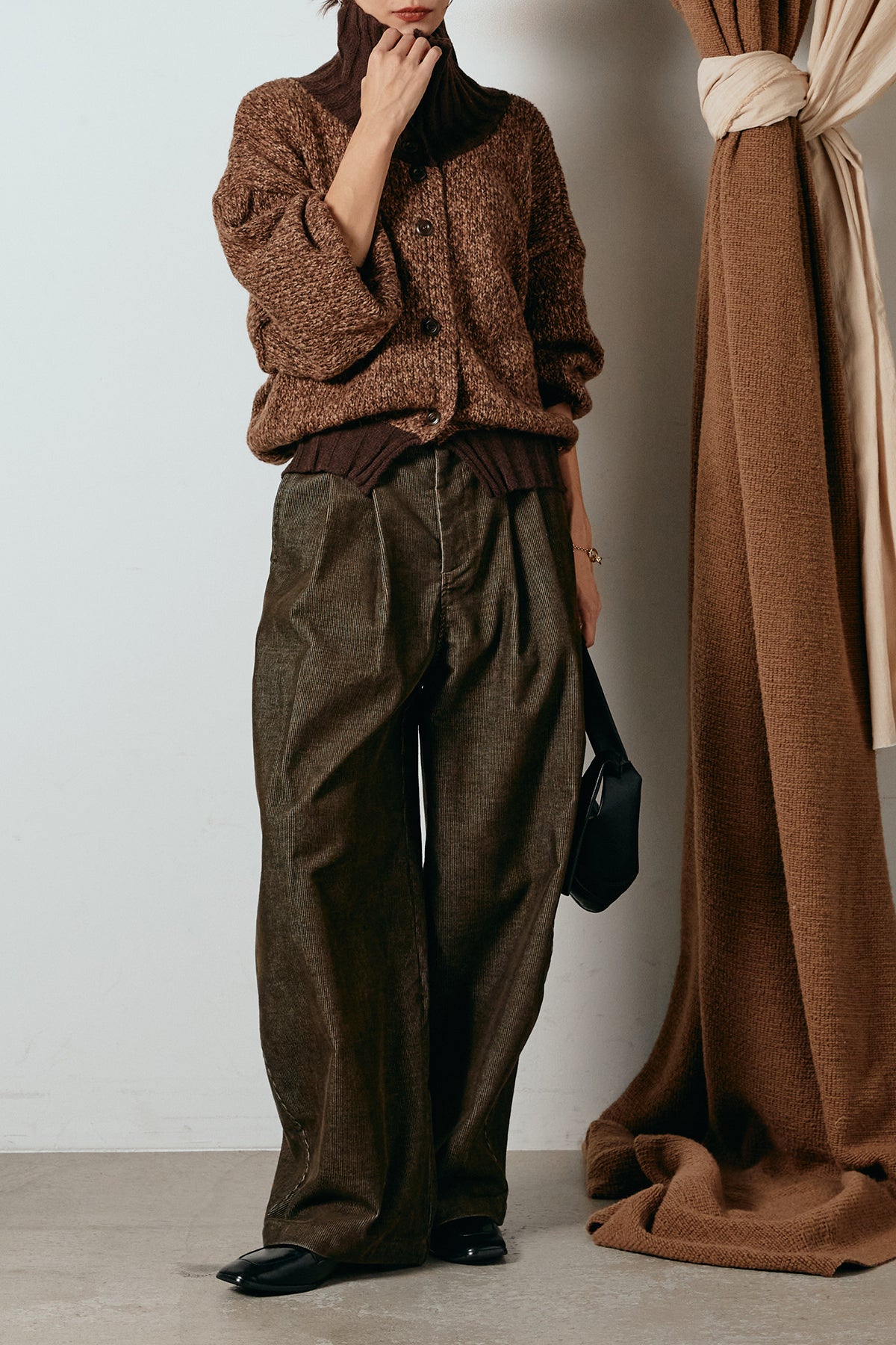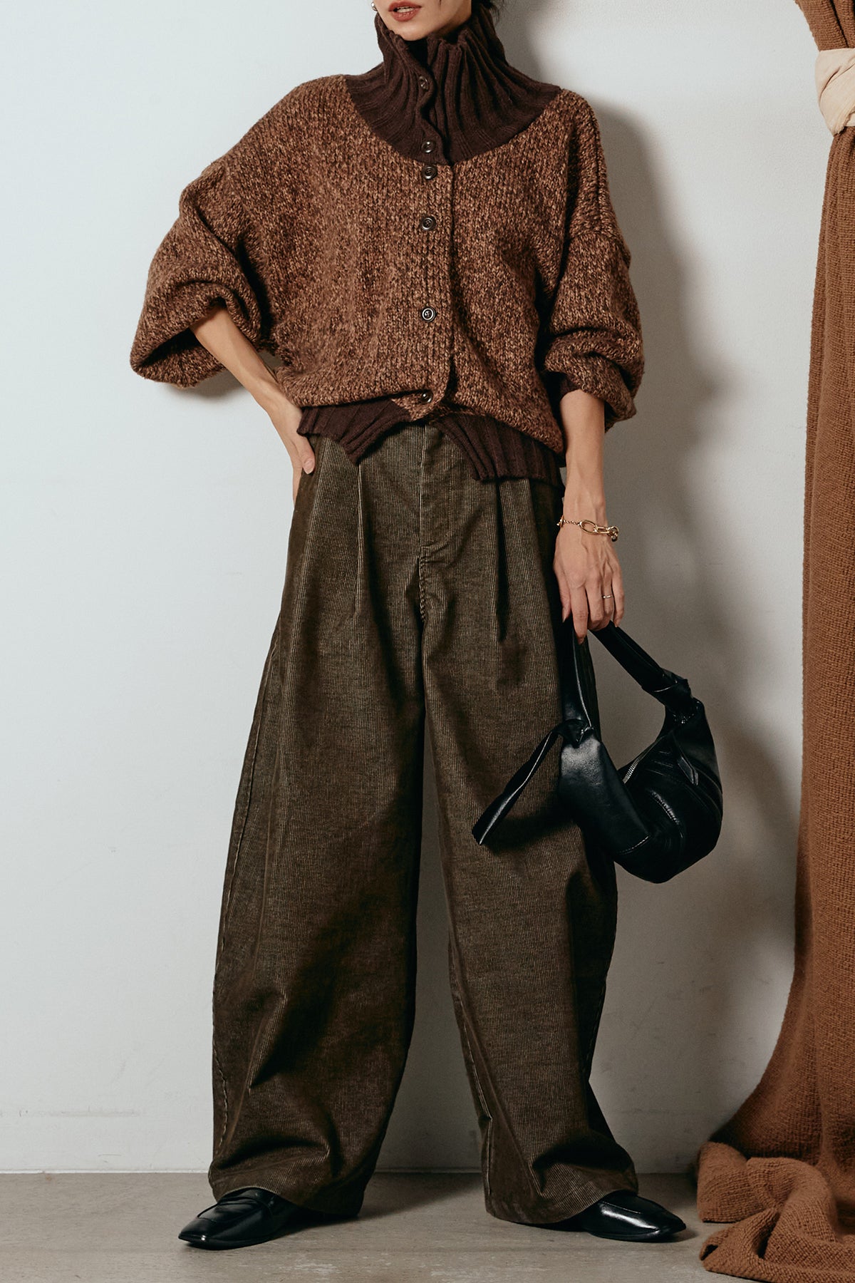 [SET]ハイネックミックスニットカーディガン+フロントタック入りコーデュロイパンツ(2set)