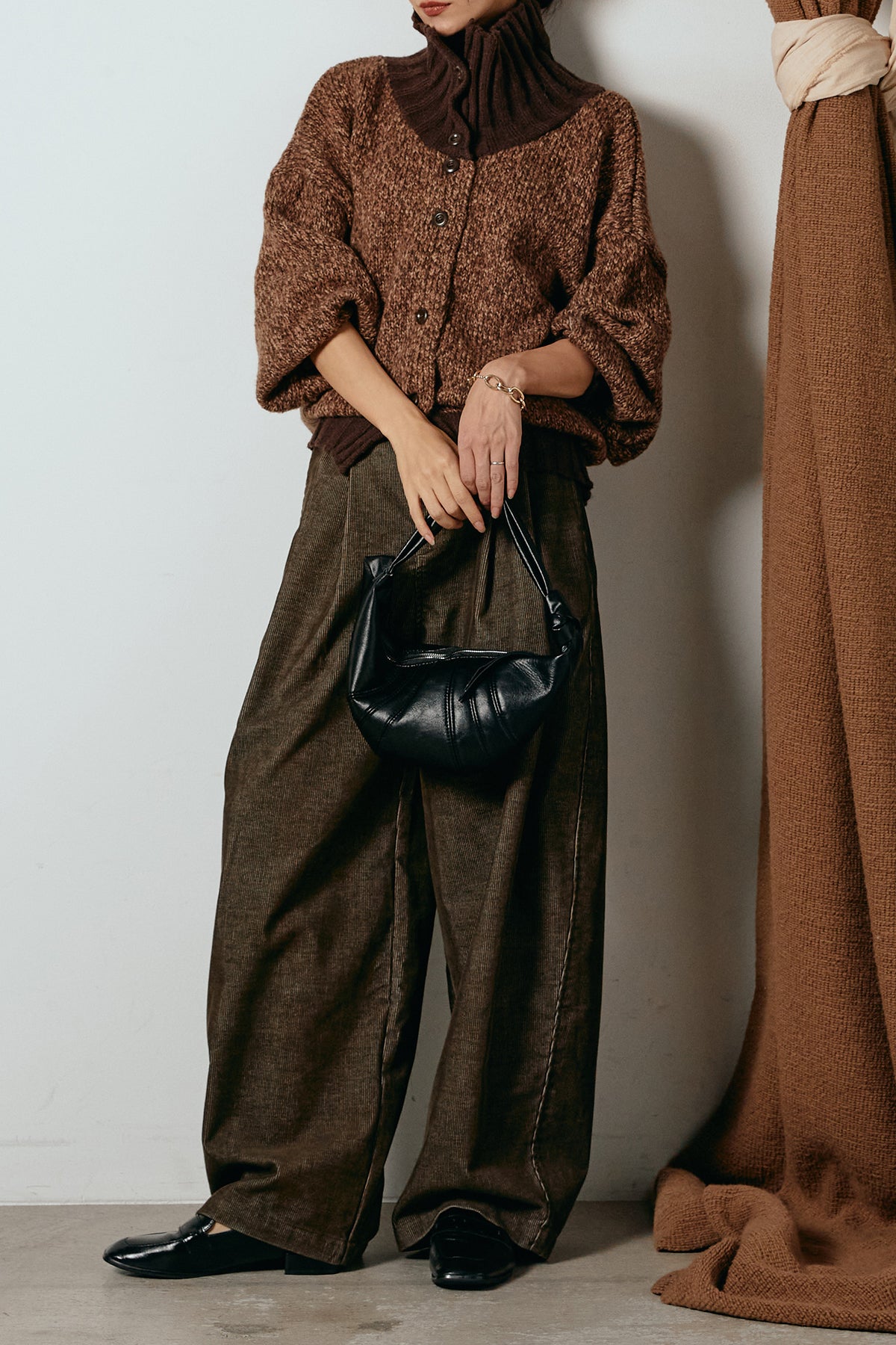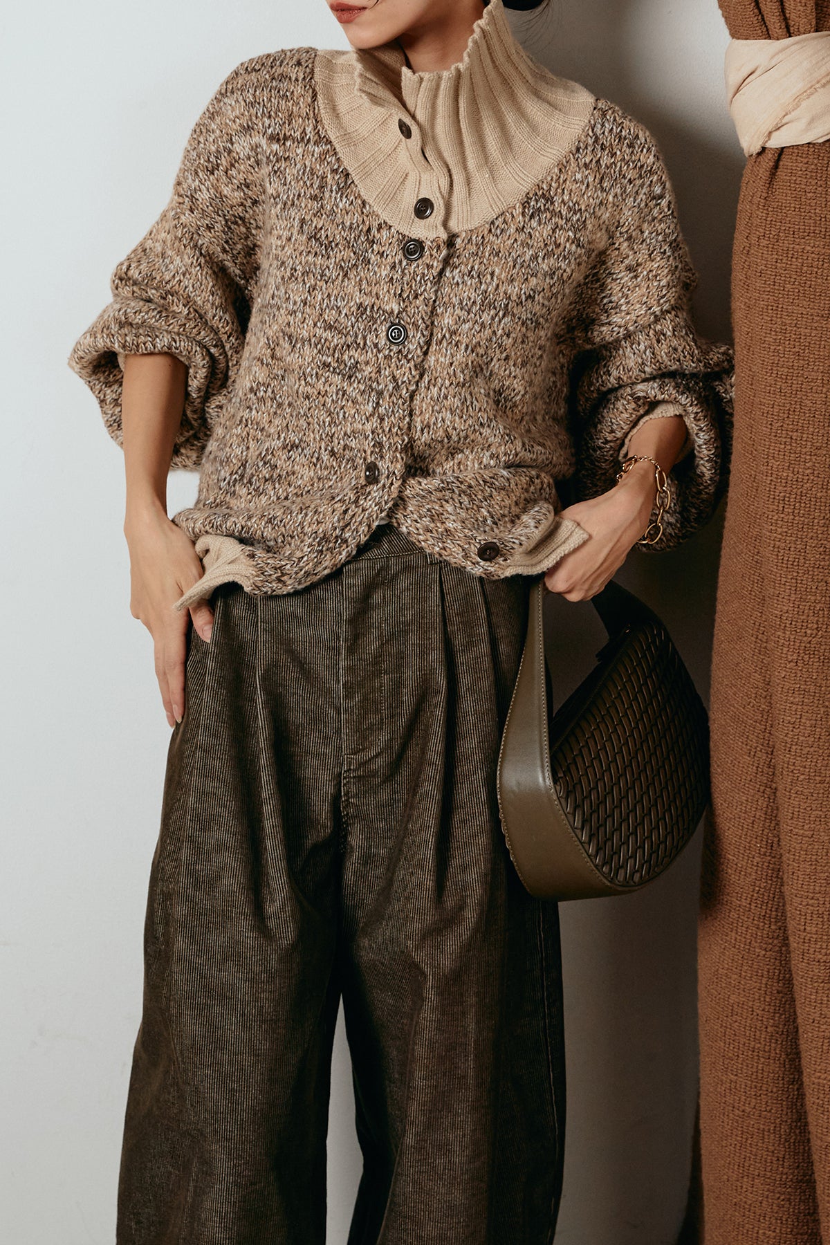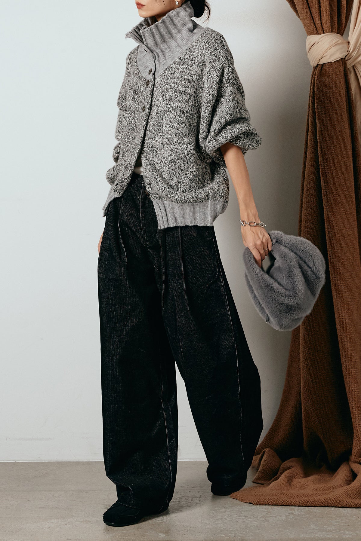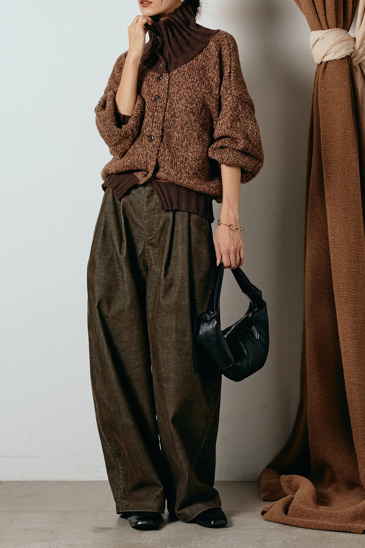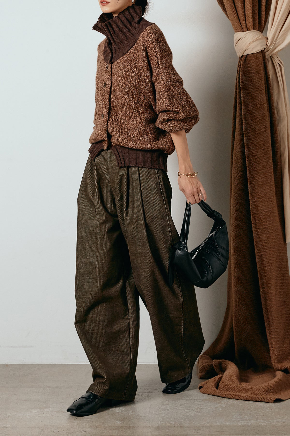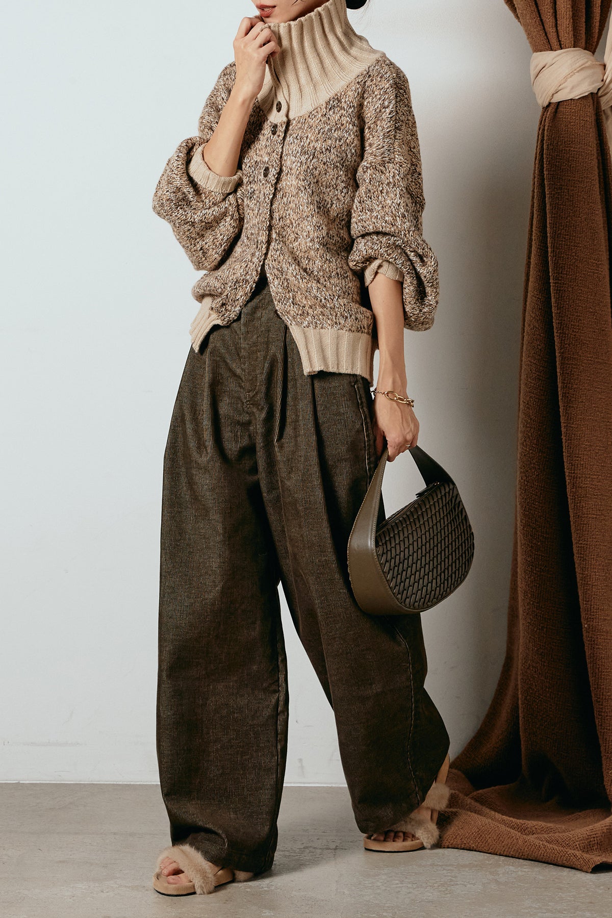 [SET]ハイネックミックスニットカーディガン+フロントタック入りコーデュロイパンツ(2set)