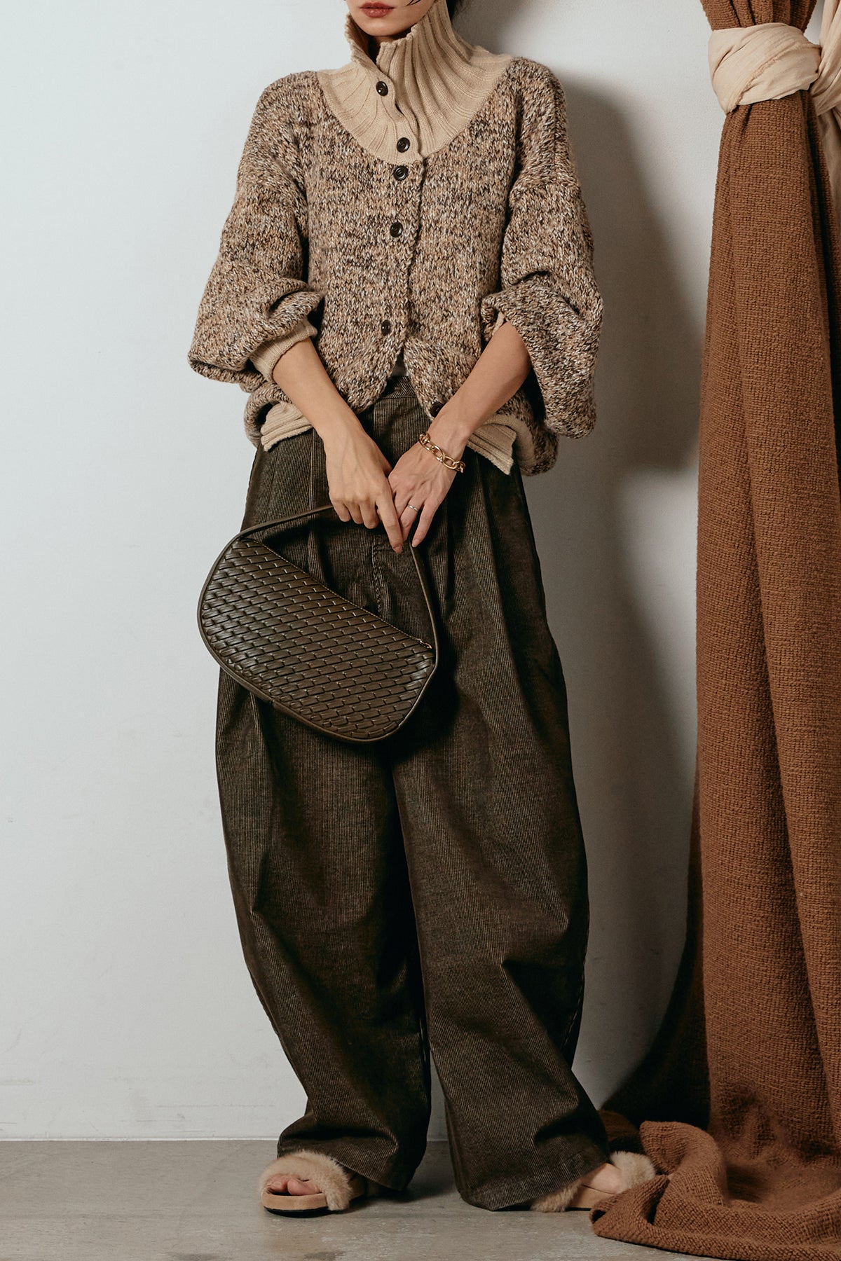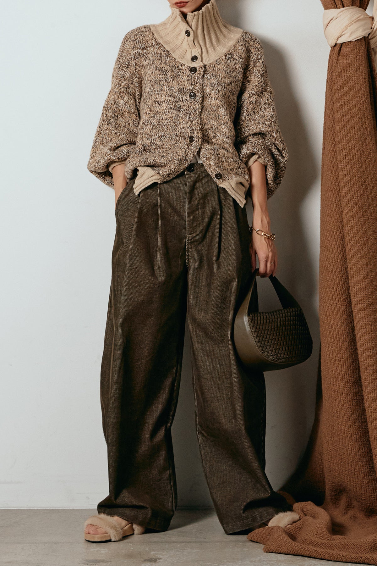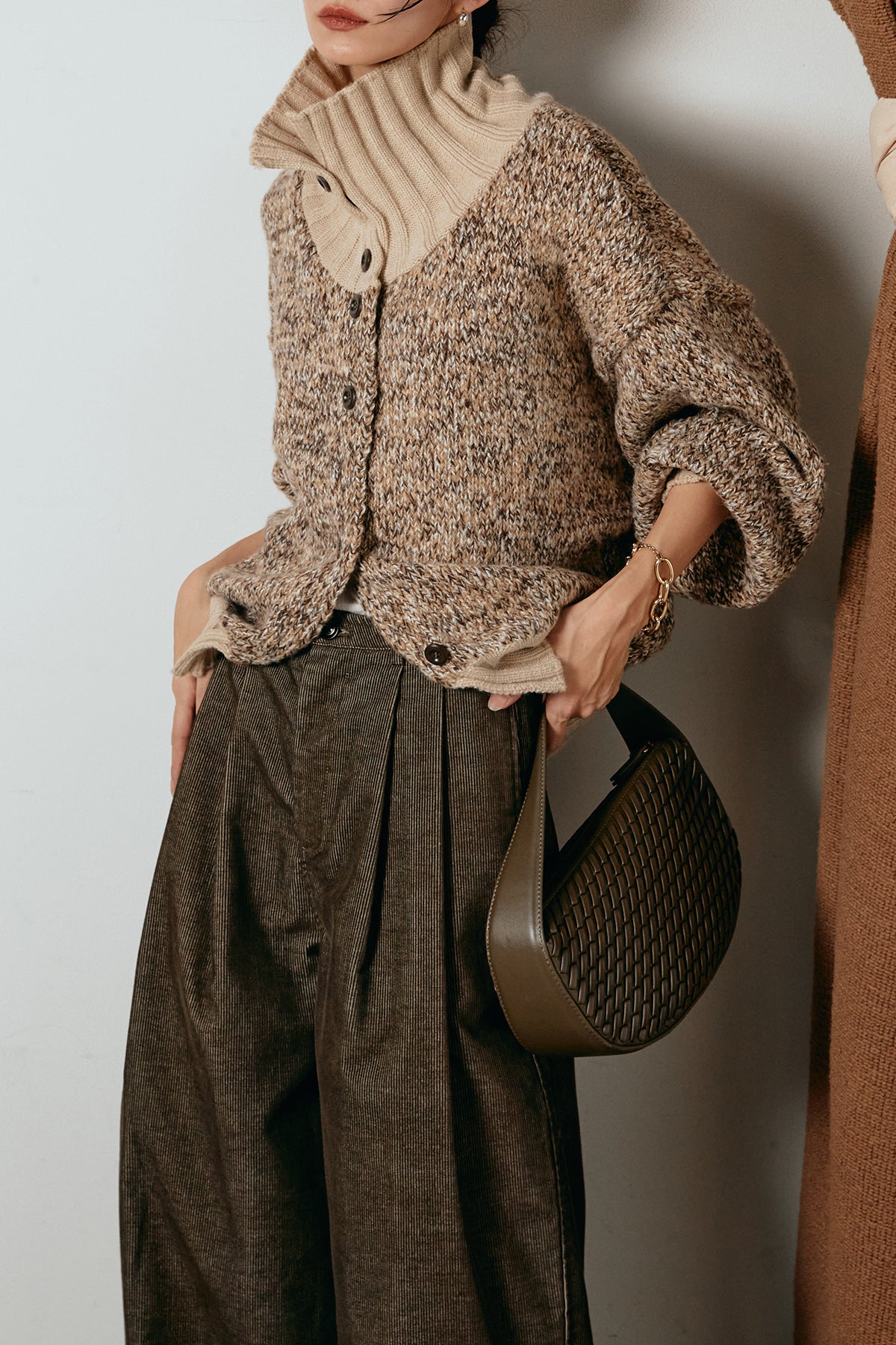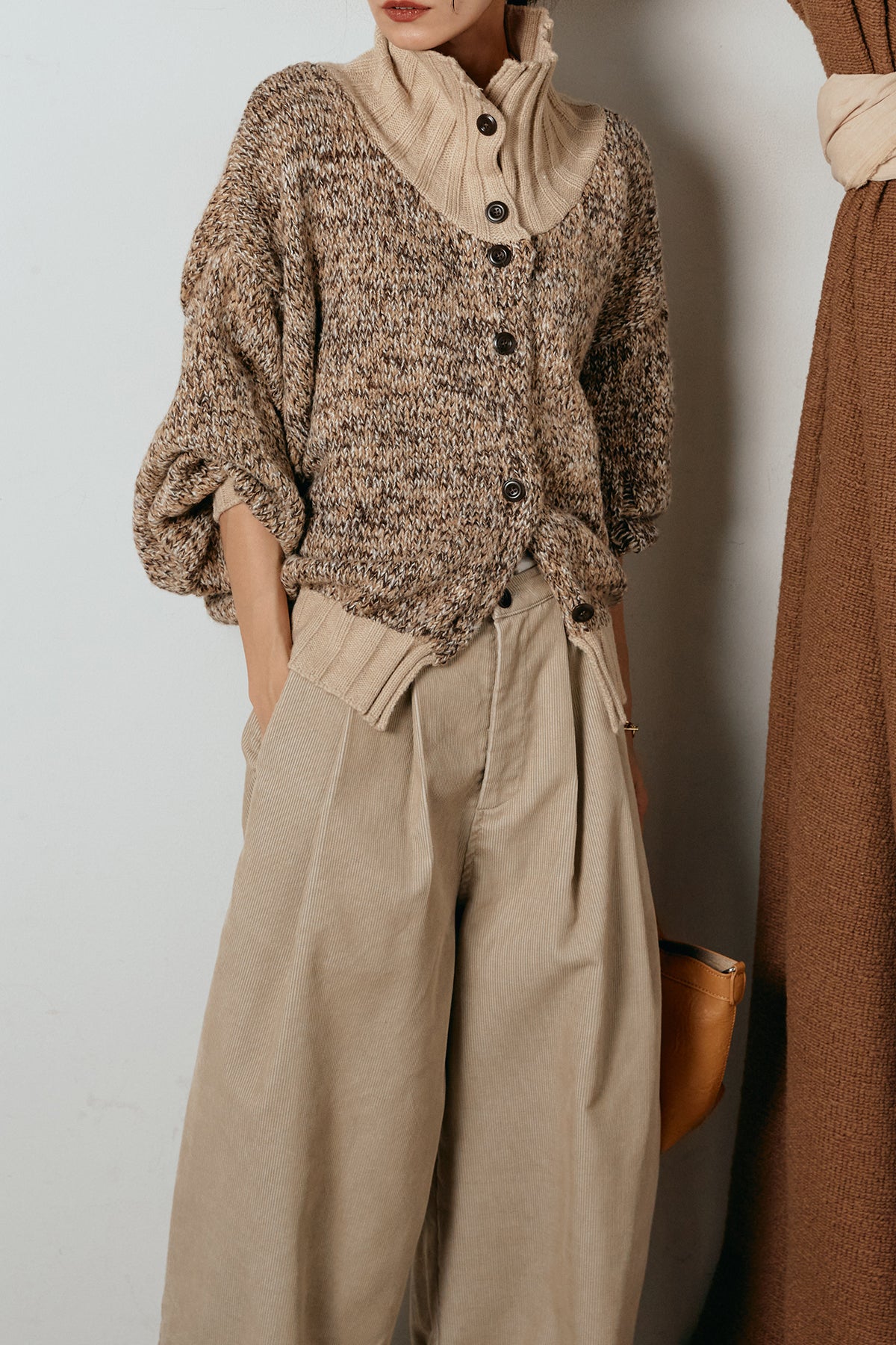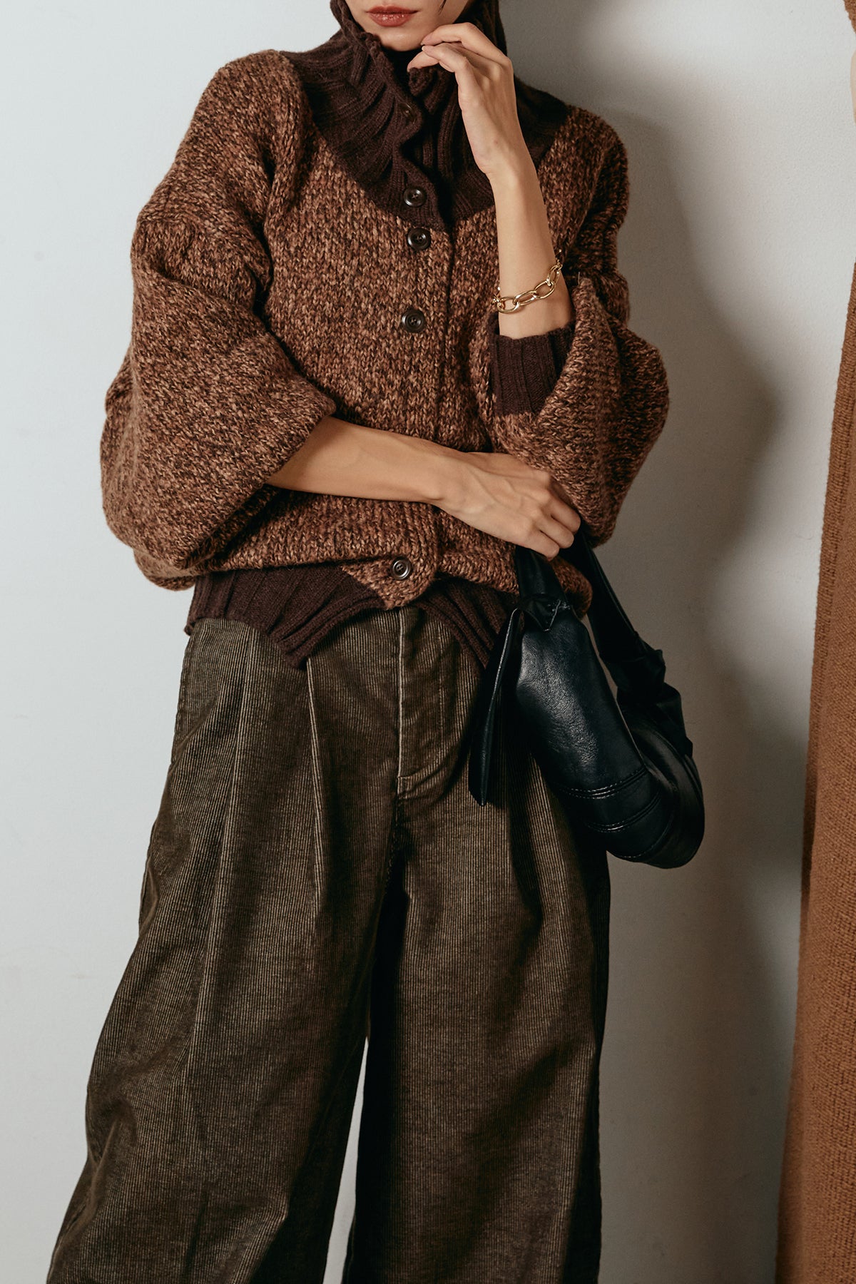 [SET]ハイネックミックスニットカーディガン+フロントタック入りコーデュロイパンツ(2set)
