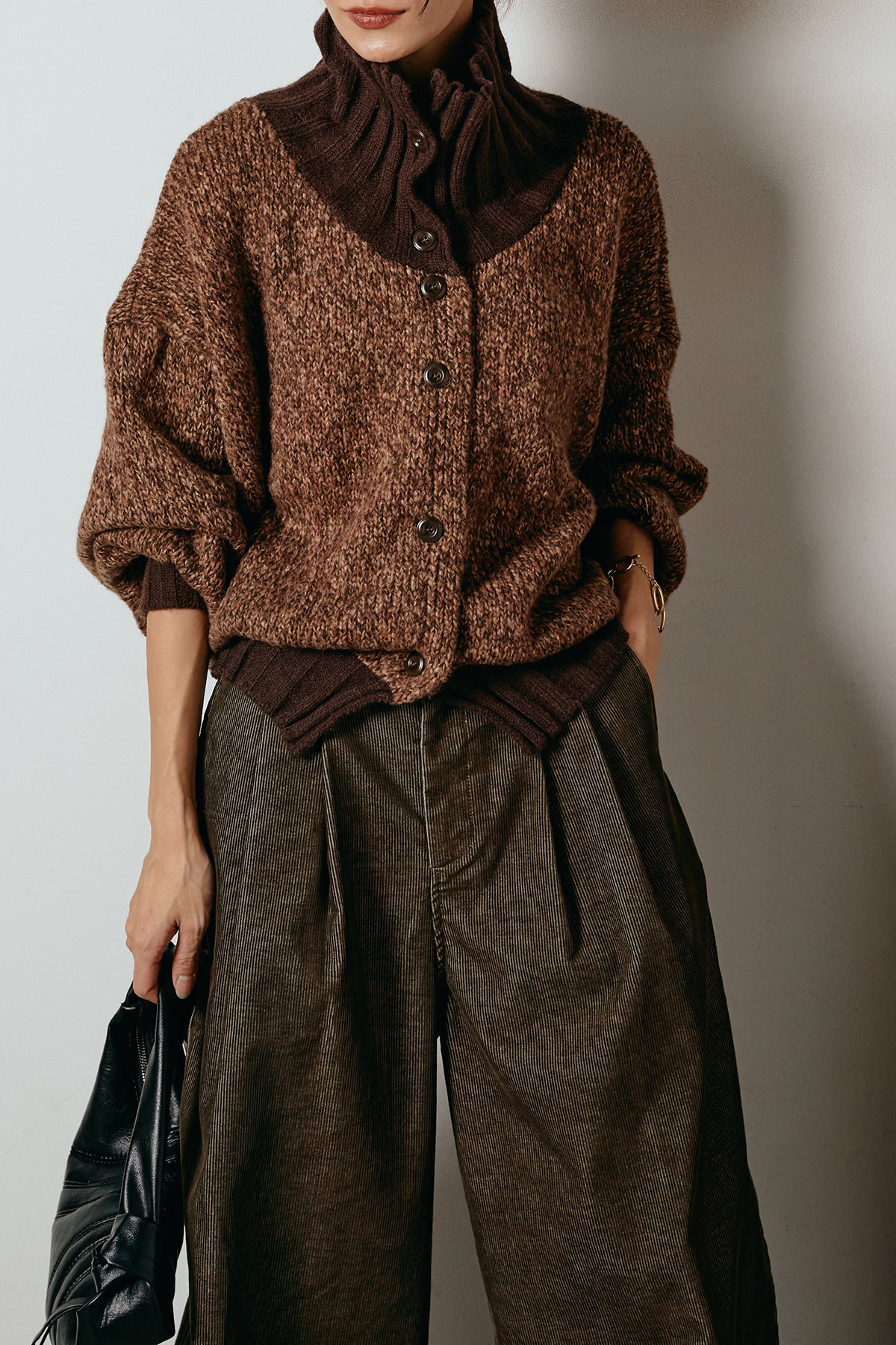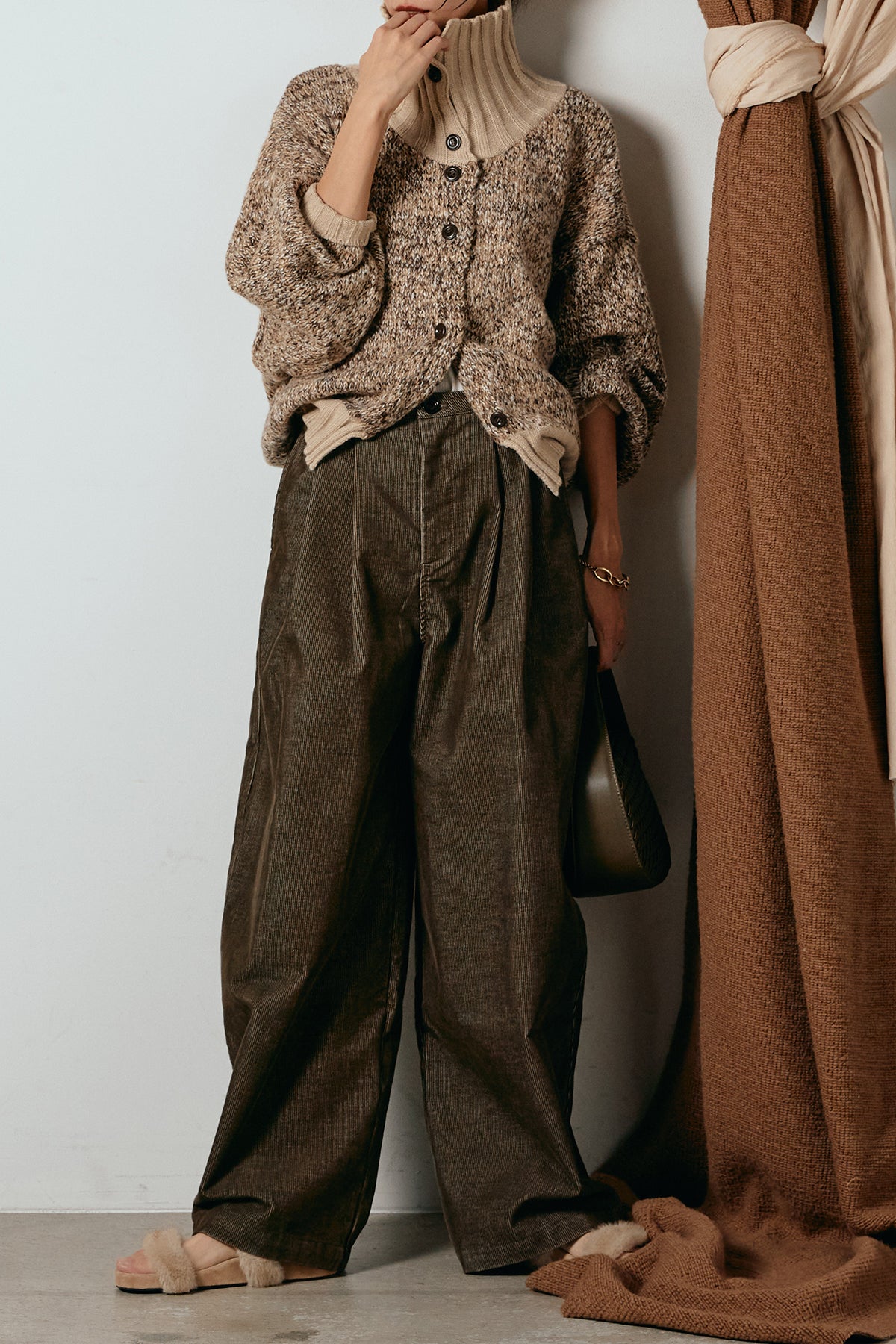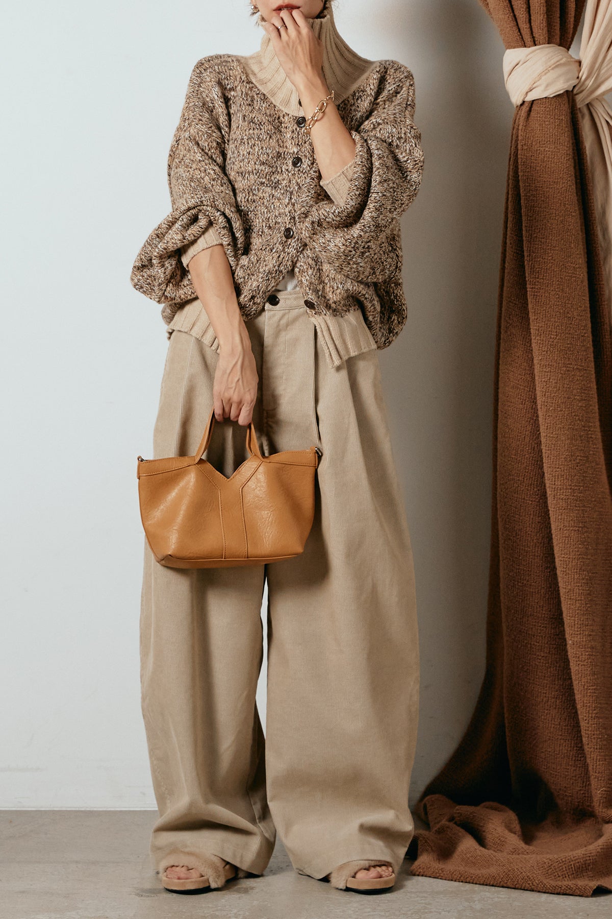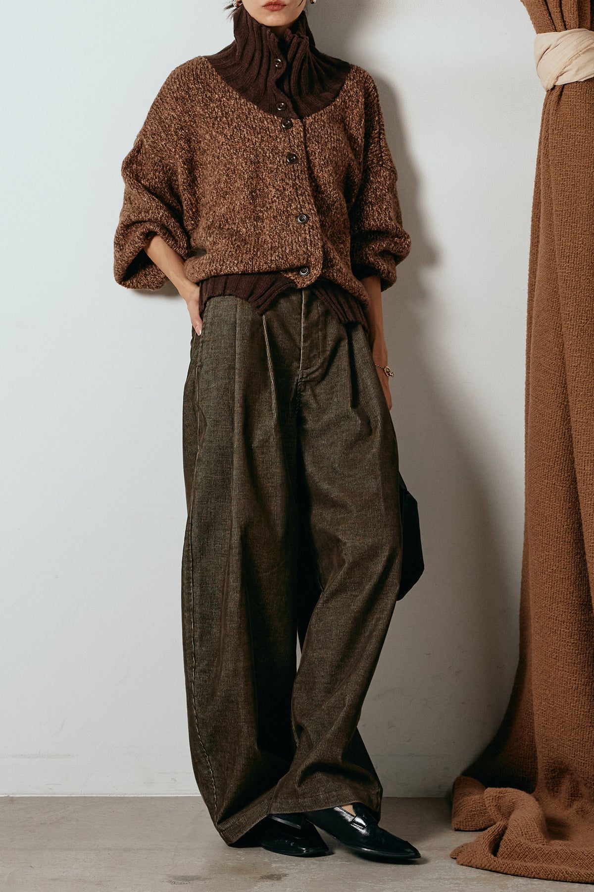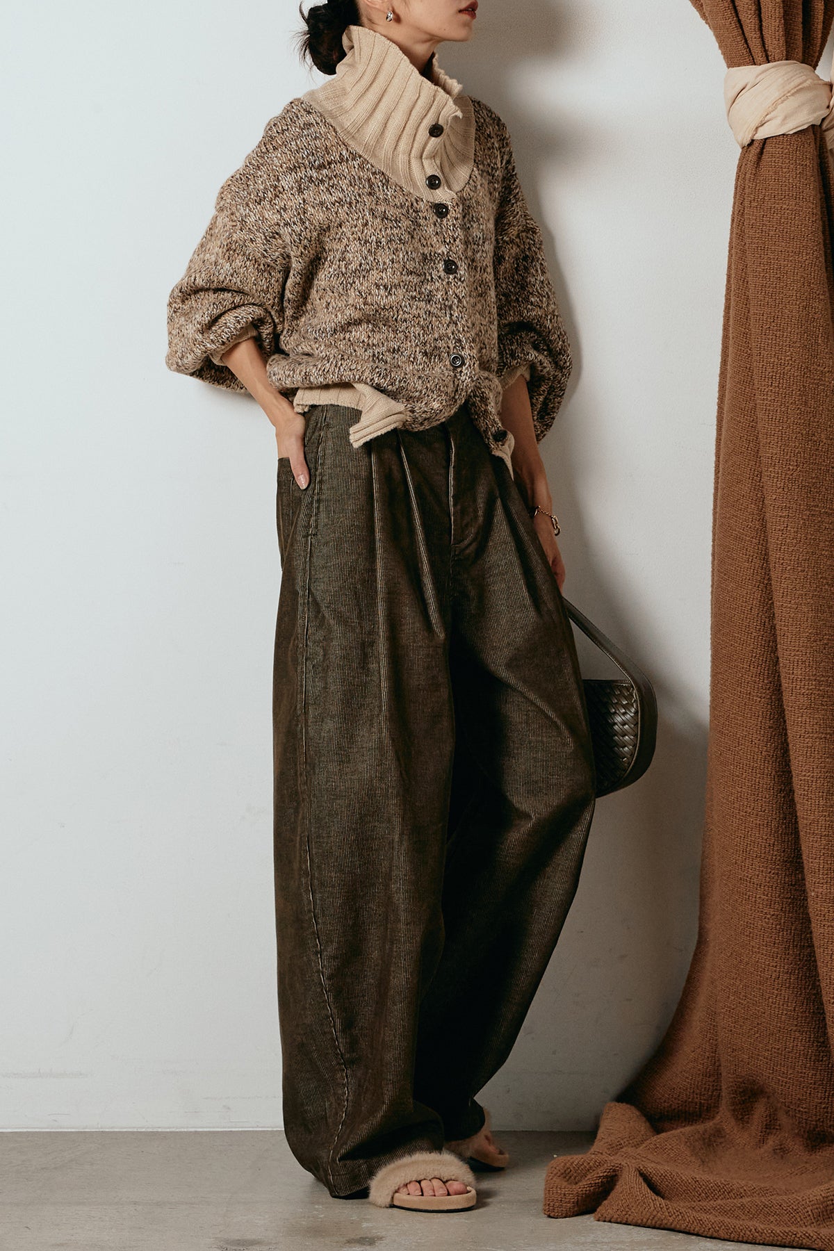 [SET]ハイネックミックスニットカーディガン+フロントタック入りコーデュロイパンツ(2set)