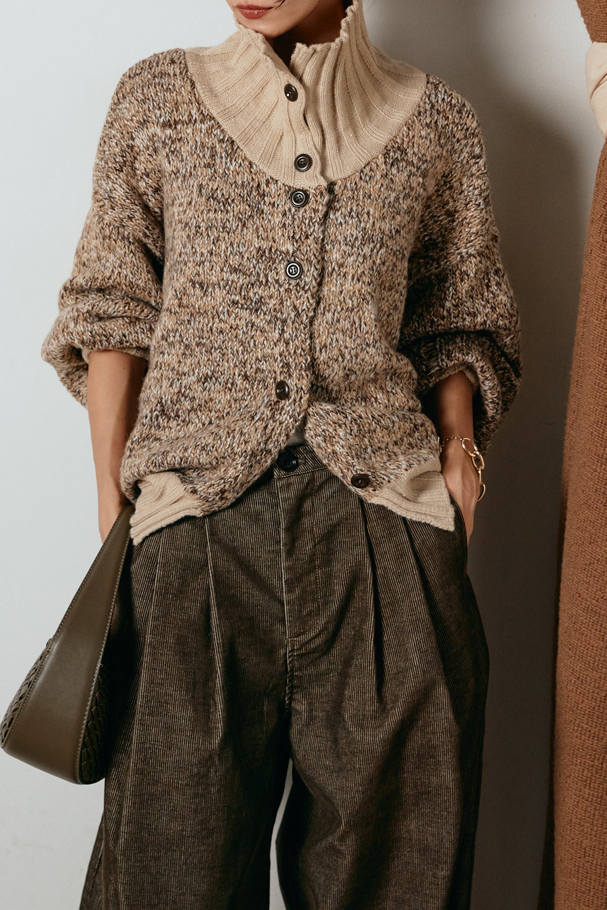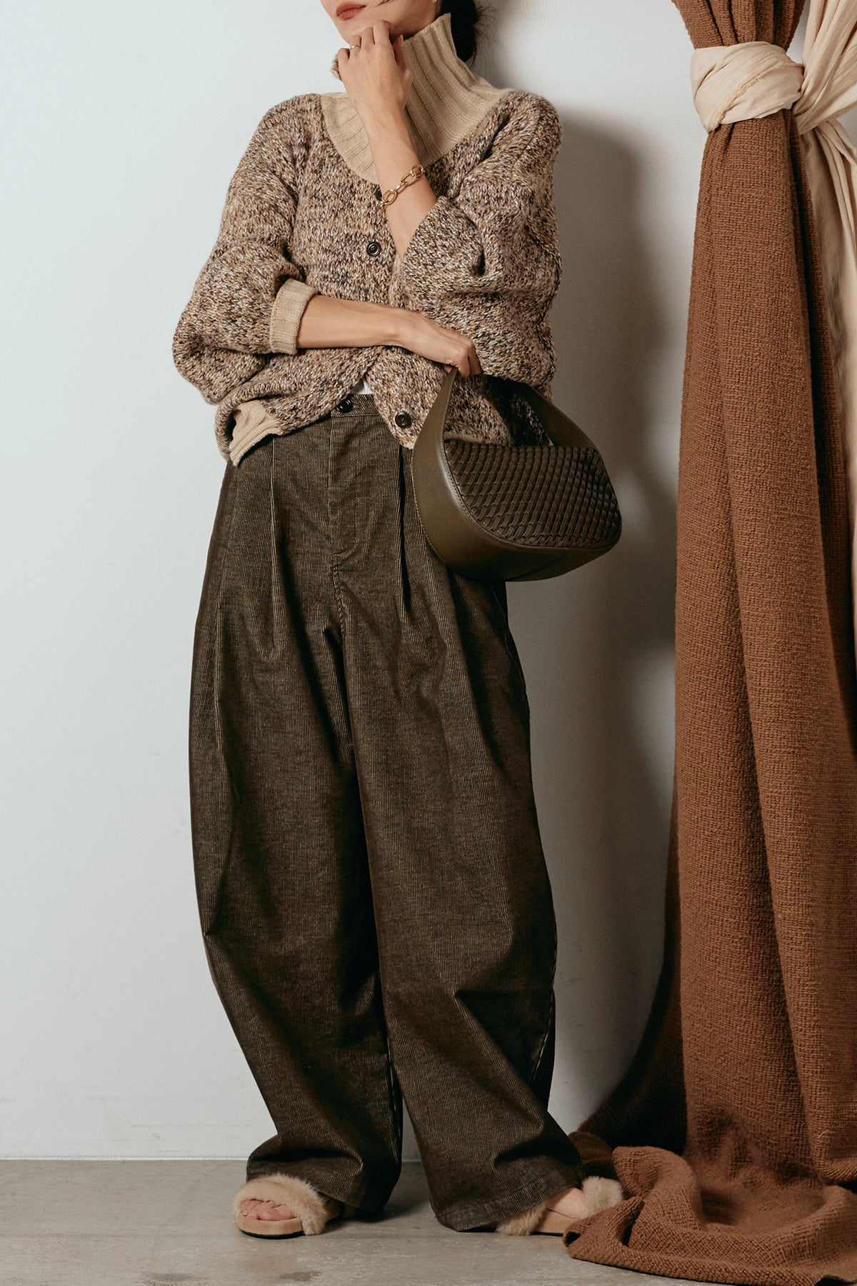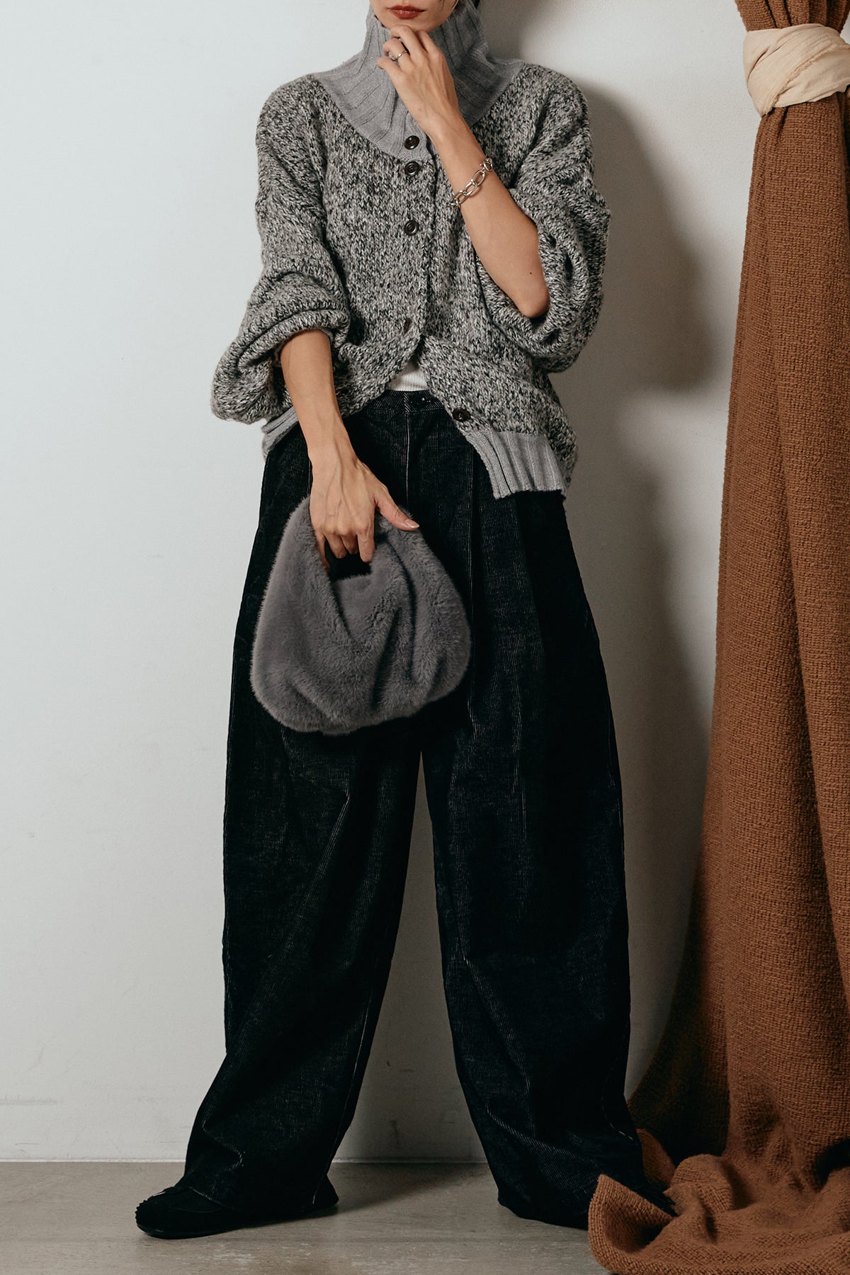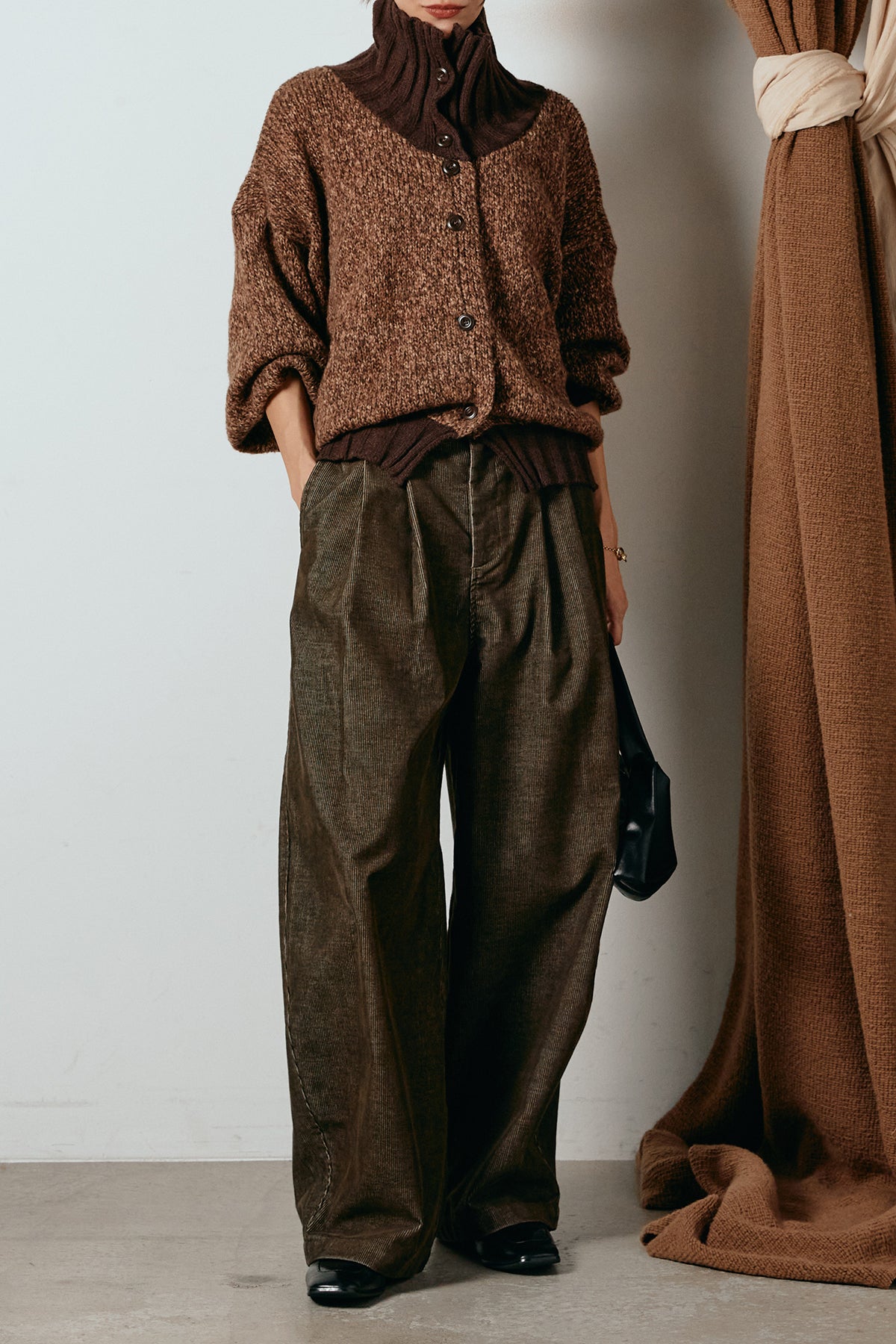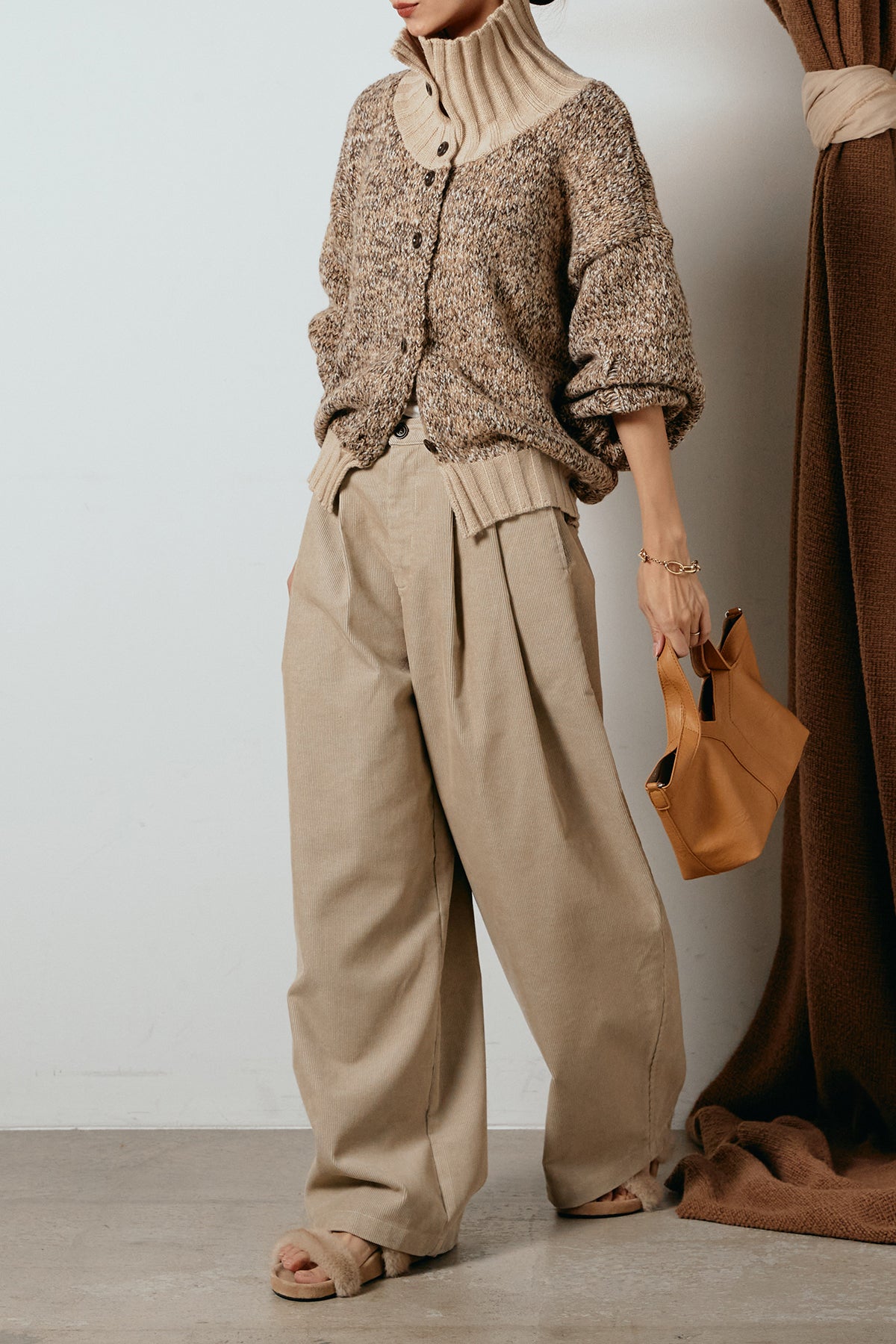 [SET]ハイネックミックスニットカーディガン+フロントタック入りコーデュロイパンツ(2set)