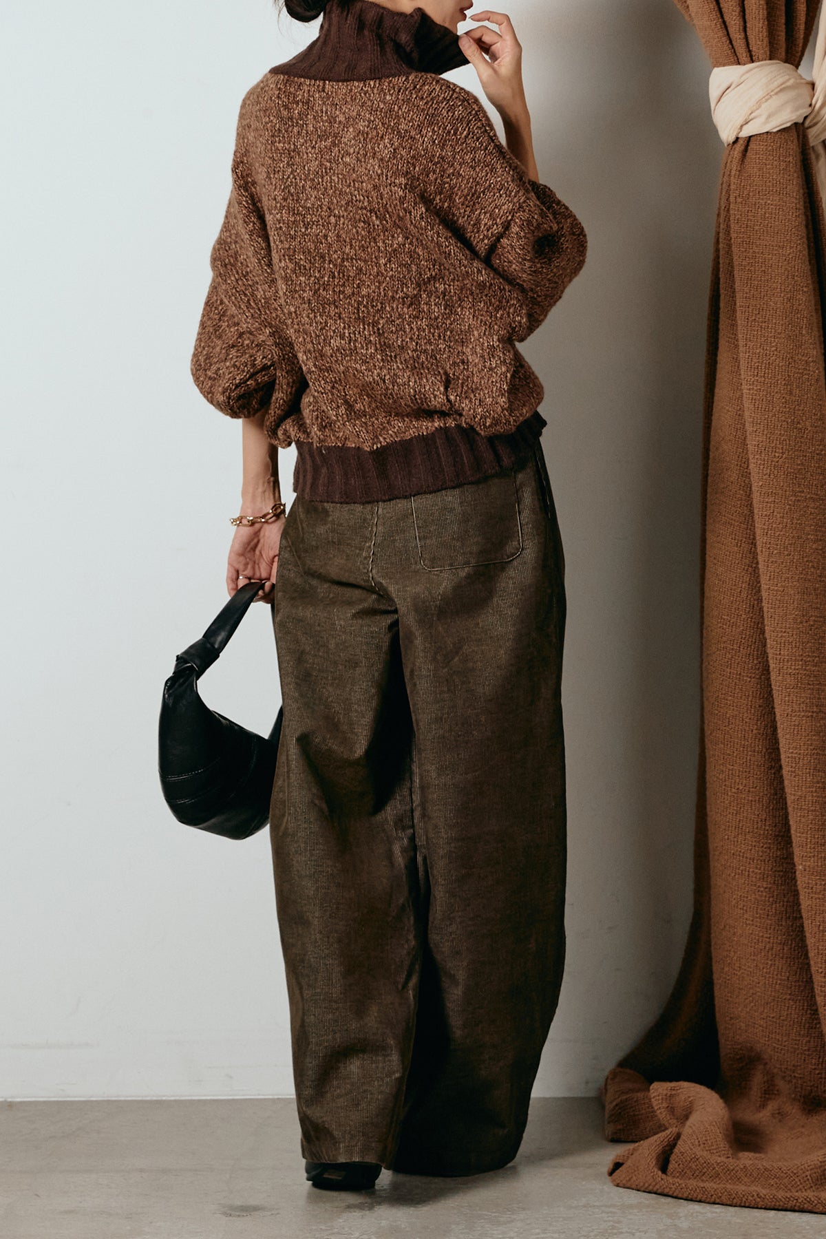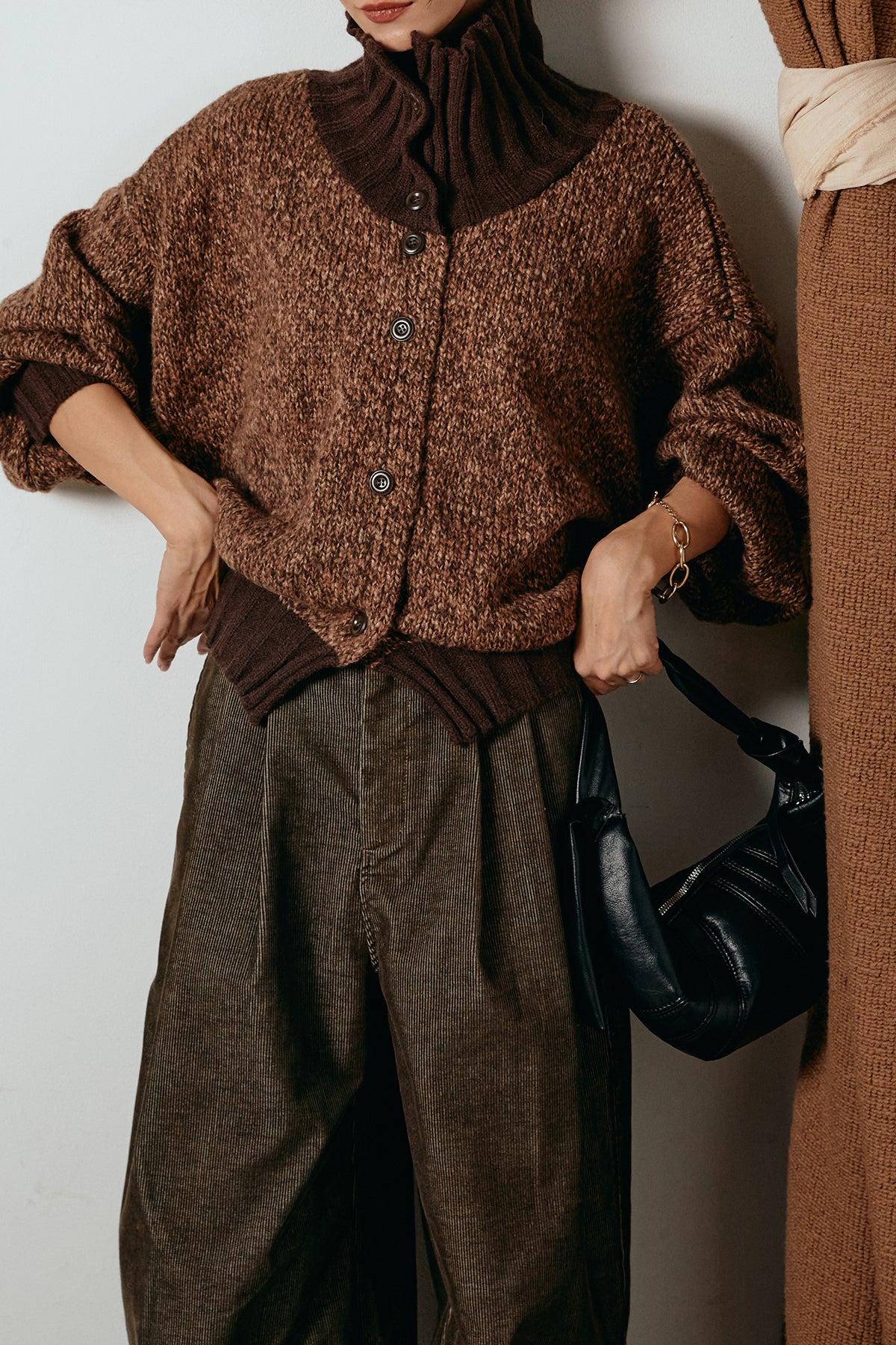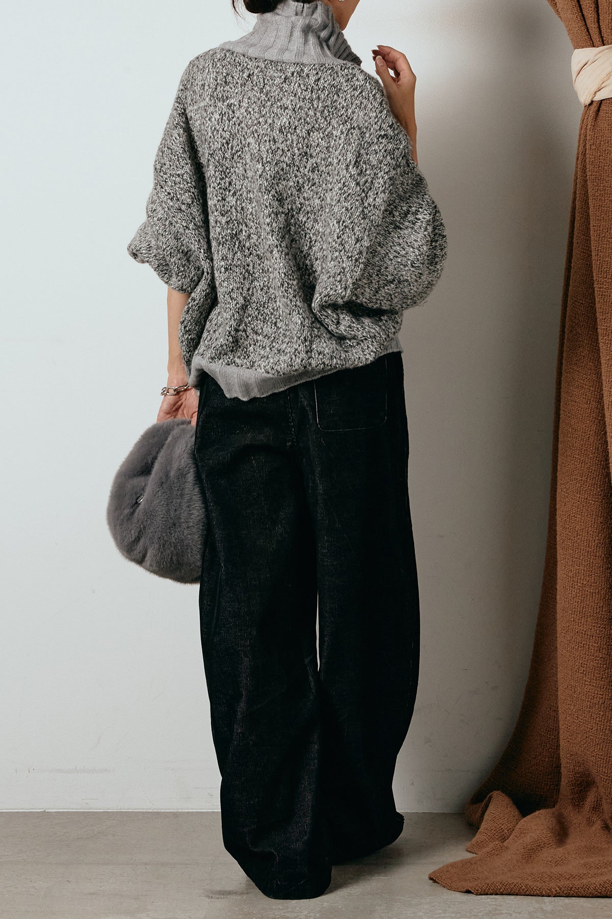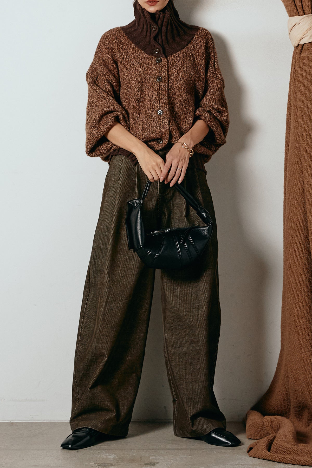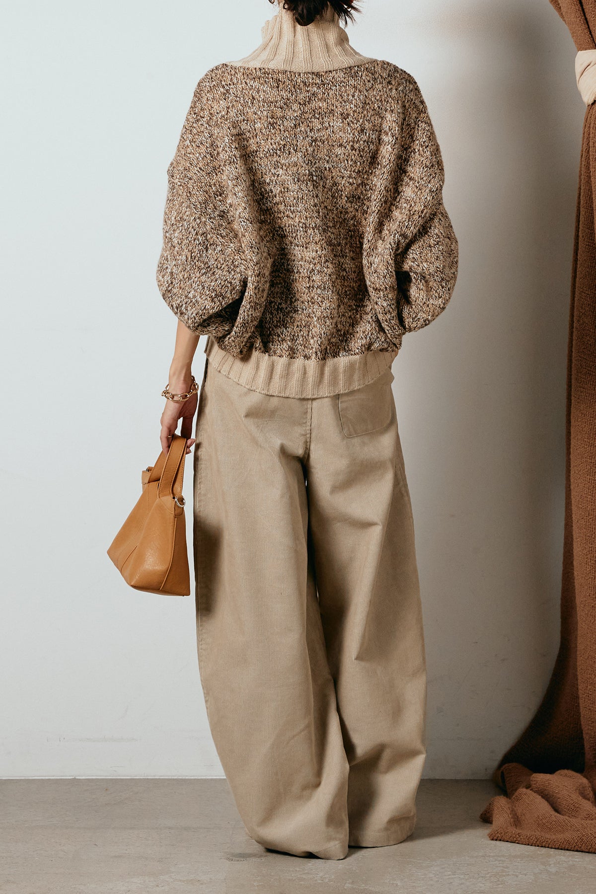 [SET]ハイネックミックスニットカーディガン+フロントタック入りコーデュロイパンツ(2set)