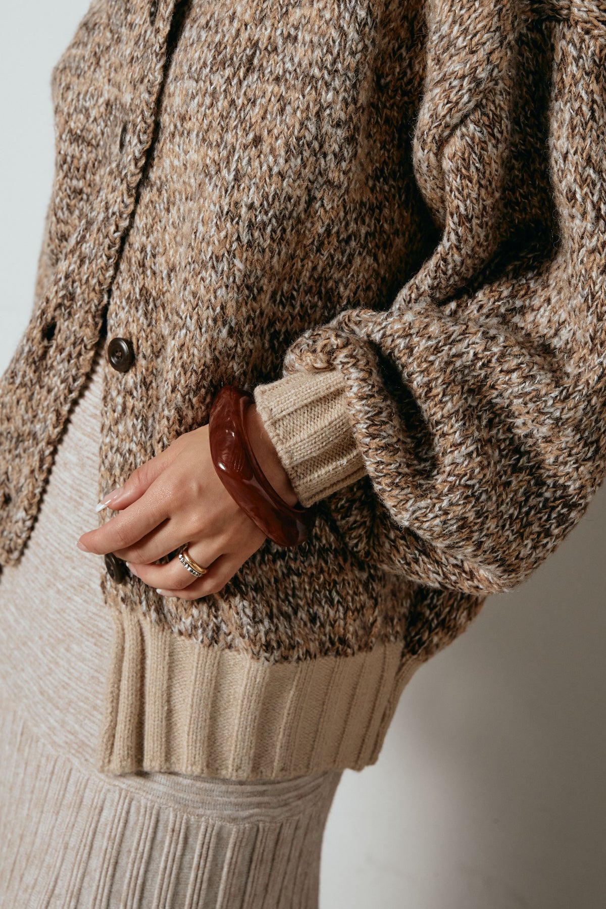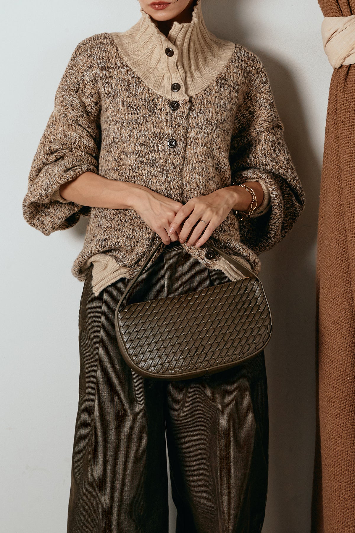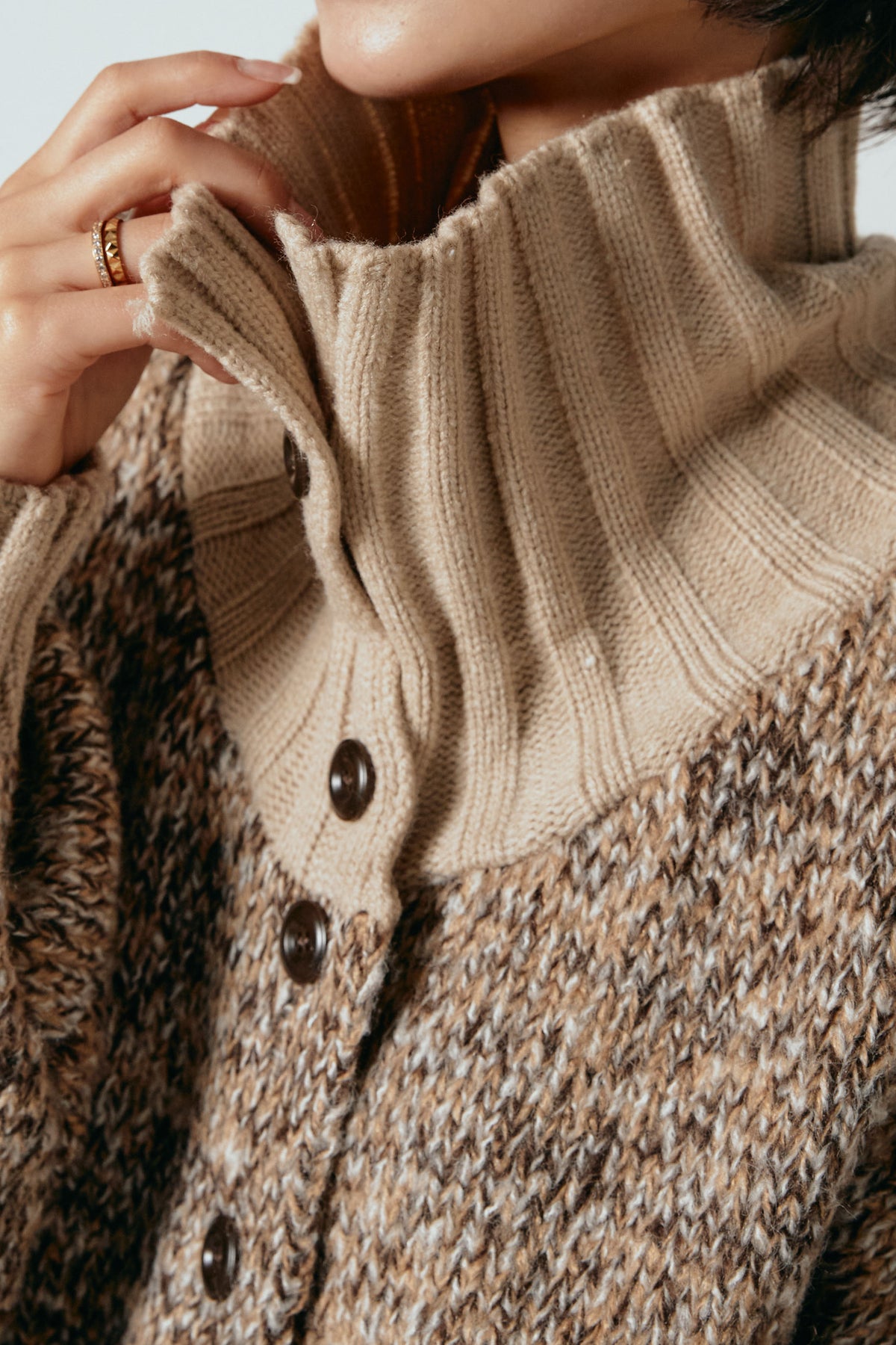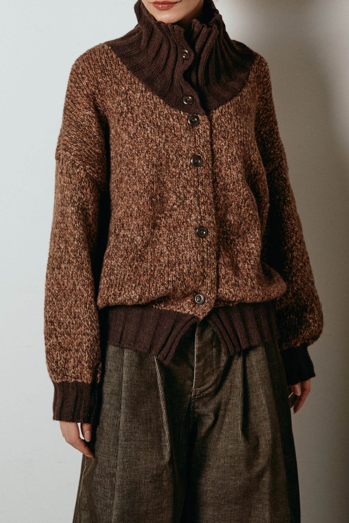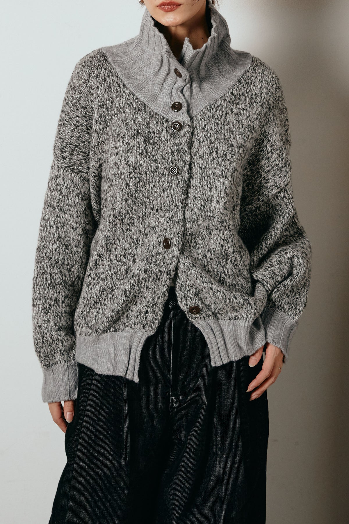 ハイネックのデザインが目を惹くミックスニットカーディガン。 豊かな表情のあるミックス編みがスタイリングに奥行きをプラスし、羽織るだけでこなれた印象に仕上がります。 ネックまわりと裾・袖口にあしらったリブが全体を引き締め、バランスよく着られるのもポイント。 シンプルなトップスやワンピースに重ねるだけで、季節感のある装いが完成します。