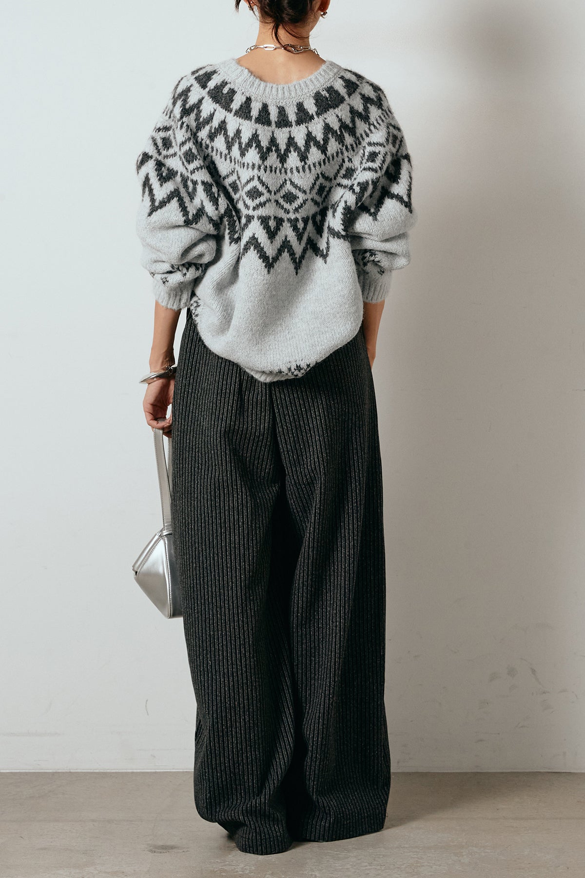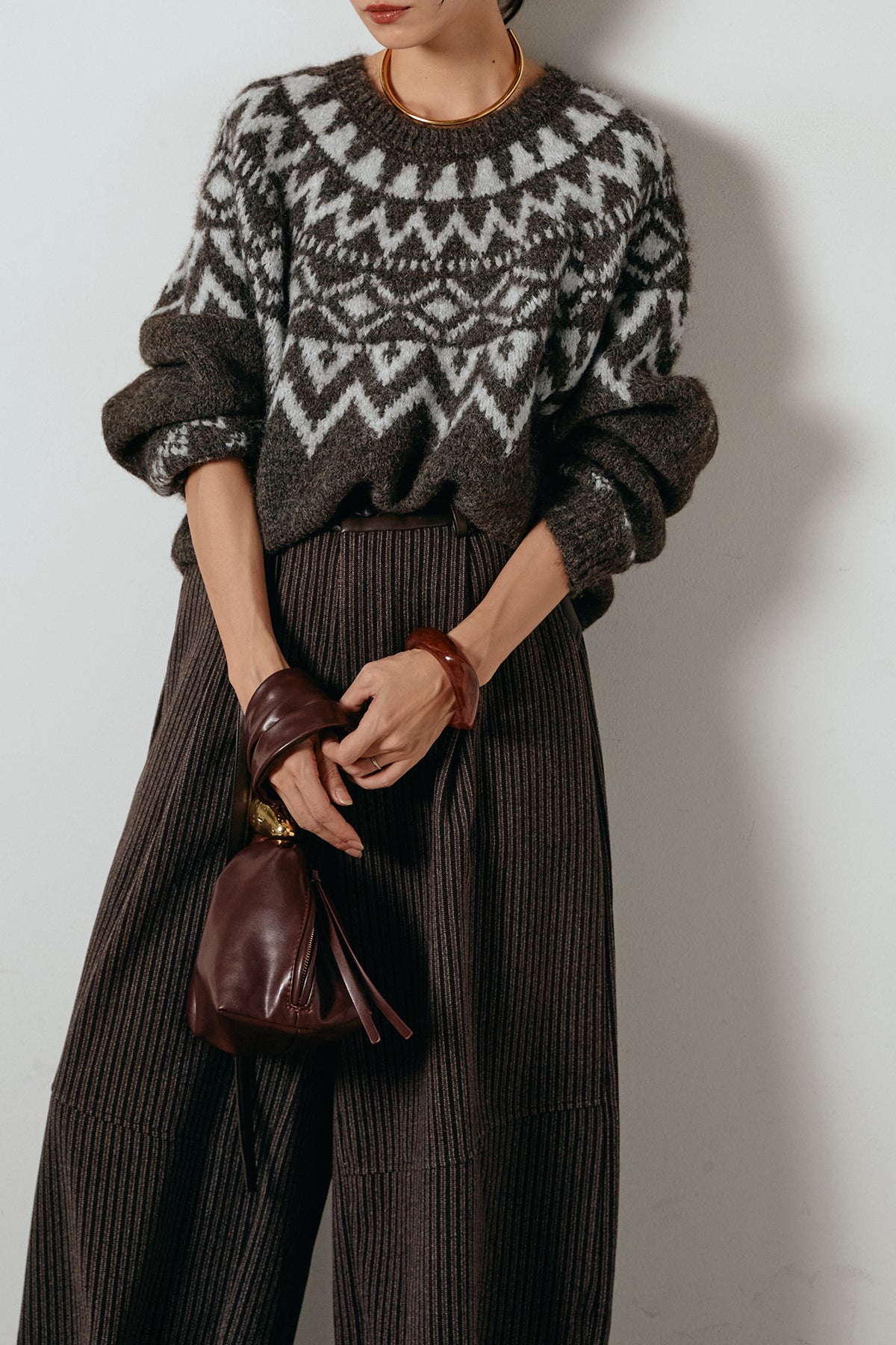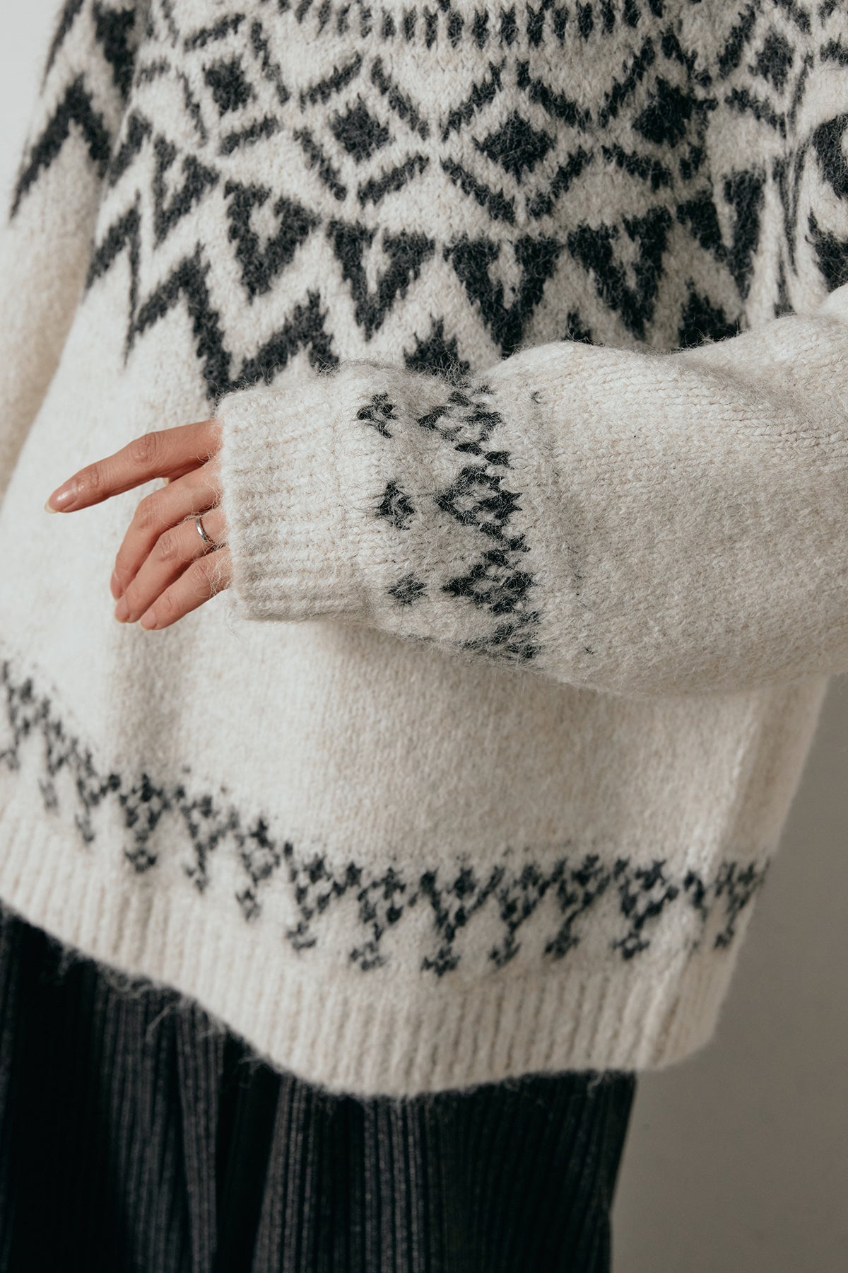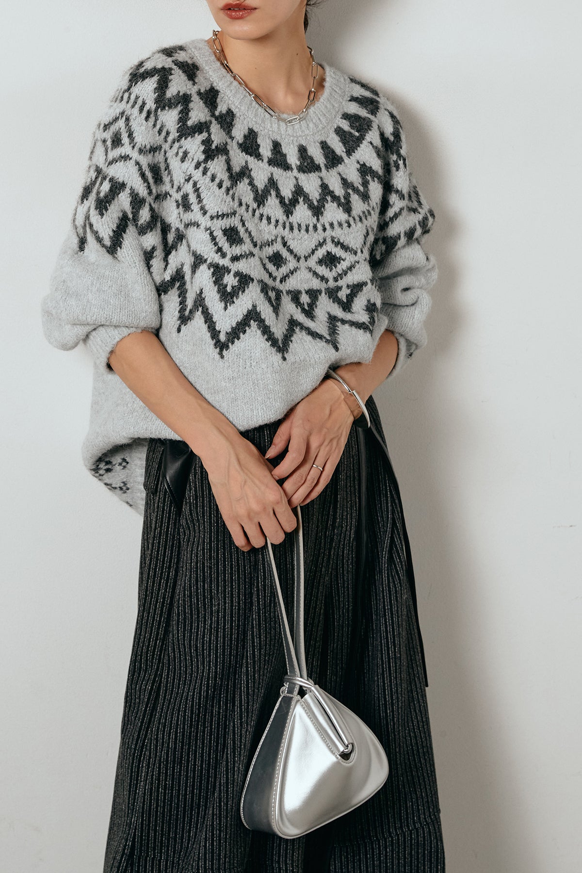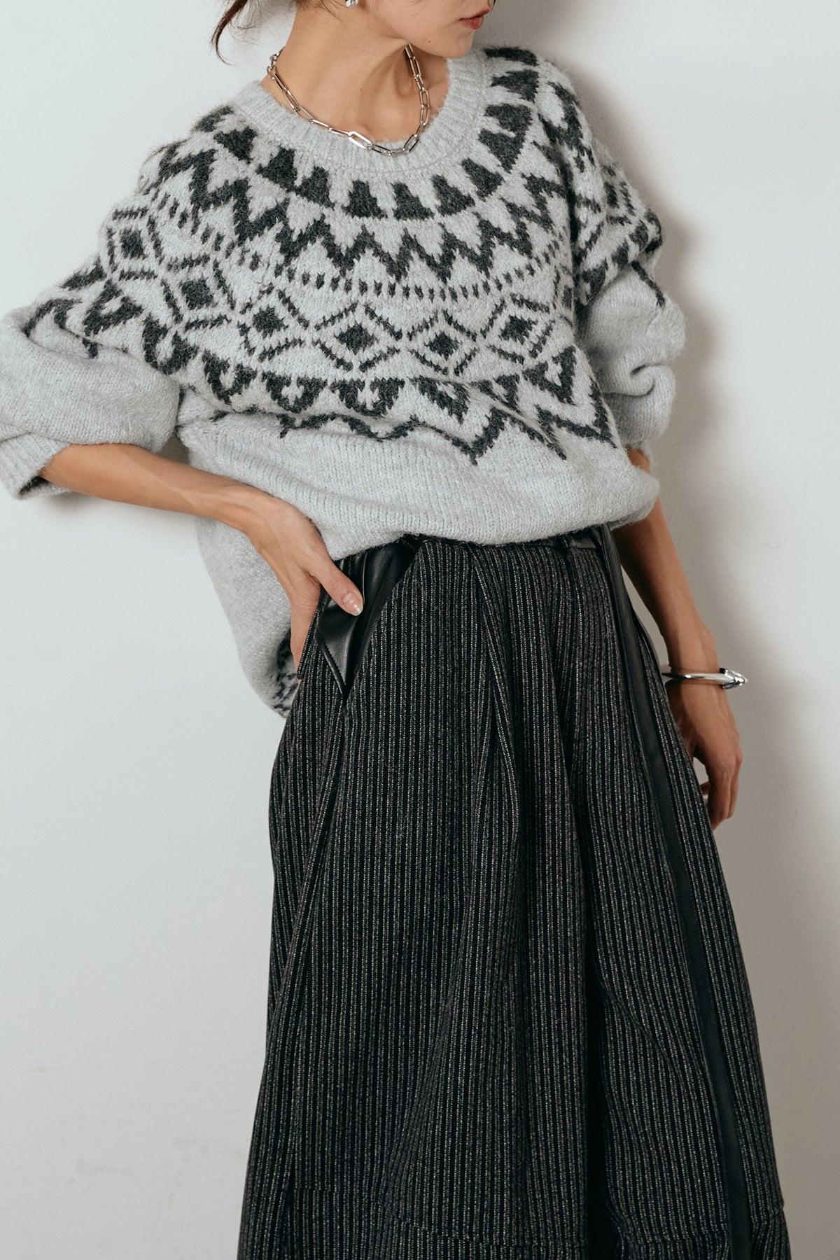 やわらかな風合いと存在感のあるノルディック柄が魅力のUネックプルオーバー。