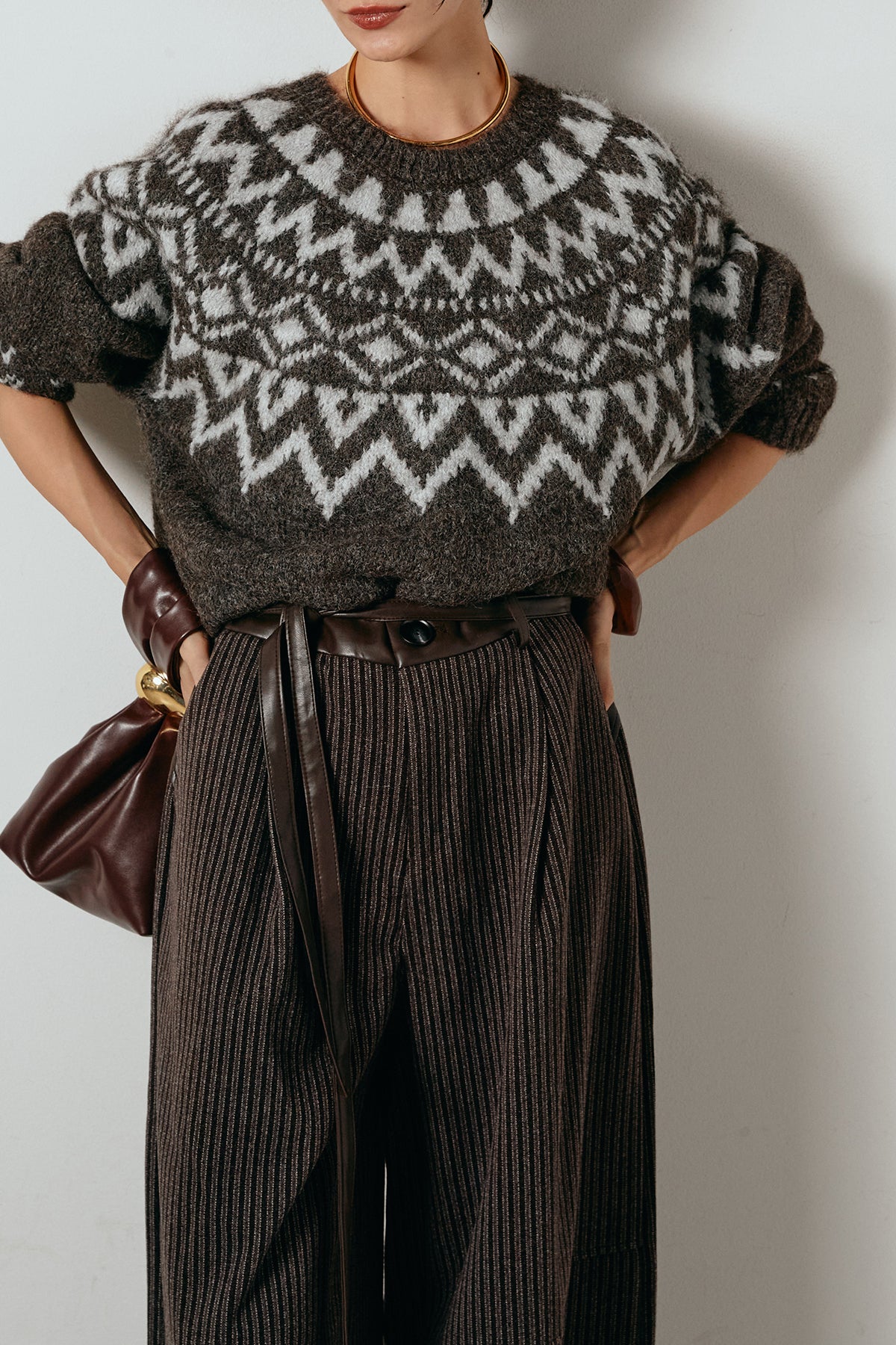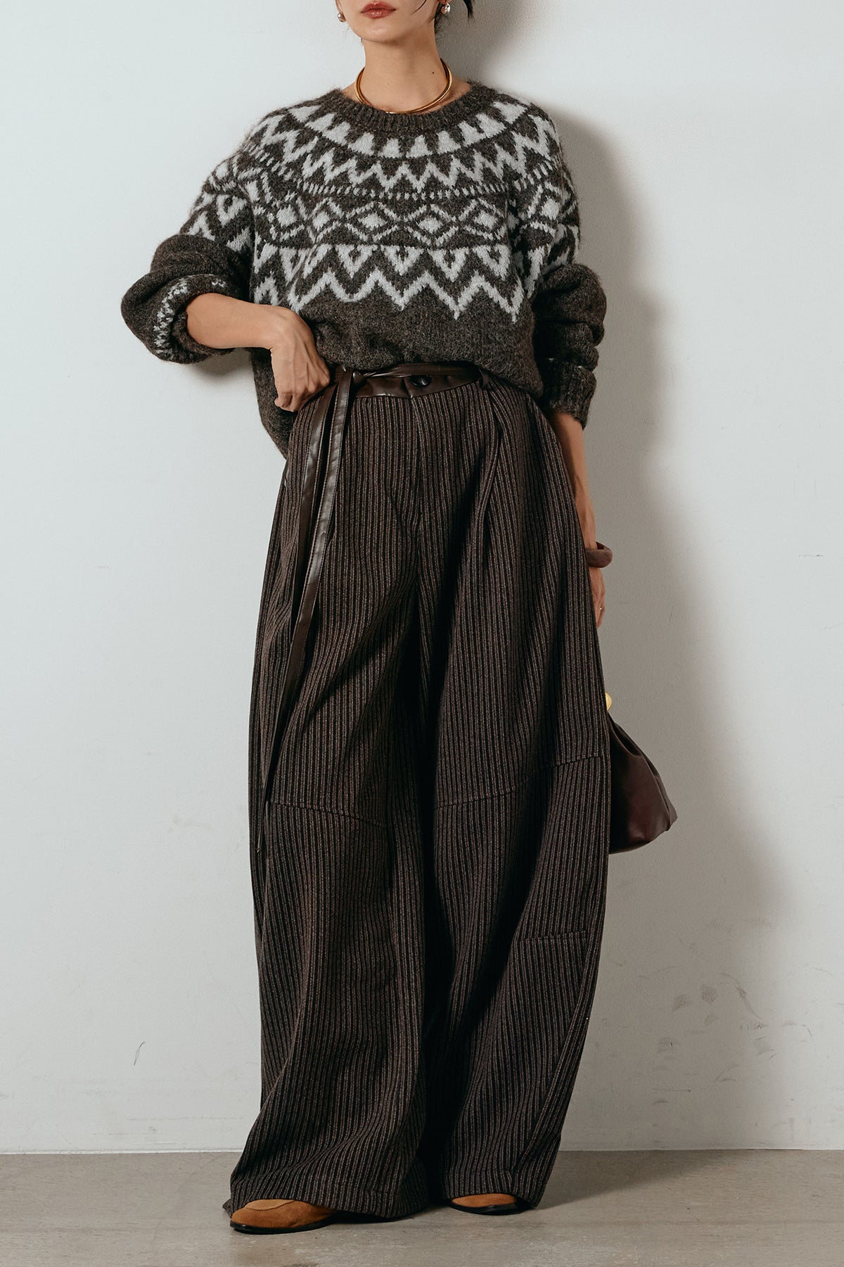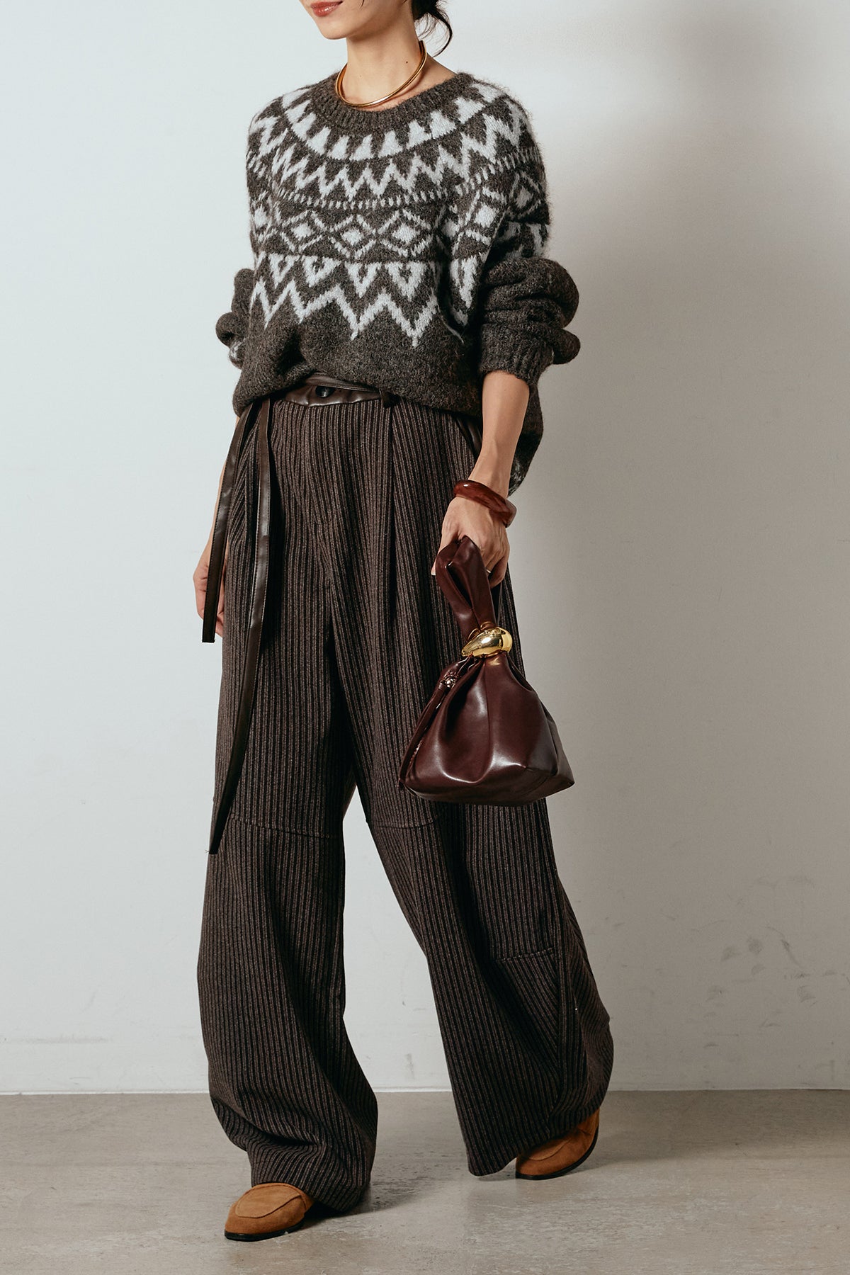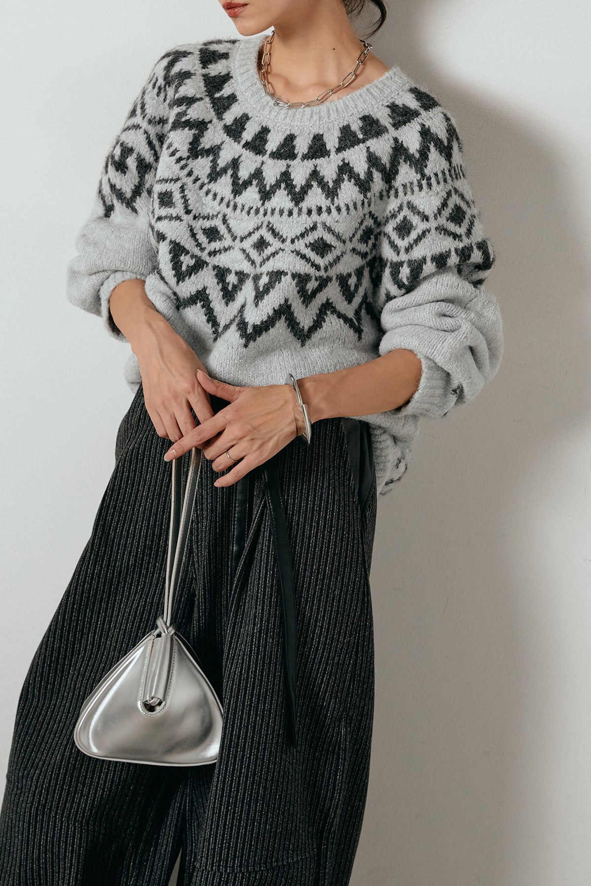 やわらかな風合いと存在感のあるノルディック柄が魅力のUネックプルオーバー。