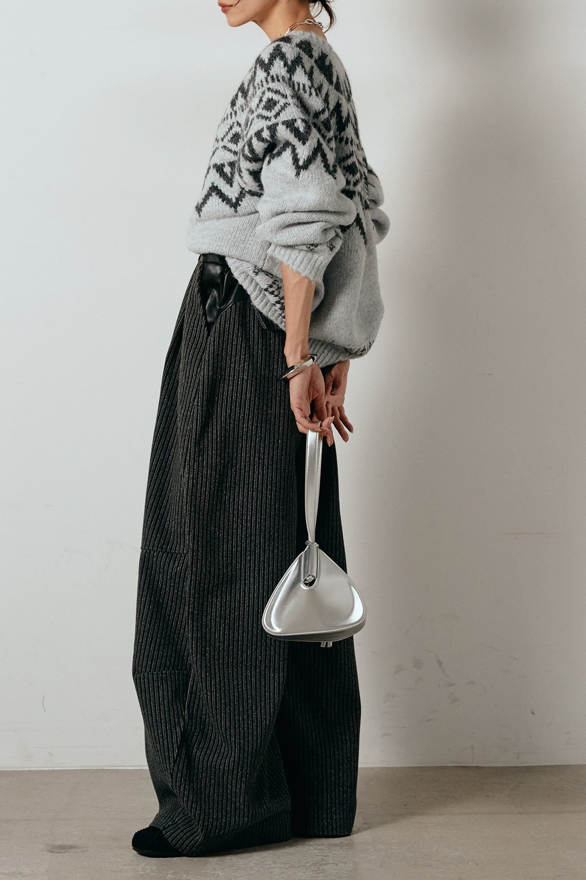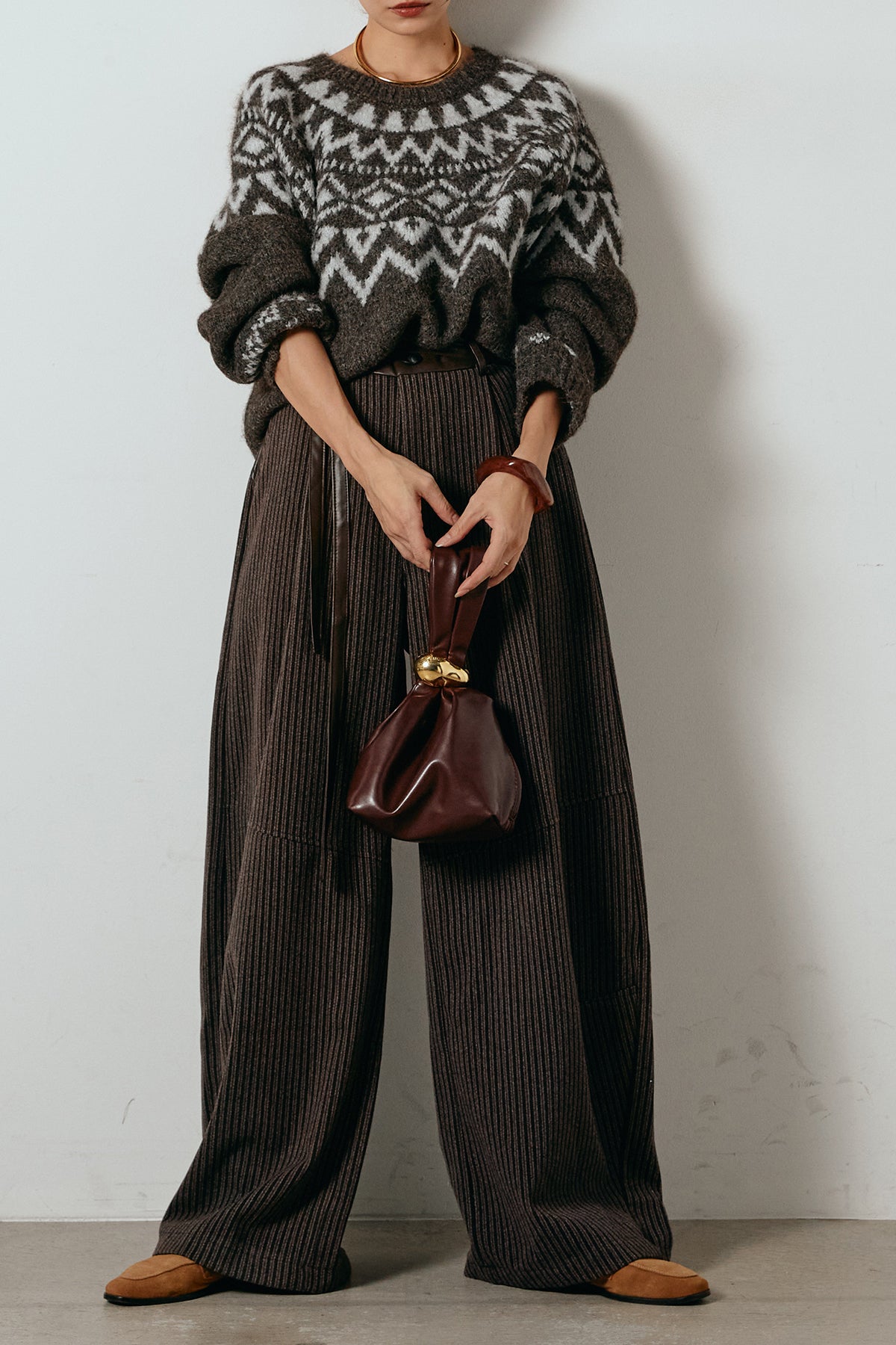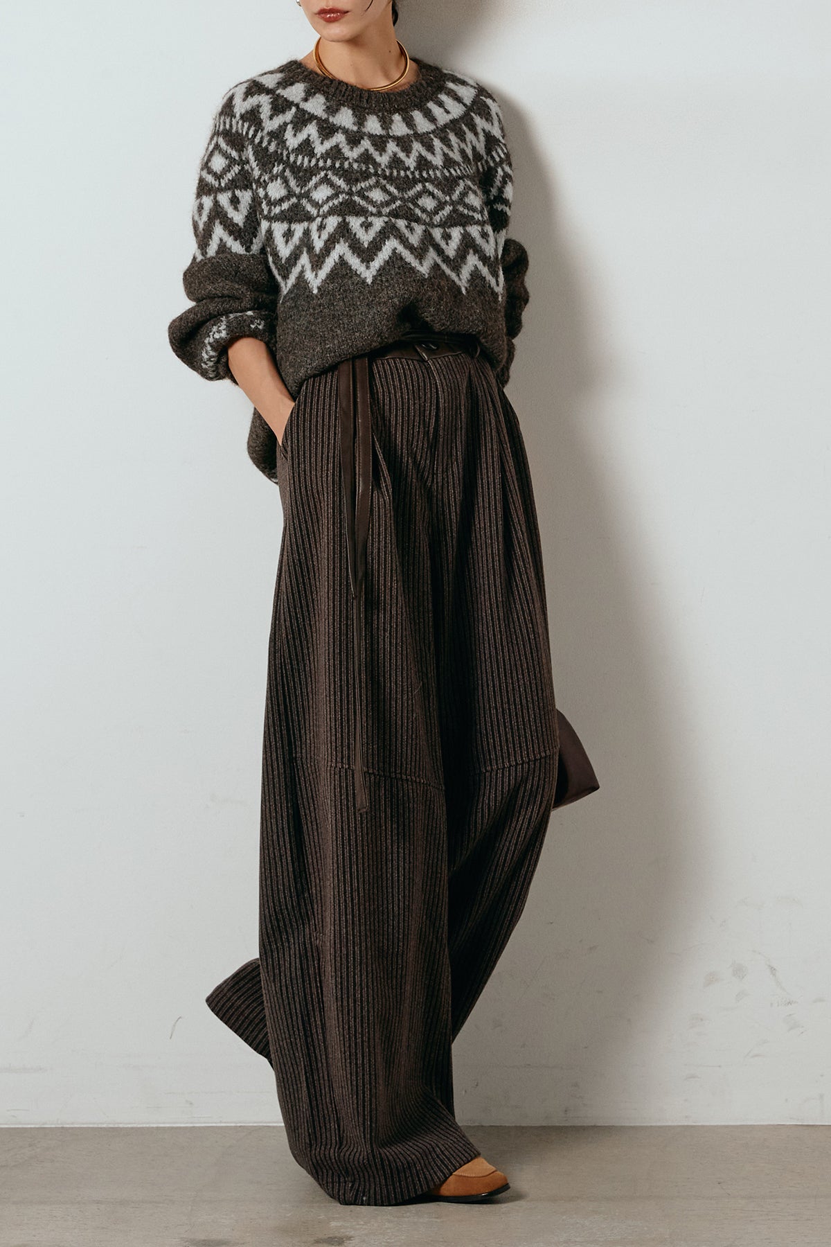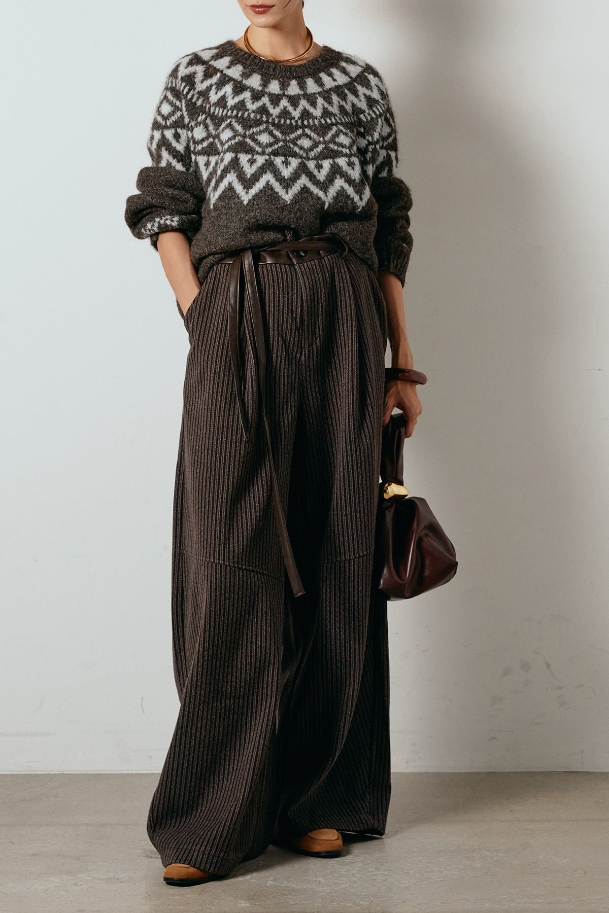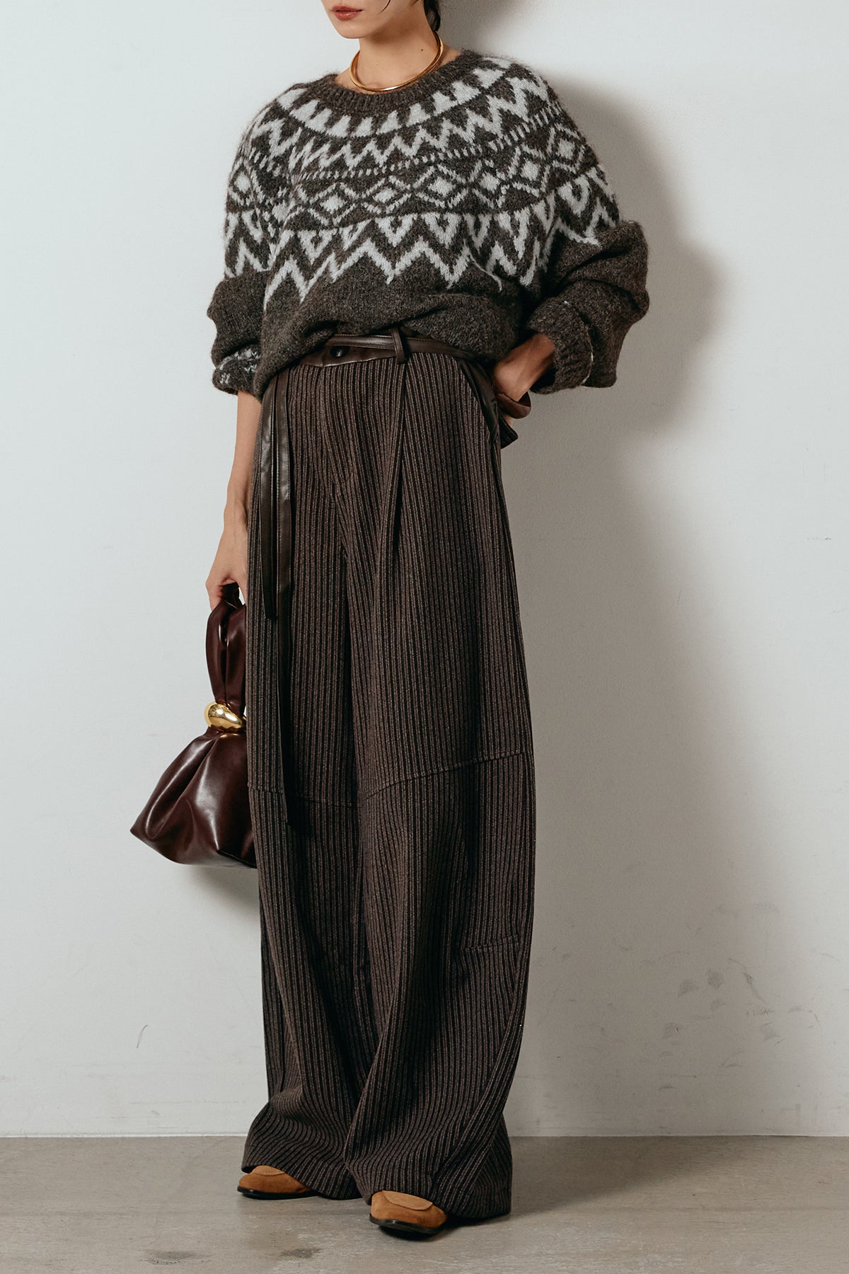 やわらかな風合いと存在感のあるノルディック柄が魅力のUネックプルオーバー。