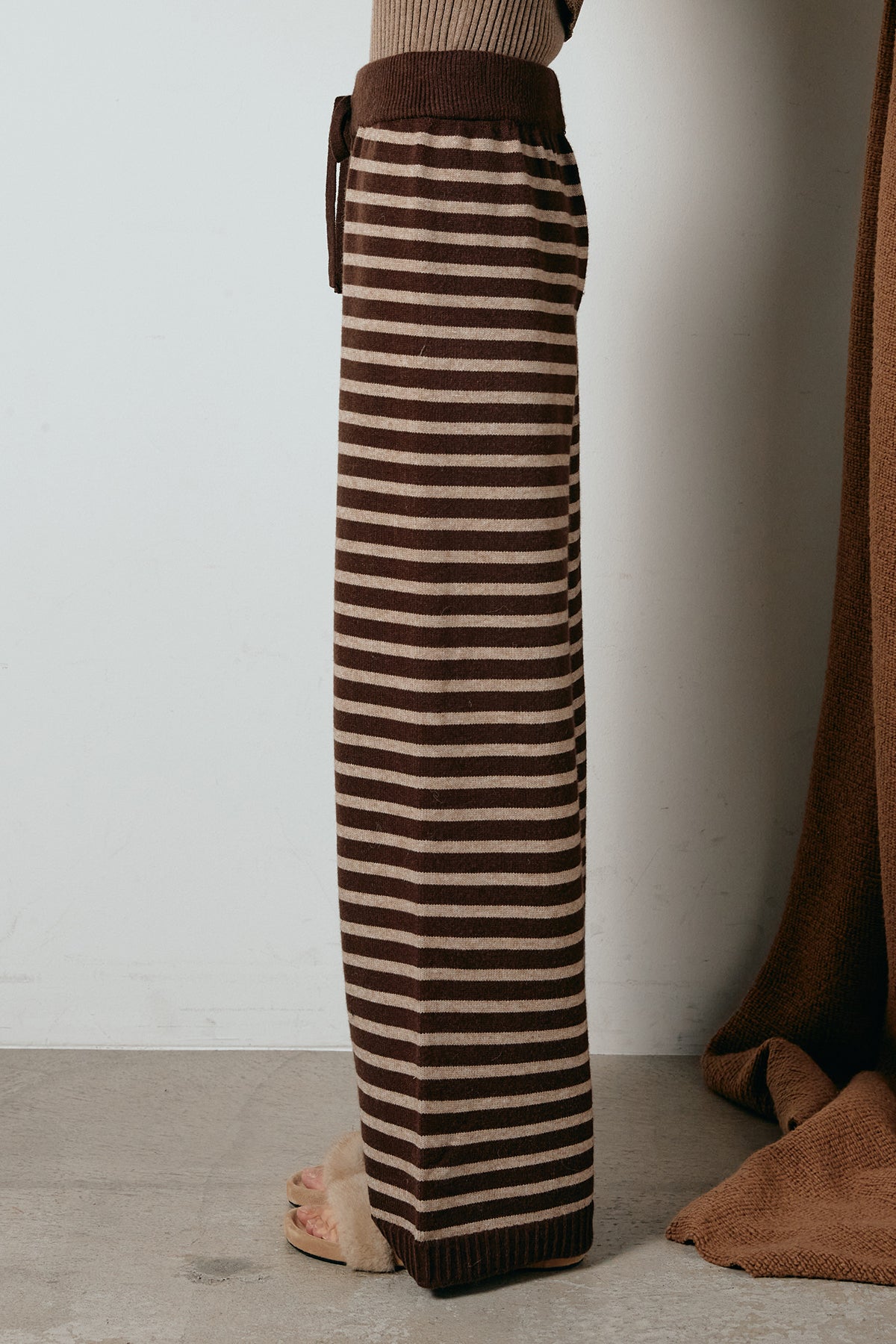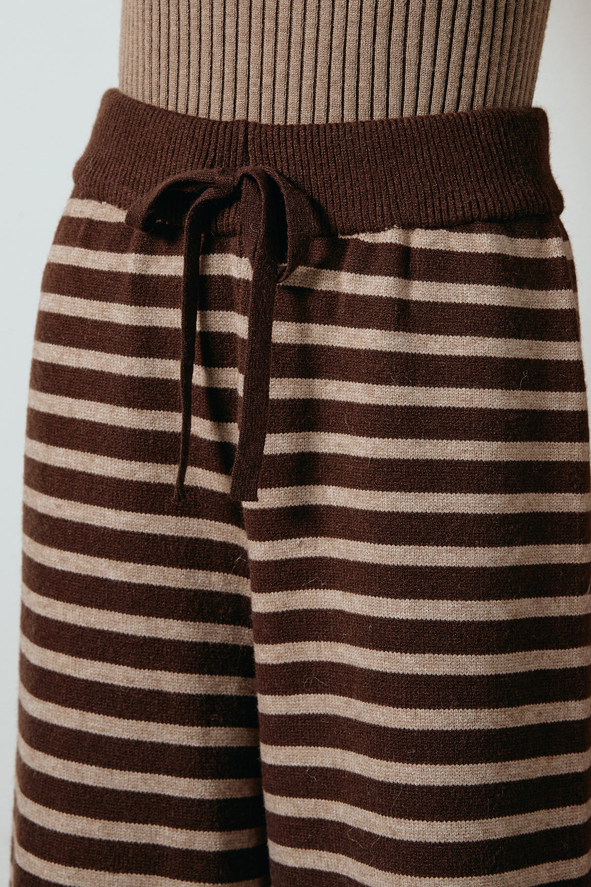 ボーダー柄が抜け感を添えるリラックスニットパンツ。