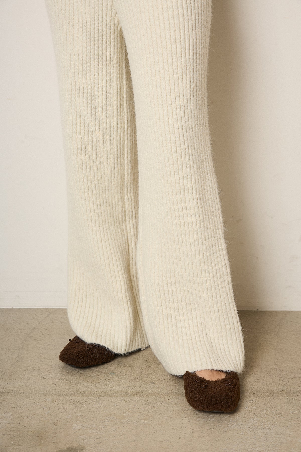 リブ編みの立体感がシルエットをきれいに見せ、伸縮性のある素材で快適な着心地。