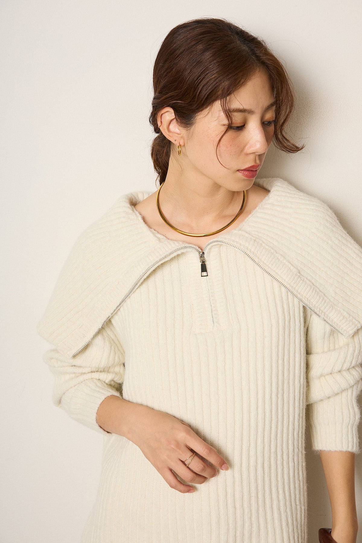 ジップを開けて抜け感を出したり、閉めてタートル風にしたりとアレンジが楽しめます。