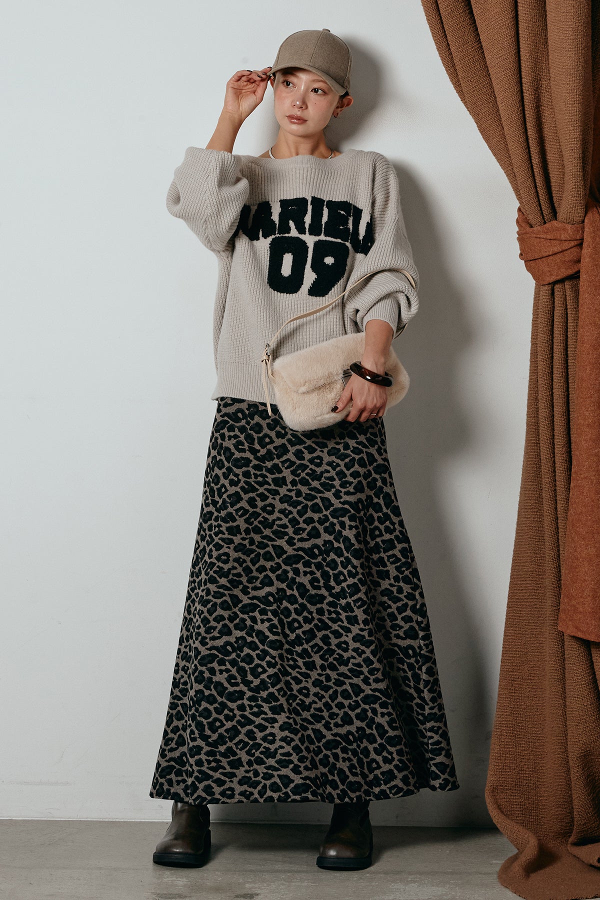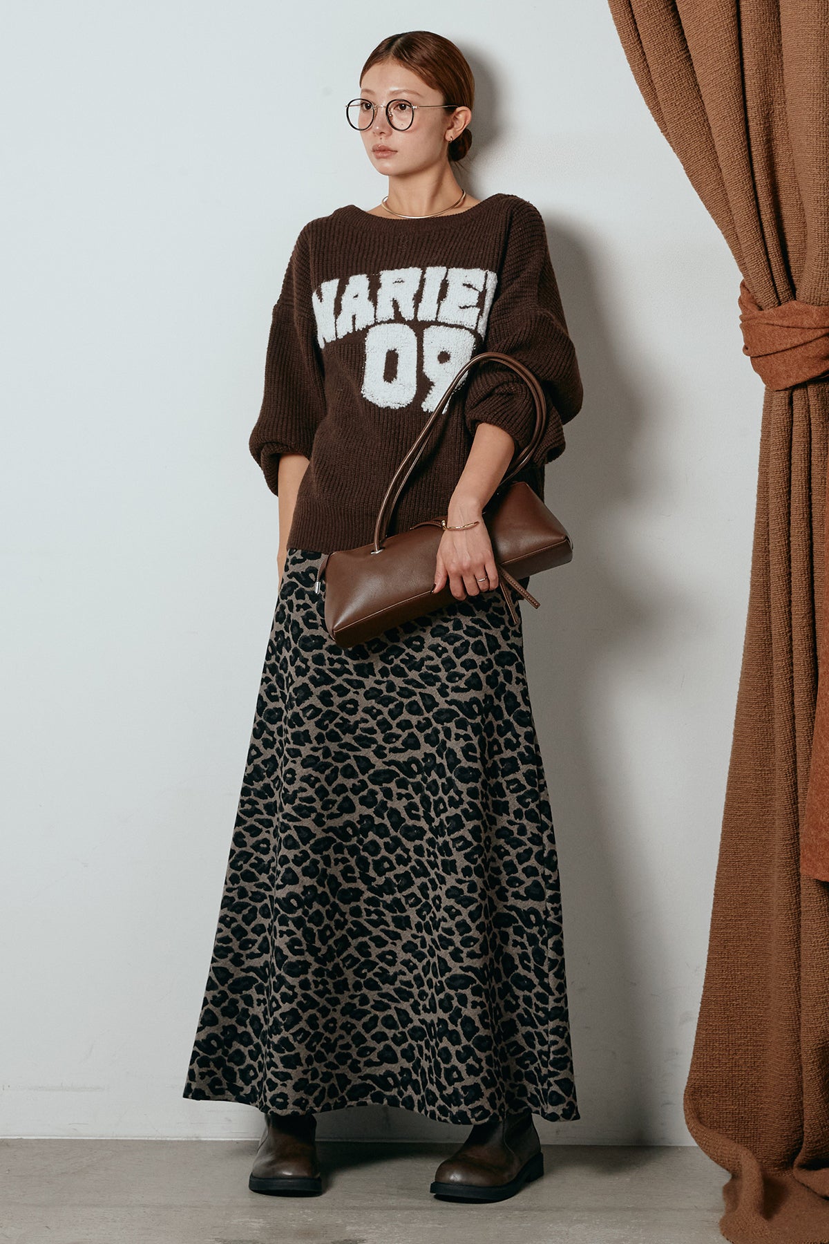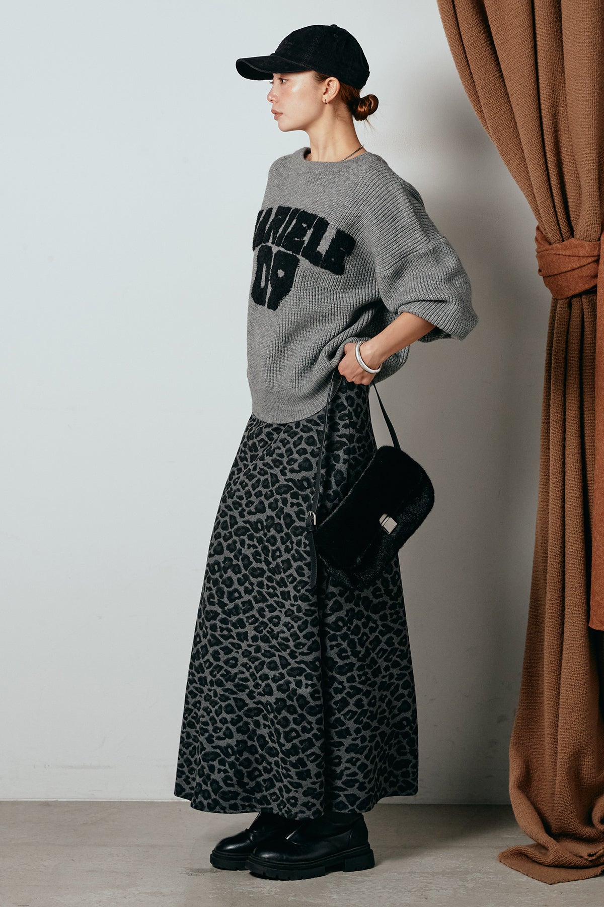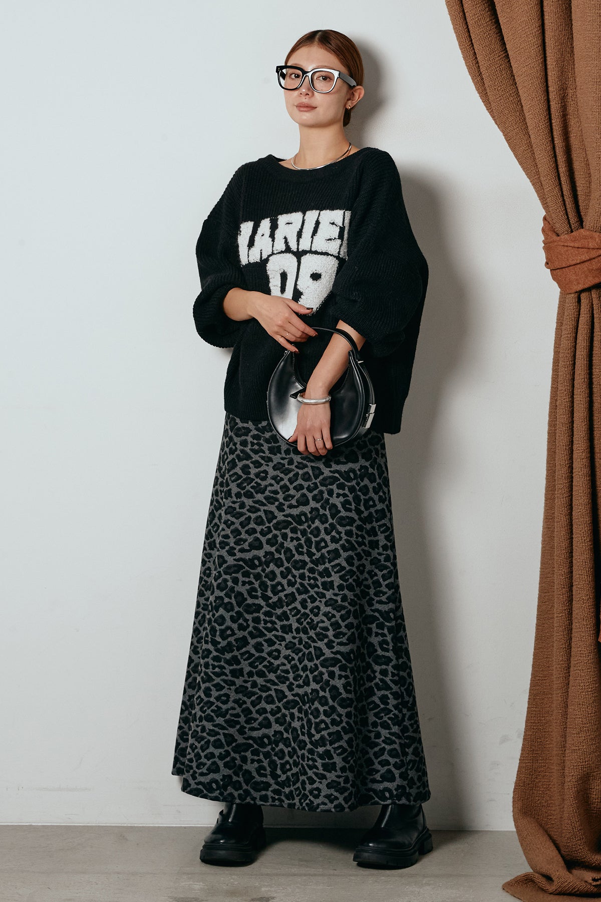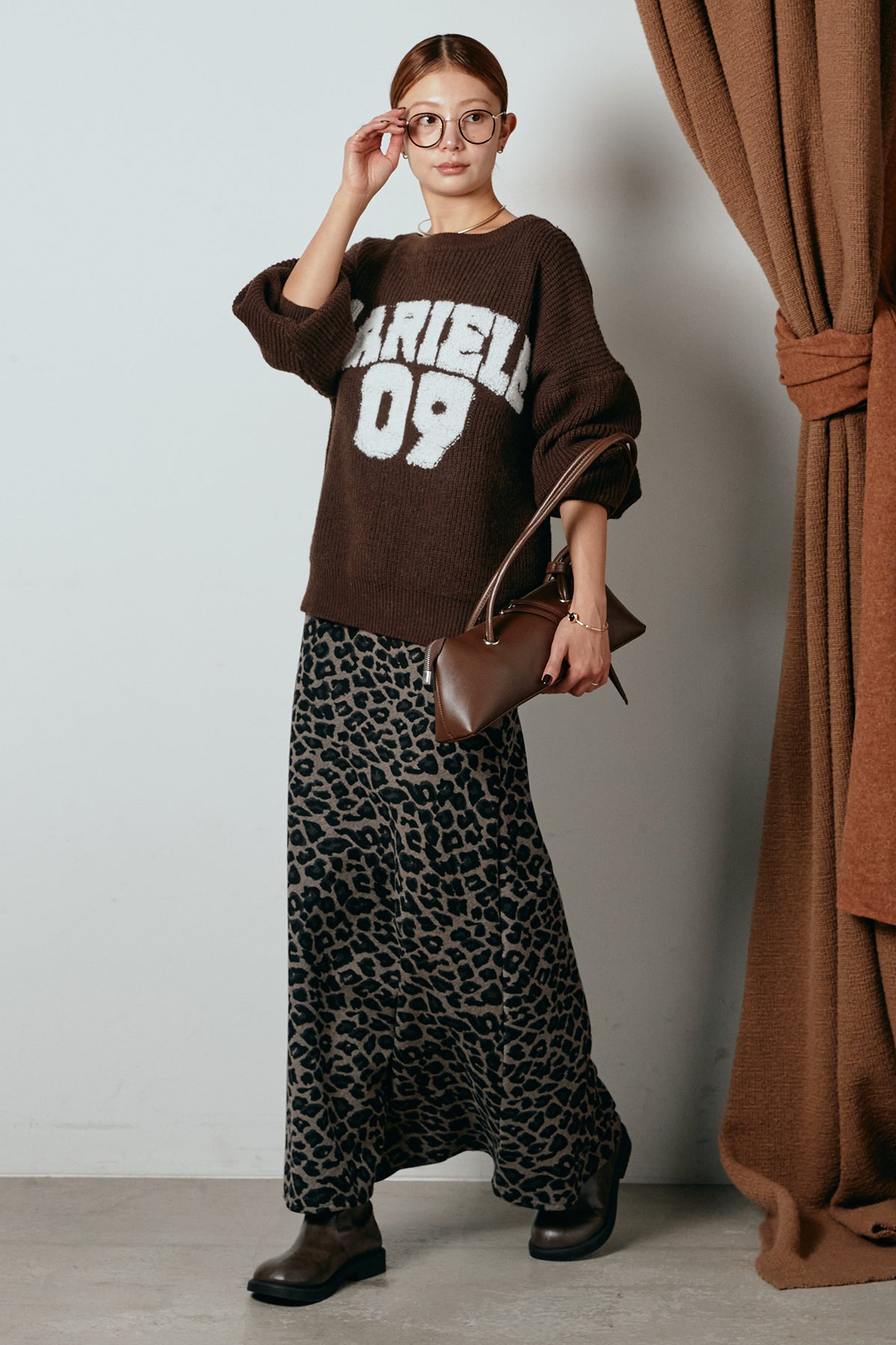 [SET]ロゴジャガードニットトップス+レオパードロングスカート(2set)