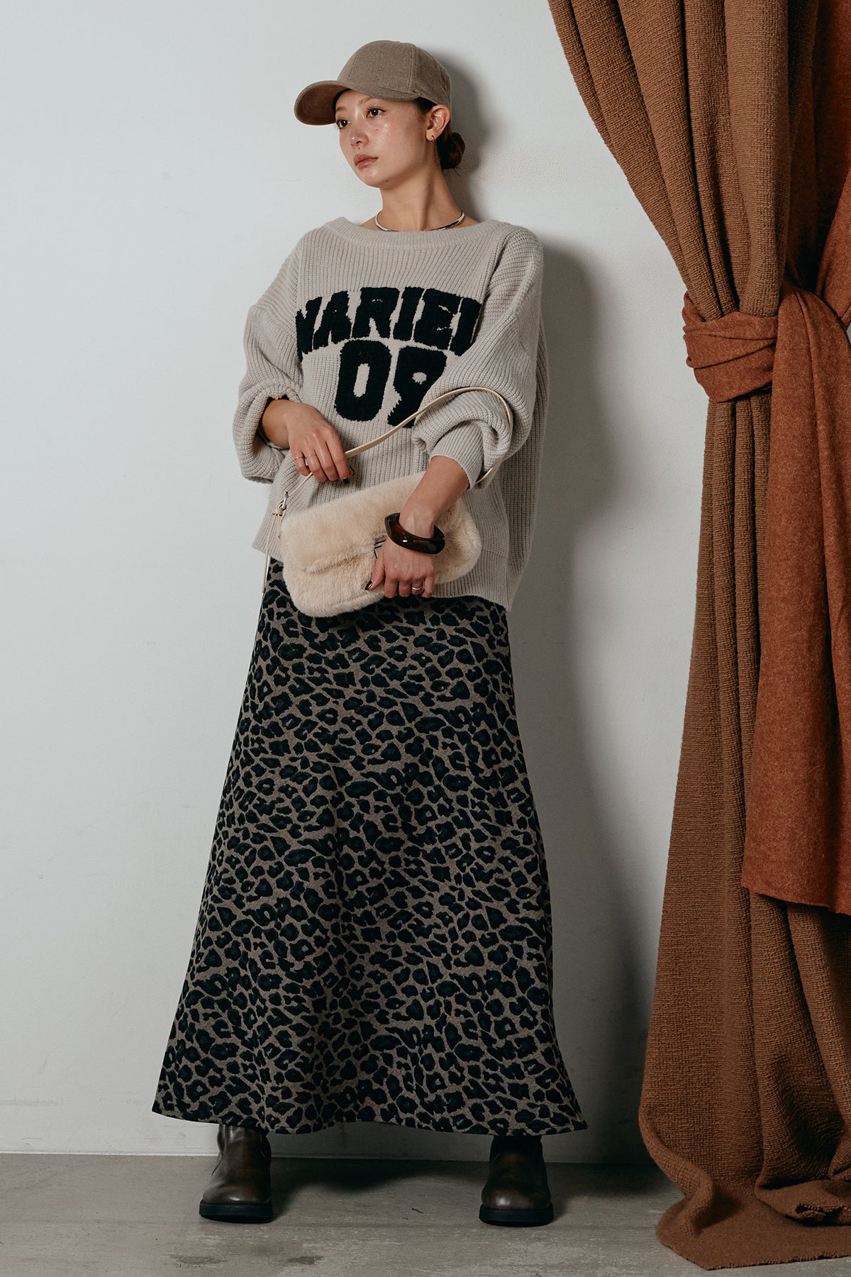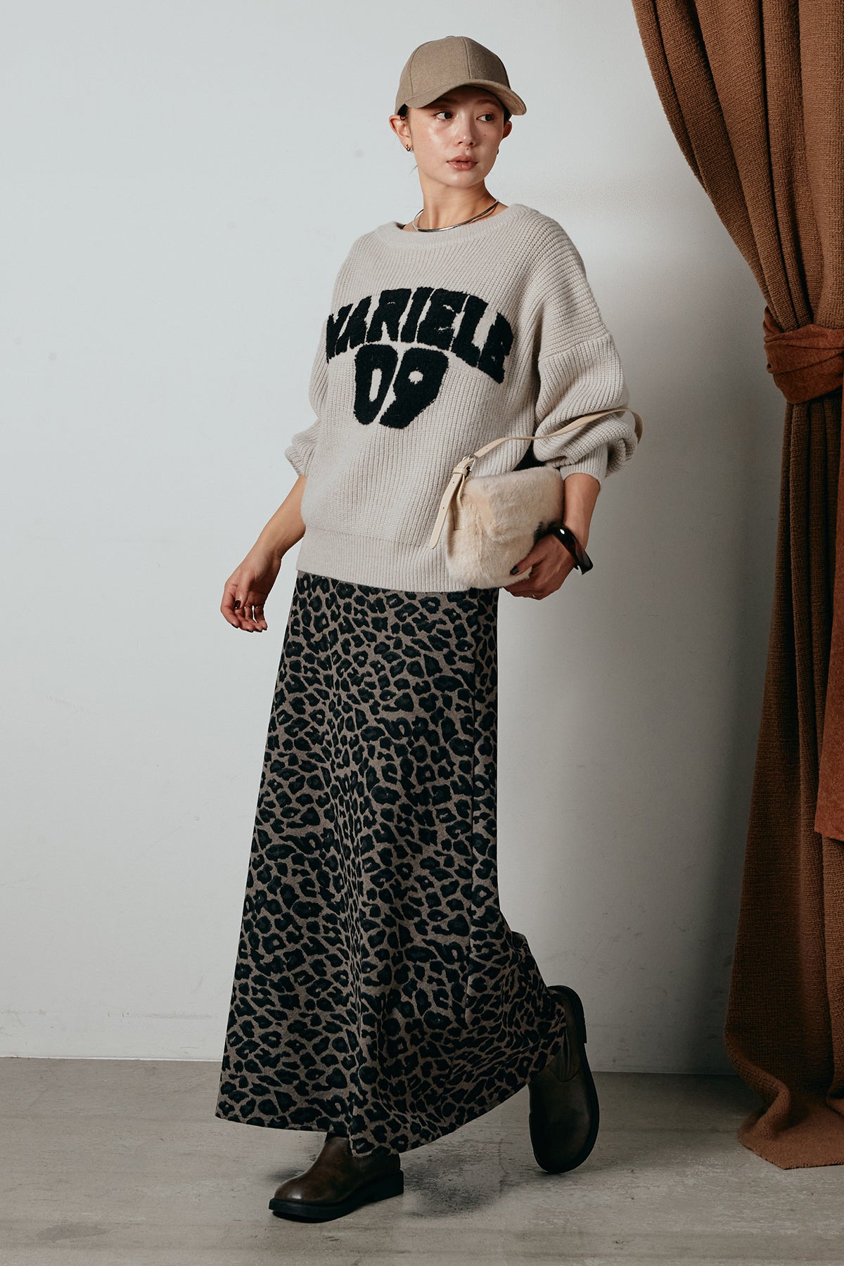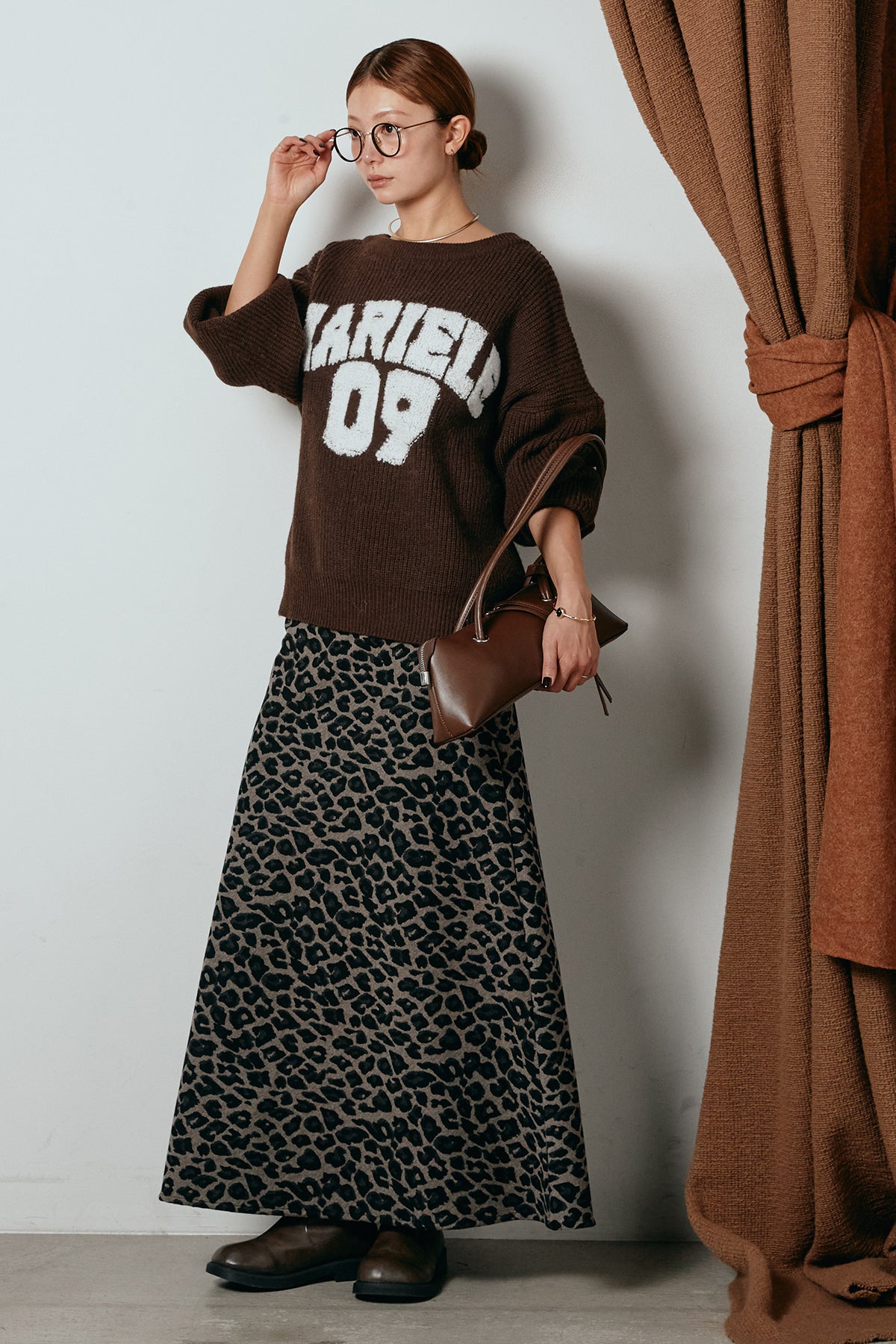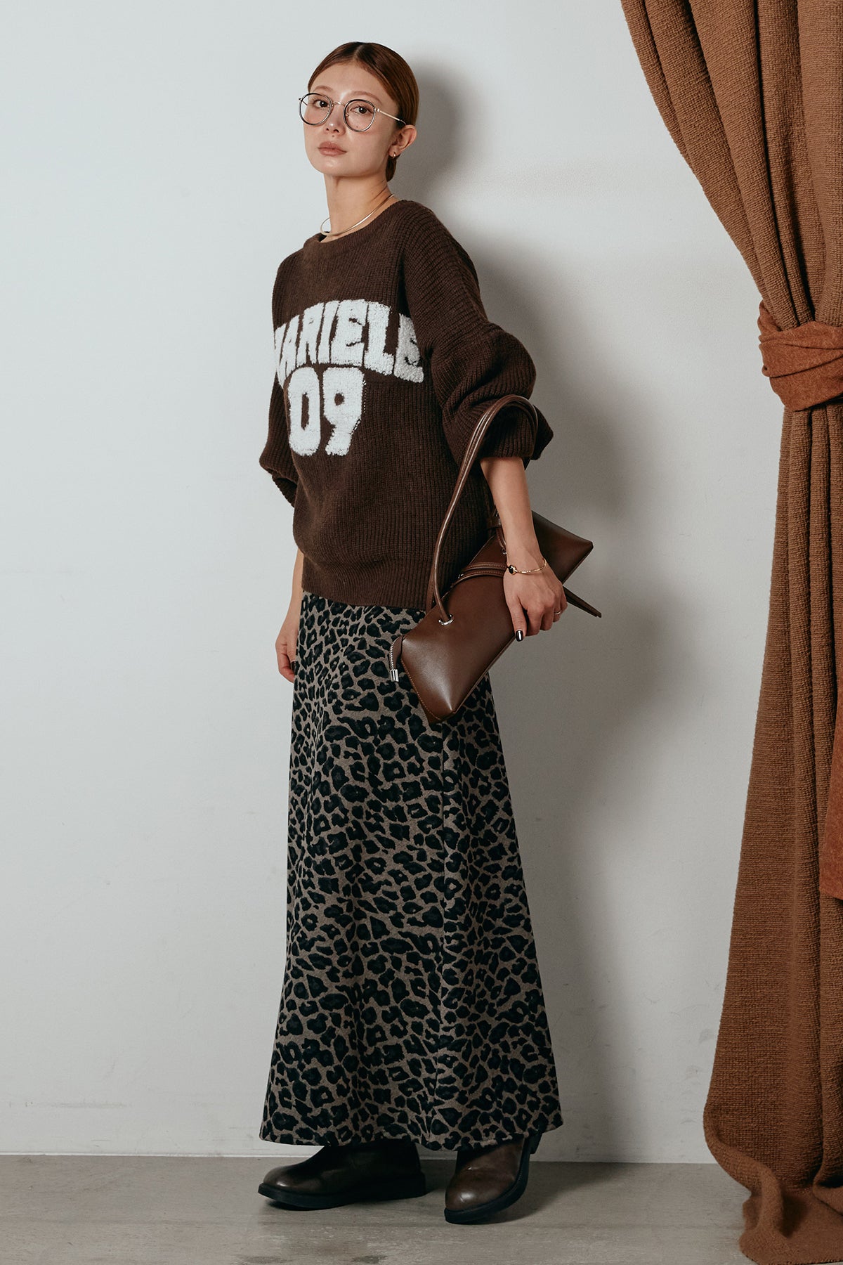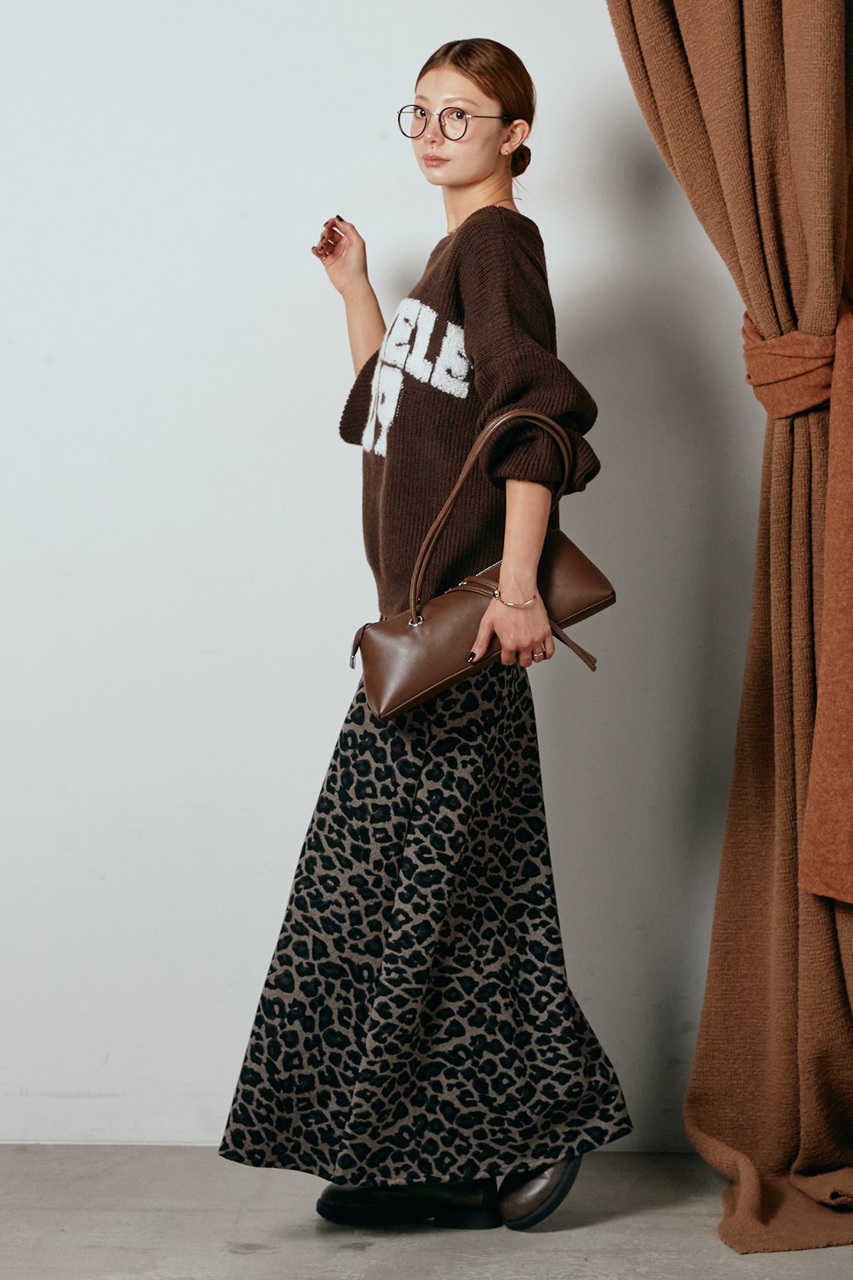 [SET]ロゴジャガードニットトップス+レオパードロングスカート(2set)