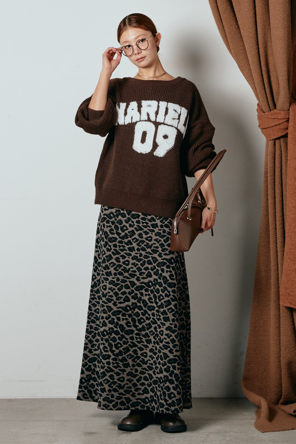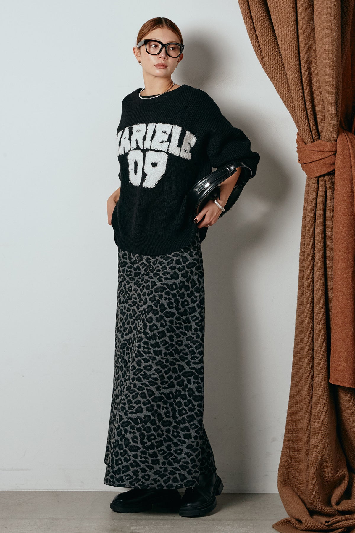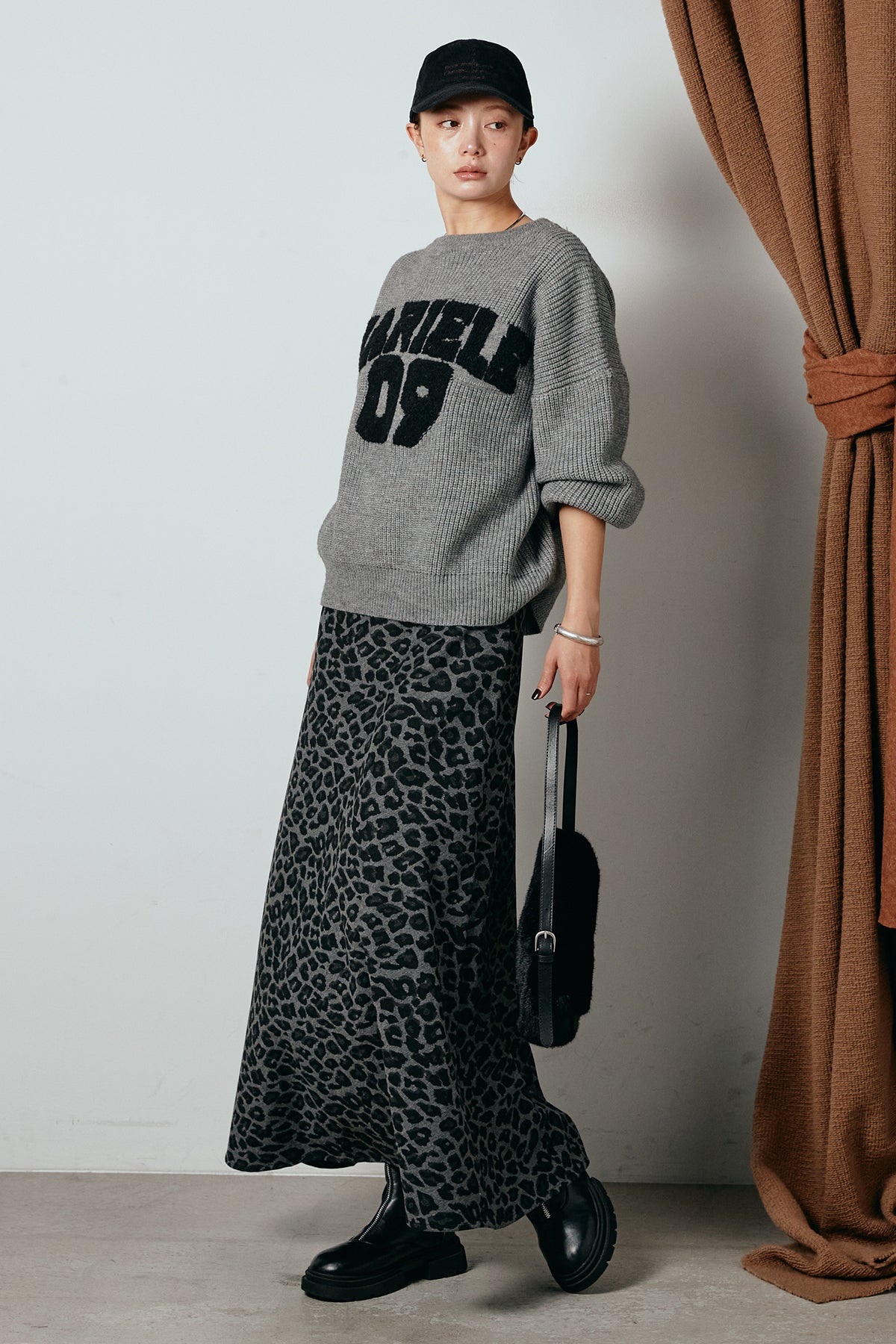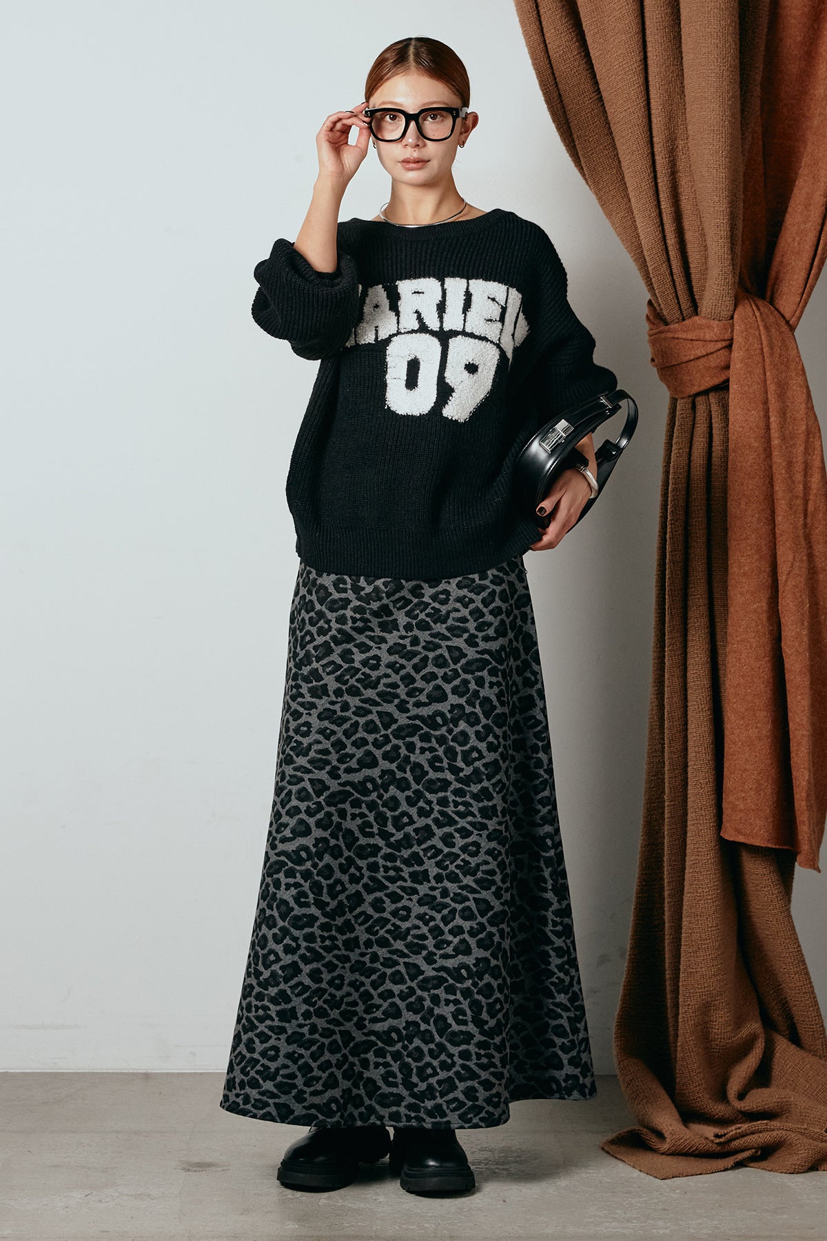 [SET]ロゴジャガードニットトップス+レオパードロングスカート(2set)