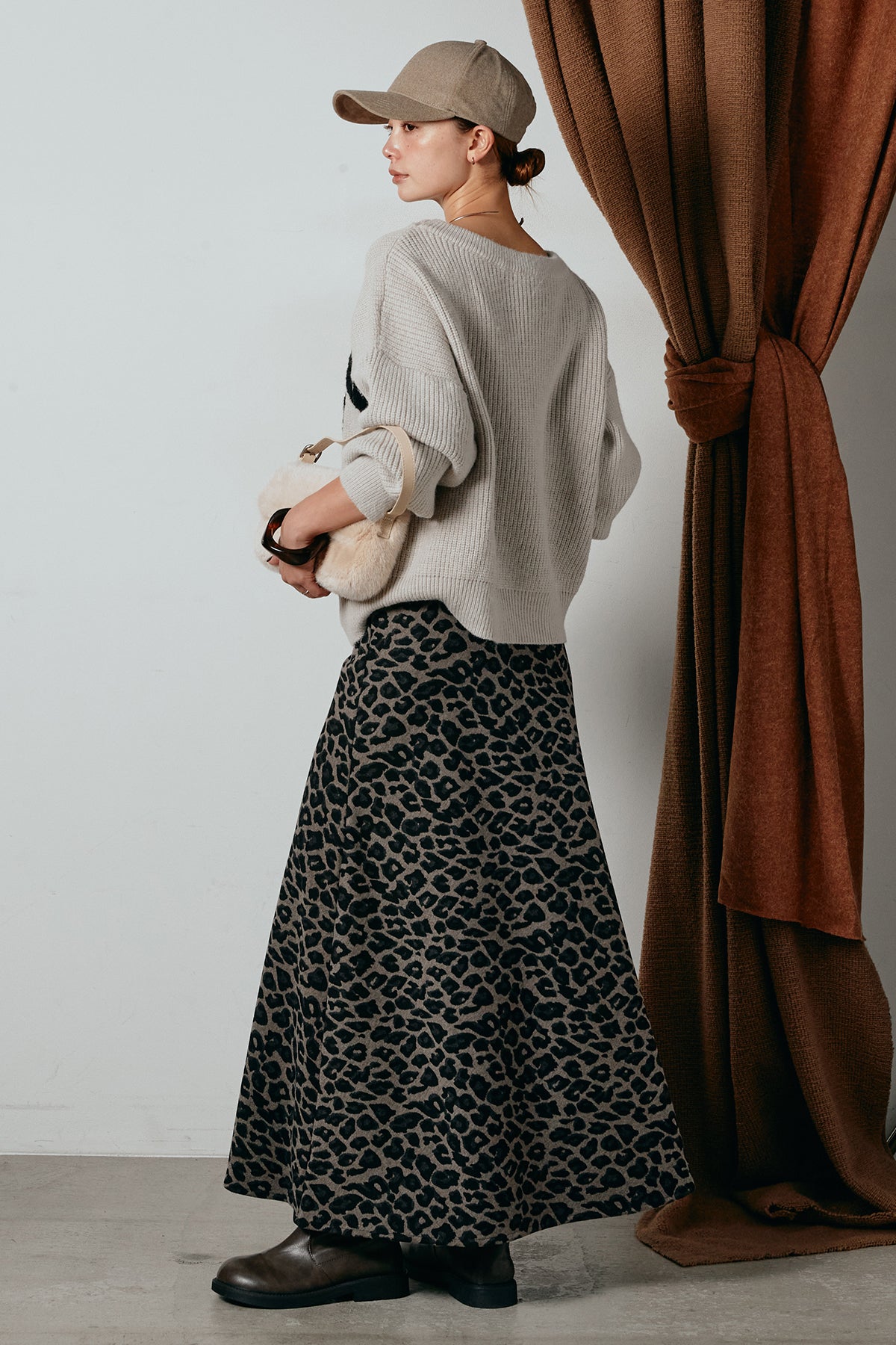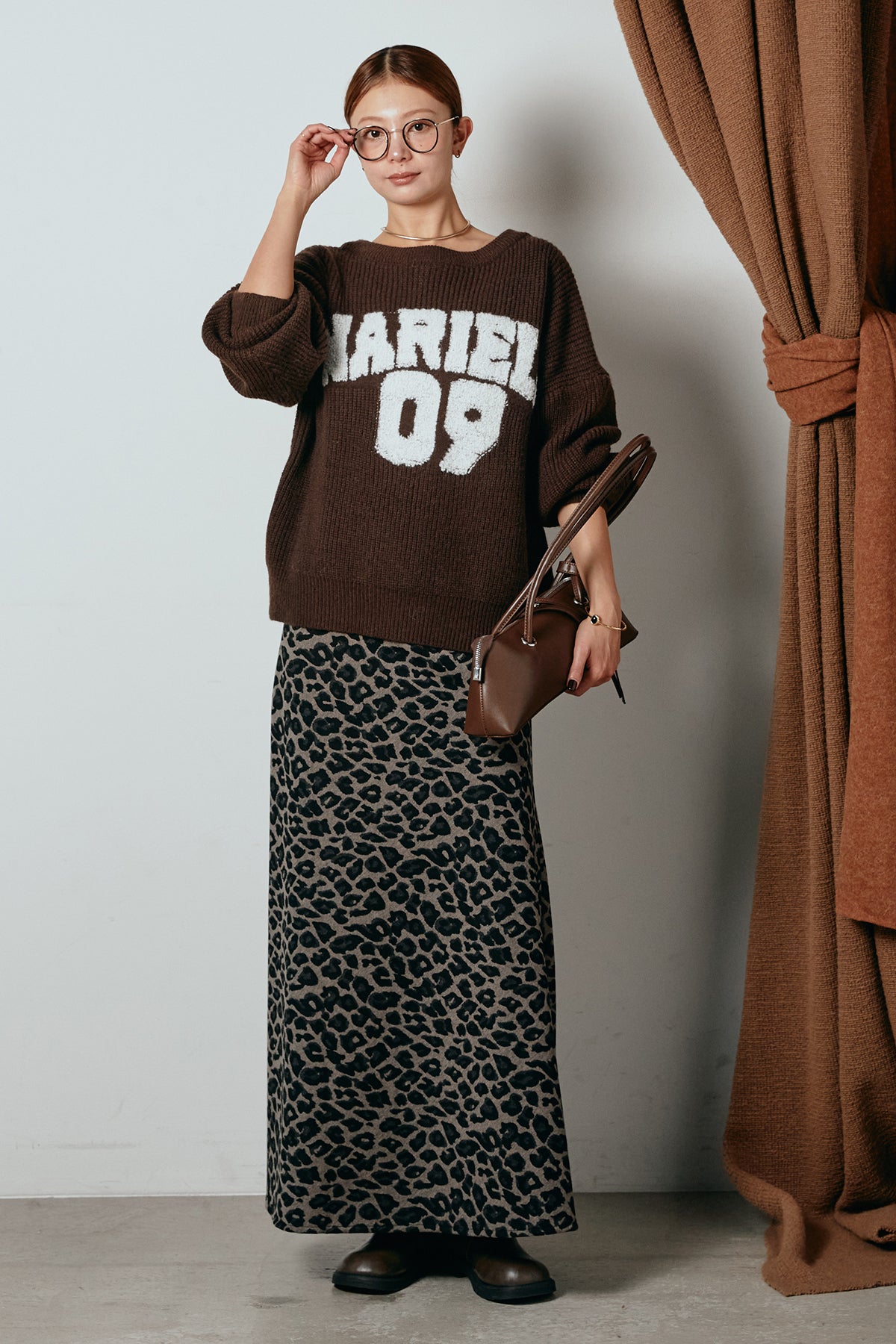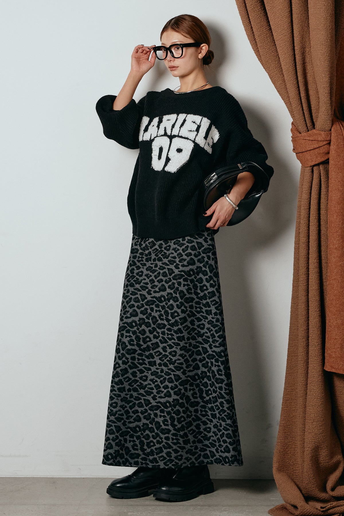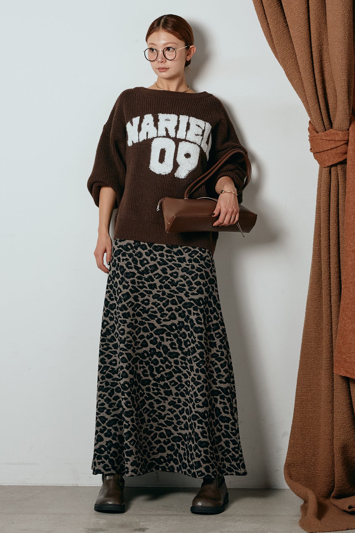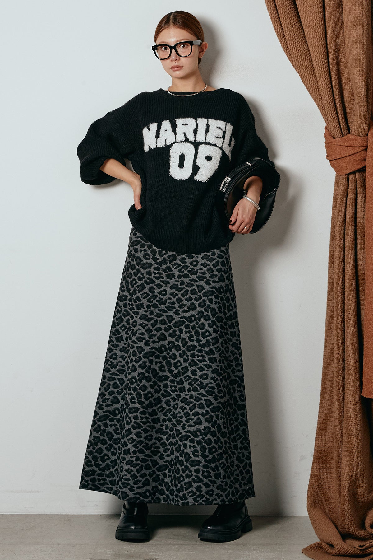 [SET]ロゴジャガードニットトップス+レオパードロングスカート(2set)
